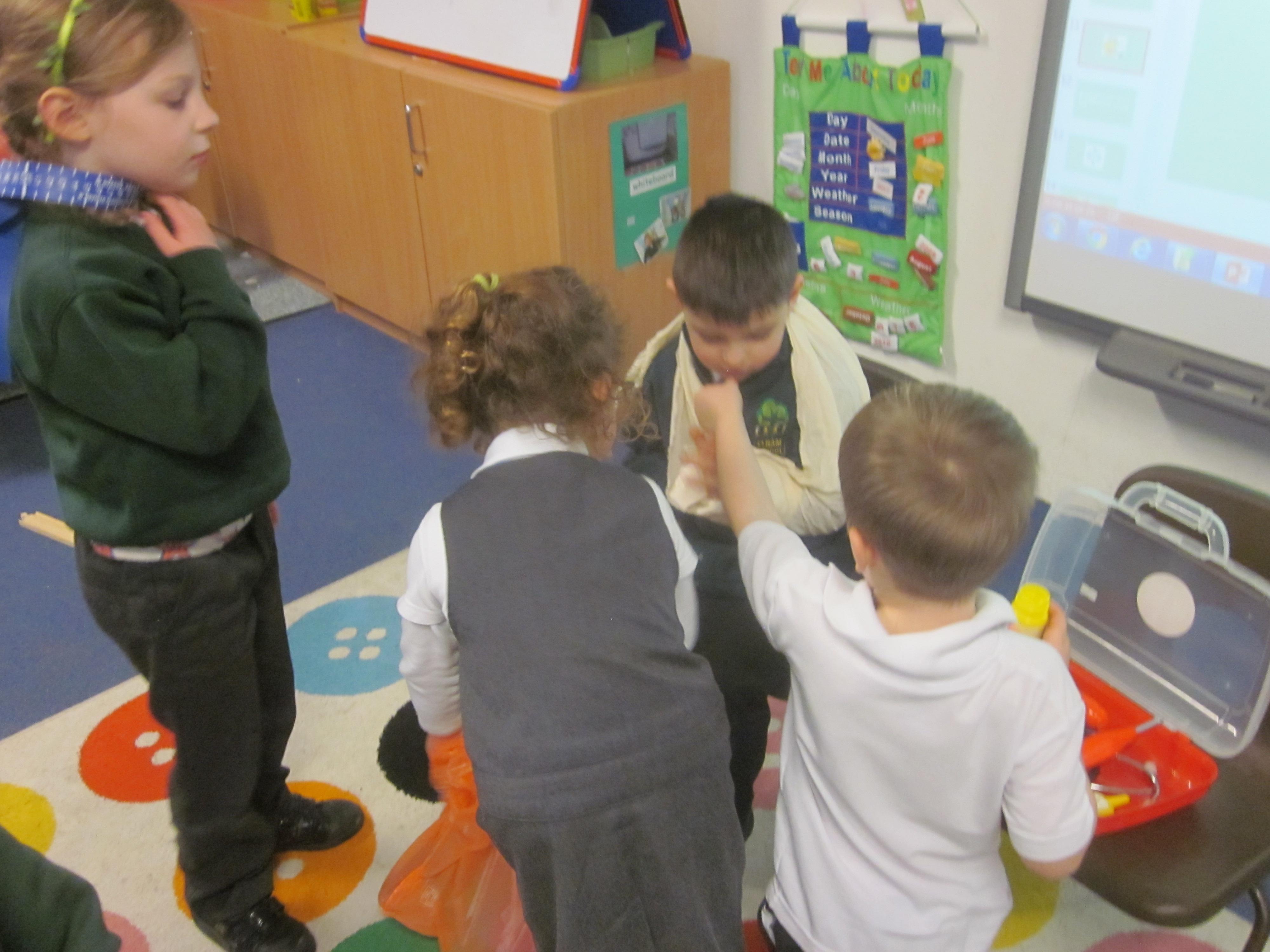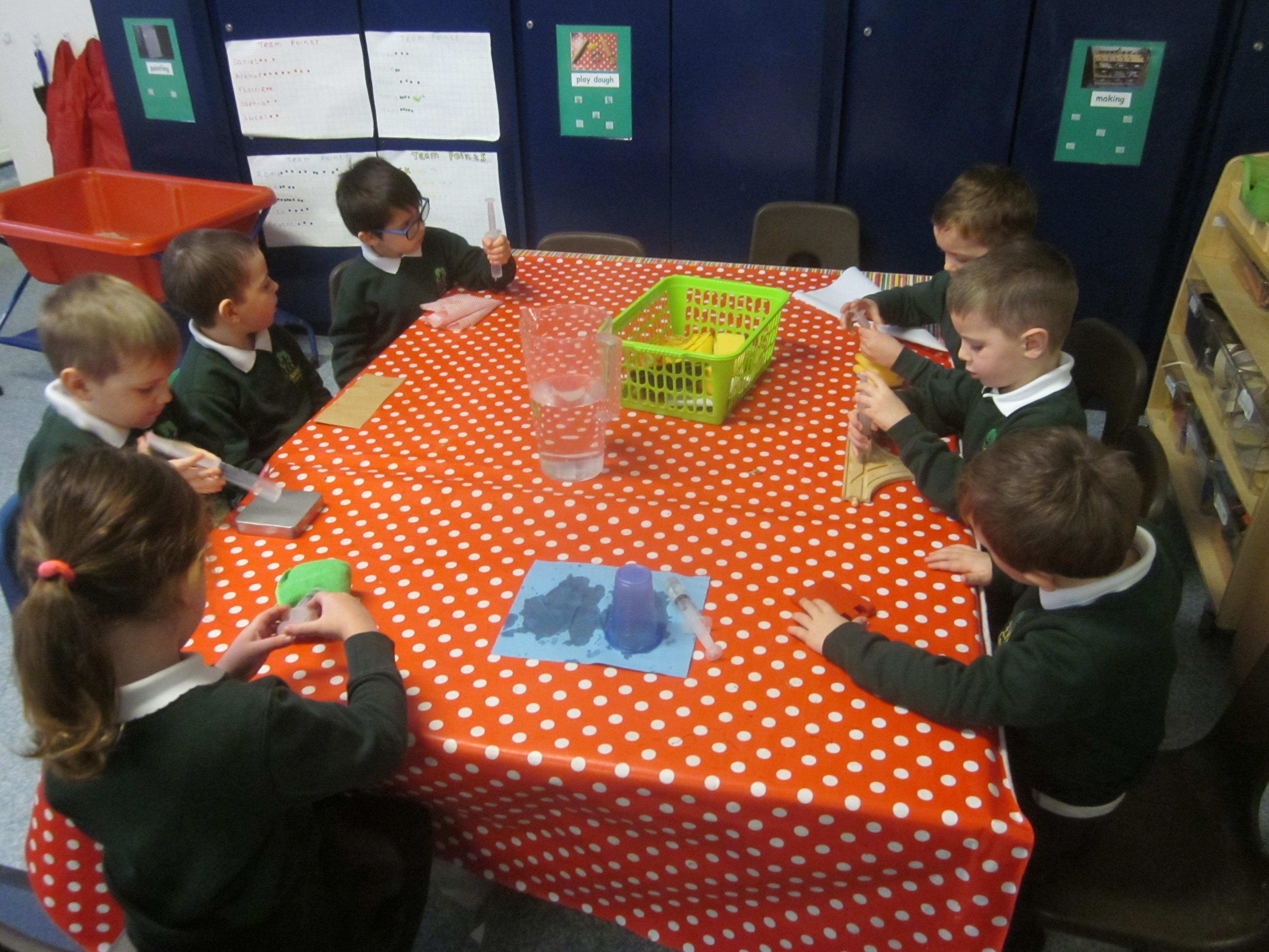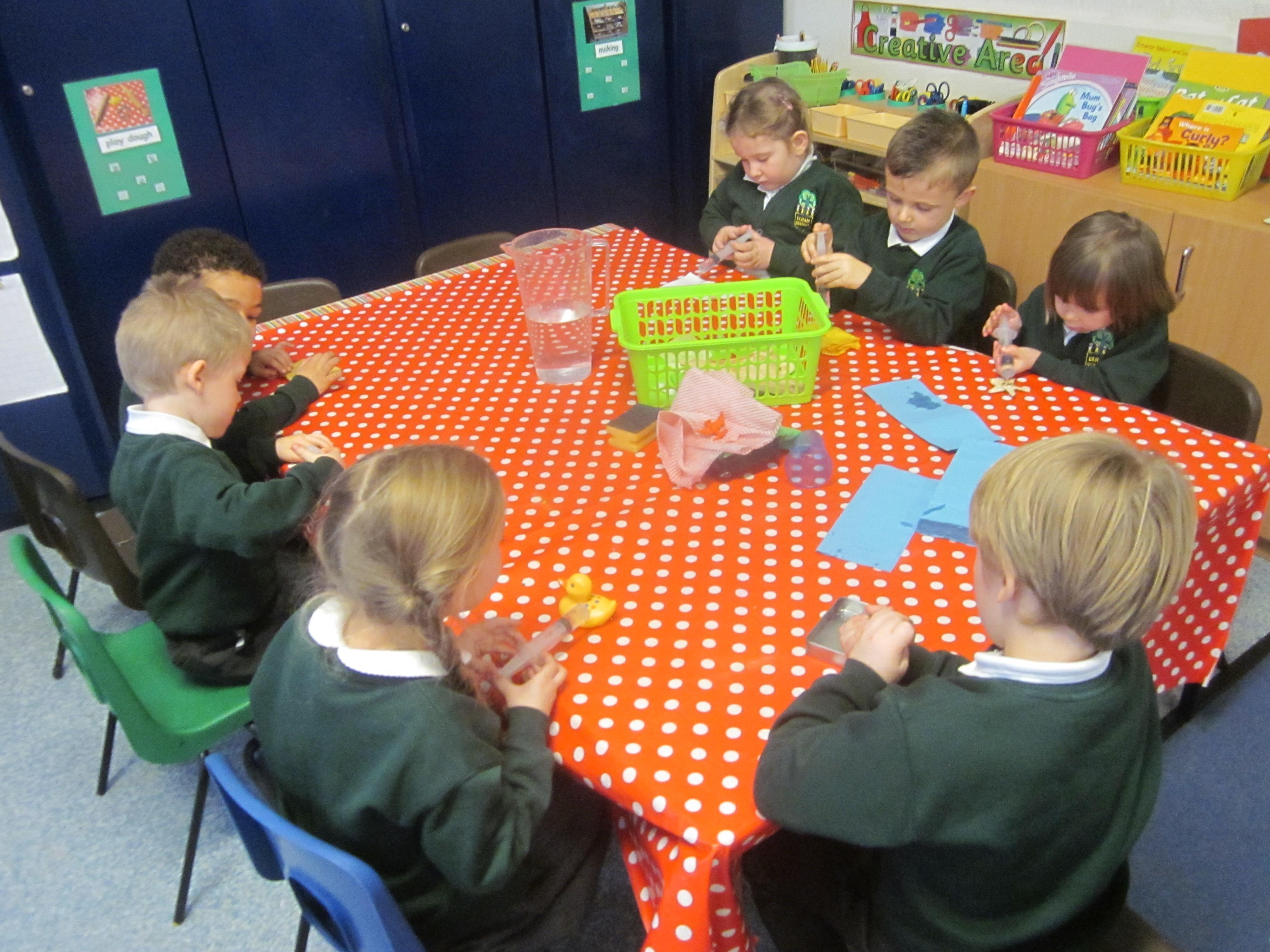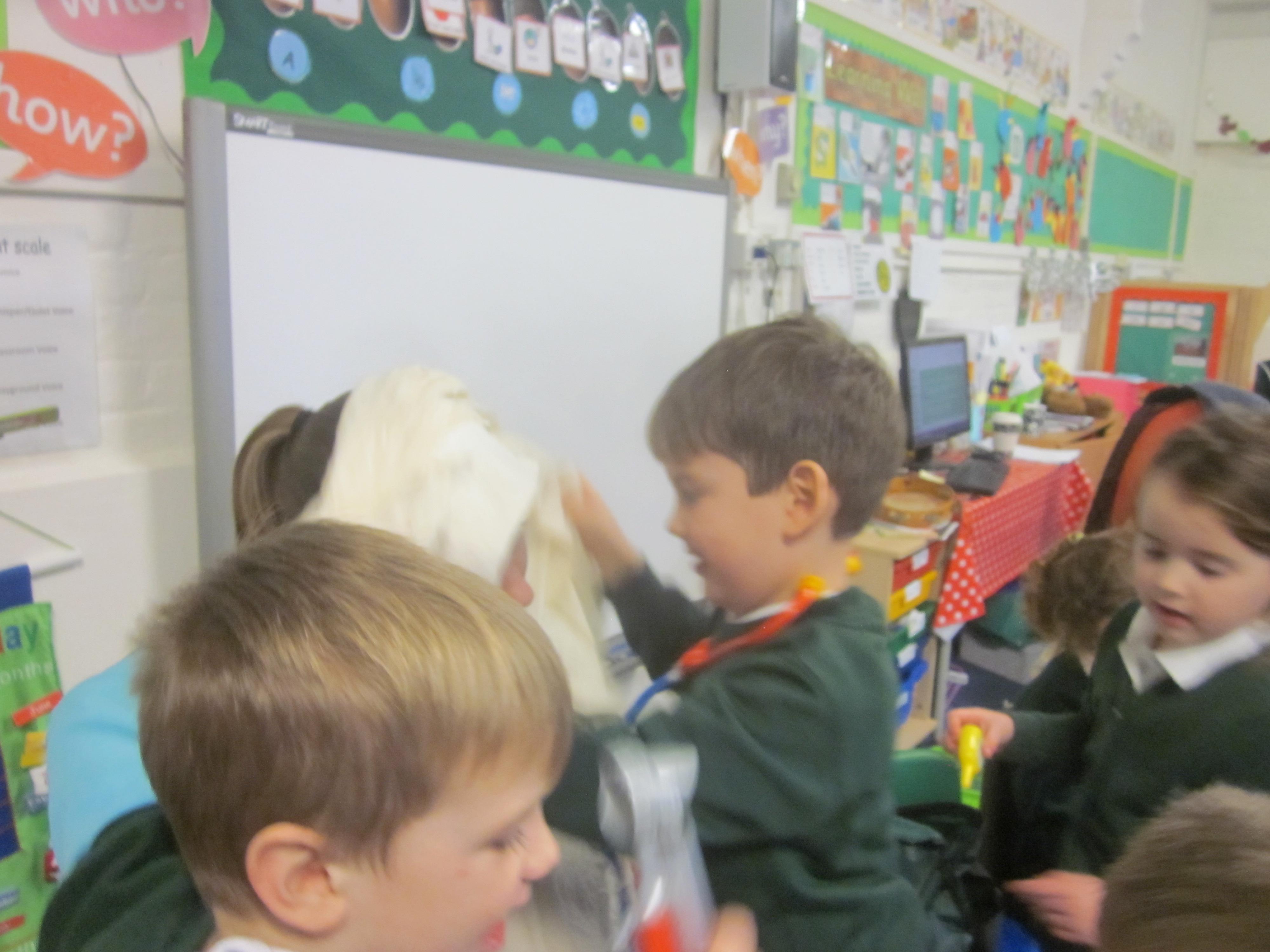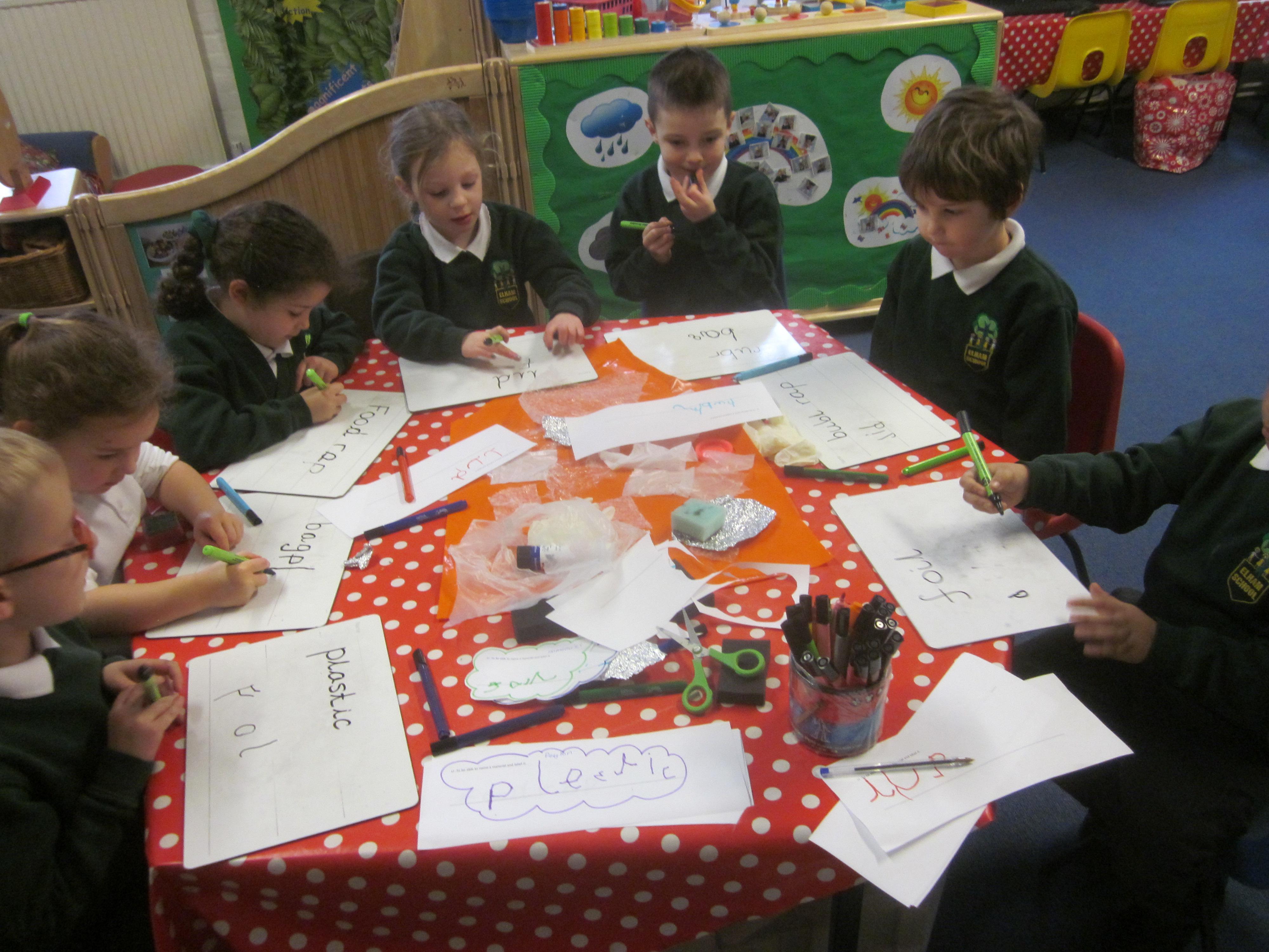 This week our learning has been about the people who help us in school. We used question words to think of our own questions to ask our site manager Mr Elgar all about his job. We thought that we would help him by making an apron. We tested tots of materials to see if they were waterproof.
