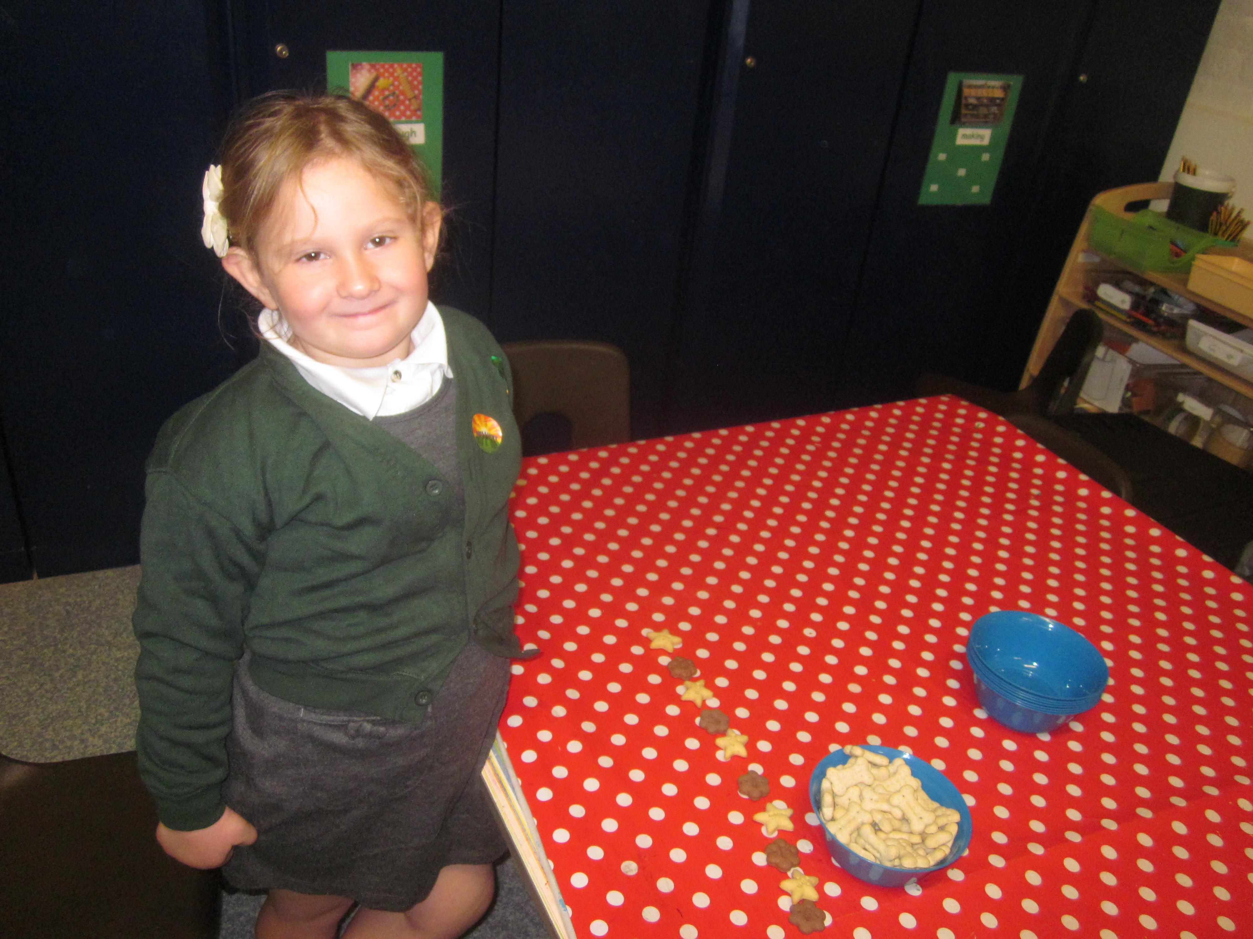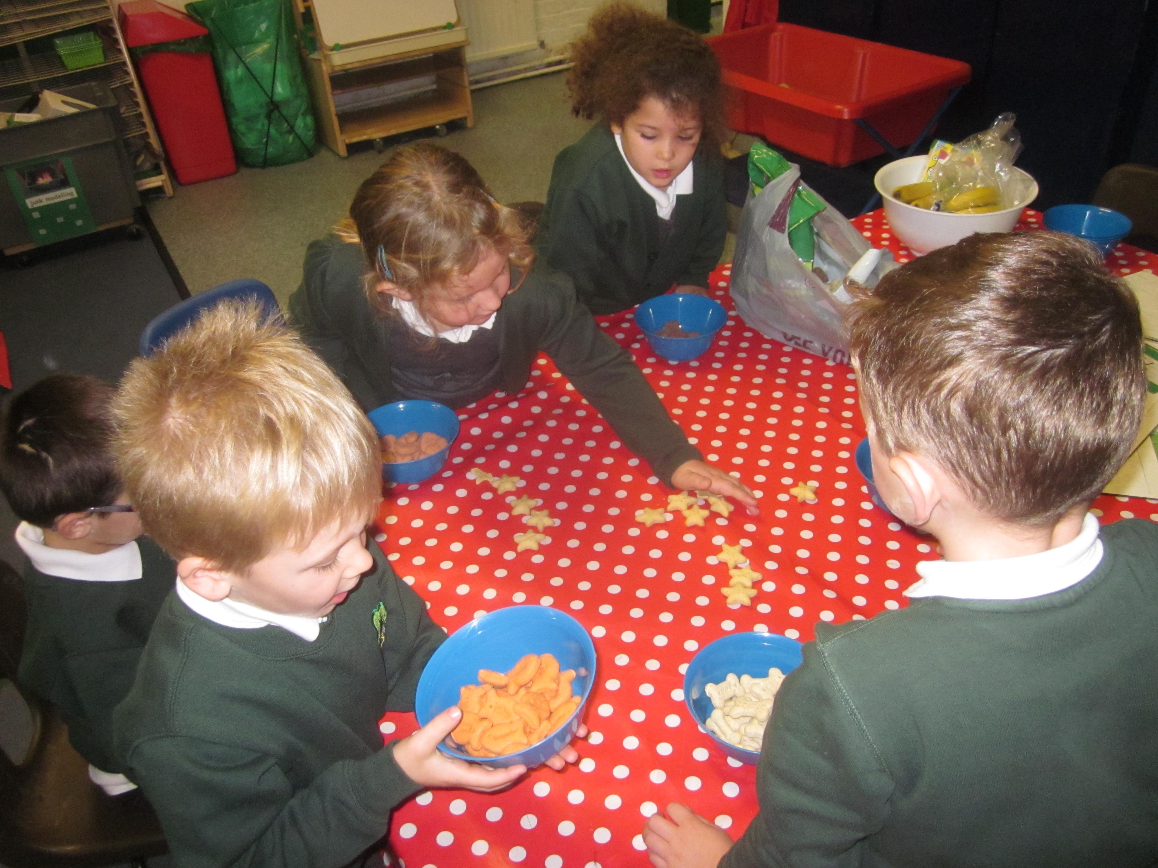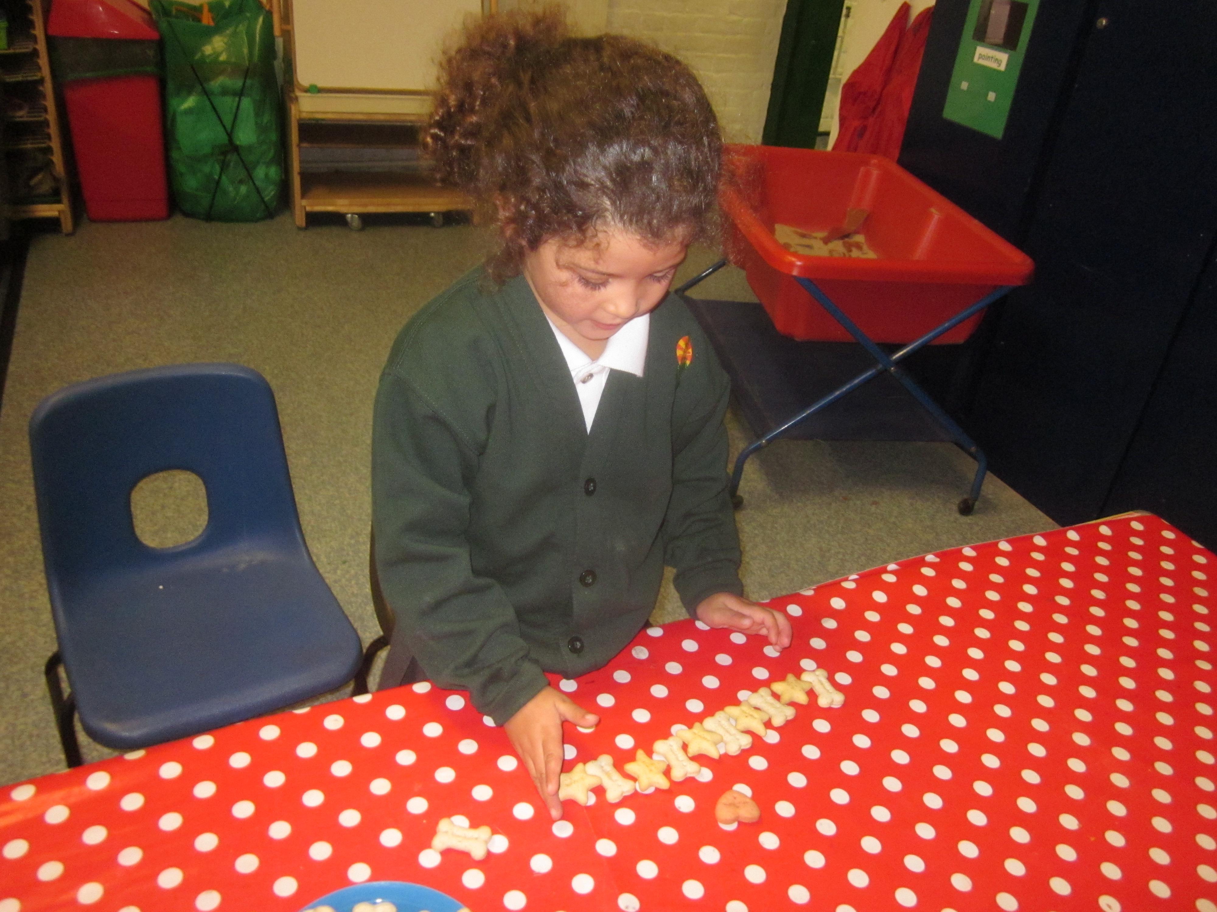 In our maths learning we sorted Floppies biscuits and made repeating patterns.