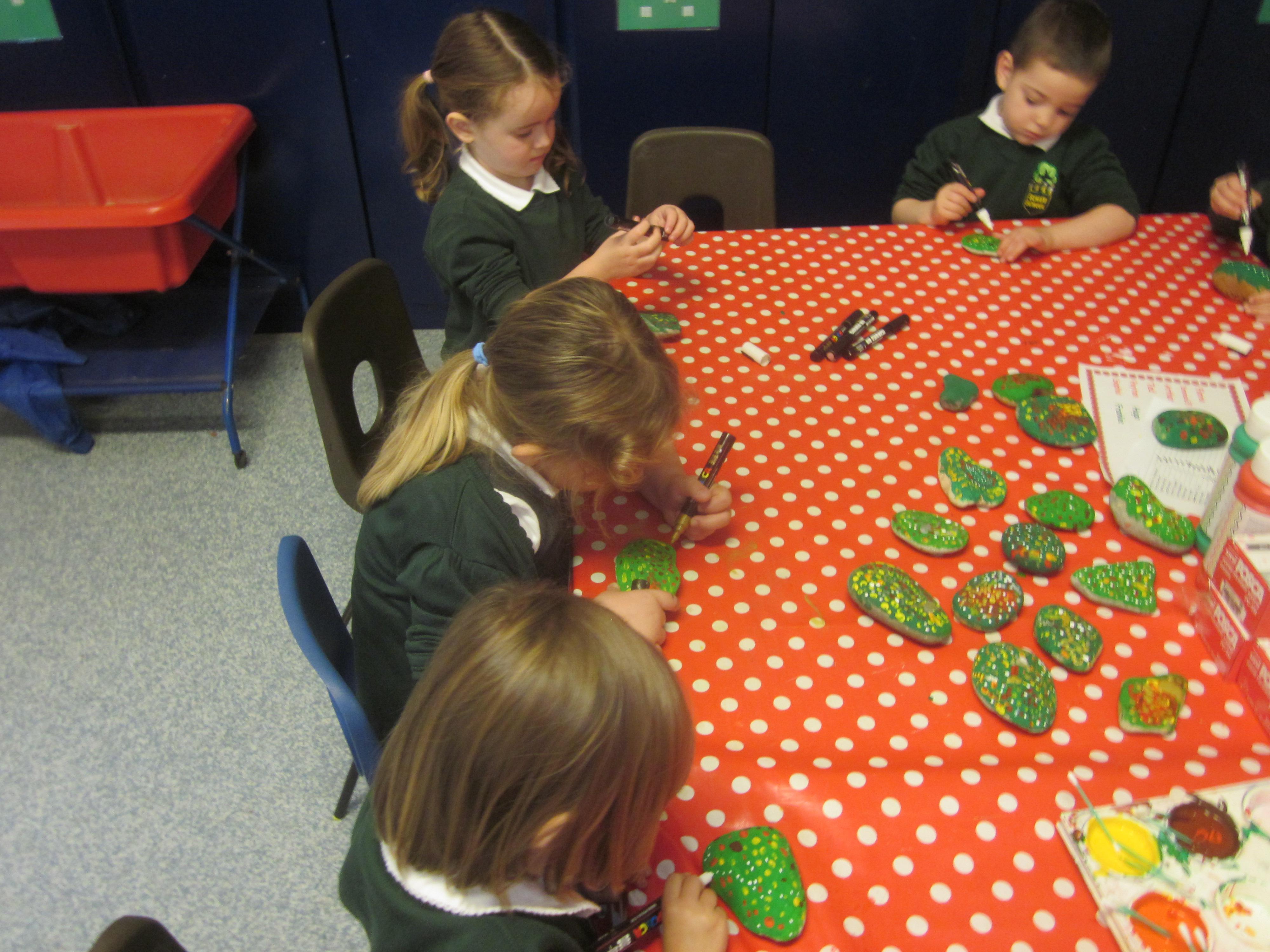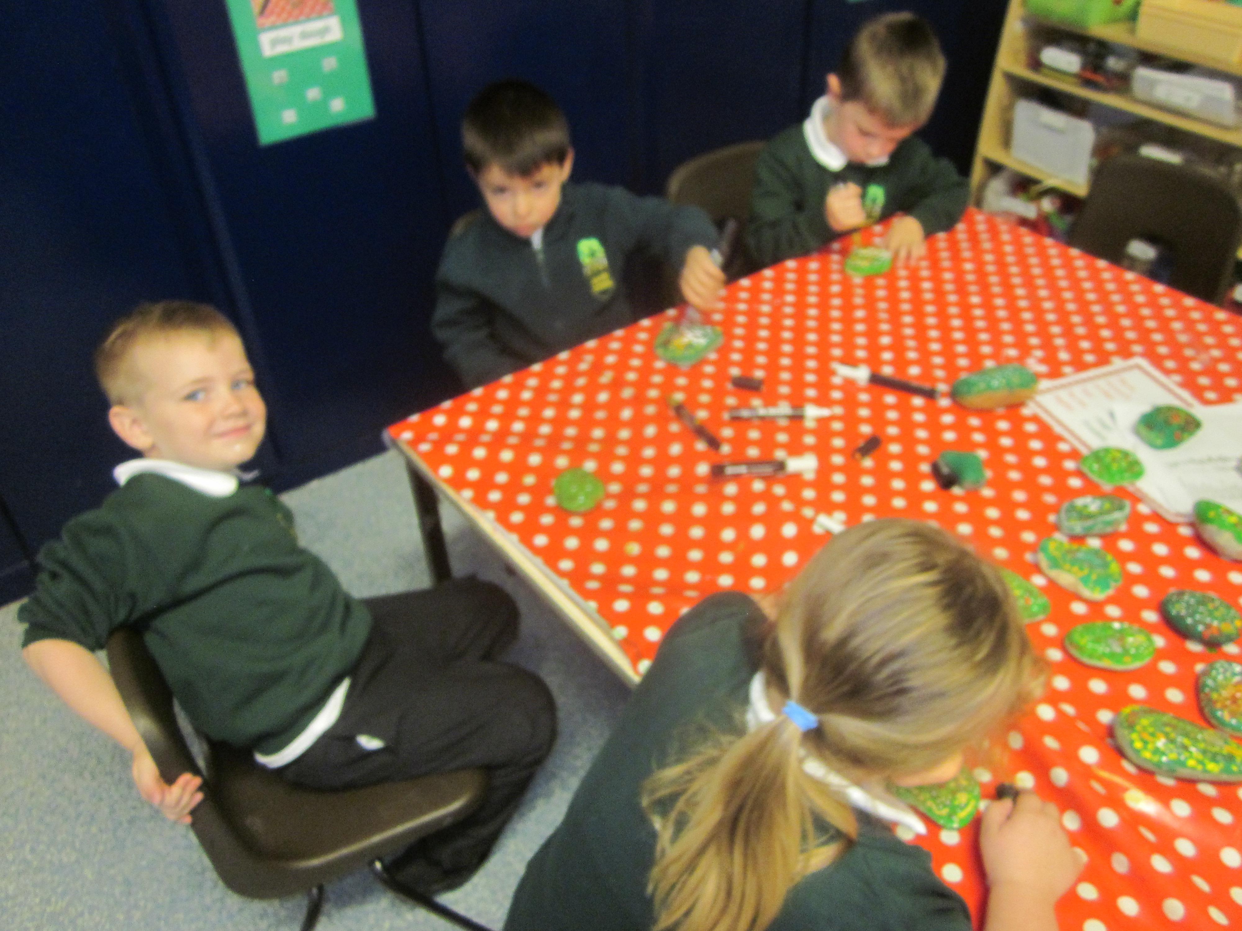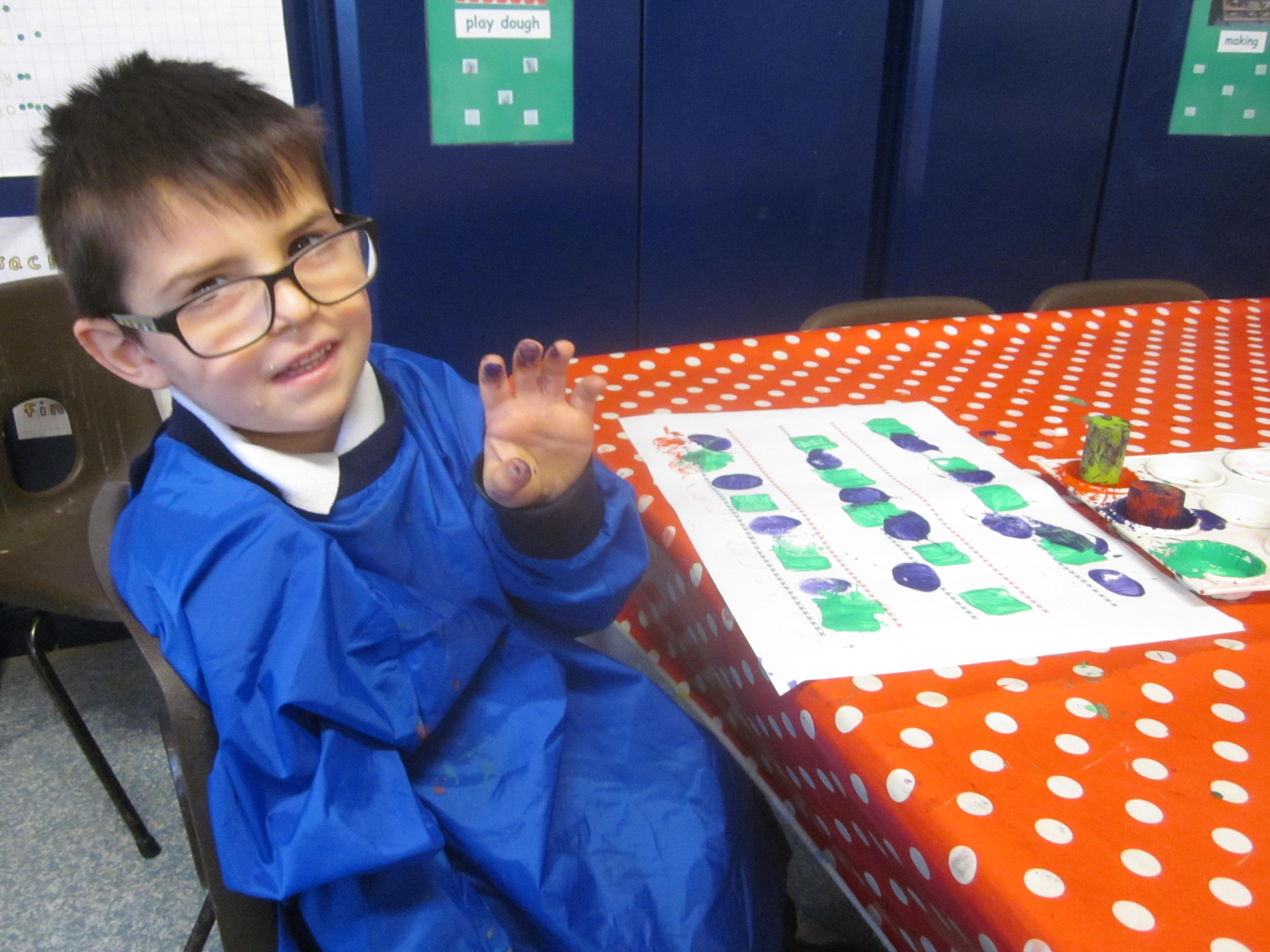 We've had another super busy week! I really don't know where the time goes! Our tadpoles have hatched and are growing big. We expect them to have legs soon. They certainly eat a lot. Our learning has been based around the life cycle of the frog this week with the children putting each stage in order and writing a caption. We have had fun making some bubble paintings, we all got a bit covered in paint, it was very important to only blow through the straw. I think we all remembered! We are really working on knowing our numbers to 20 now, some of us are confident beyond and some of us still need a bit of practice. We really liked finding 3D shapes in the environment. Its amazing where you can find a cube, cuboid, cylinder, sphere, cone, pyramid and triangular prism. Have a look around at home, its quite fun to go on a shape hunt.