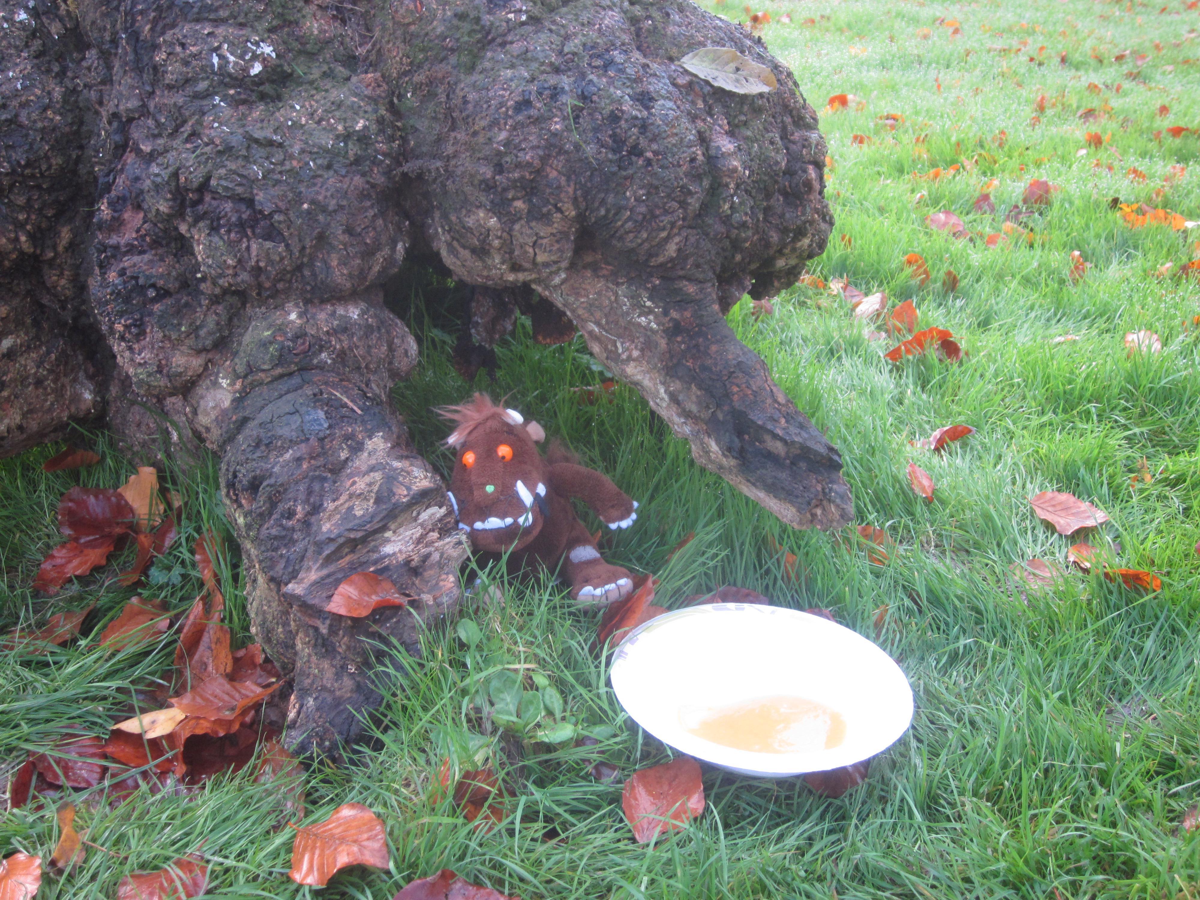 We took our soup outside to eat and left a bowl for the Gruffalo.