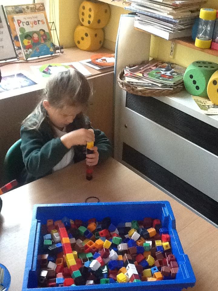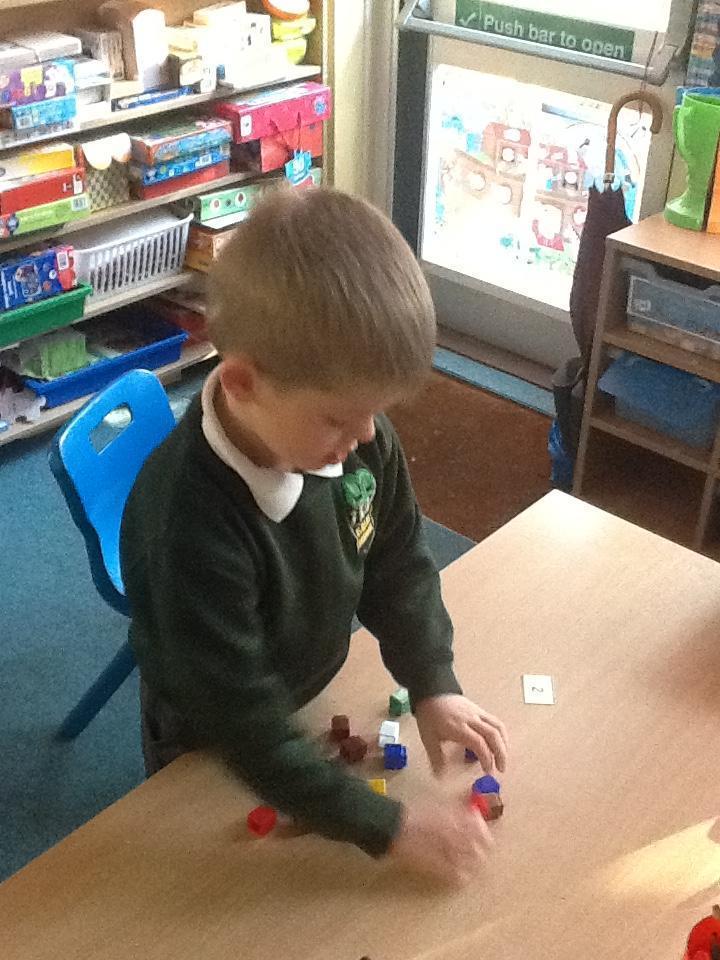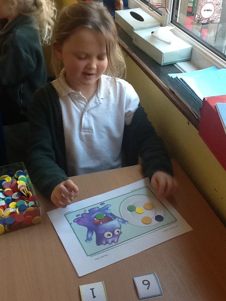 In Maths we have been using a tens frame to work out all the number bonds to 7. We have been learning to work systematically when working this out. We have also been ordering numbers.