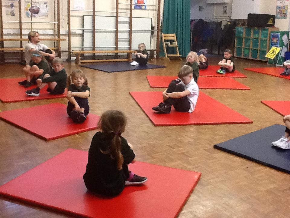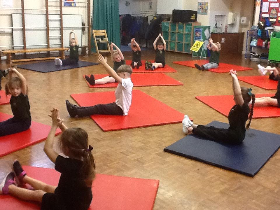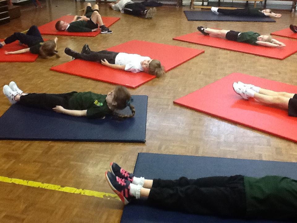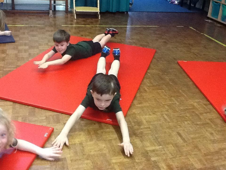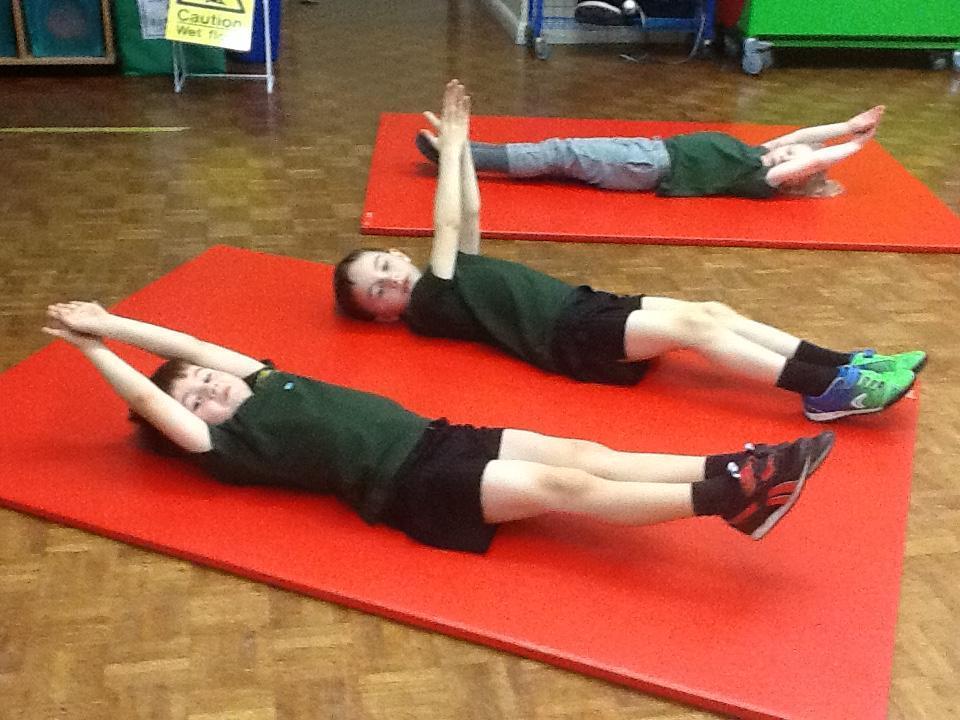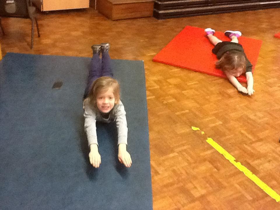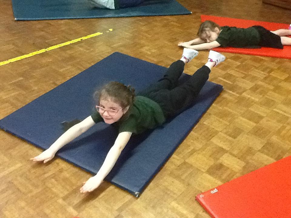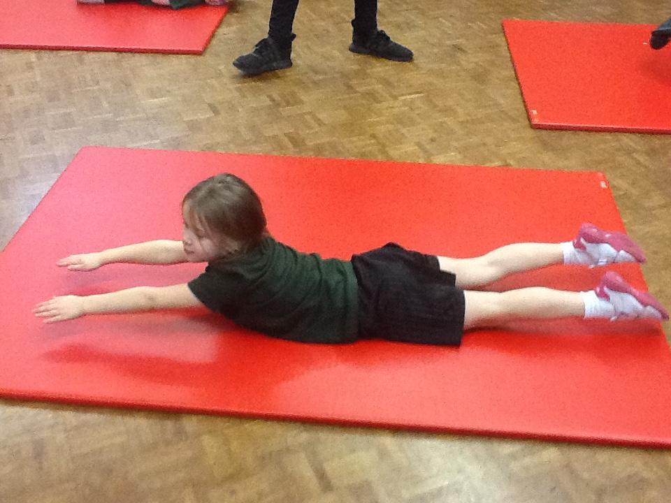 This term the children are doing gymnastics.  Today they learnt how to do various positions on the mat: straight, star, tuck, straddle and pike.  The instructors are looking for QUALITY and CONTROL when they do these.  They also tried different types of balance positions: sit, dish and arch.  Perhaps the children can identify the different positions to you from the photos below!