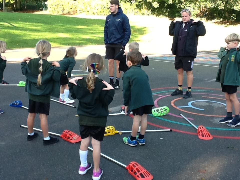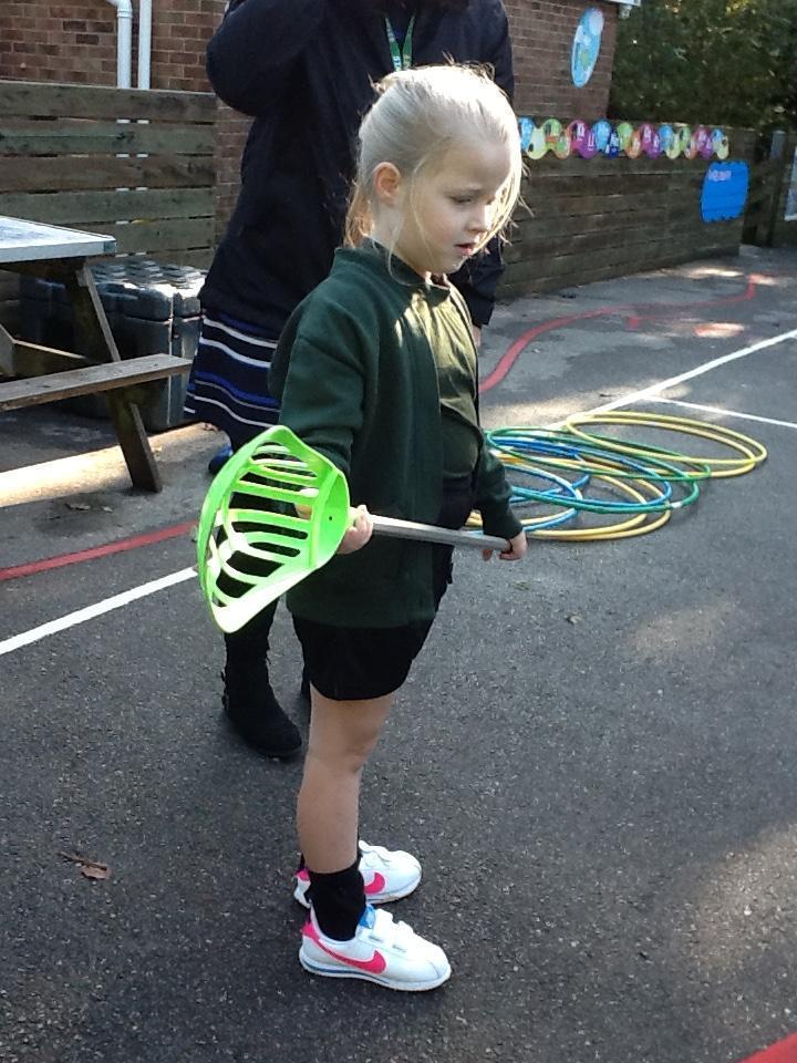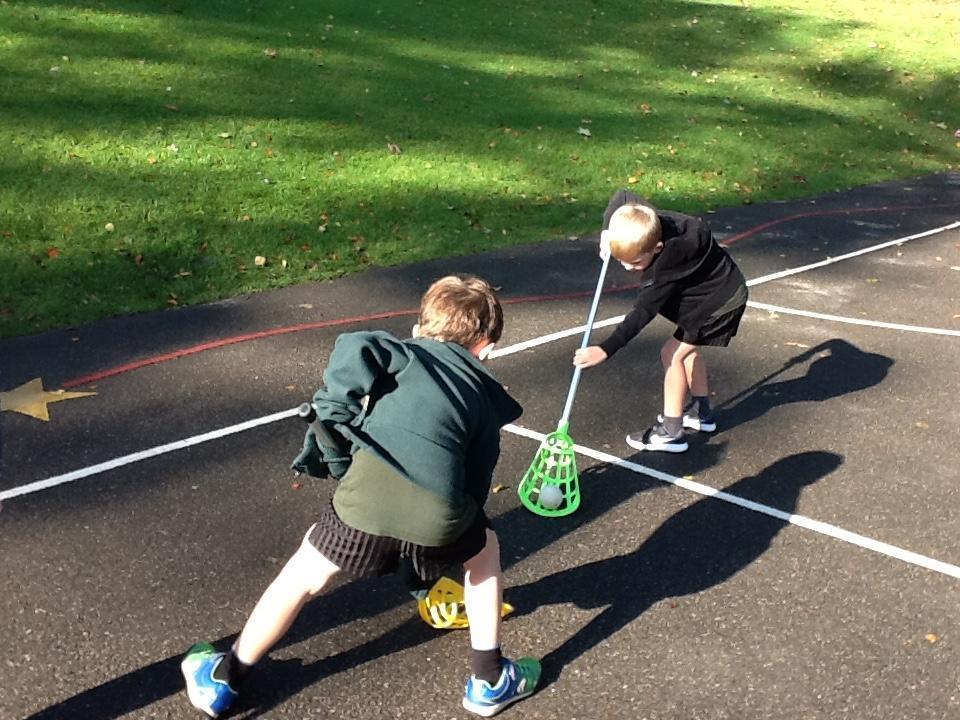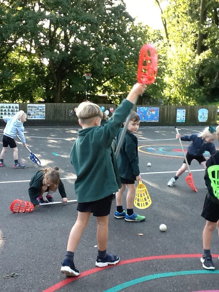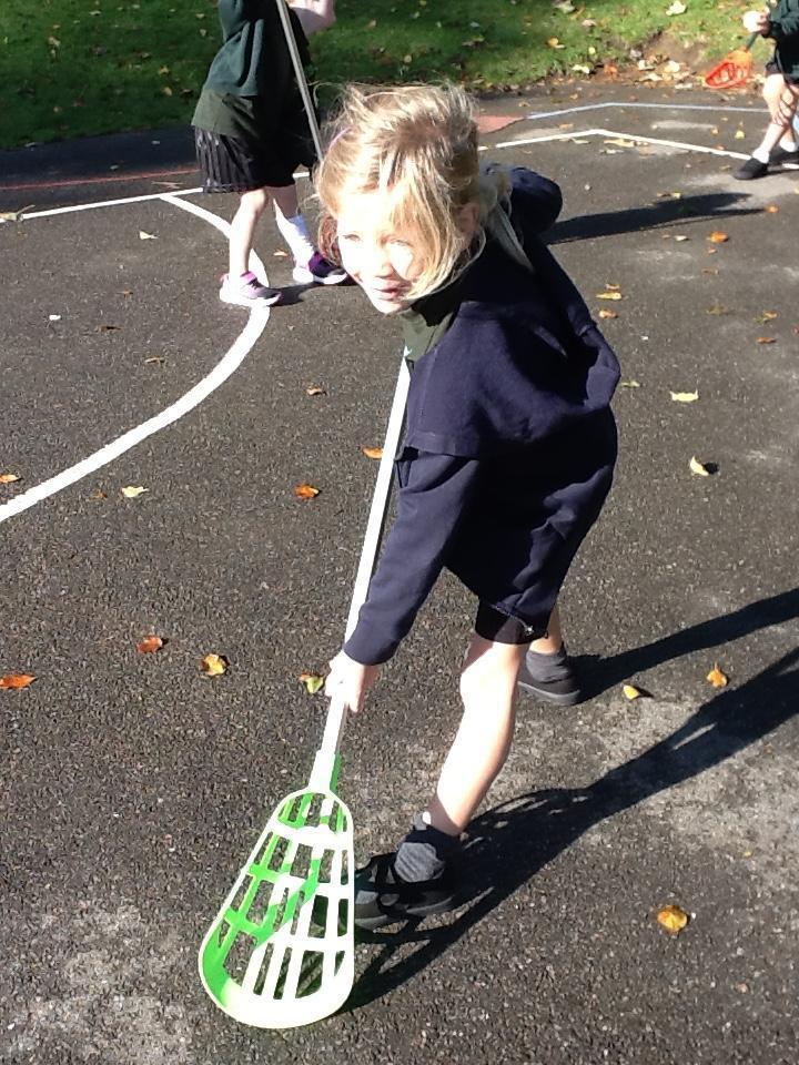 This week the children have been using lacrosse sticks in PE.  First of all they practised rolling and catching the ball, then they got their hands on the sticks!