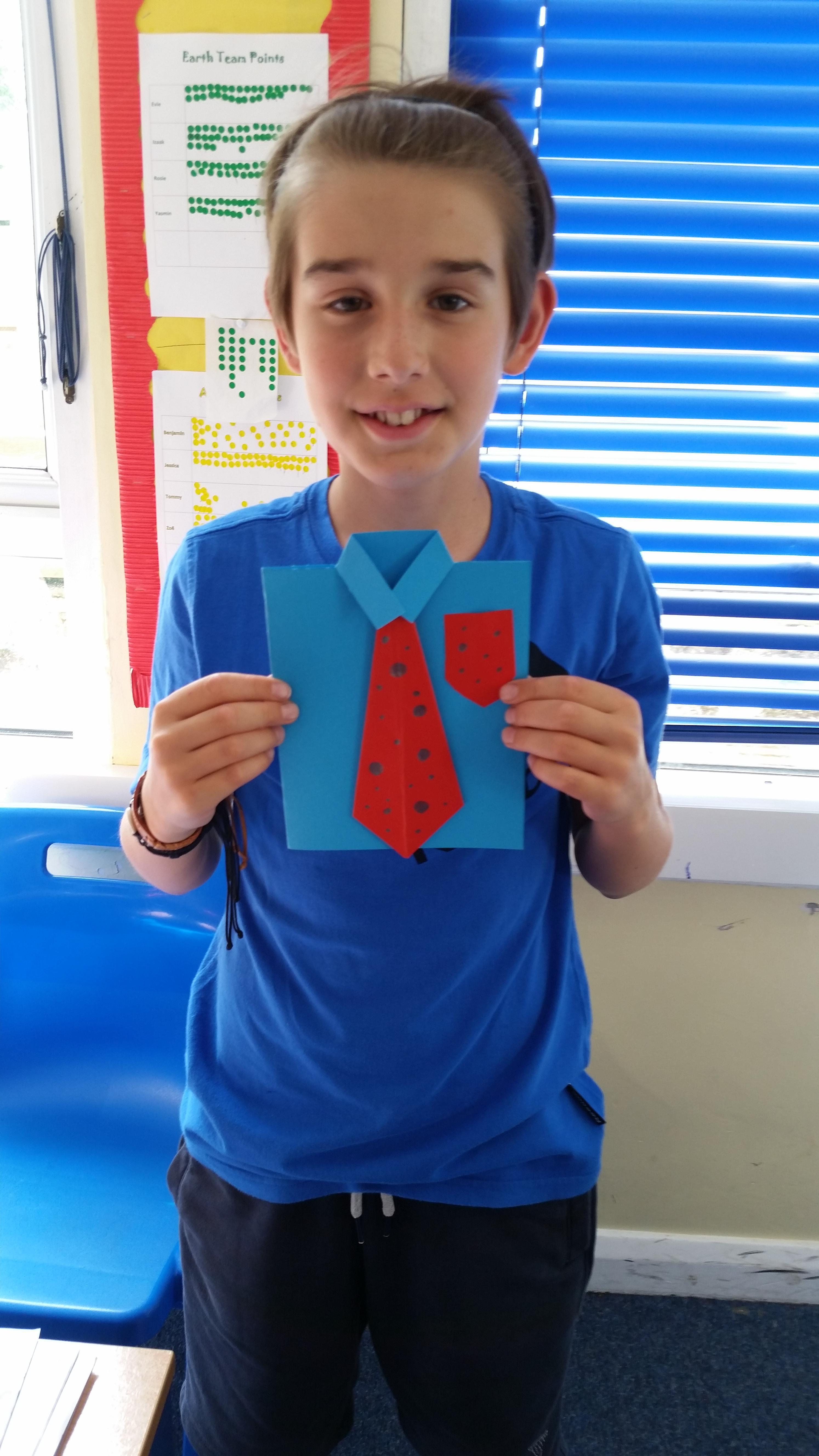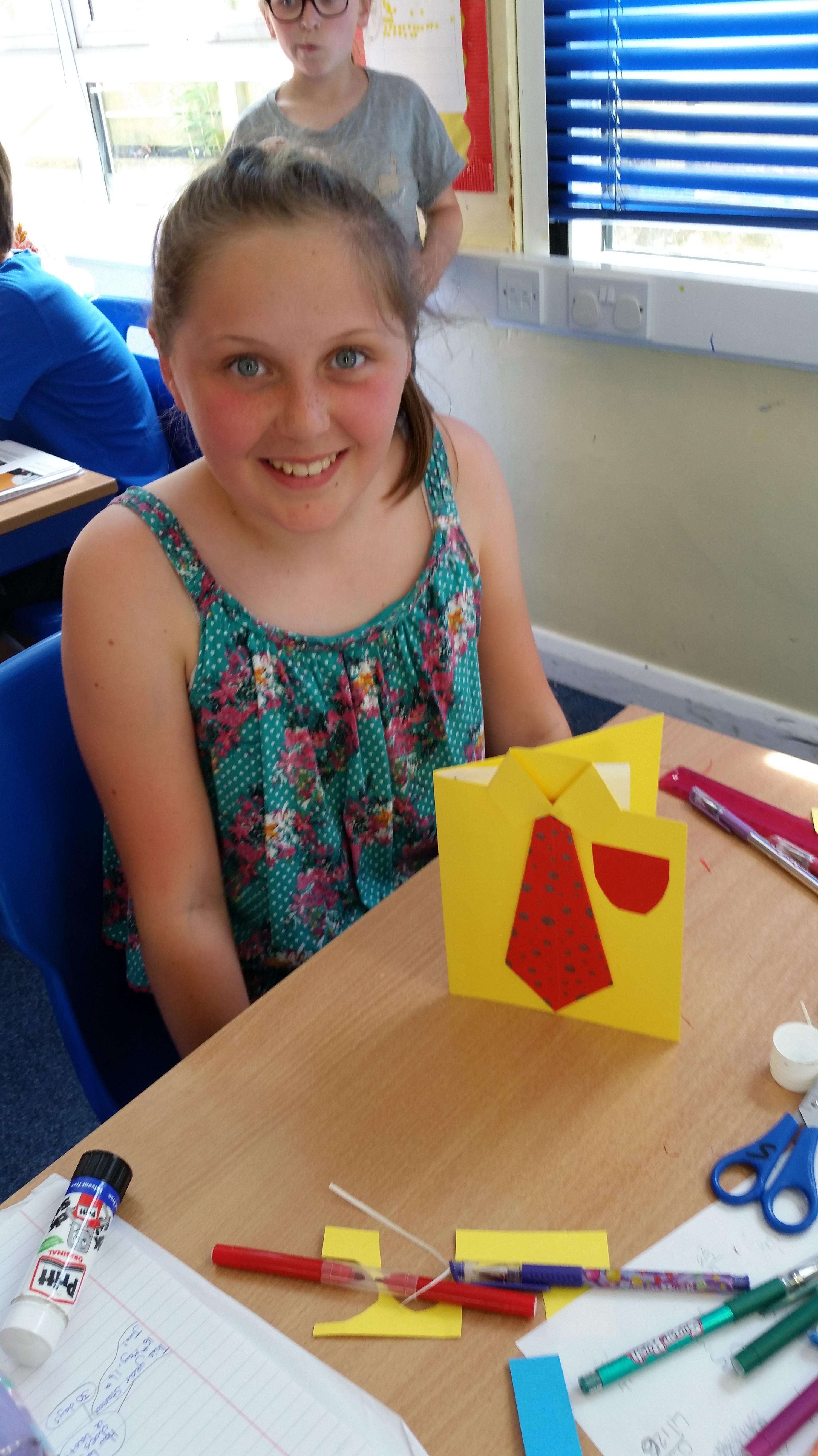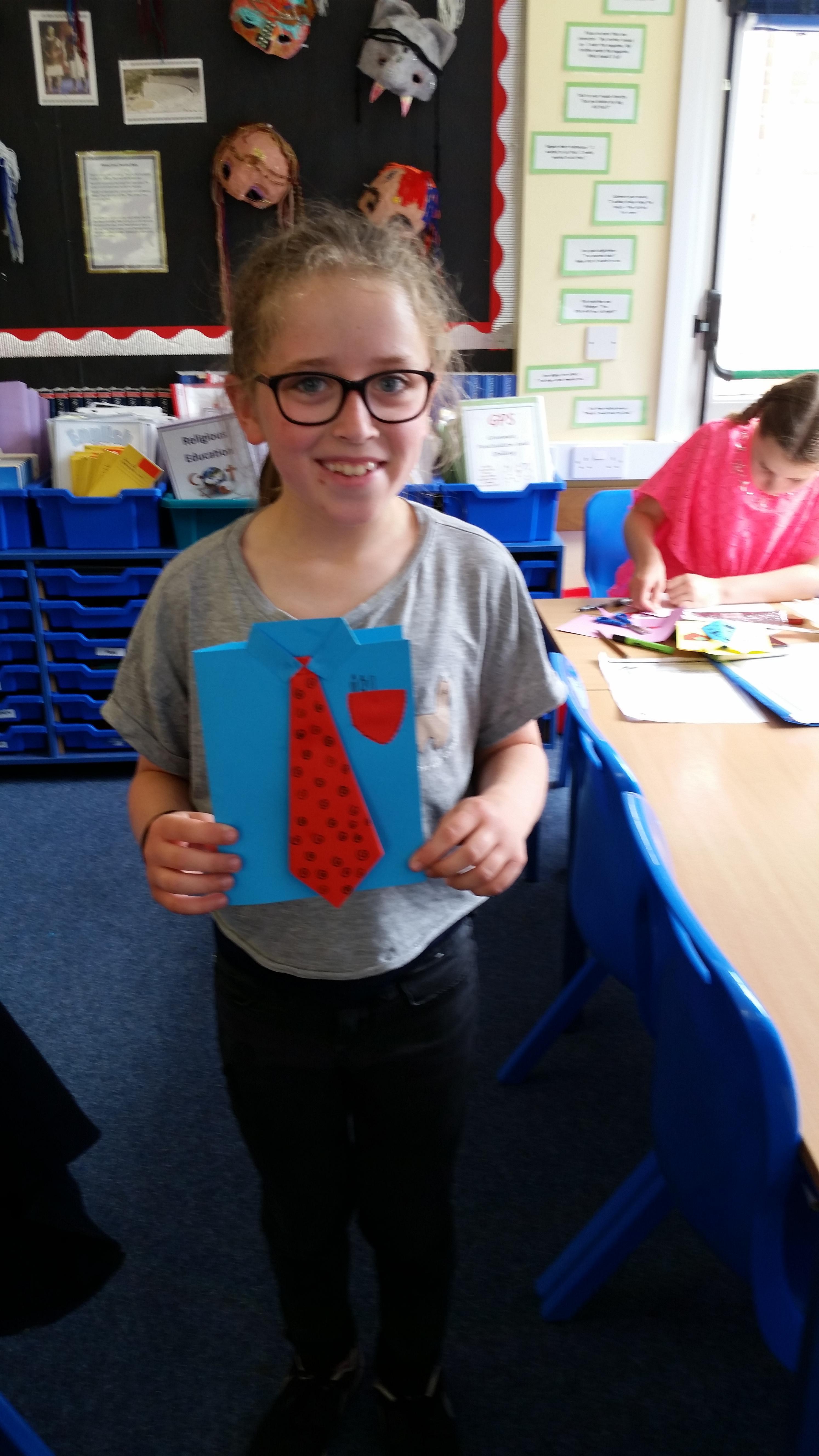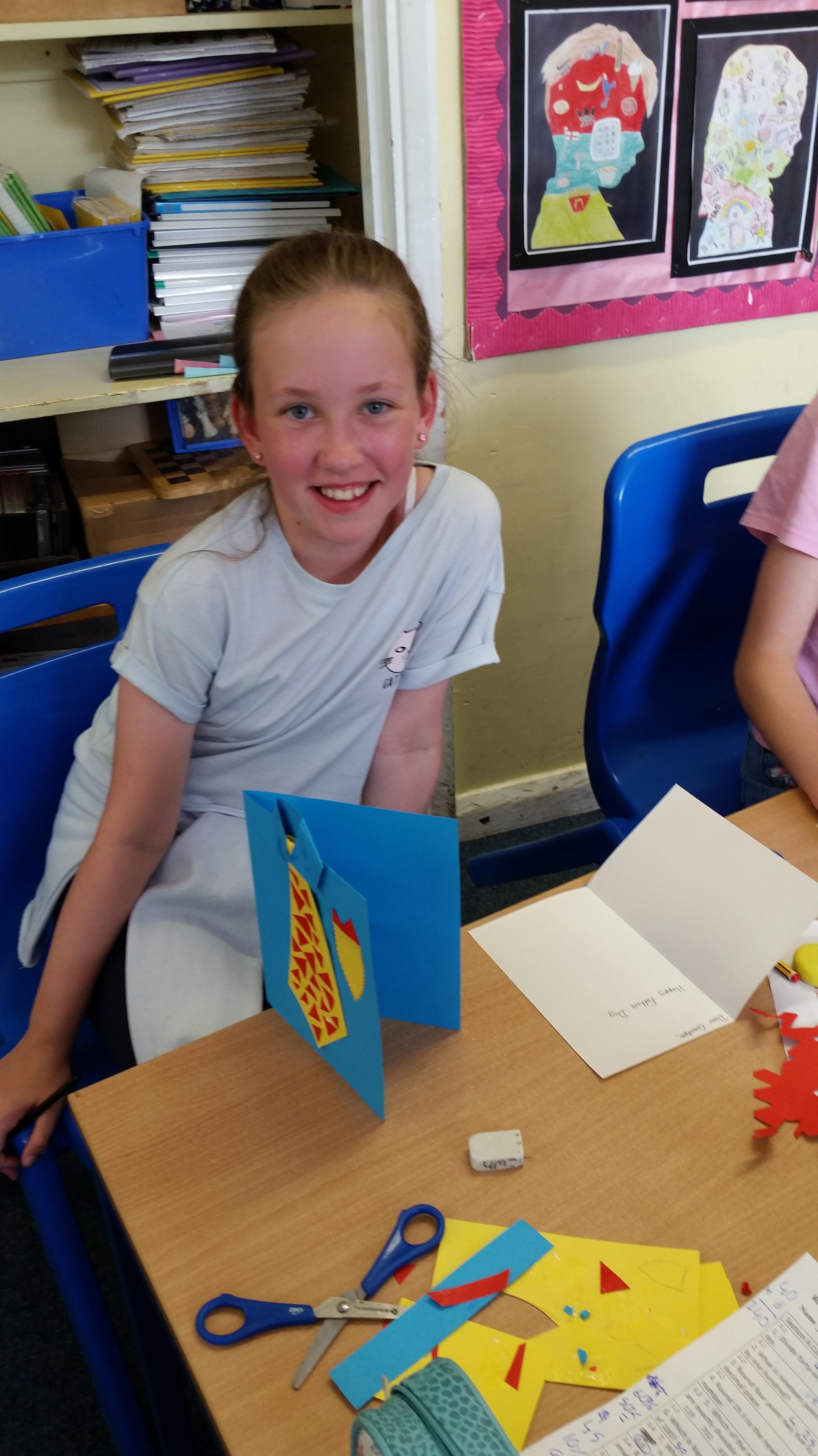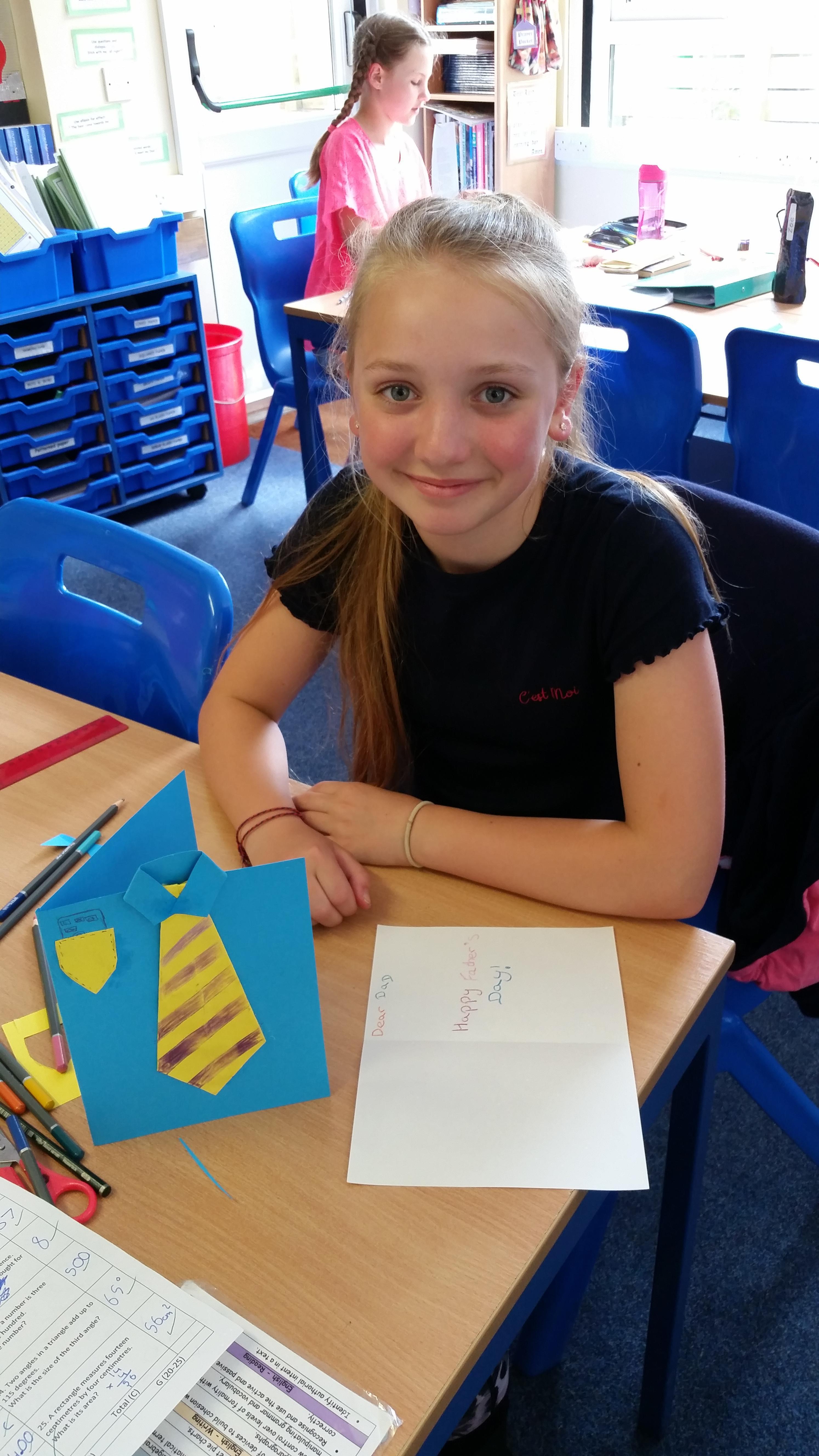 On Friday afternoon, we made some Father's Day cards for our dads. There are a few pictures of us working on them below. Although the design was quite basic, we all found ways of personalising them just for our dads.
