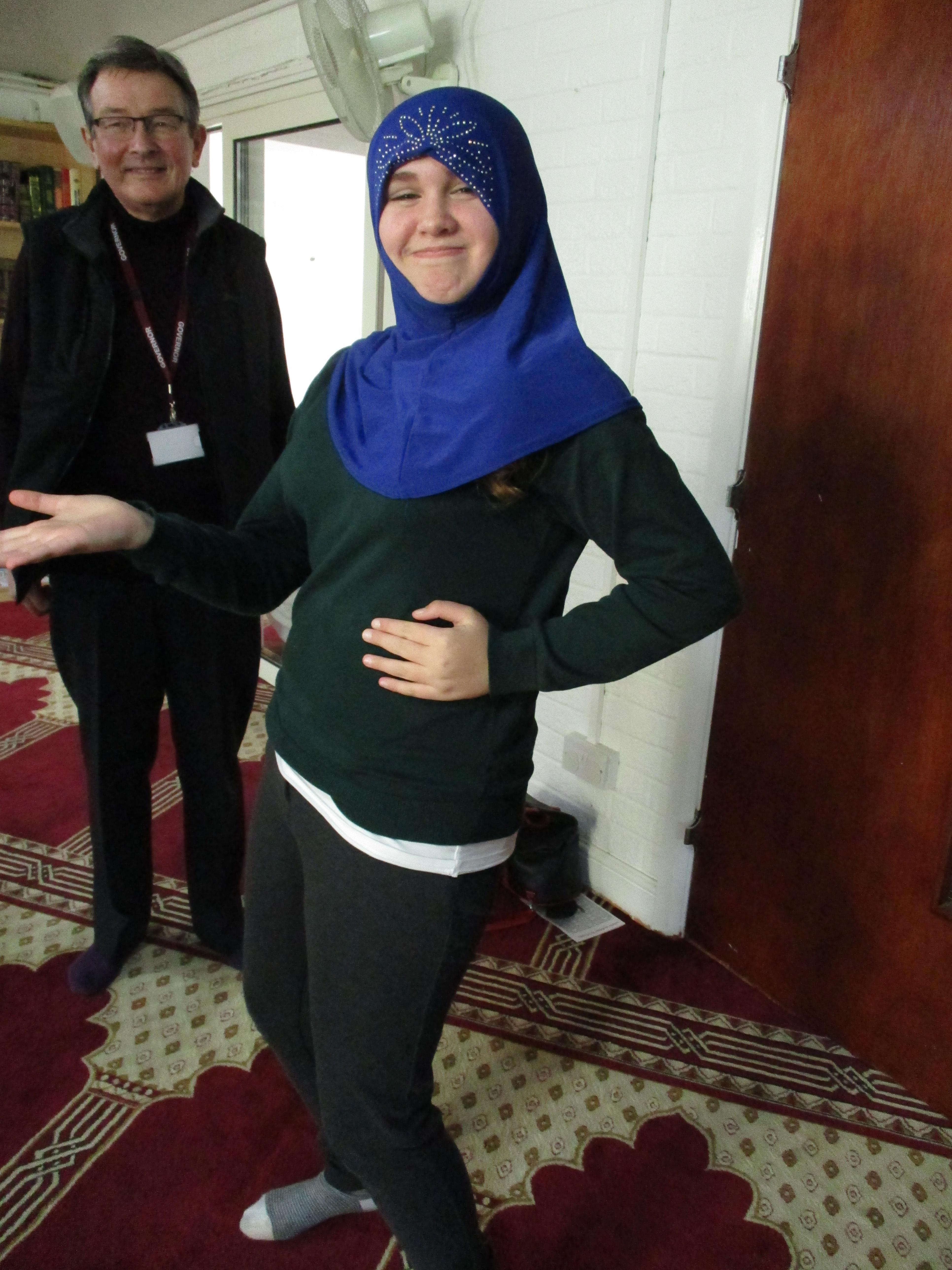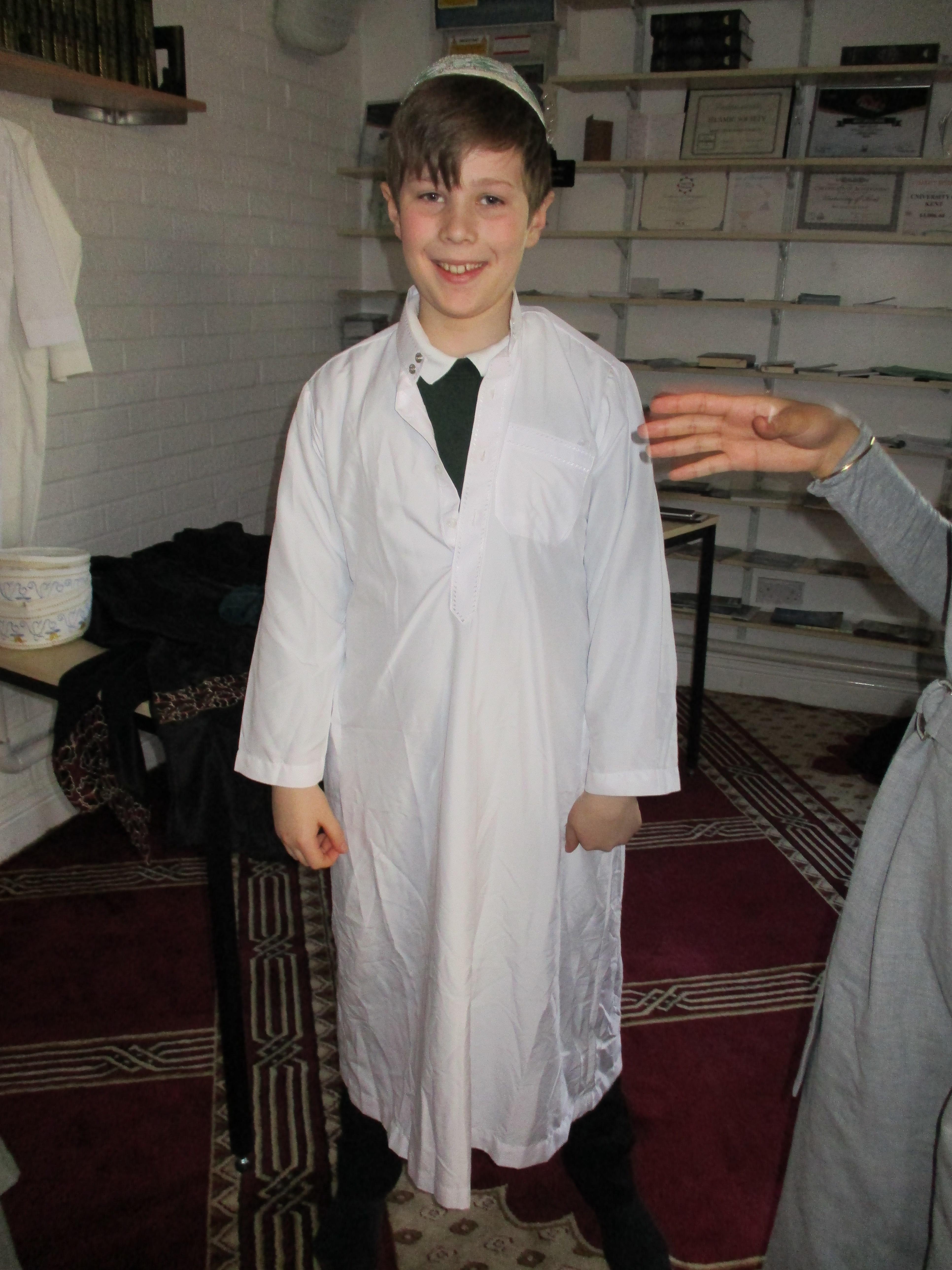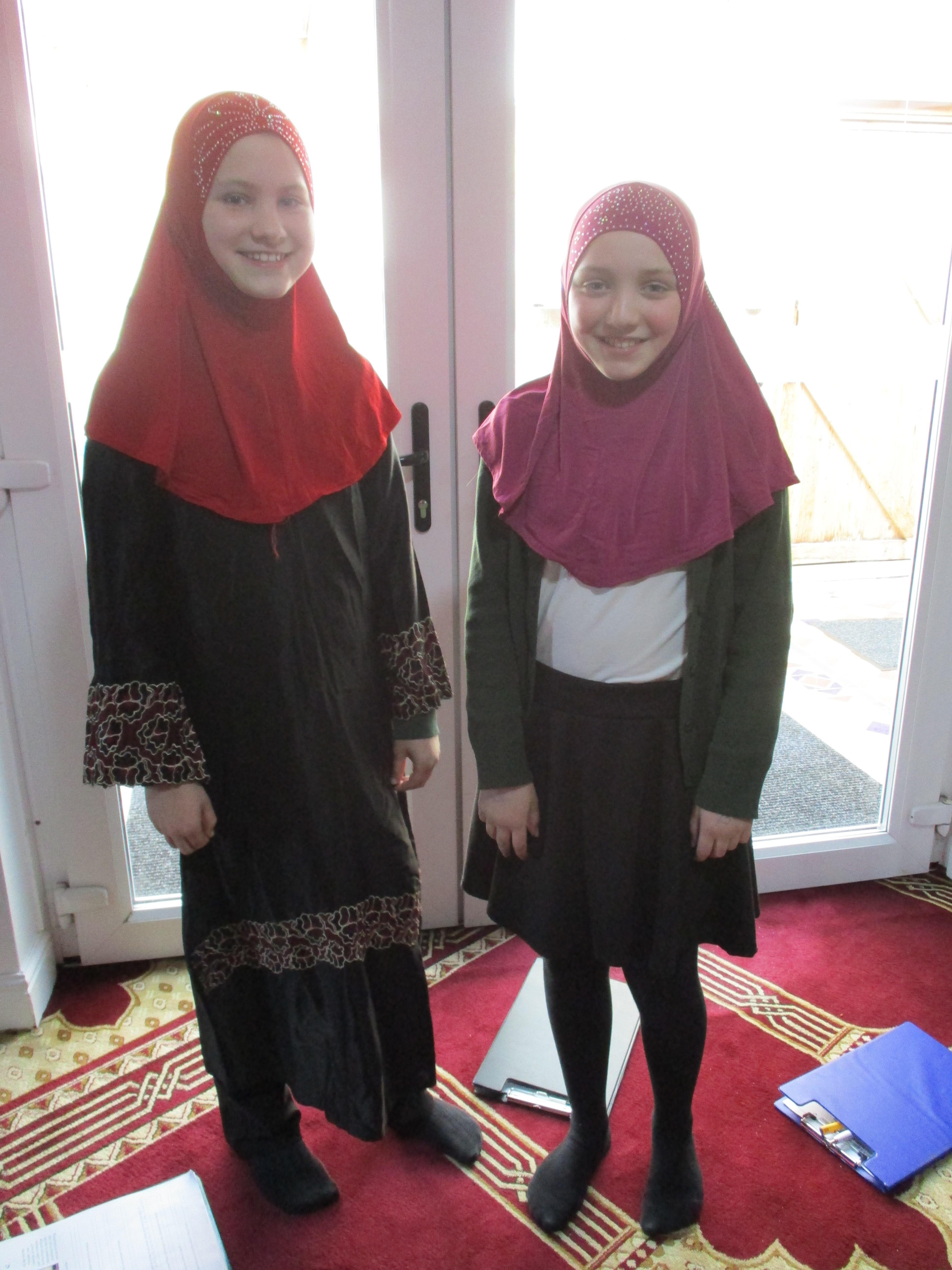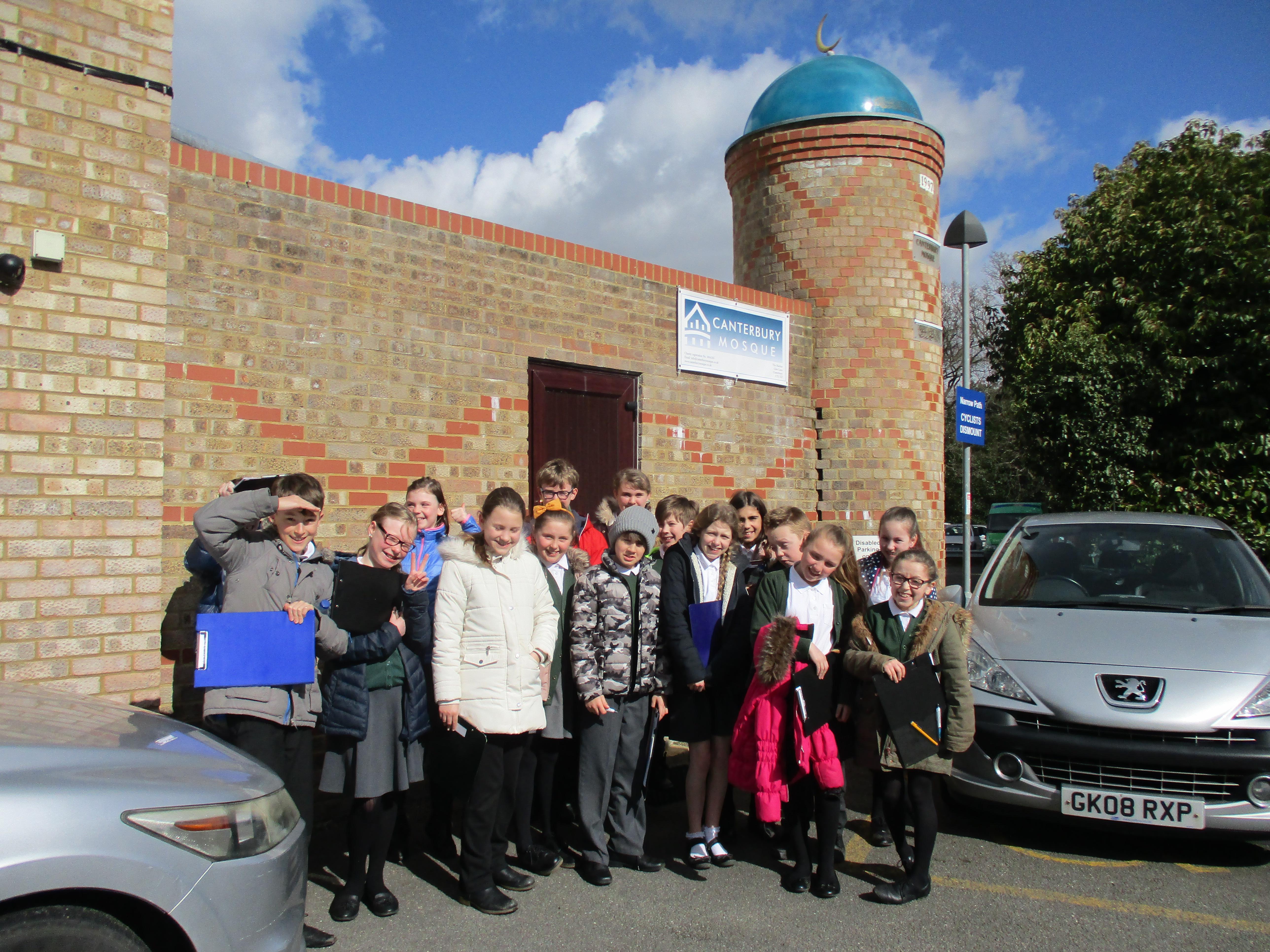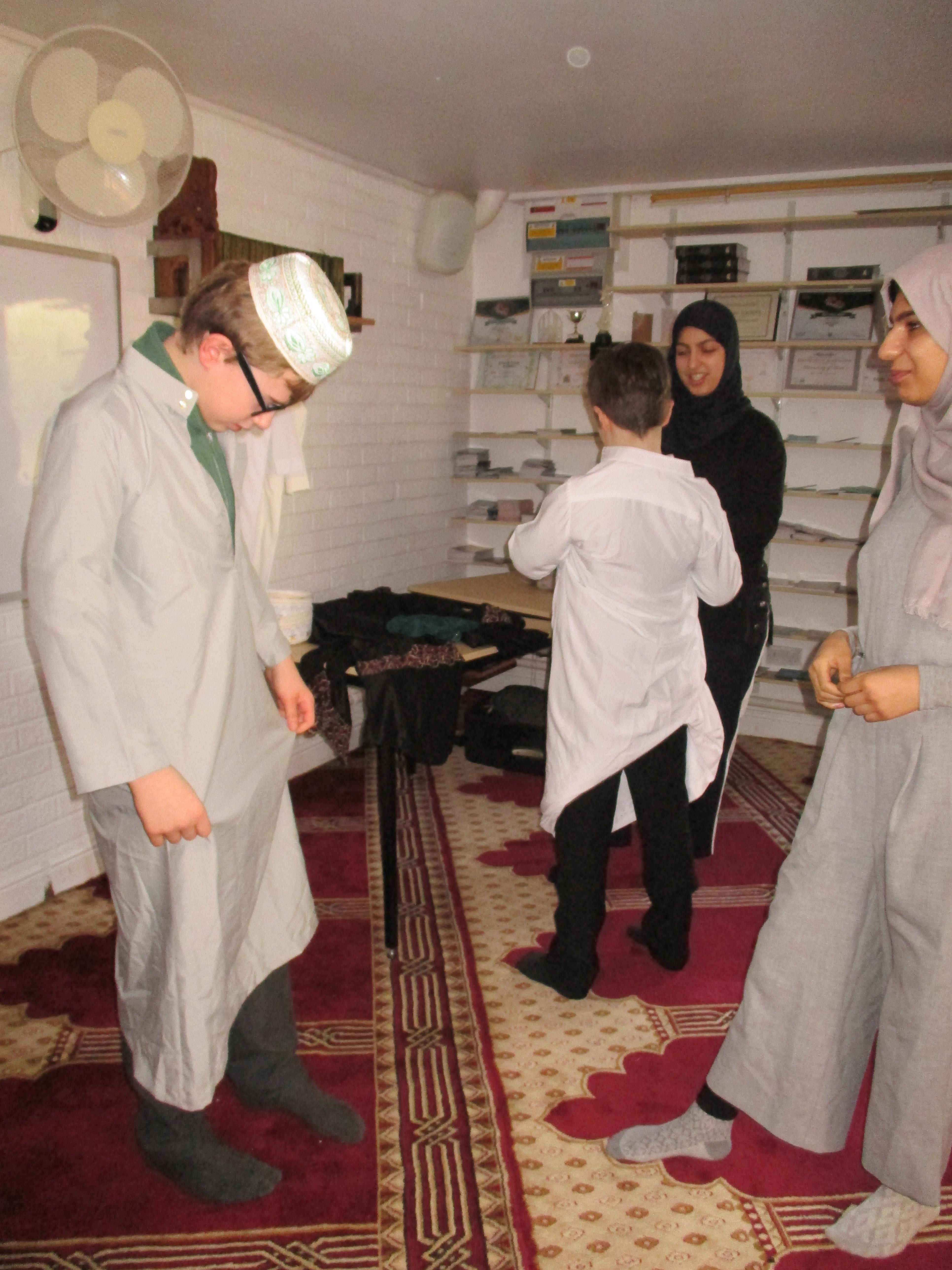 We enjoyed a really interesting trip to Canterbury mosque on Thursday morning, where we were greeted by Imam Ishan Khan and some other members of Canterbury's Muslim community. We learnt about the features of the mosque and what happens there and were taught how to write out names in Arabic (the language in which the Qur'an, the holy book of Islam, is written). We were also shown a fascinating film about Islamic inventions. Did you know that many scientific inventions were first suggested by Islamic scholars during the middle ages, including the camera, the clock, airplanes and the engine. After that, some of the ladies helped us to dress up in typical Islamic dress and they explained that it helps keep them cool as many Islamic countries are very hot. Before we returned to school, we were treated to drinks, biscuits and dates and had a chance to ask the Imam any questions we still had. We would like to pass on our thanks to Mrs Goldup, Ms Wilson and Mr Mowl for taking us to the mosque and bringing us back to school in time for lunch!