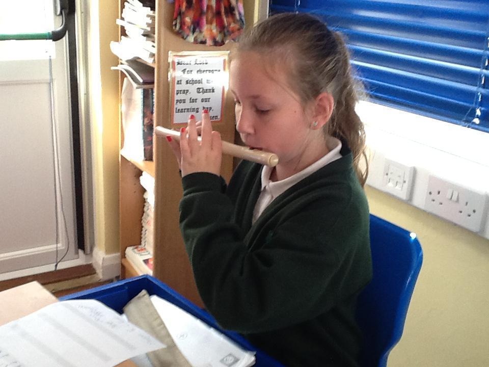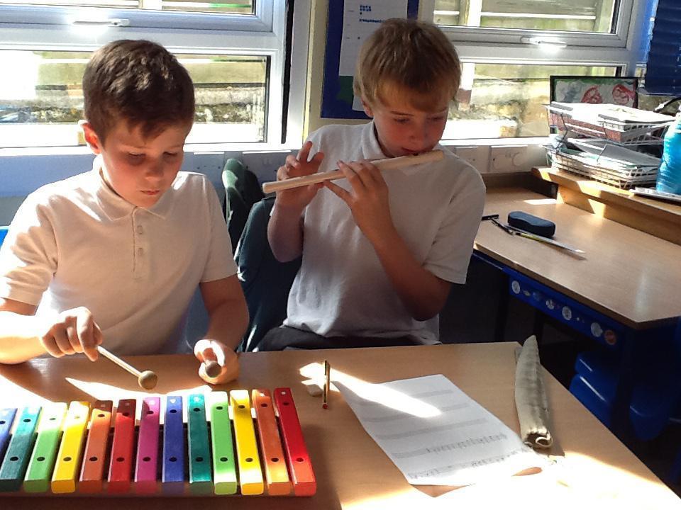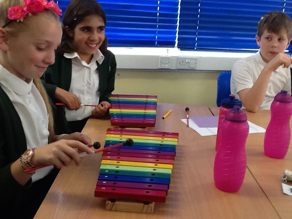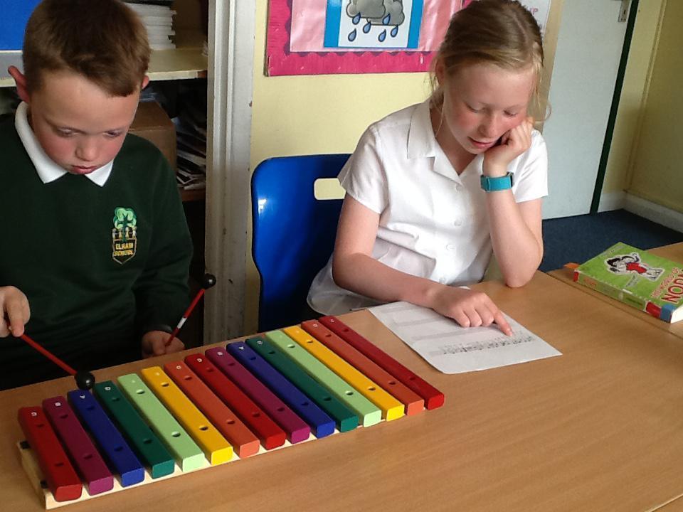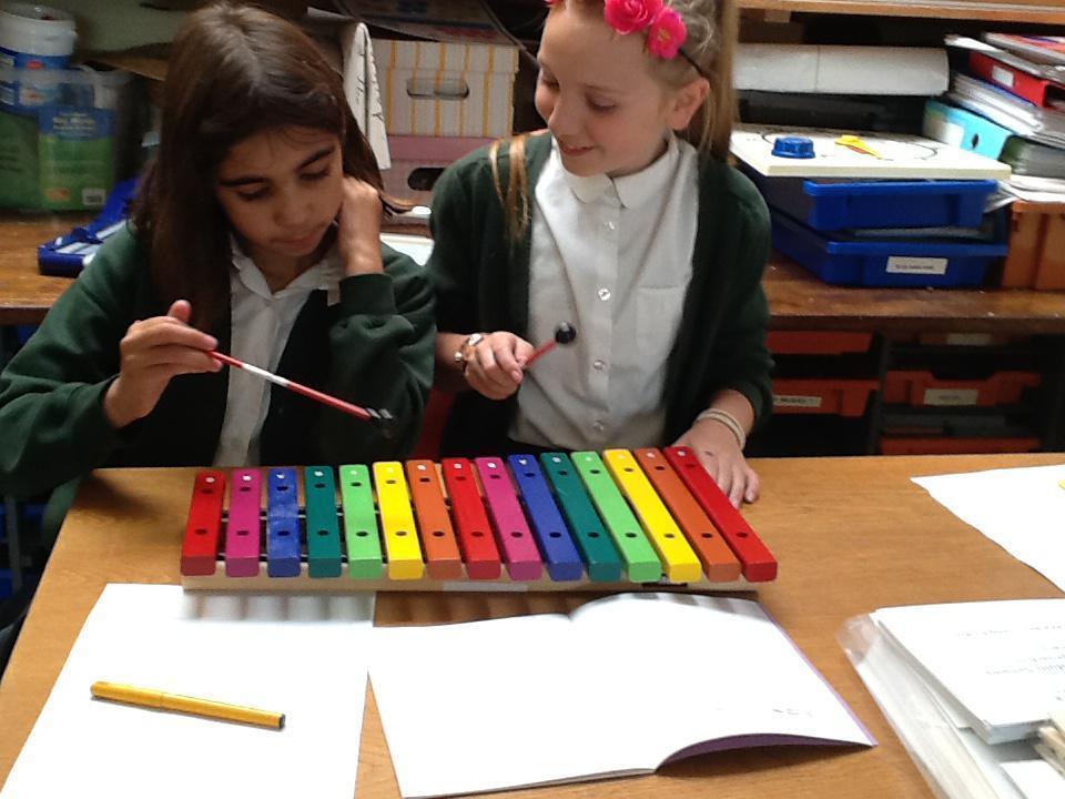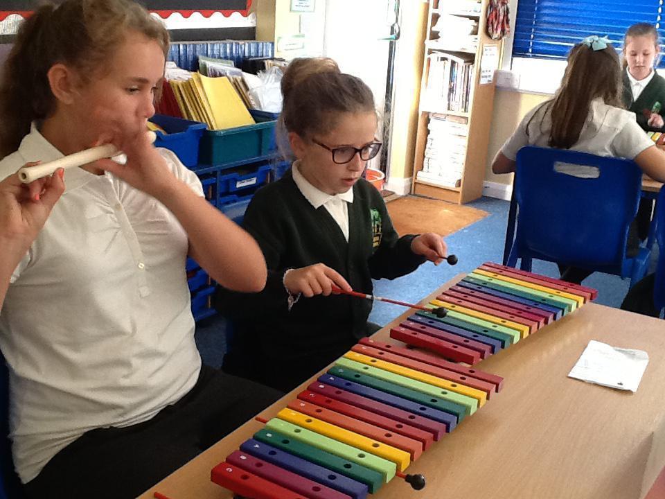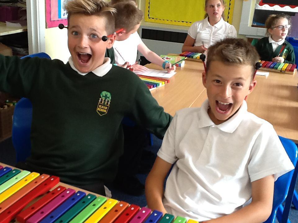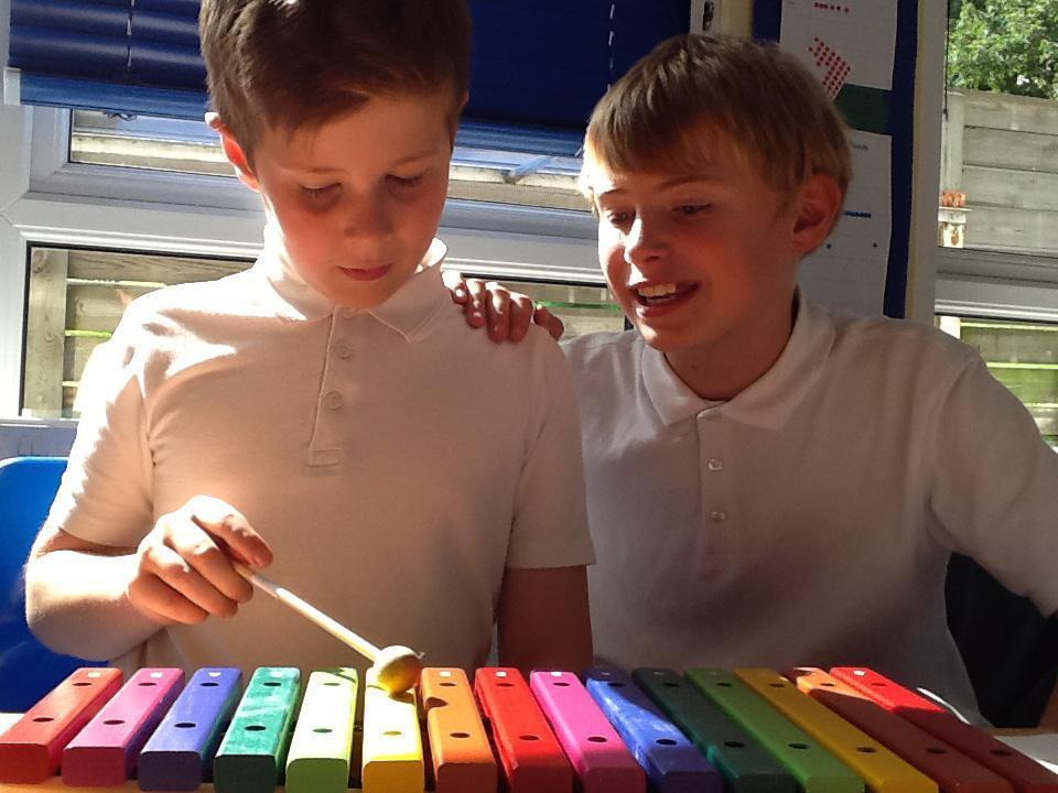 A really nice surprise this week was when Mrs Hickman (our music teacher) turned up with brand new Glockenspiels for us to play. We were very keen to start playing, but had to wait patiently until Mrs Hickman had explained what we needed to do first. We worked in pairs to compose our own music, which was great fun. Some pictures of us doing this can be seen below.