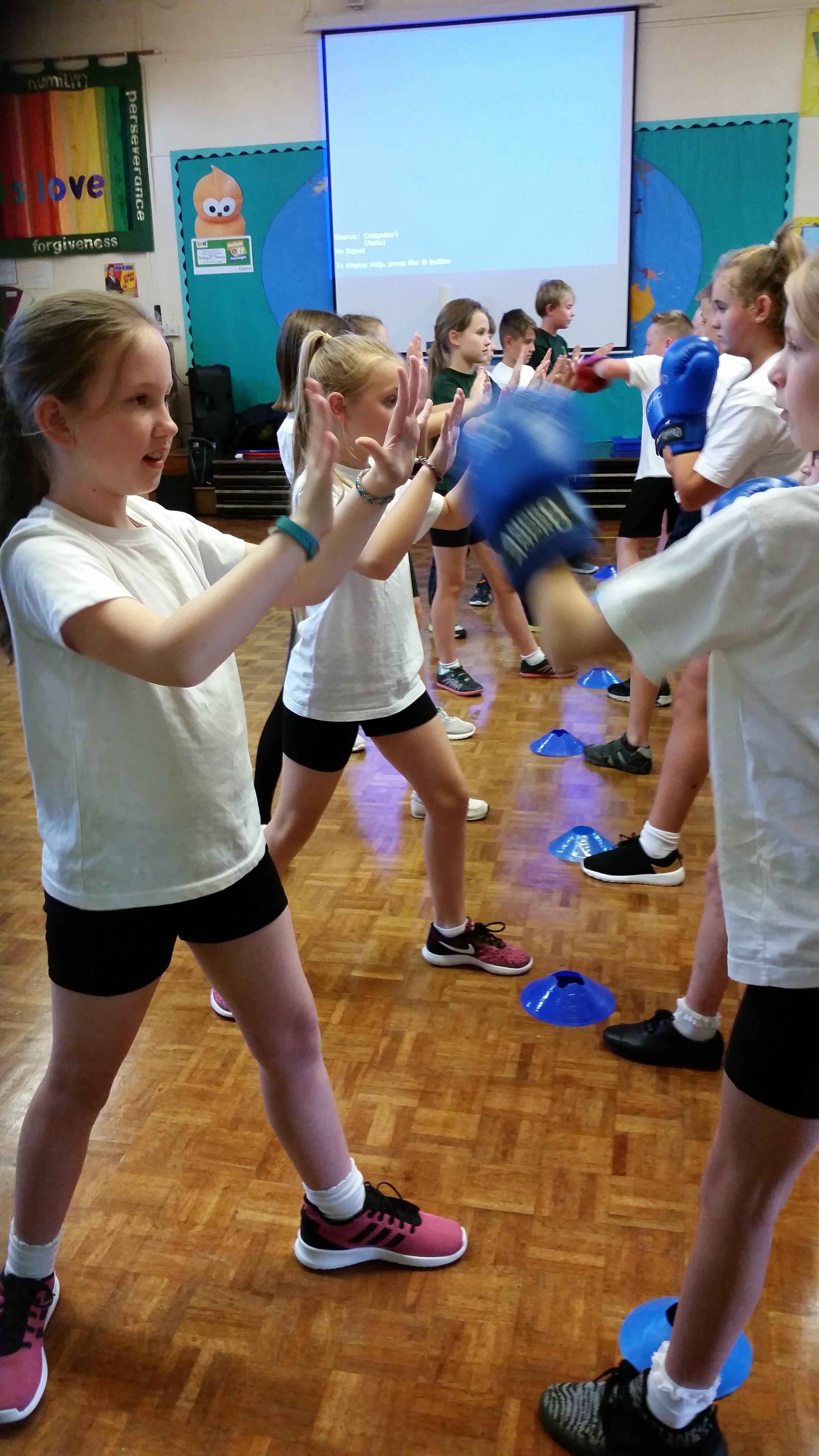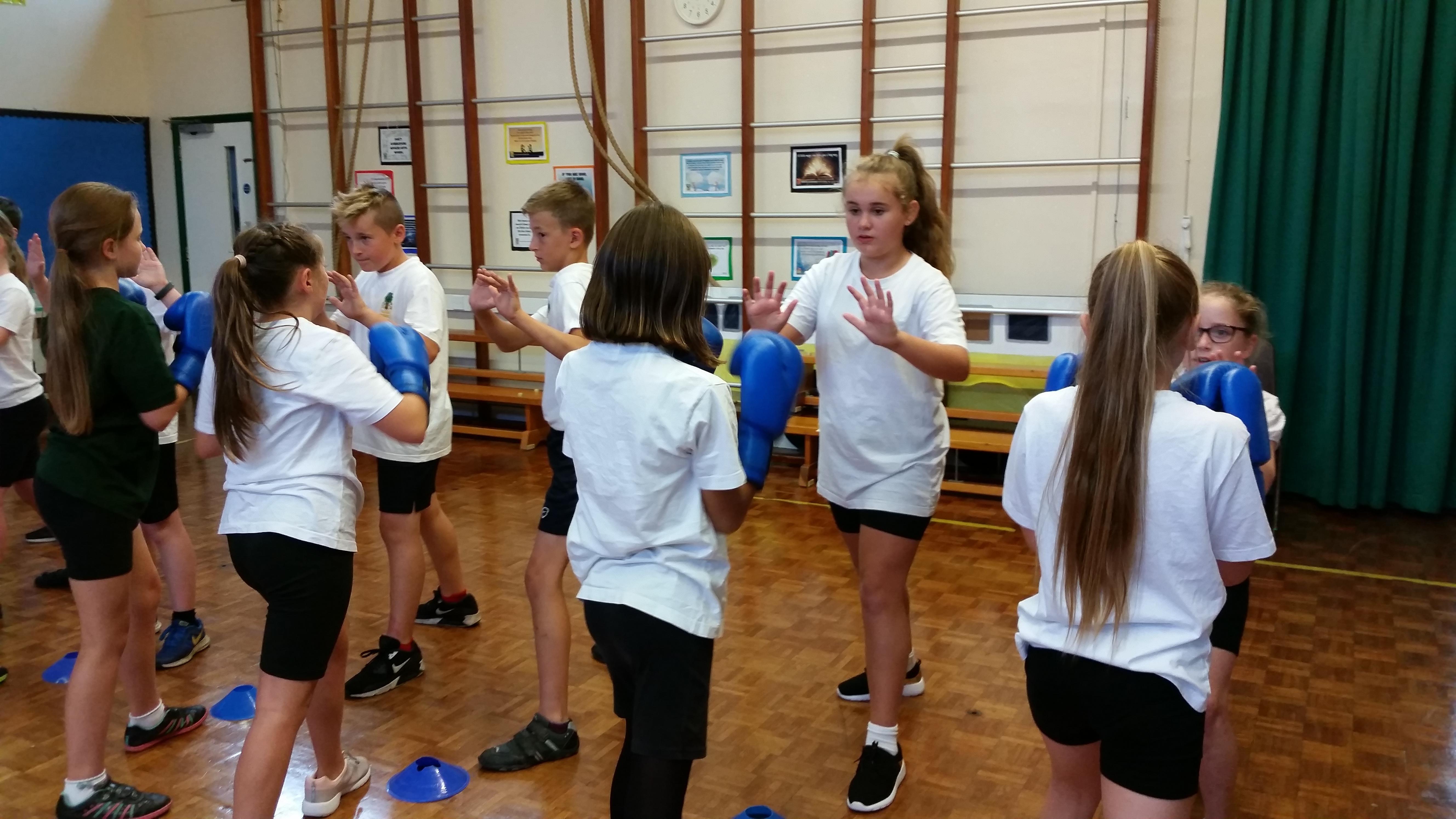 Year 6 have begun to settle into the routine of Oak Class. On Monday morning, they were lucky enough to work on their teamwork skills with Josh Kennedy from the Shepway Sports Partnership. Josh is English Super Bantum Weight Boxing Champion. As well as training and taking part in fights himself, he also uses his boxing knowledge to train children in this sport. For the next six weeks, Oak Class will be learning basic boxing skills from Josh on Monday afternoons. At the end of this time, each child will be assessed, as if they meet all the criteria, they will be awarded a Boxing Bronze Award. Please make sure your child's PE kit is in school at all times, and if they have their own boxing gloves, they can be brought in for Monday's lessons. Some pictures from Josh's sessions can be seen below.