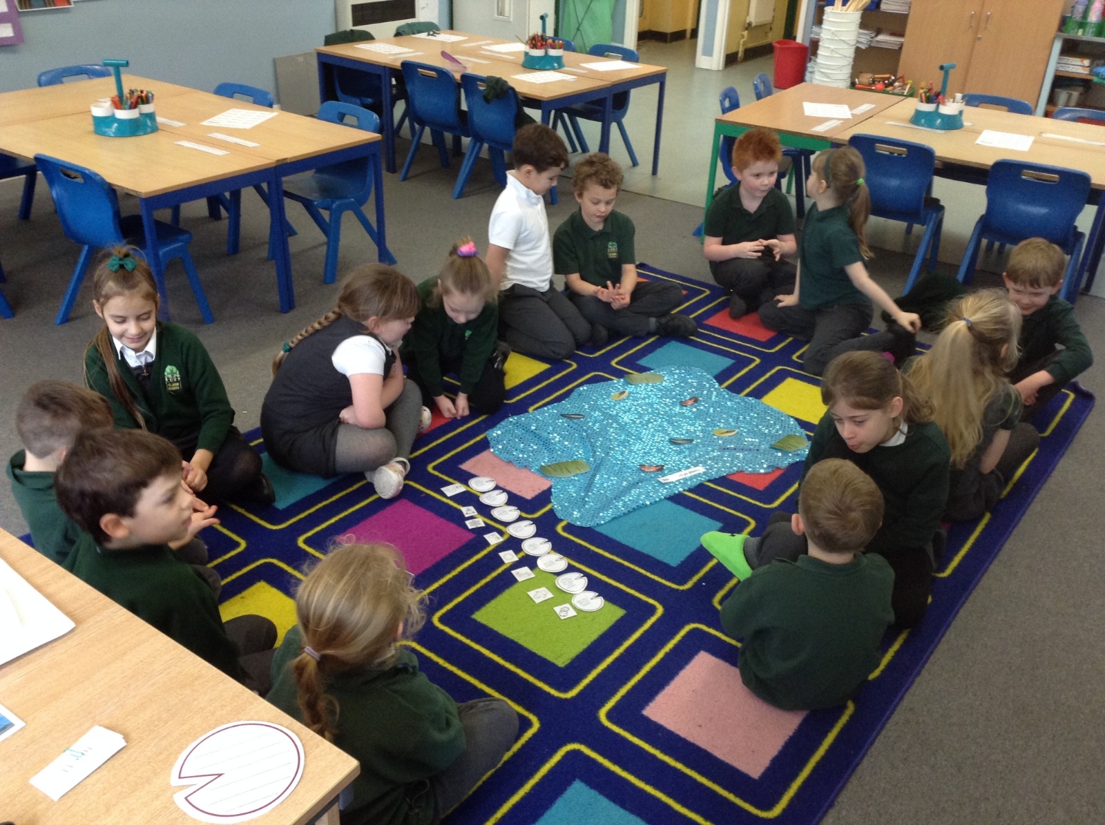 In English this week we have started reading our new class book: Tadpole's promise. On Monday, the children came into the classroom to find a pond complete with Lily pads covered in promises. The children had to match the promises to the correct animal or object. We have used the book to learn about apostrophes. The children have learnt that apostrophes are used to show possession or omission (in contractions). They did really well writing some speech bubbles from the tadpole to the caterpillar using words containing apostrophes.