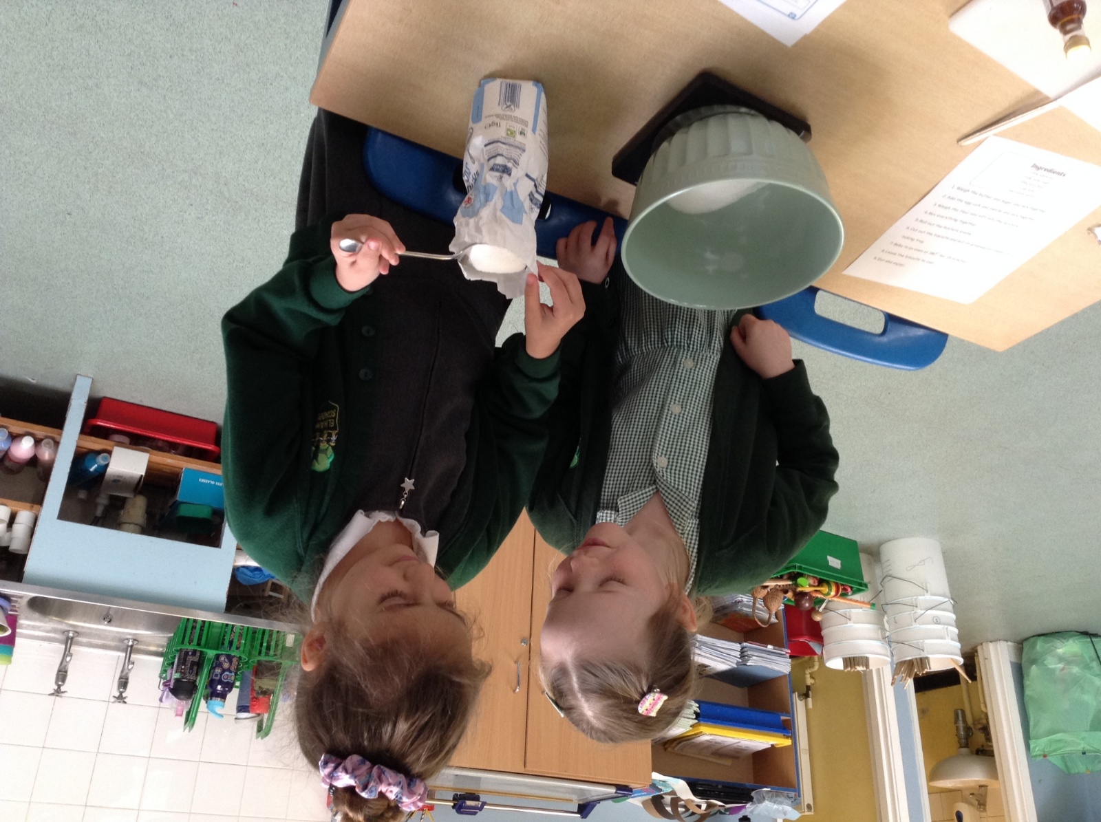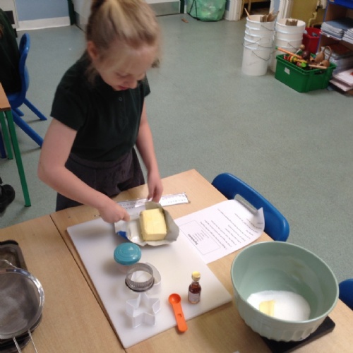 In Maths, we put our measuring skills into action by baking biscuits! We all weighed mass in grams, as well as mixing, stirring and eating - yum yum!