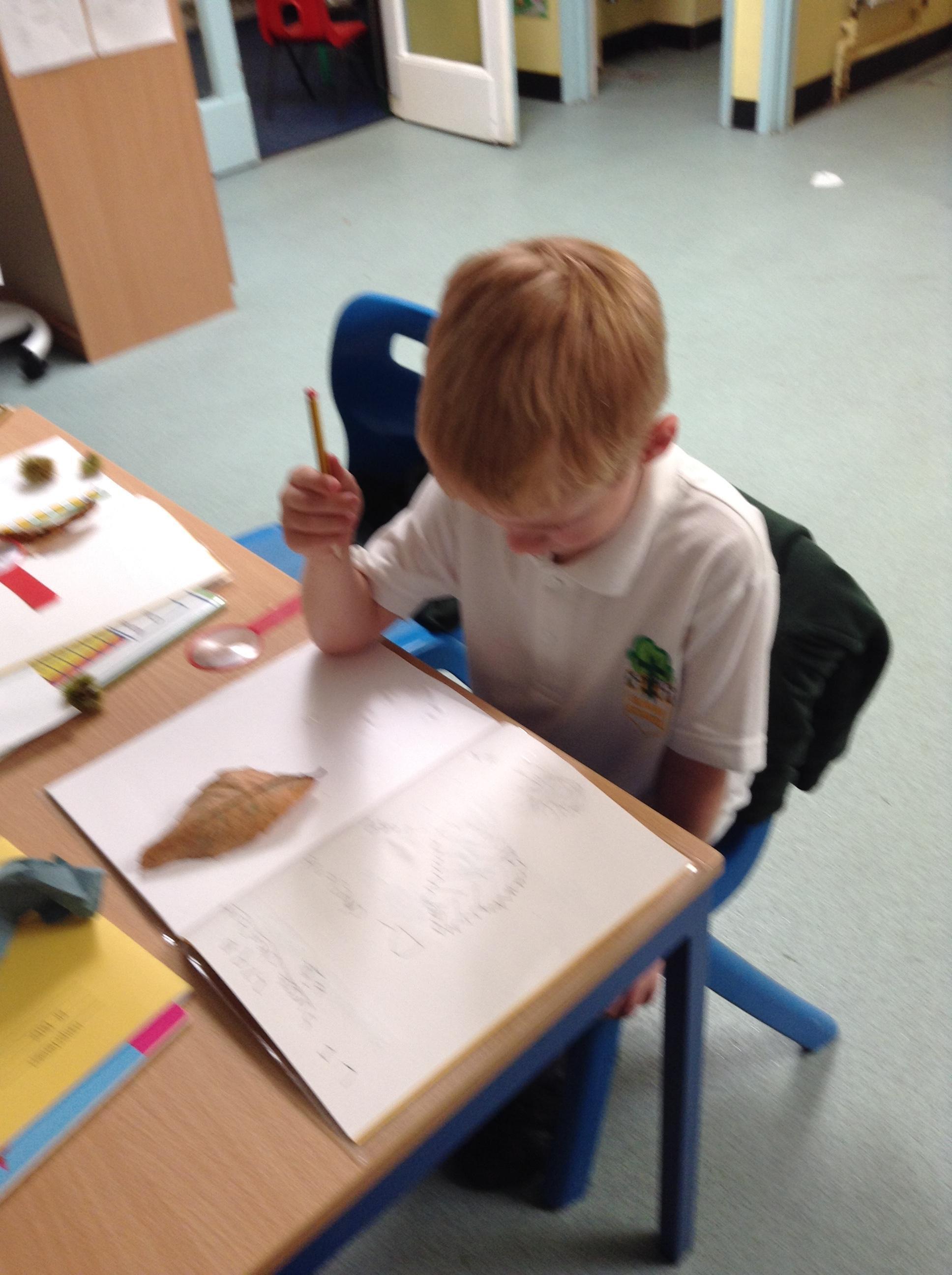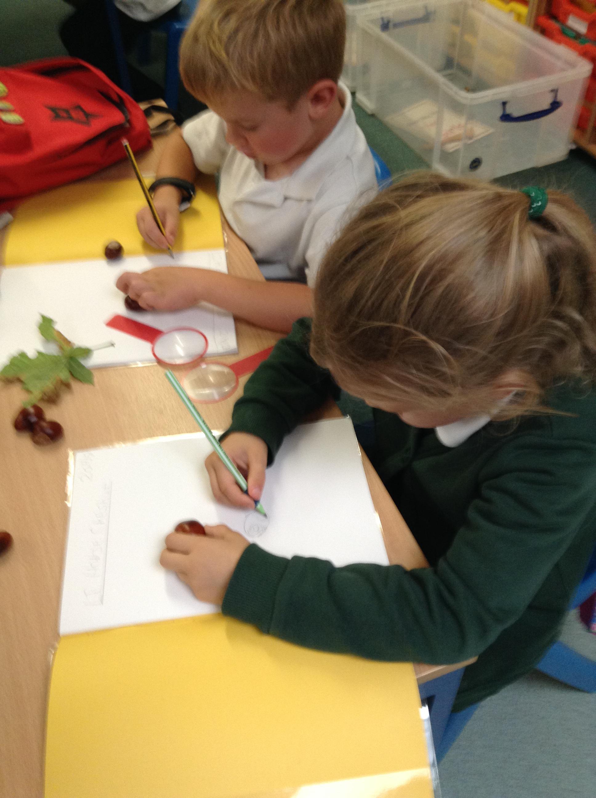 'I drew a conker, its shell and a Horse chestnut leaf.'