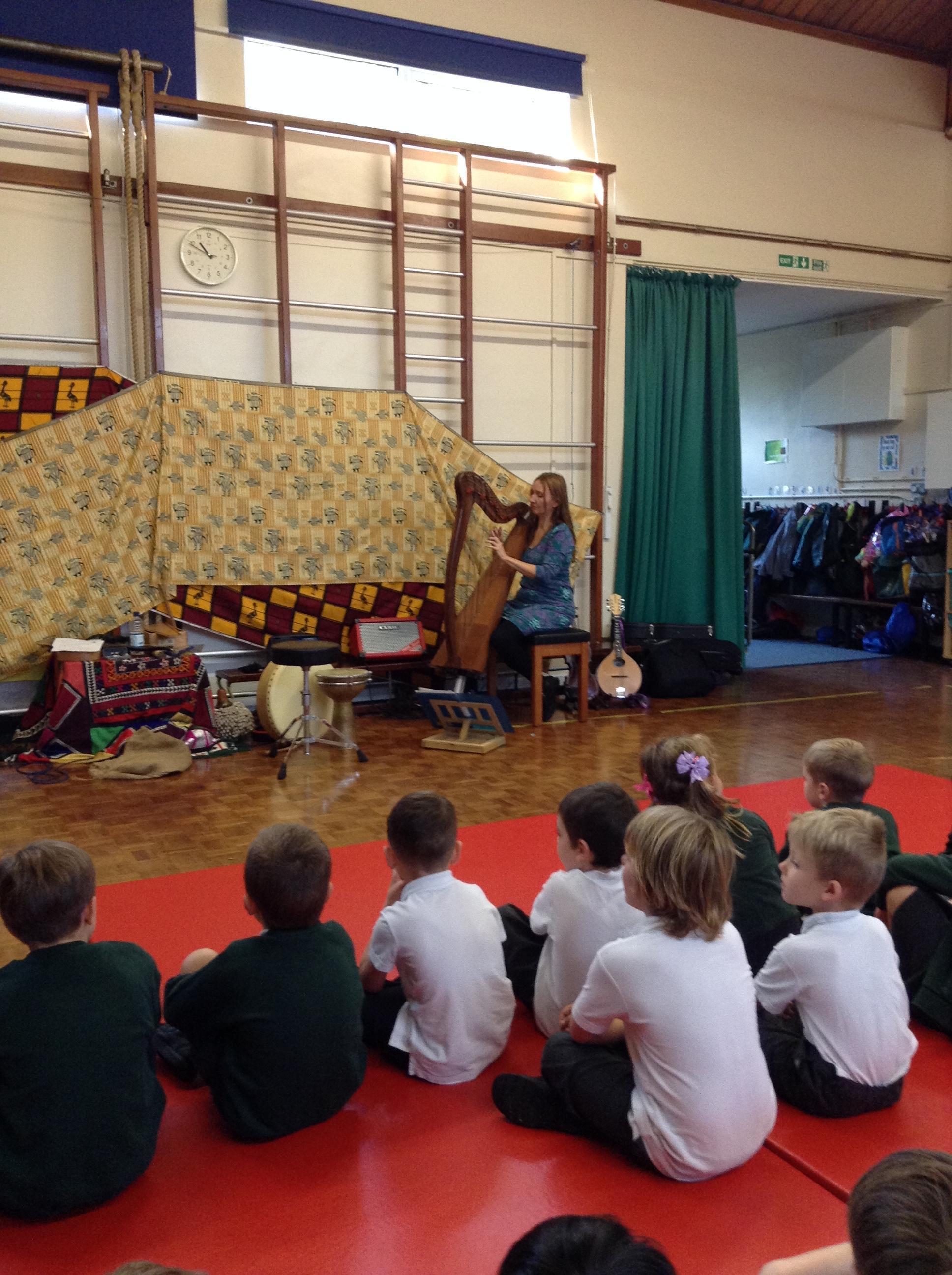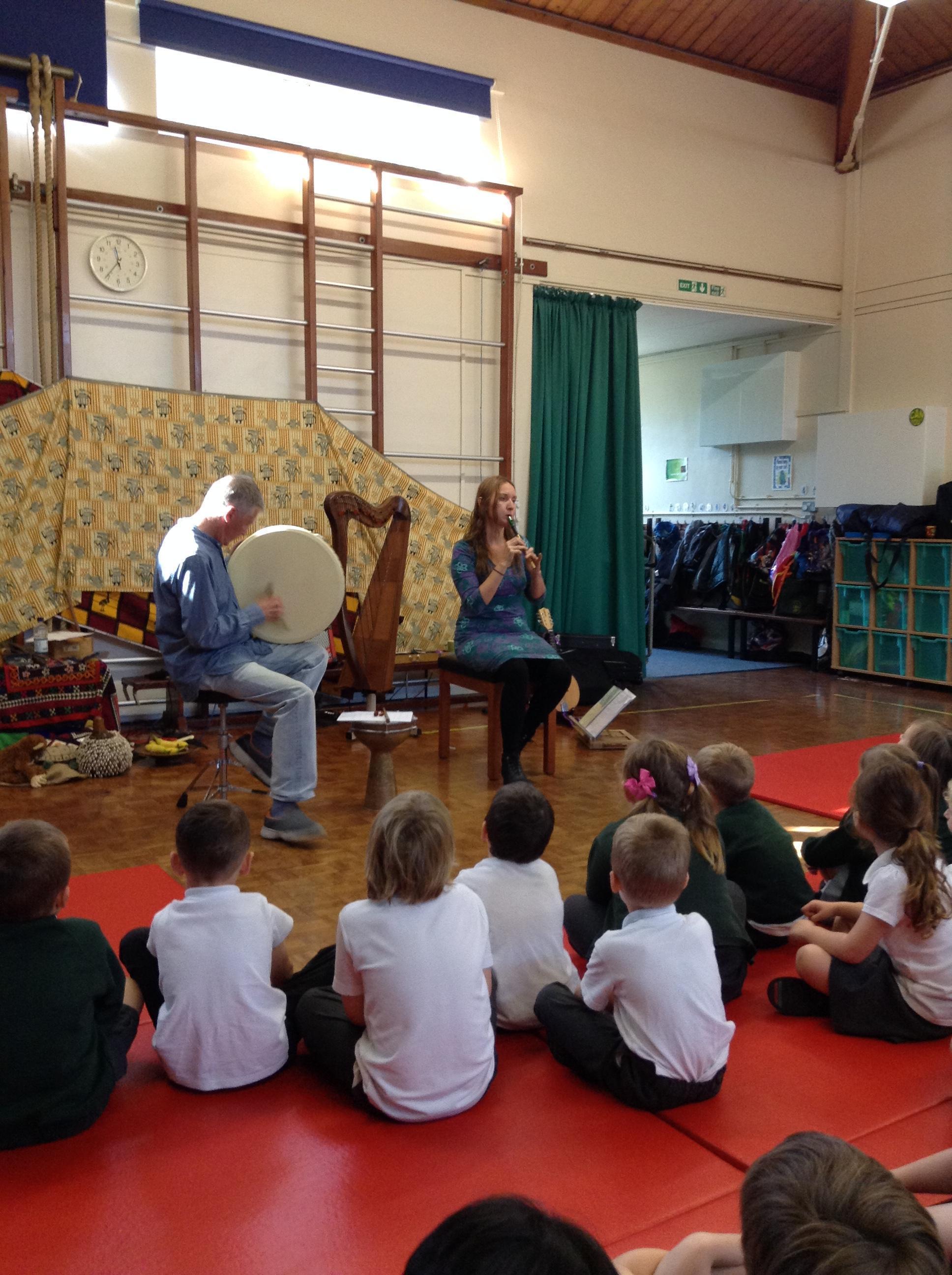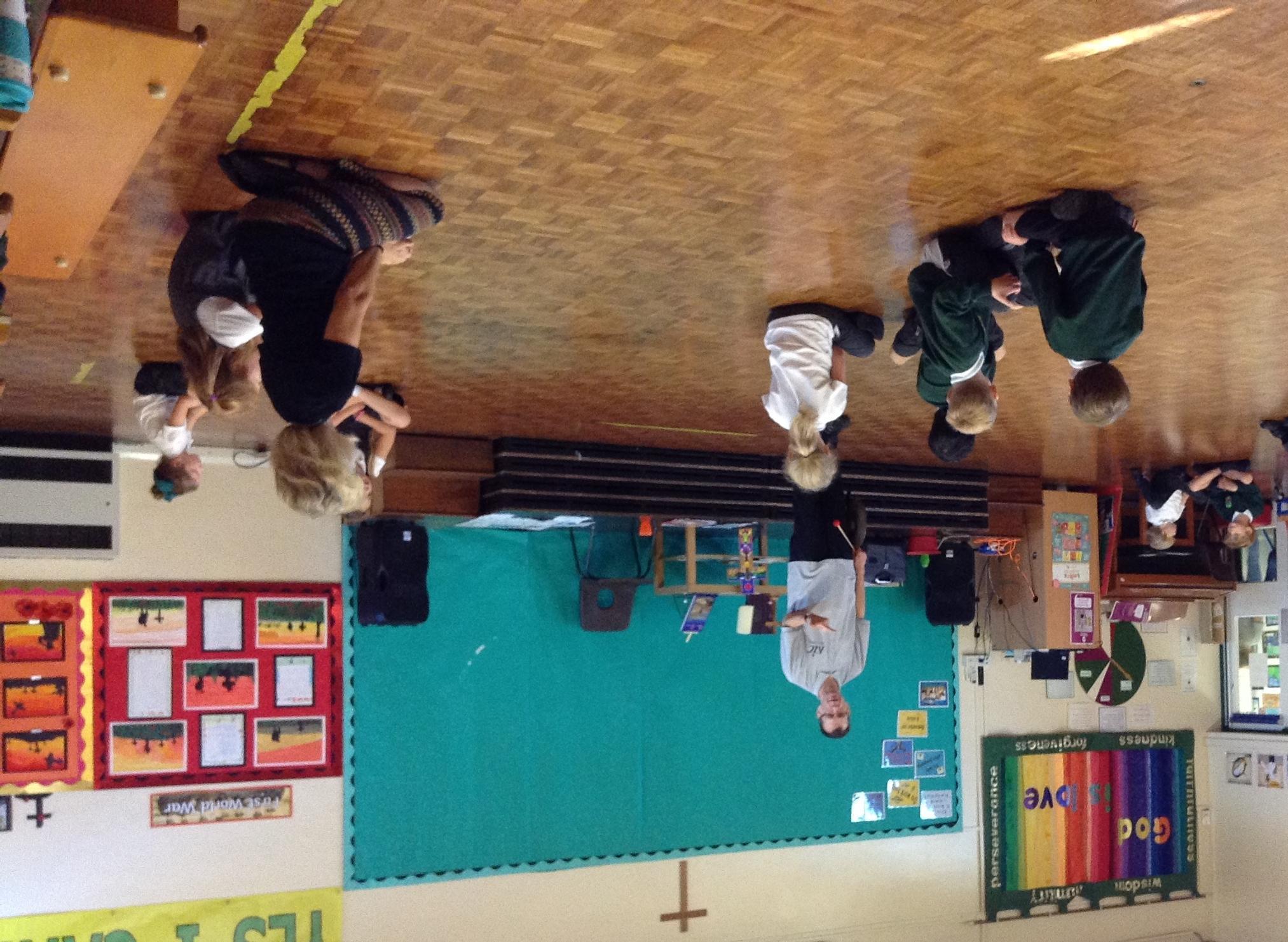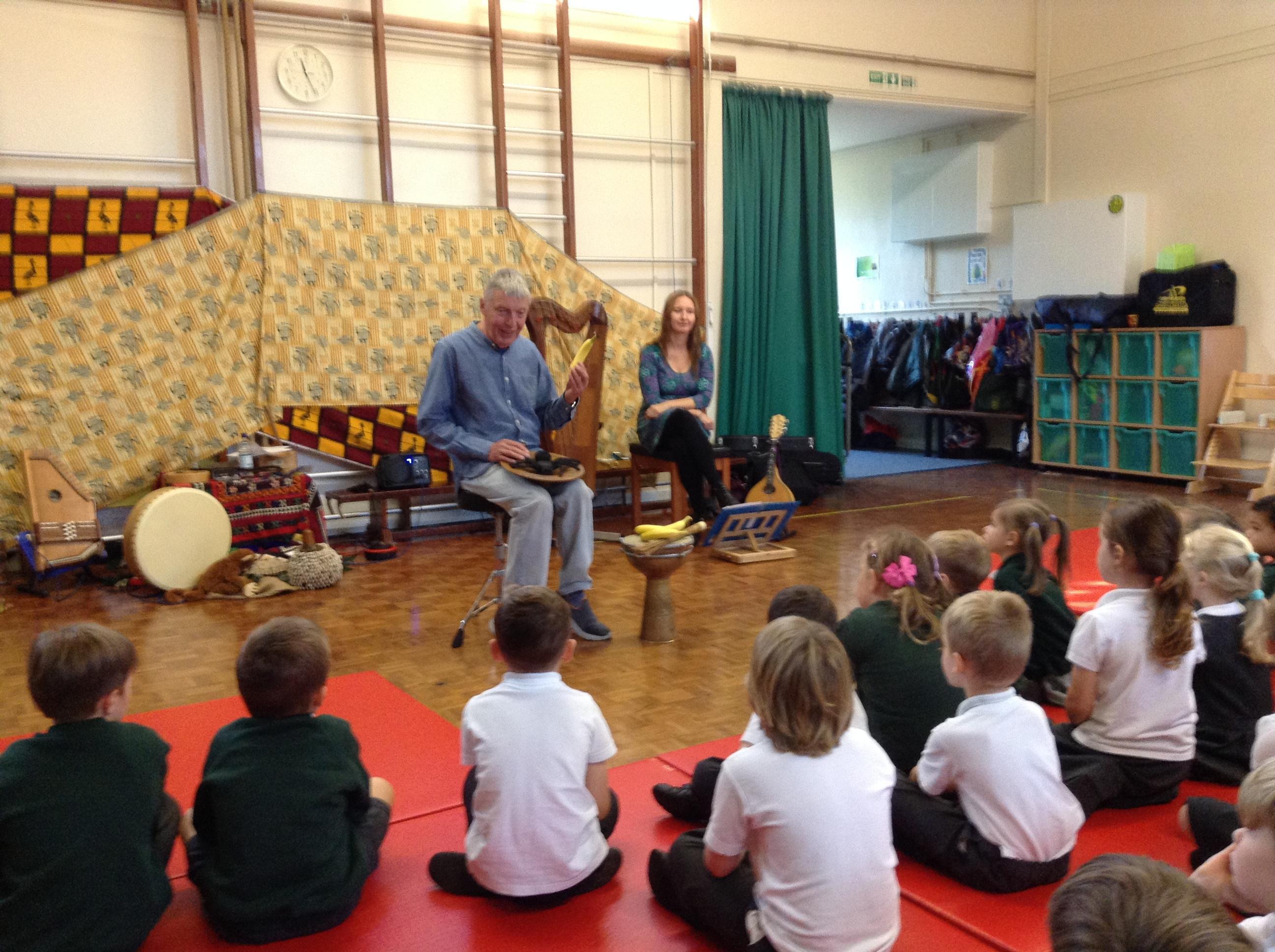 On Wednesday, more friends, Tony and Ramona, visited us from 'Tales from the Book of Life.'  As always, they were very entertaining, playing different instruments, singing and telling stories;  we can't wait to make some Anansi spiders!