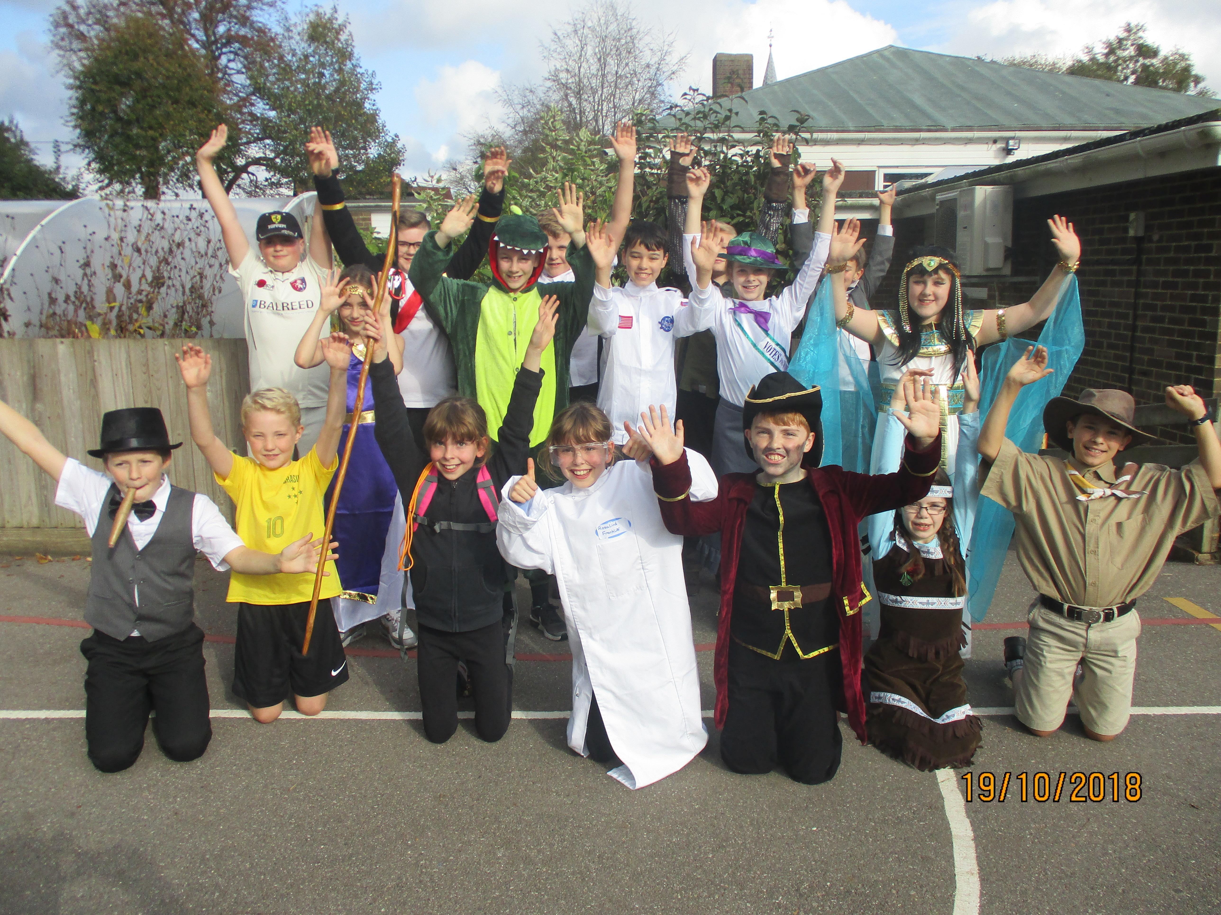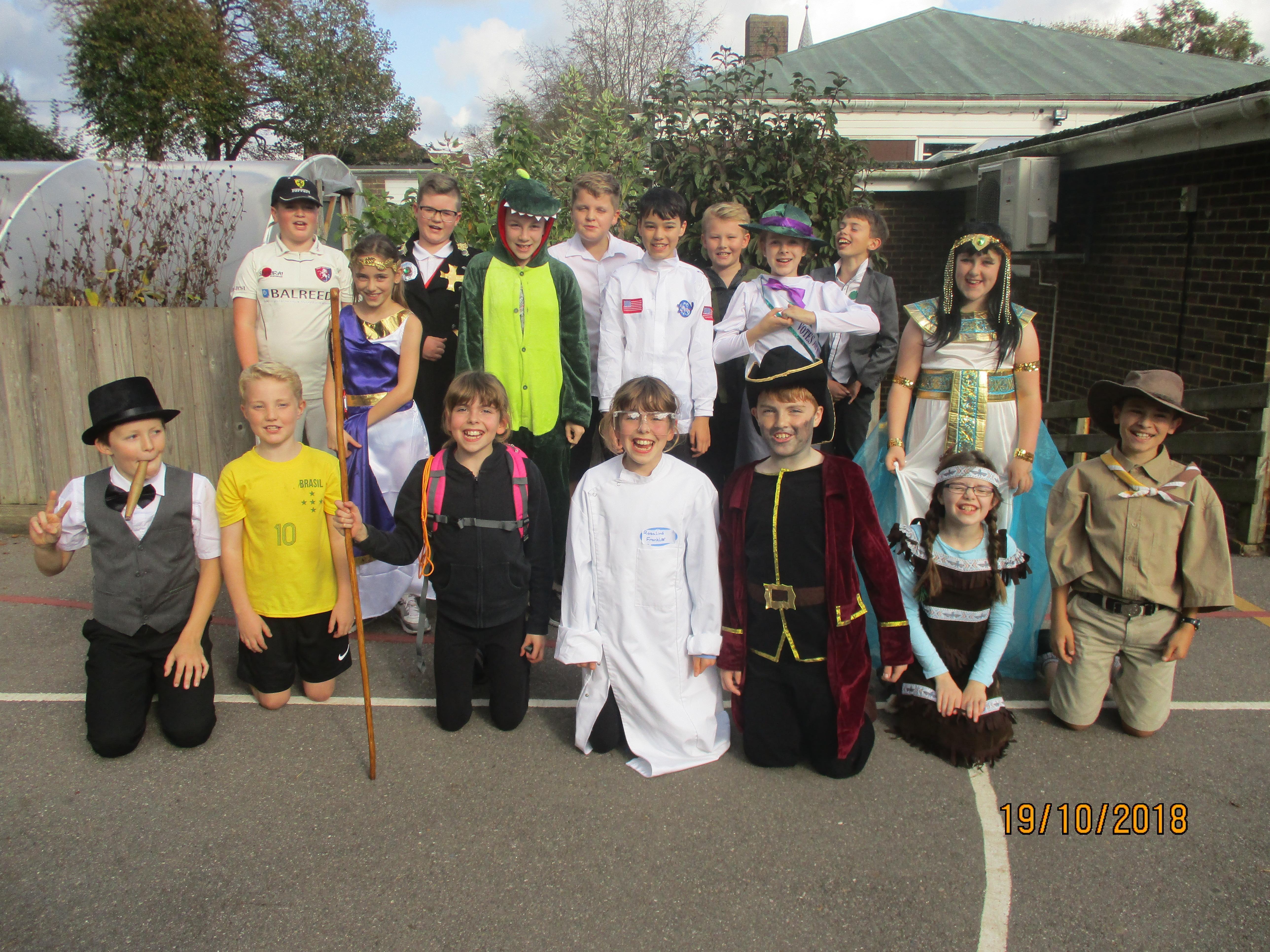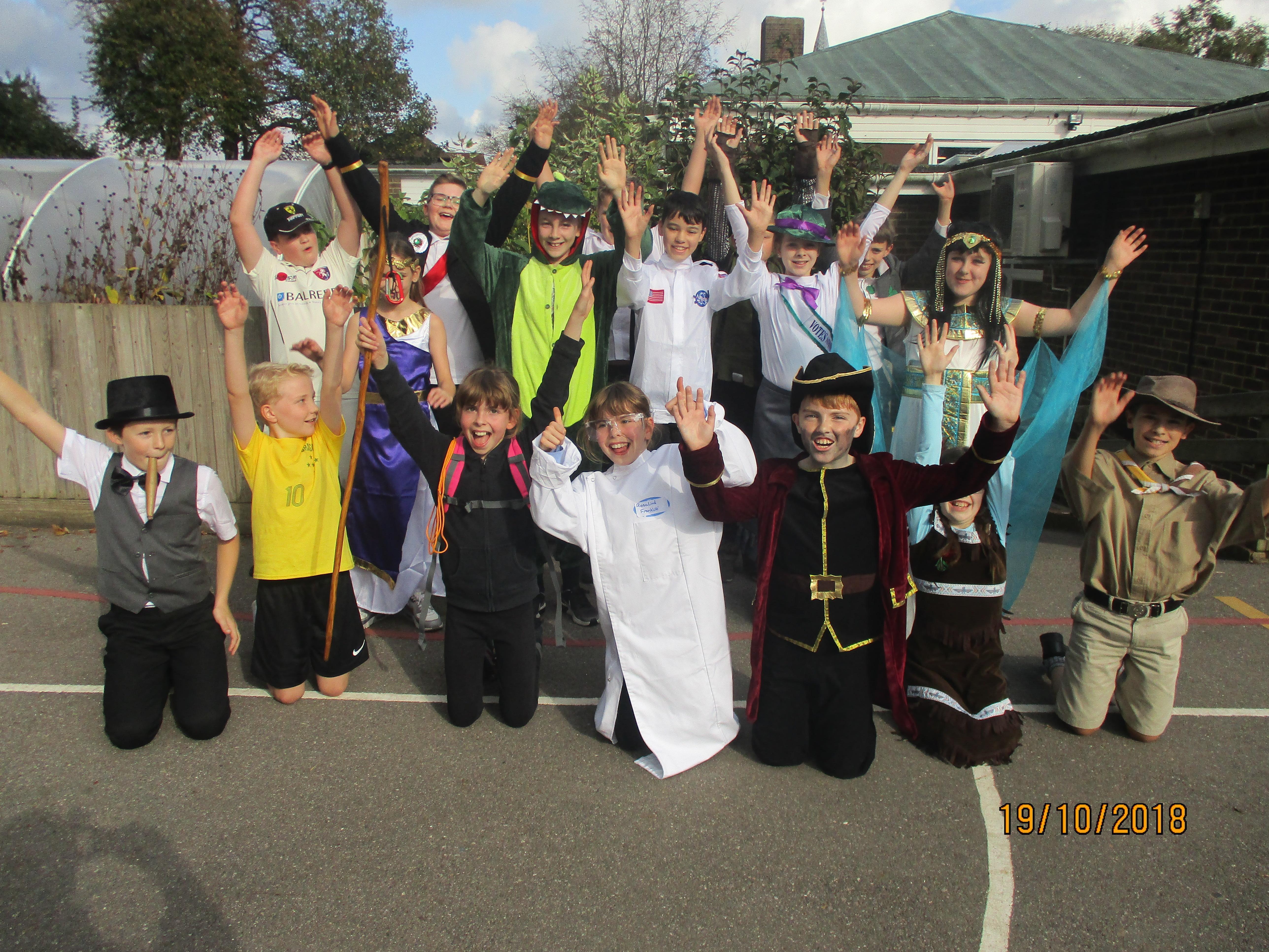 Friday - As is traditional at the end of Book Week, Friday was dressing-up day with everyone coming to school as their favourite historical character. We were also privileged today to be visited by Andrew Clover, author of the Rory Branagan humorous detective stories. He spent an amazing hour with us teaching us, in a fun and crazy way, how to write stories. We were really fired-up by his story workshop and all then went back to class and wrote amazing versions of the story for ourselves. Andrew judged them all and read out particularly good pieces of writing in celebration assembly. Congratulations go to Lily Raison, Ned Stewart and Harry Benson for all winning prizes, with Harry's story being judged the best overall. It was certainly Harry's lucky week!