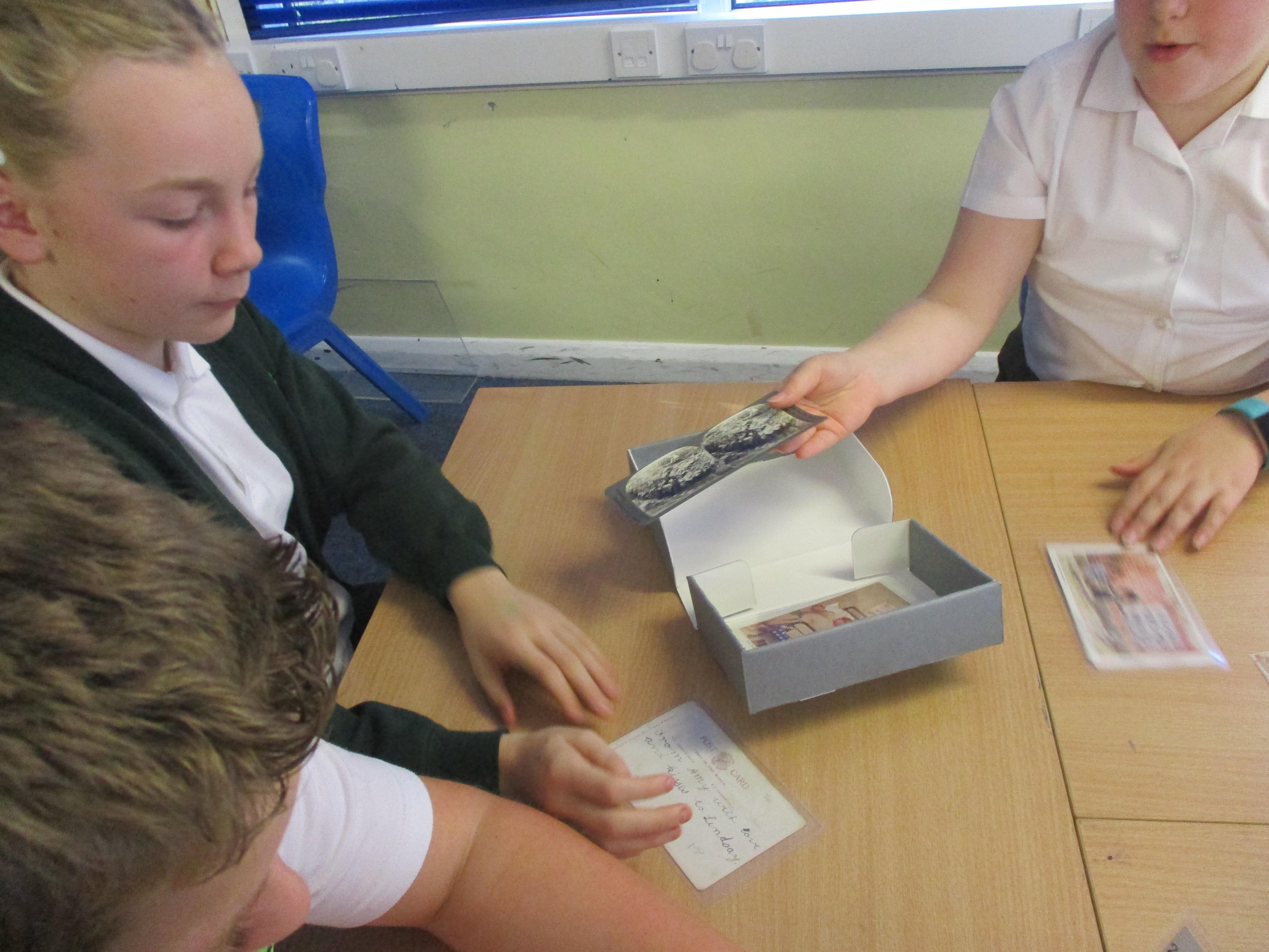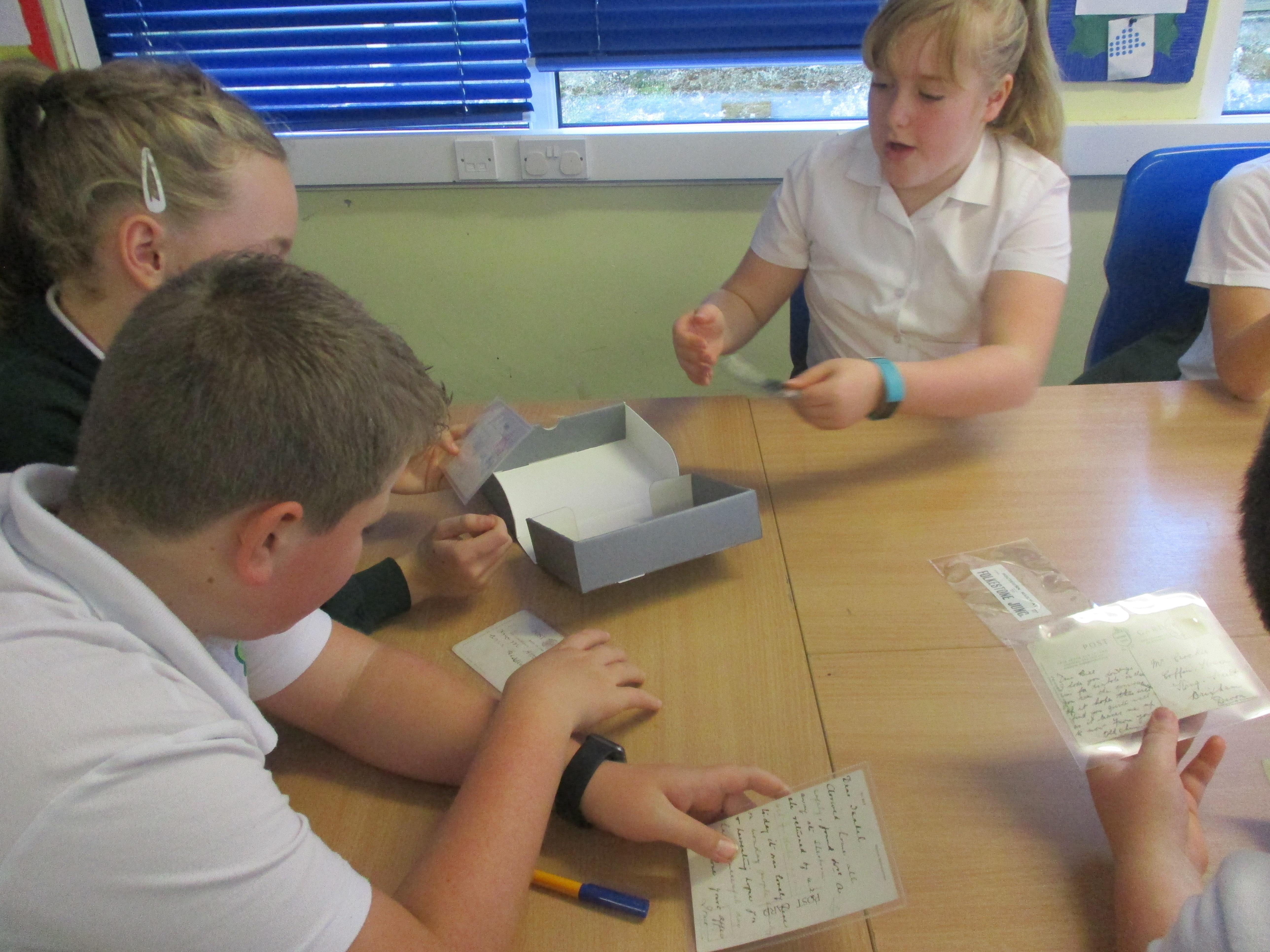 We also really enjoyed a visit from Martin Crowther who came in to talk to us about World War I. He brought with him lots of artefacts, many originals from the war, which we could handle and discuss. Amongst other things, we looked at a soldier's hat and cap badge from the East Kent Regiment (The Buffs), a map of the countries involved which was given away in a newspaper and lots of postcards both to and from soldiers serving on the Western Front. It was a really excellent session and we learnt lots in just one hour - we wished it could have gone on longer. Mrs Godden took photos (some of them can be seen below) and made some notes, and Mrs Short then used then in our next topic lesson. We had to choose a photo of one of the items and then write what it could tell us about the war.