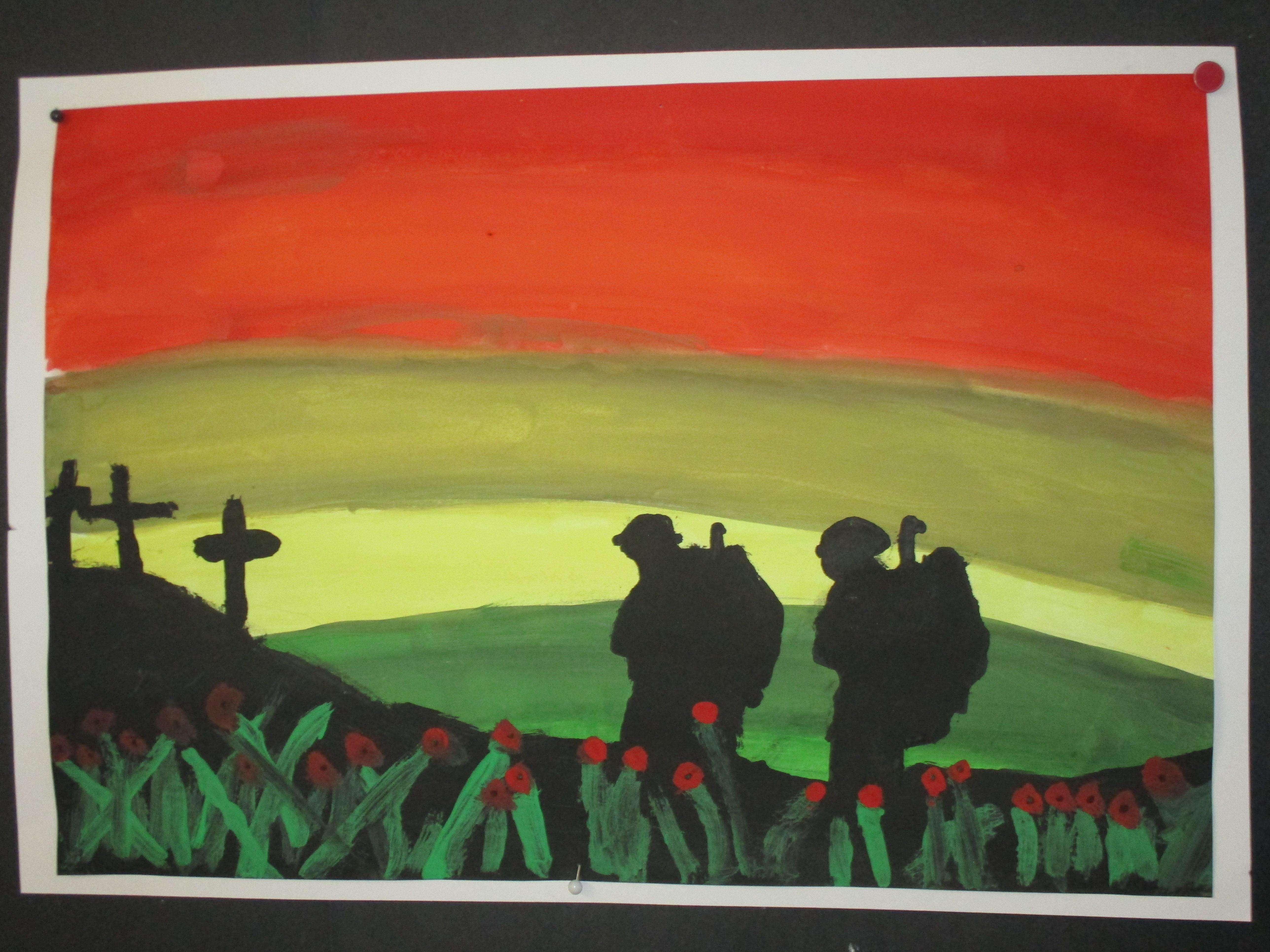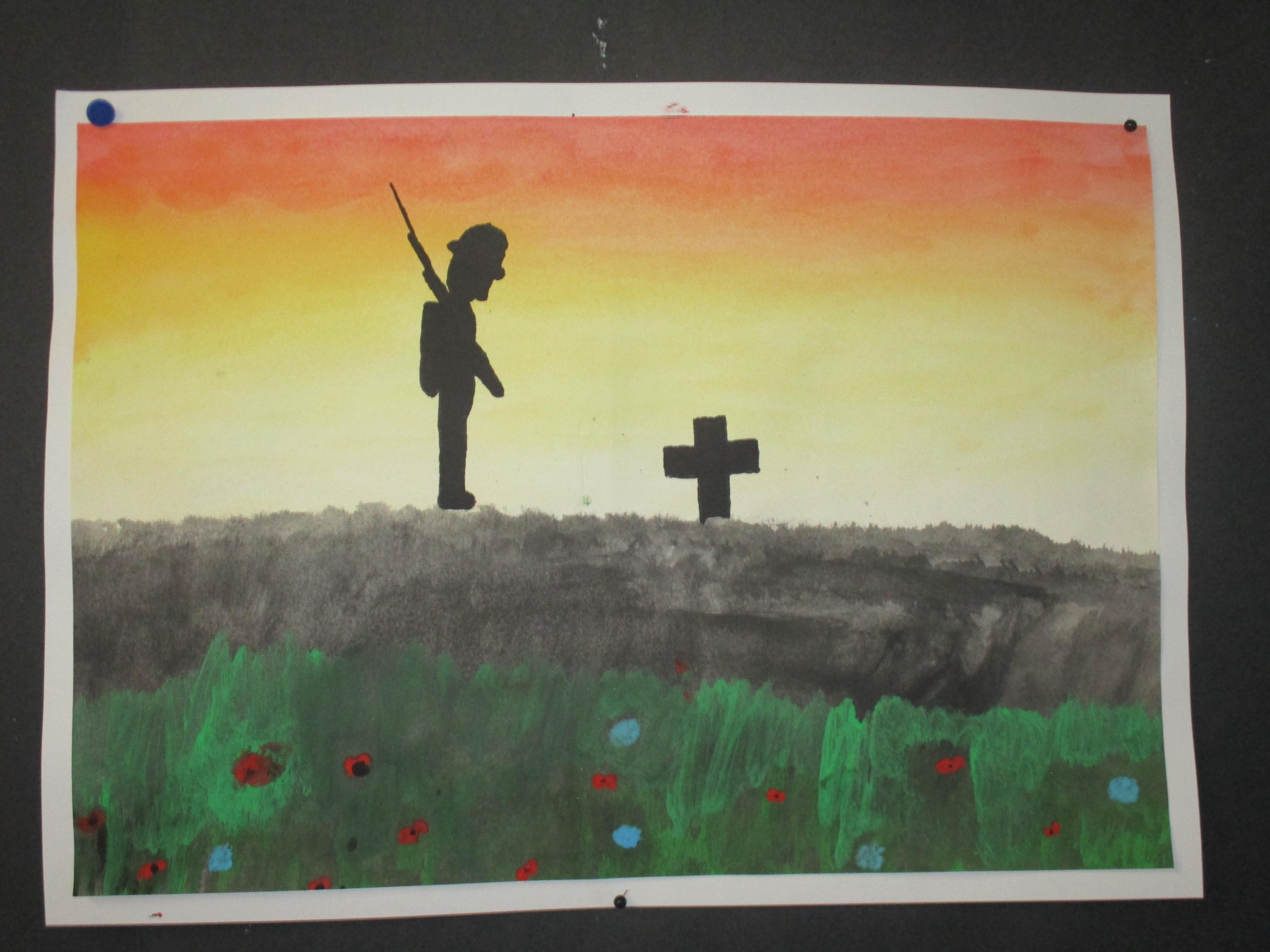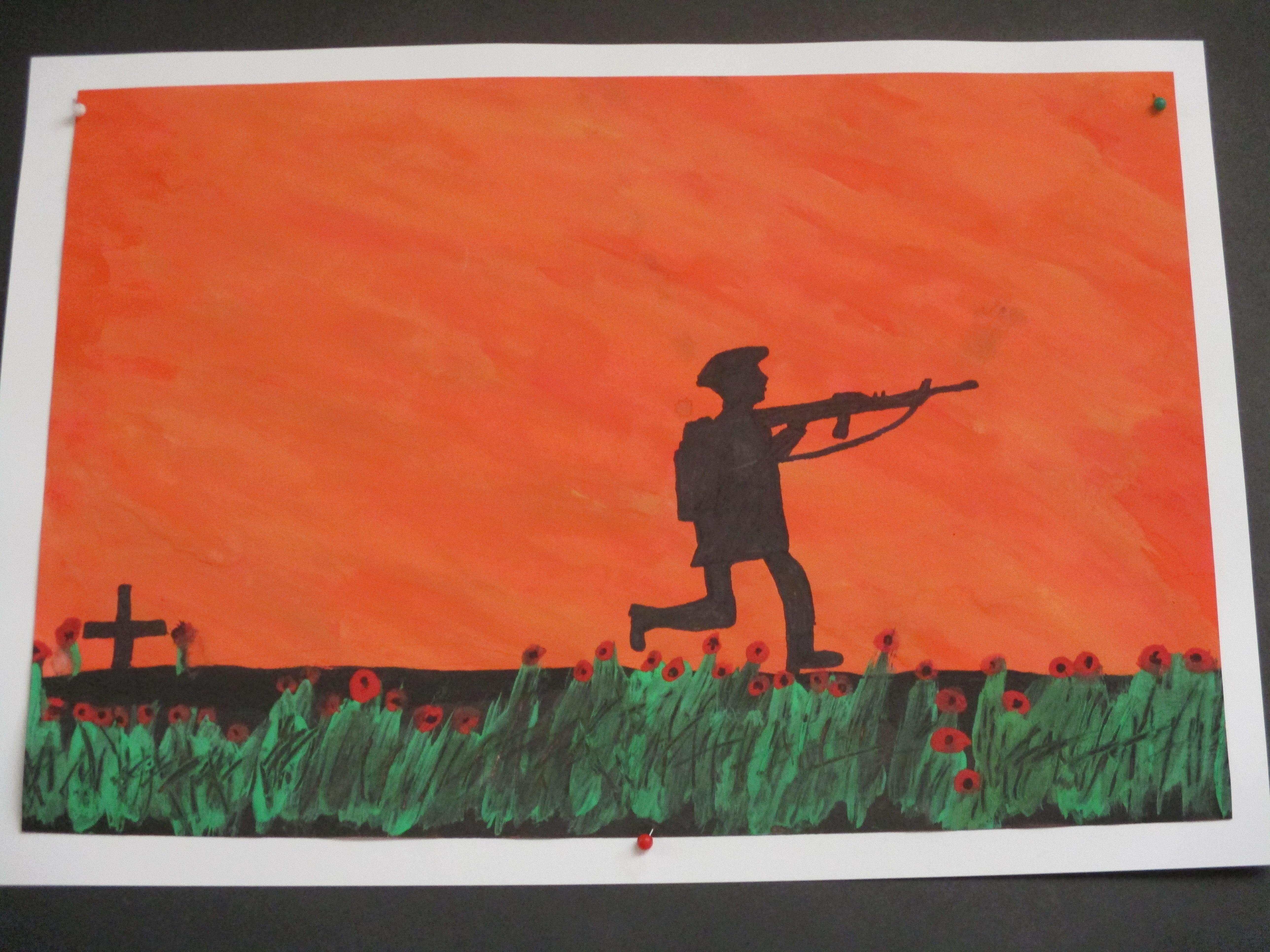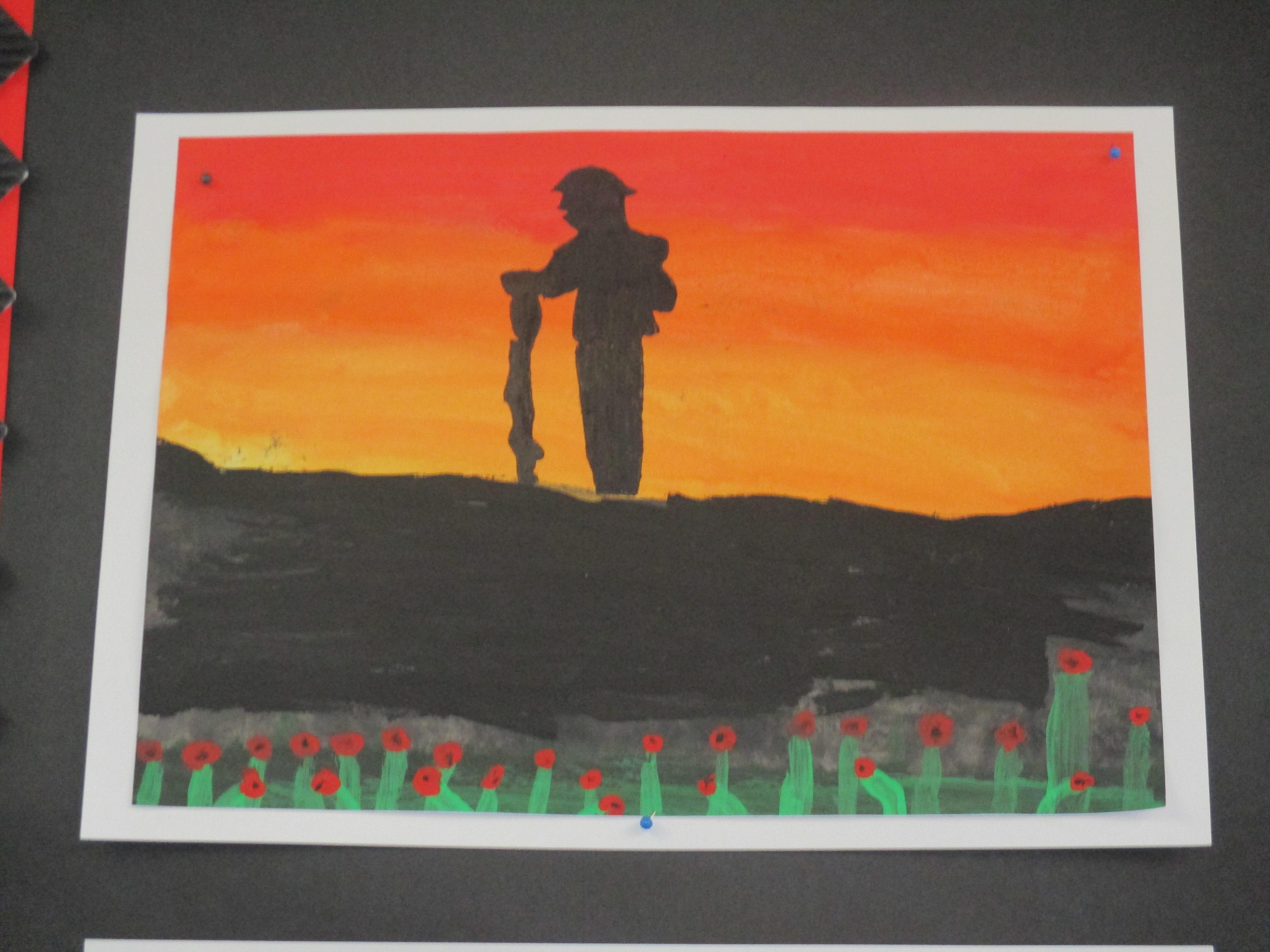 We too had the chance to be artists this week. Following some tuition from the talented Mrs Vincent, we have each created a WWI battlefield scene using colour wash for the sunset and silhouettes for the figures. They are all proudly on display in the hall or our classroom, but you can see photos of them below.