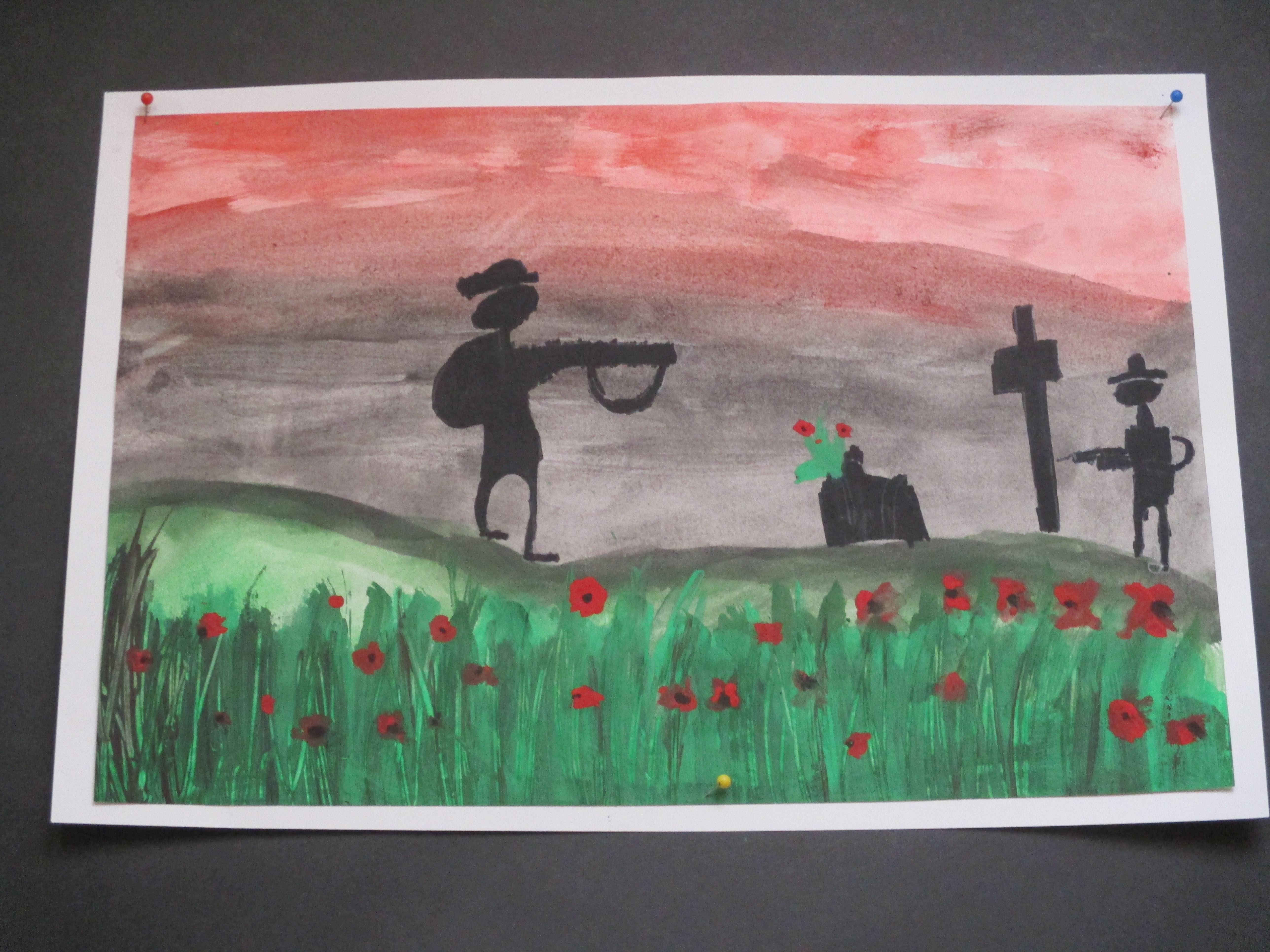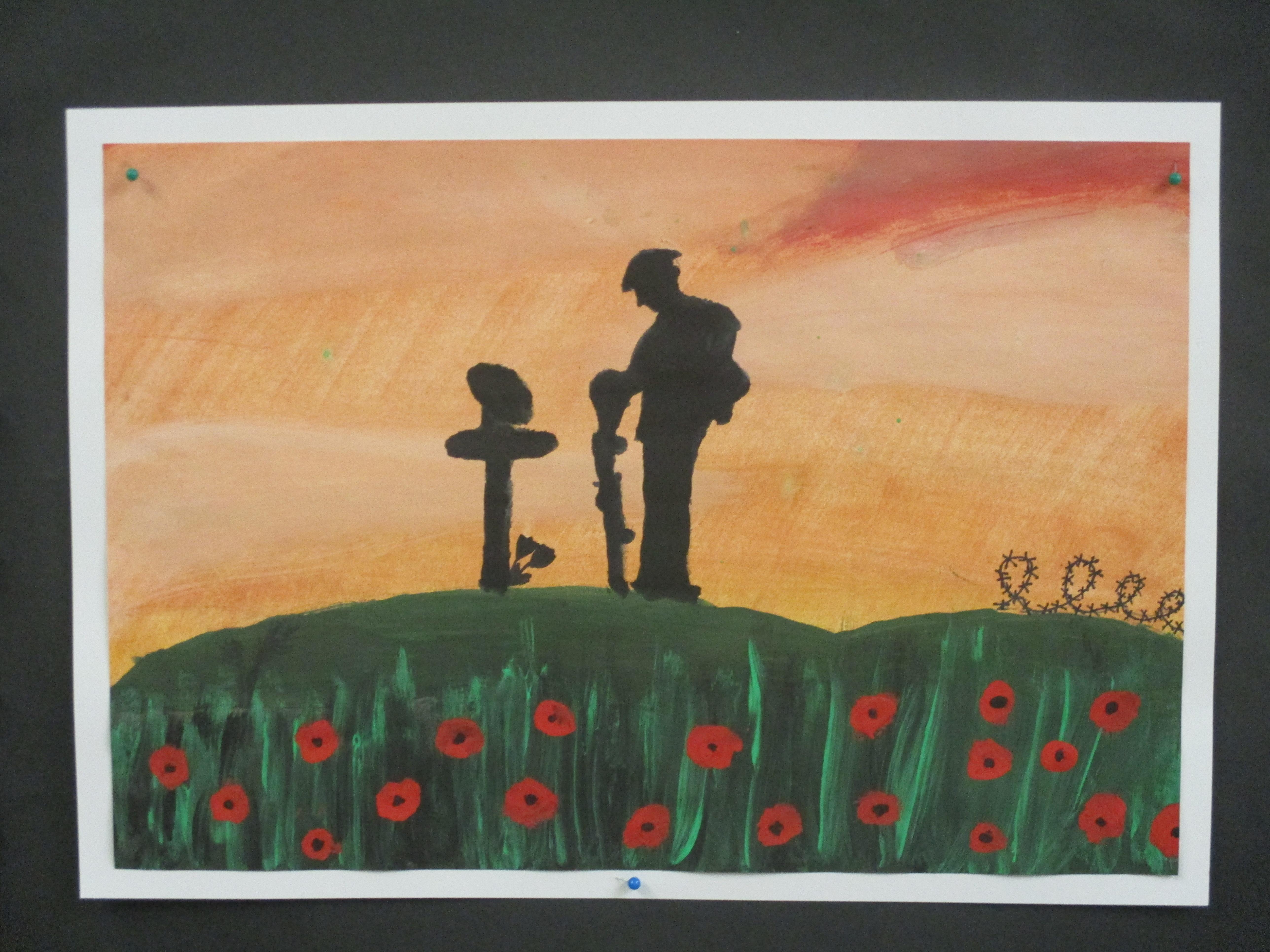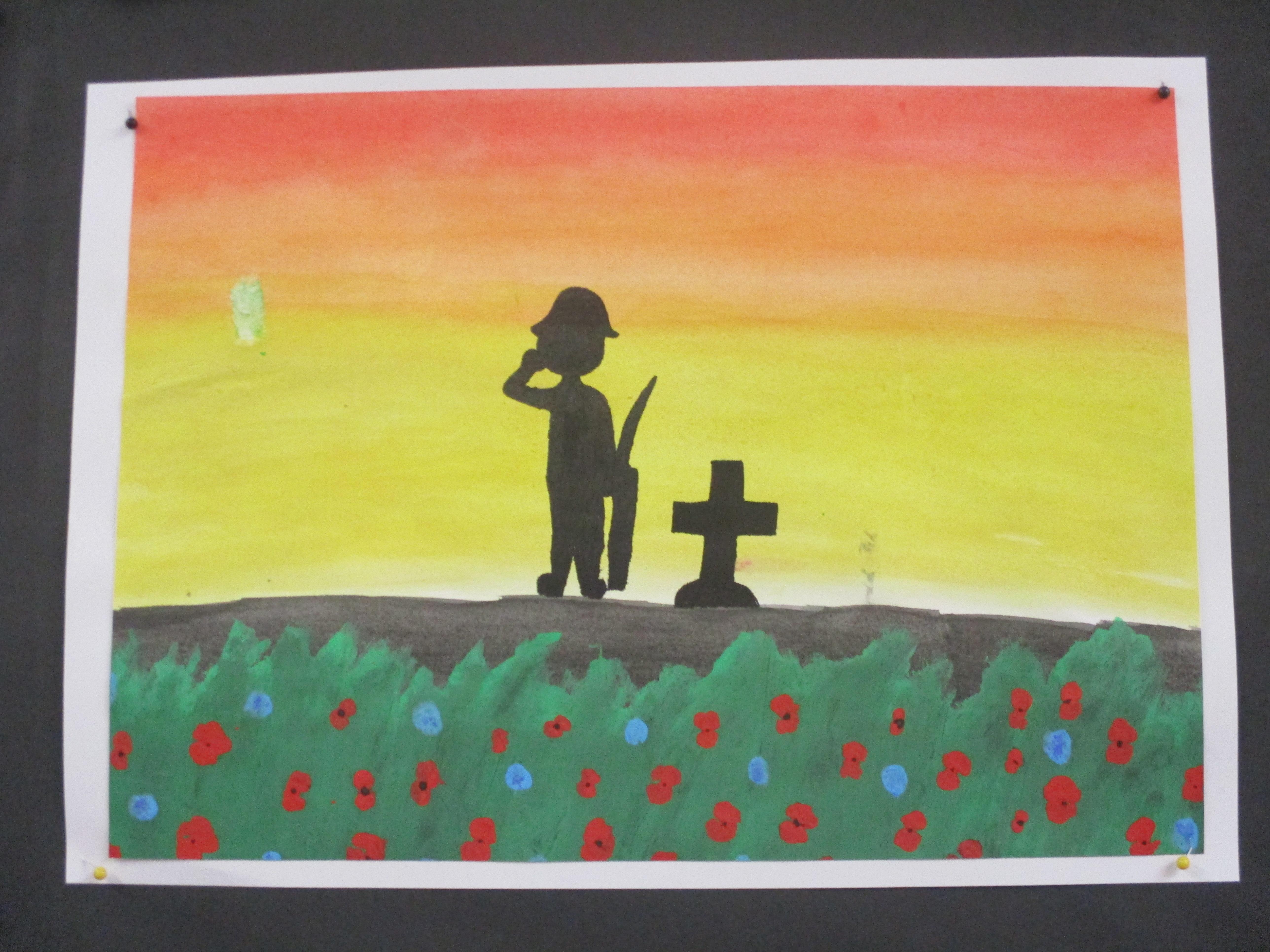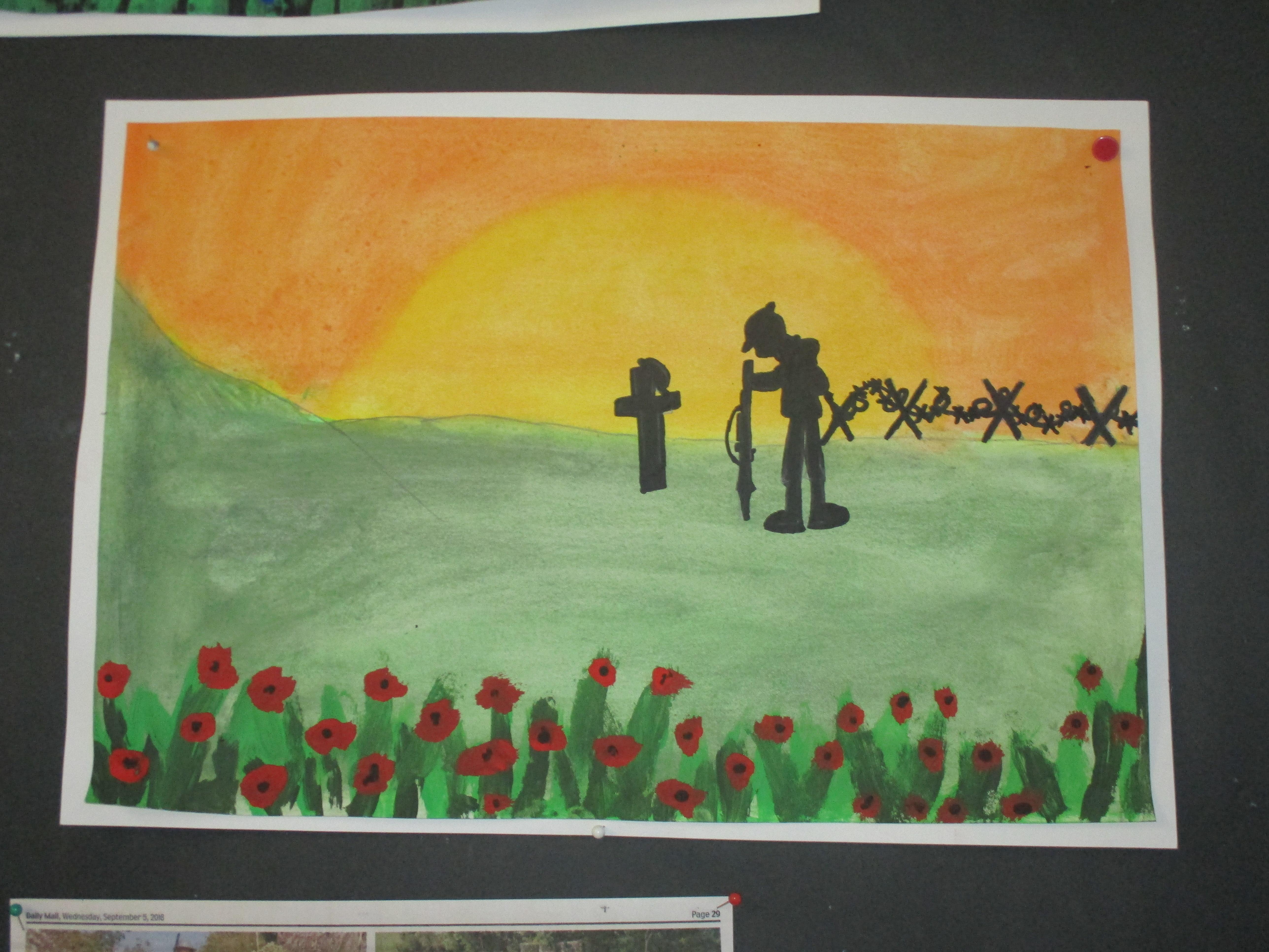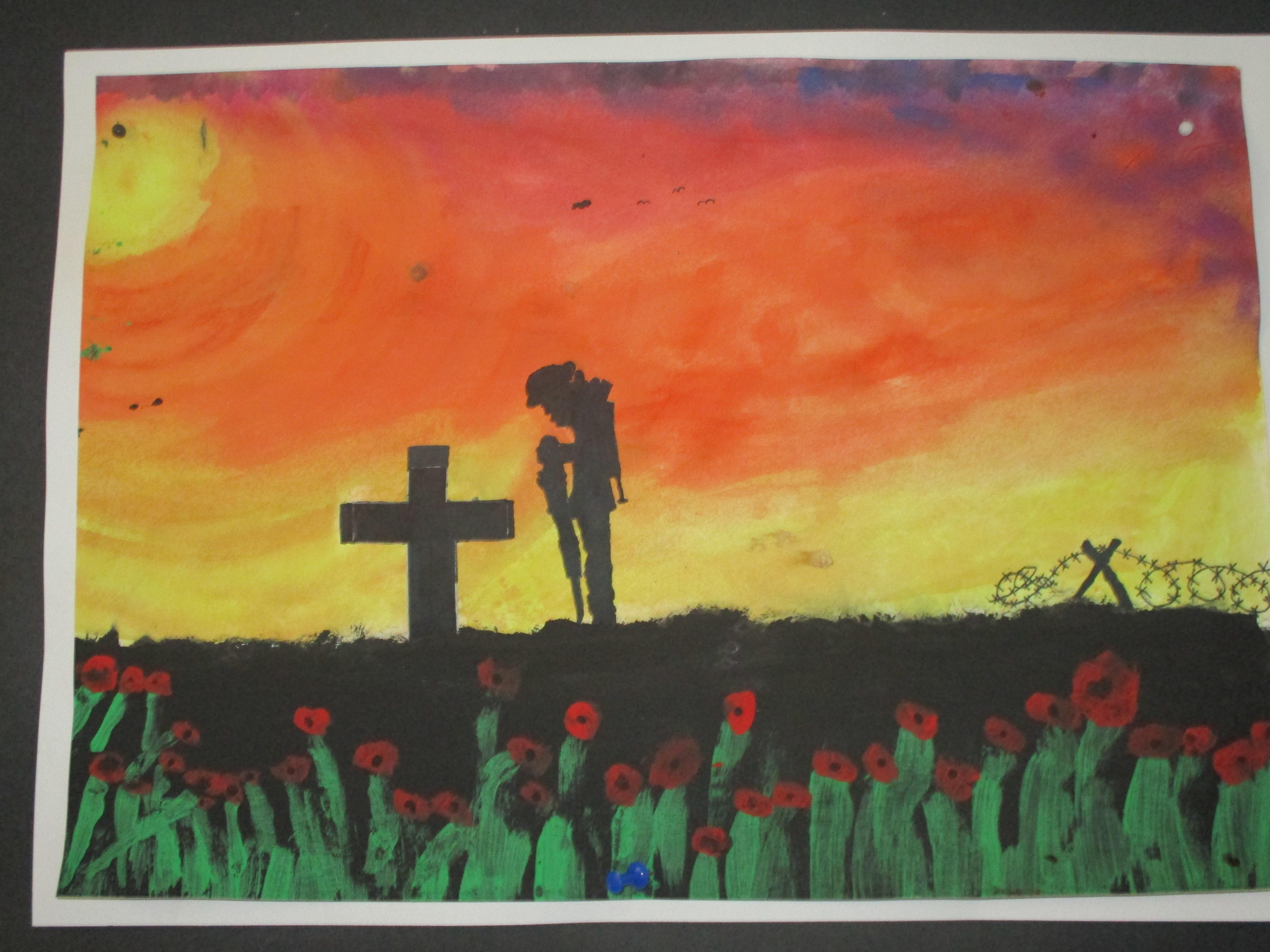 We too had the chance to be artists this week. Following some tuition from the talented Mrs Vincent, we have each created a WWI battlefield scene using colour wash for the sunset and silhouettes for the figures. They are all proudly on display in the hall or our classroom, but you can see photos of them below.