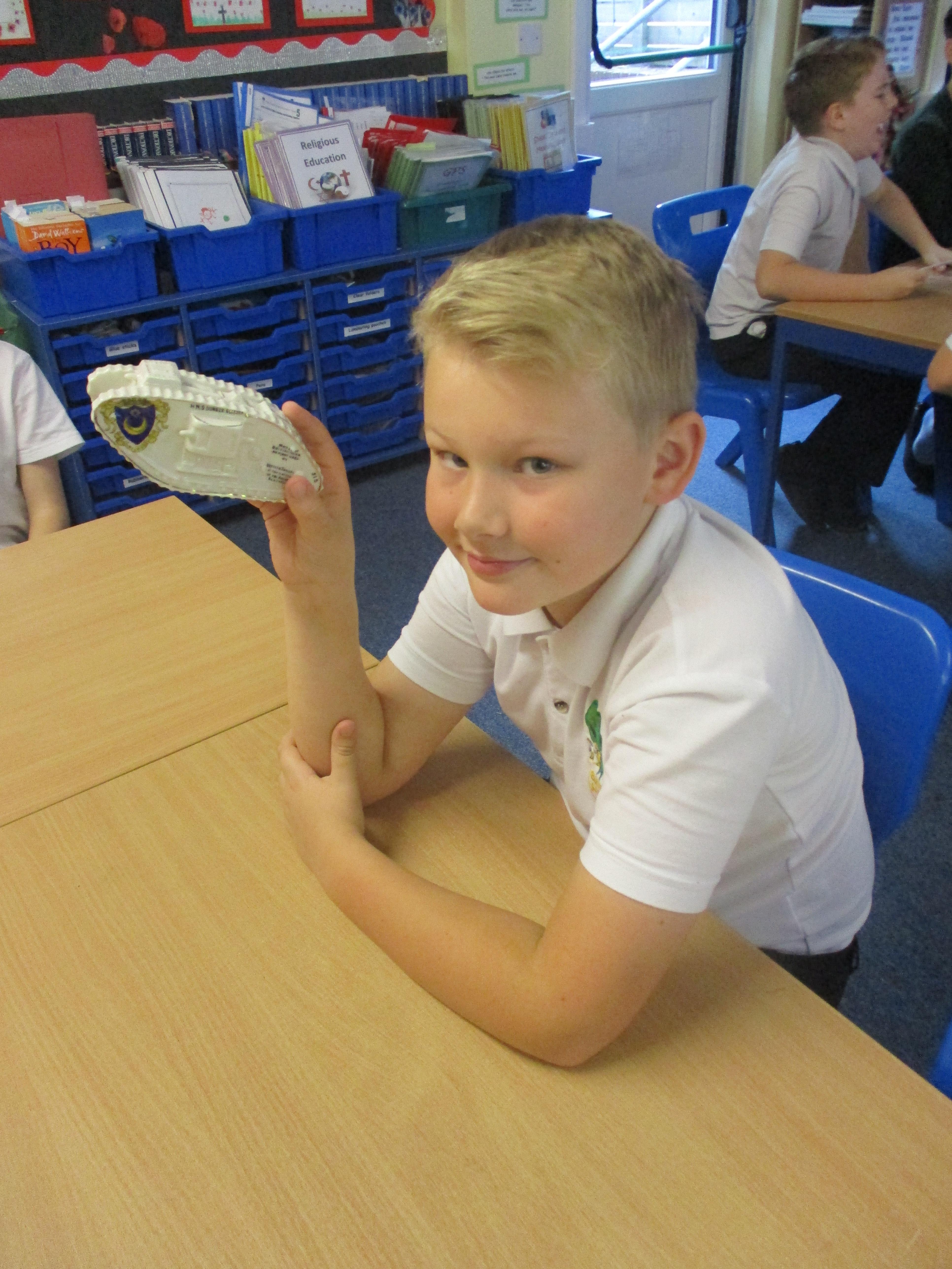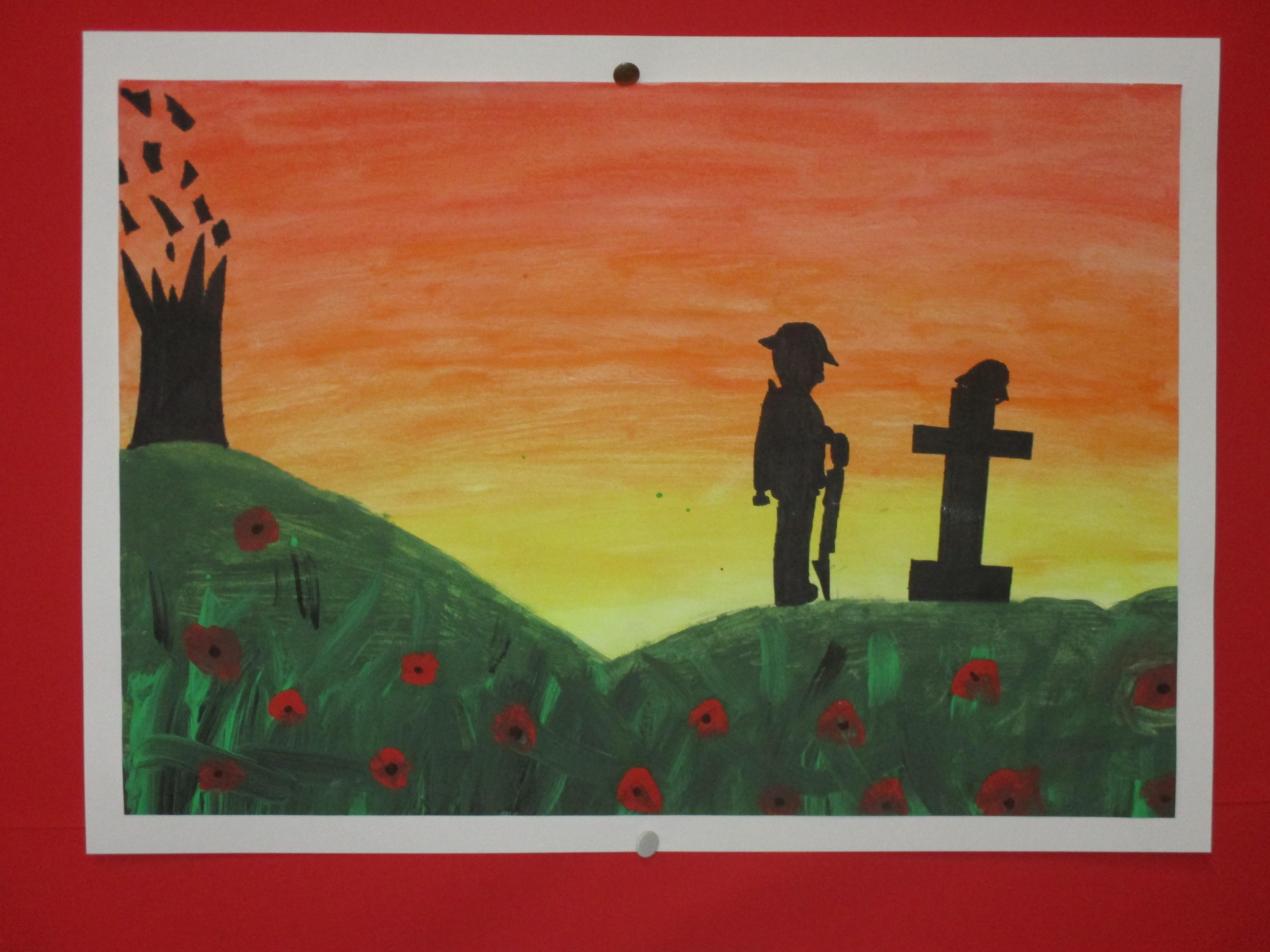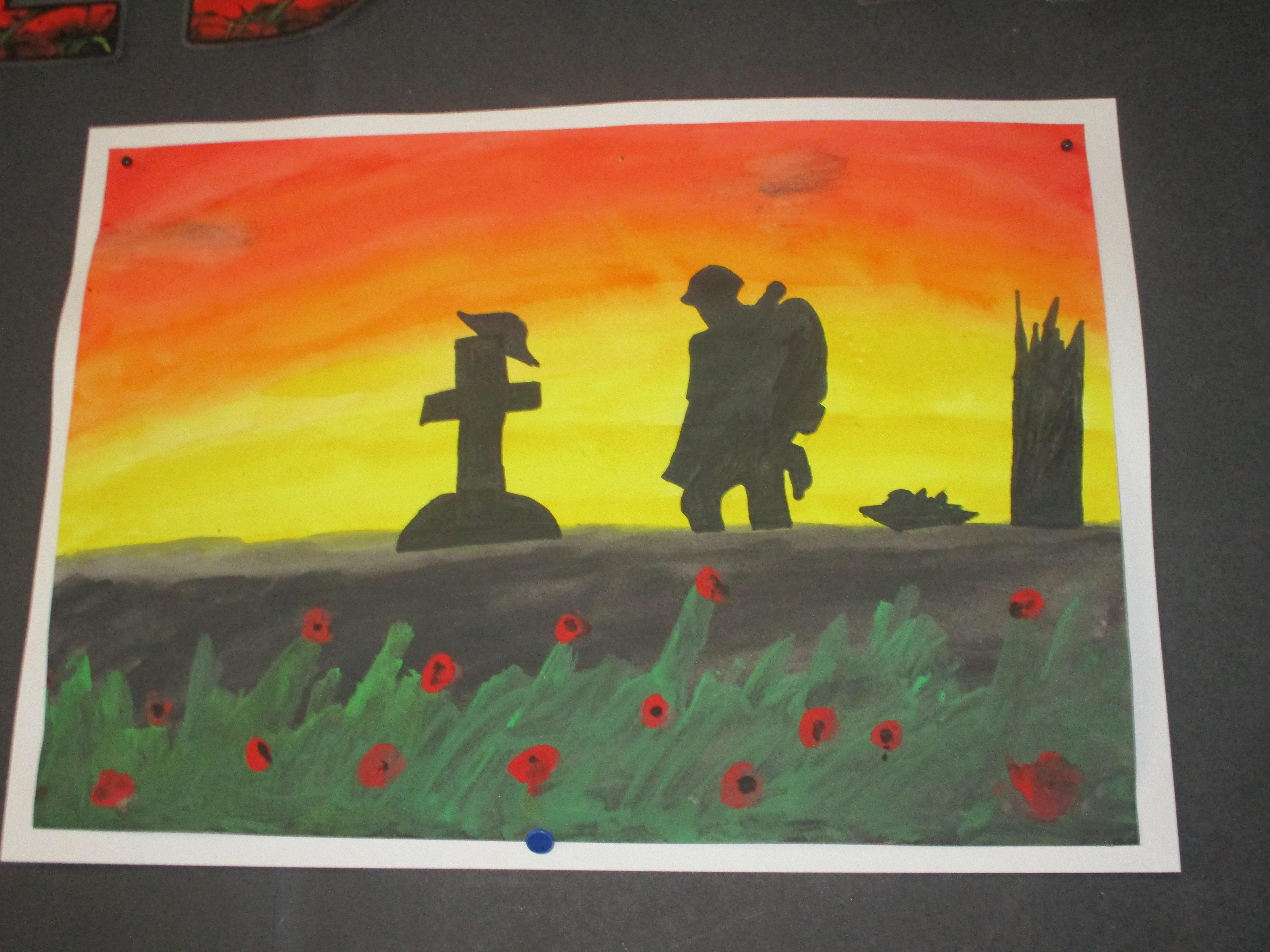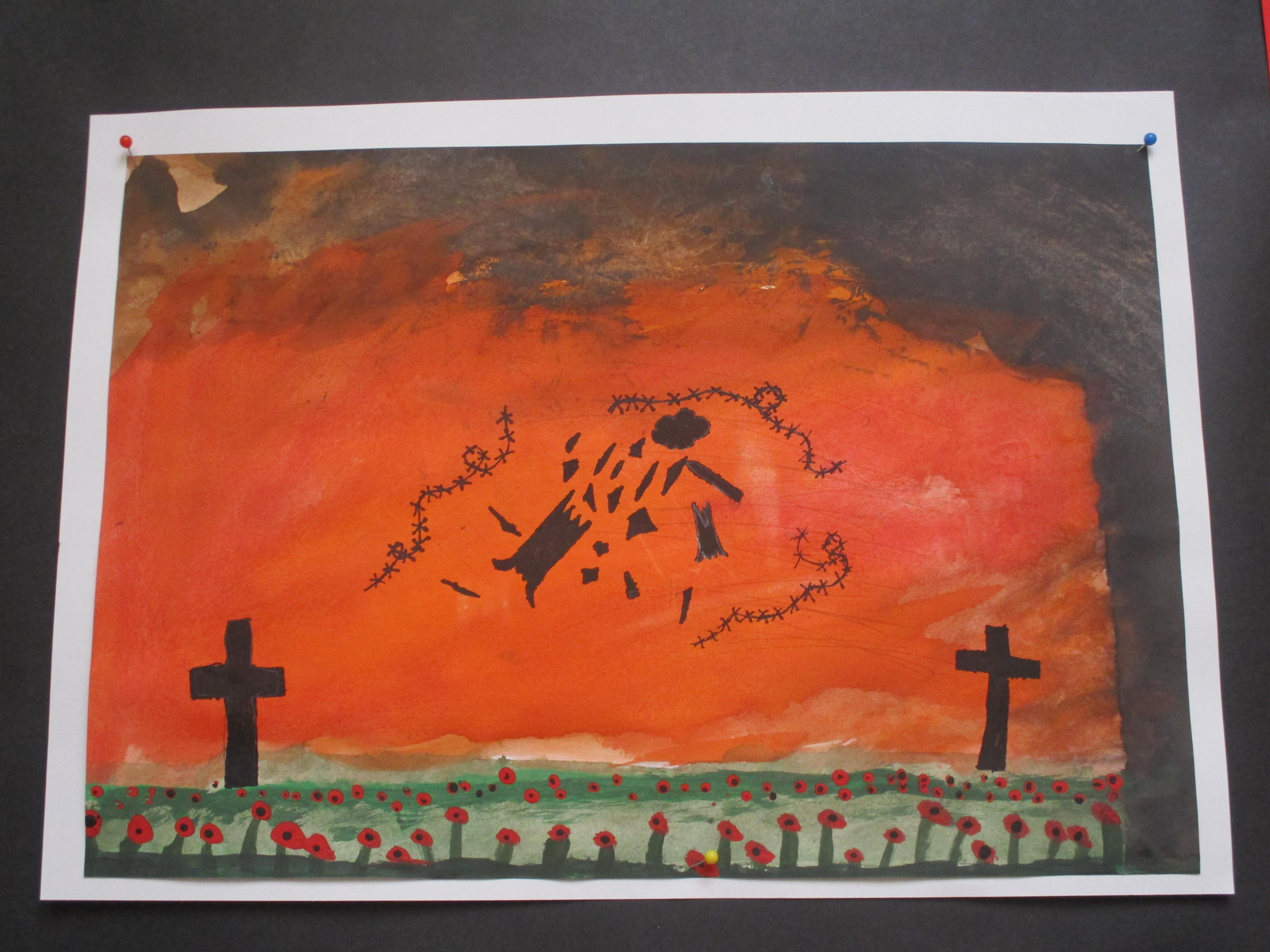 We too had the chance to be artists this week. Following some tuition from the talented Mrs Vincent, we have each created a WWI battlefield scene using colour wash for the sunset and silhouettes for the figures. They are all proudly on display in the hall or our classroom, but you can see photos of them below.