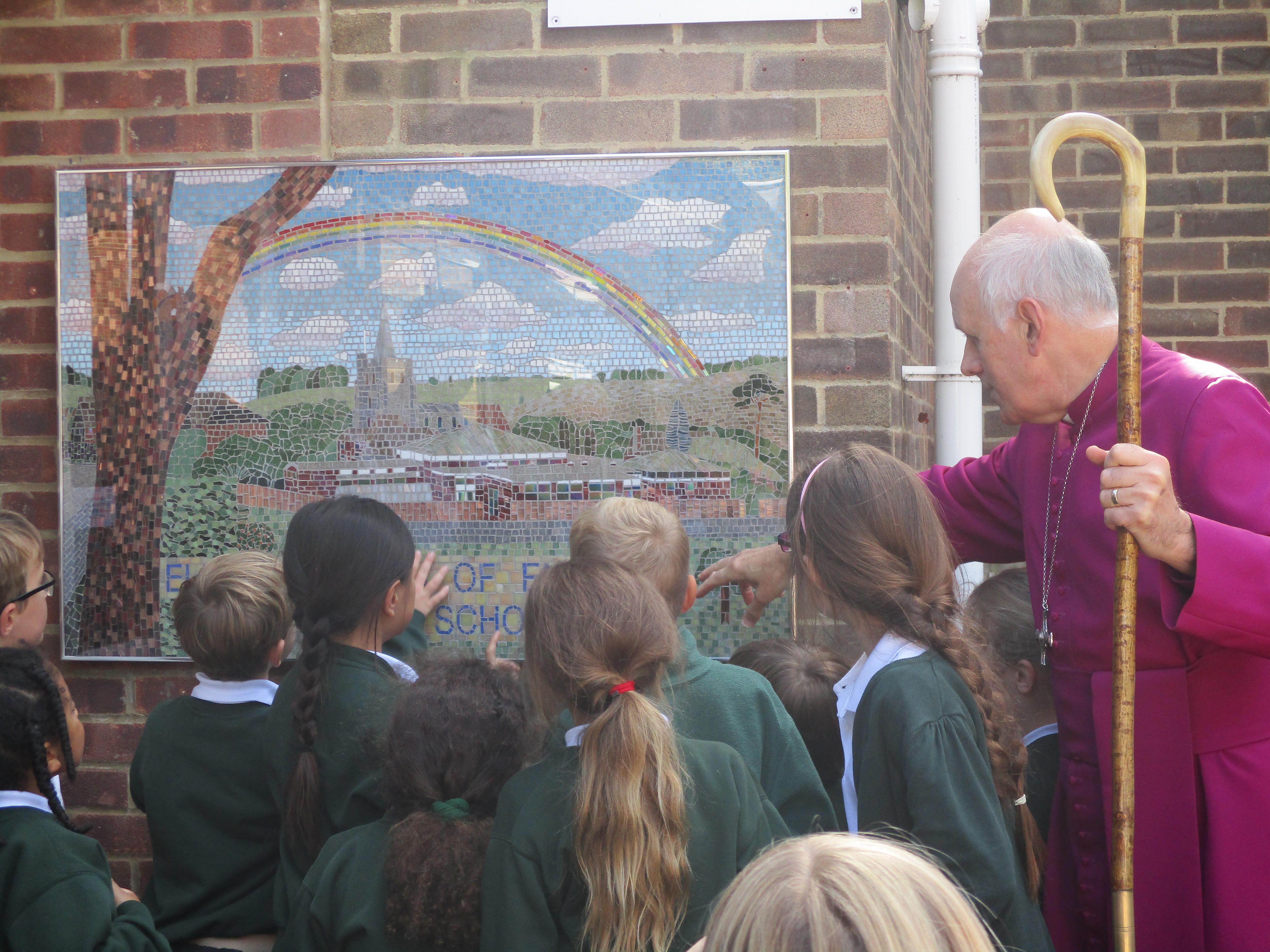 We welcomed a very special visitor into school on Friday afternoon - Trevor Willmott, Bishop of Dover kindly came to visit all of us in class and then stayed on to join in with our celebration assembly. Prior to this, we all gathered outside school to as he unveiled a beautiful new mosaic of our school and church designed and created for us by one of our governors, Graham Ernst Jones. It is a wonderful piece of artwork and a lovely addition to our school, so thank you Mr Jones for your time and talent. Next time you come to the school reception have a good look at it and see if you can spot the squirrel (put there are Mr Files' request!).