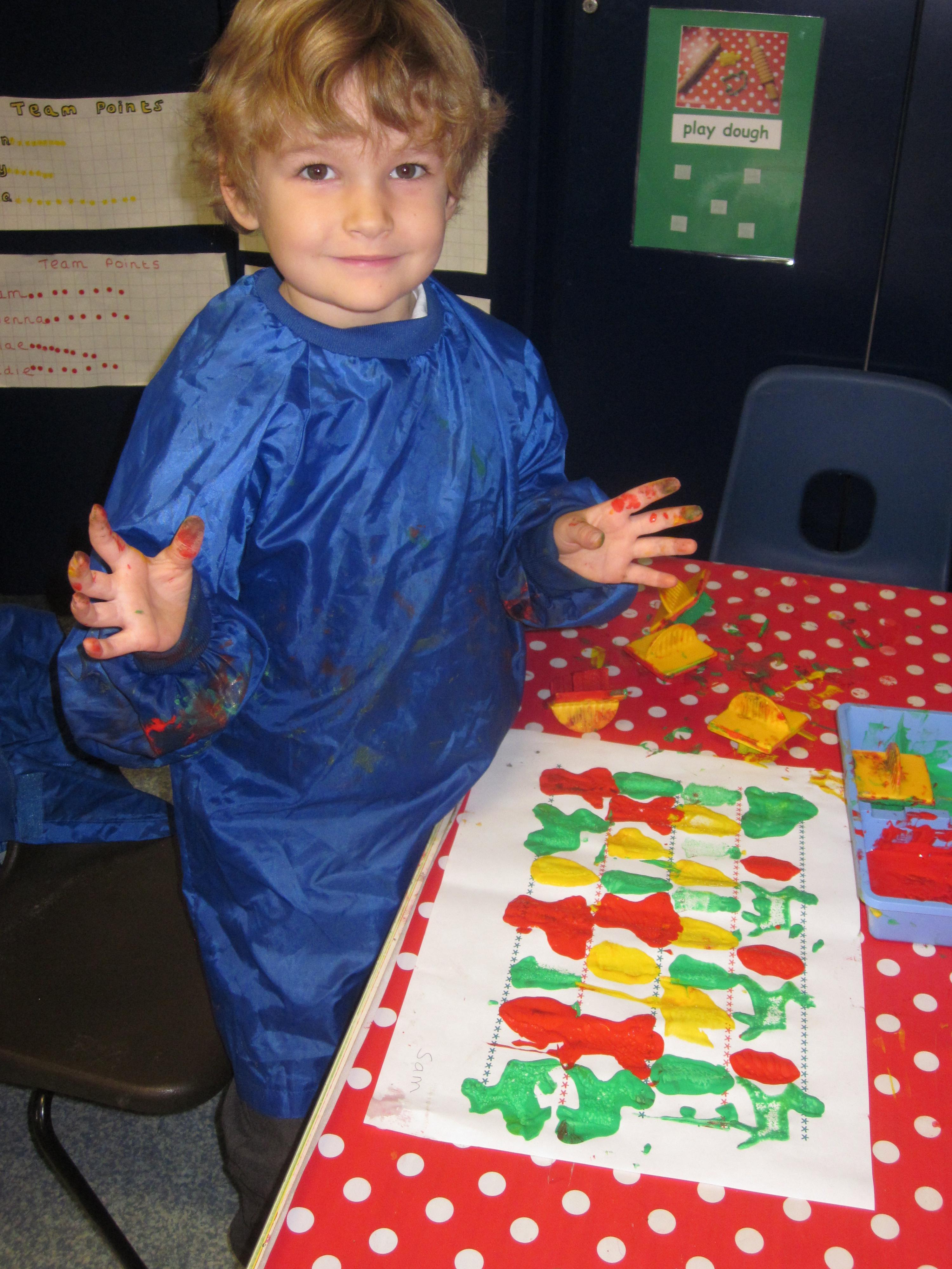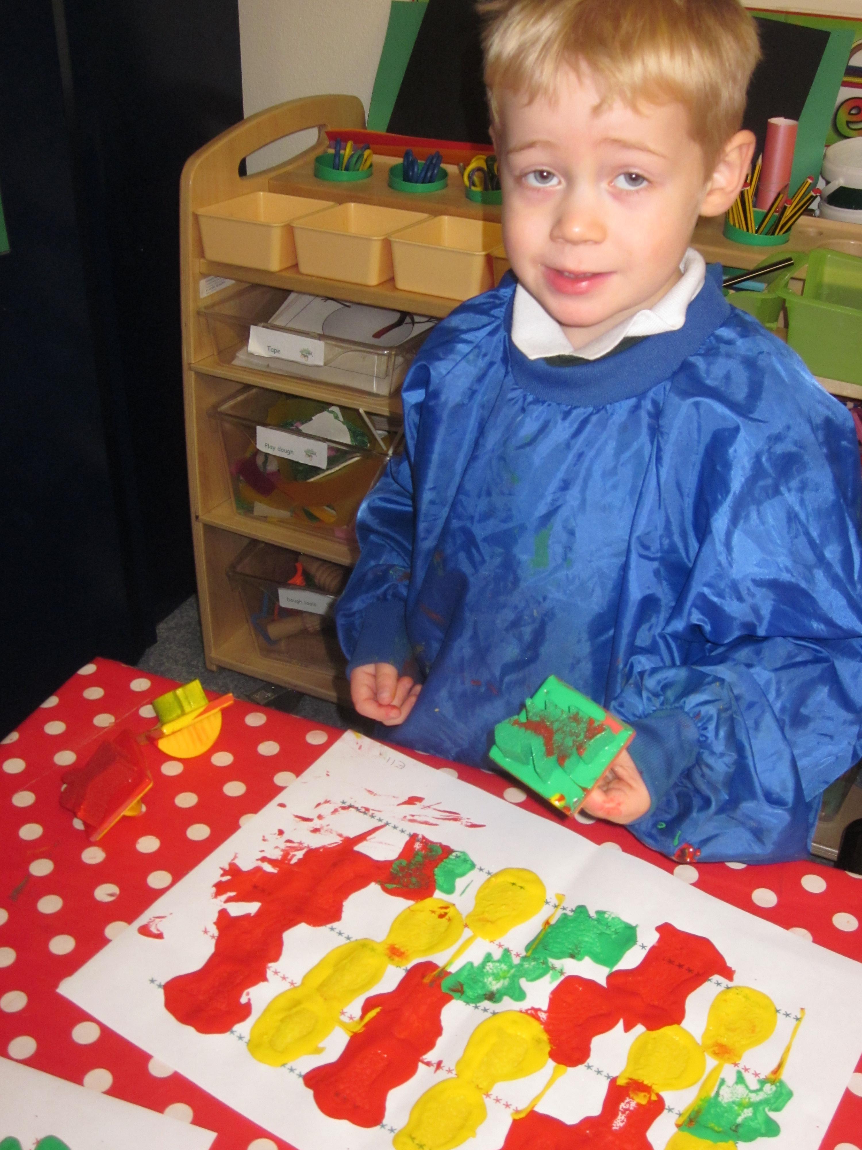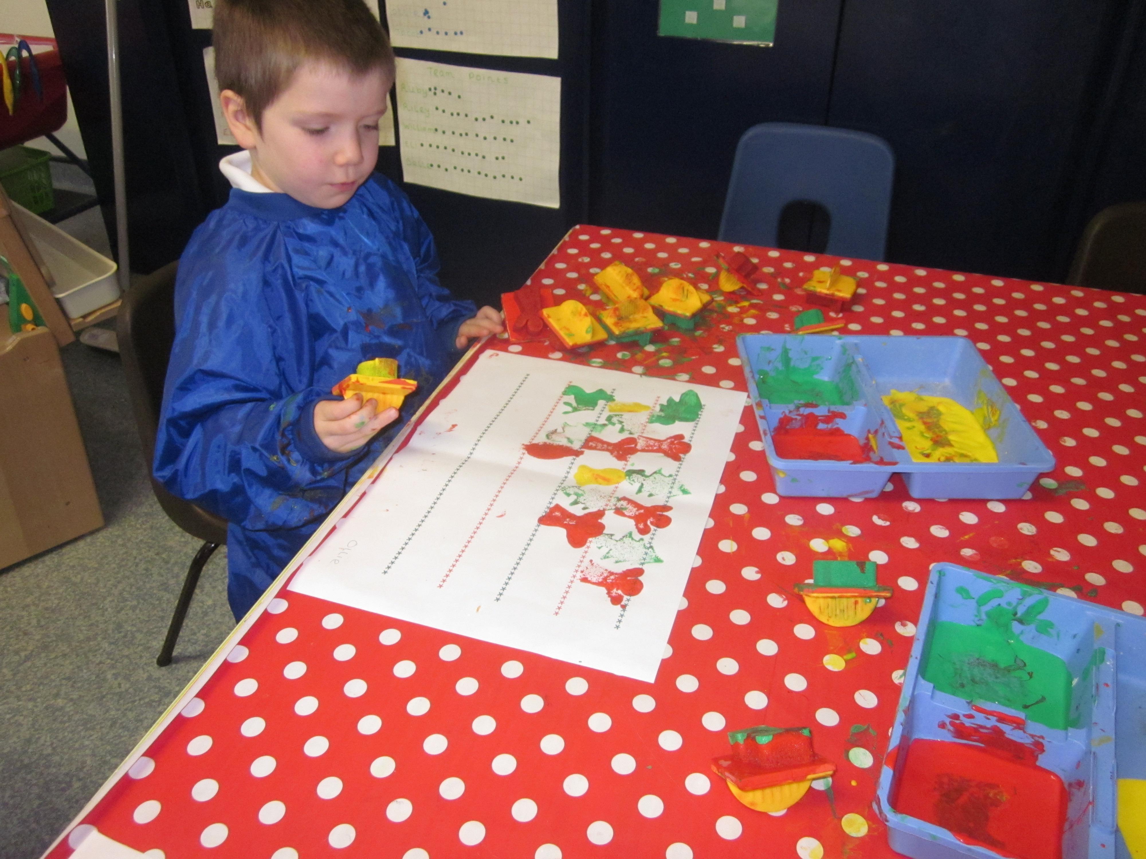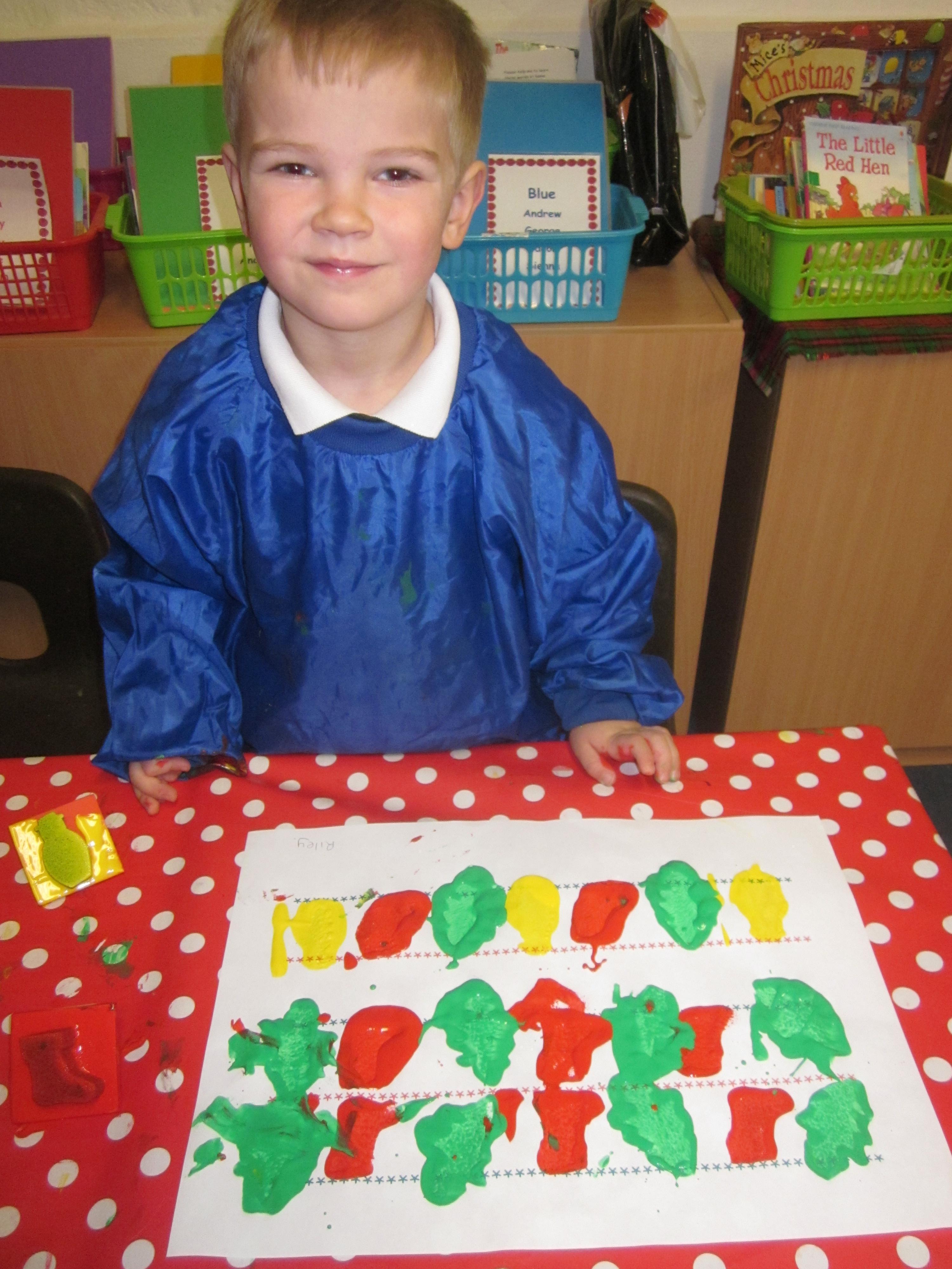 We have made lots of Christmas craft. We have even printed our own wrapping paper using a repeating pattern. we hope you like it.