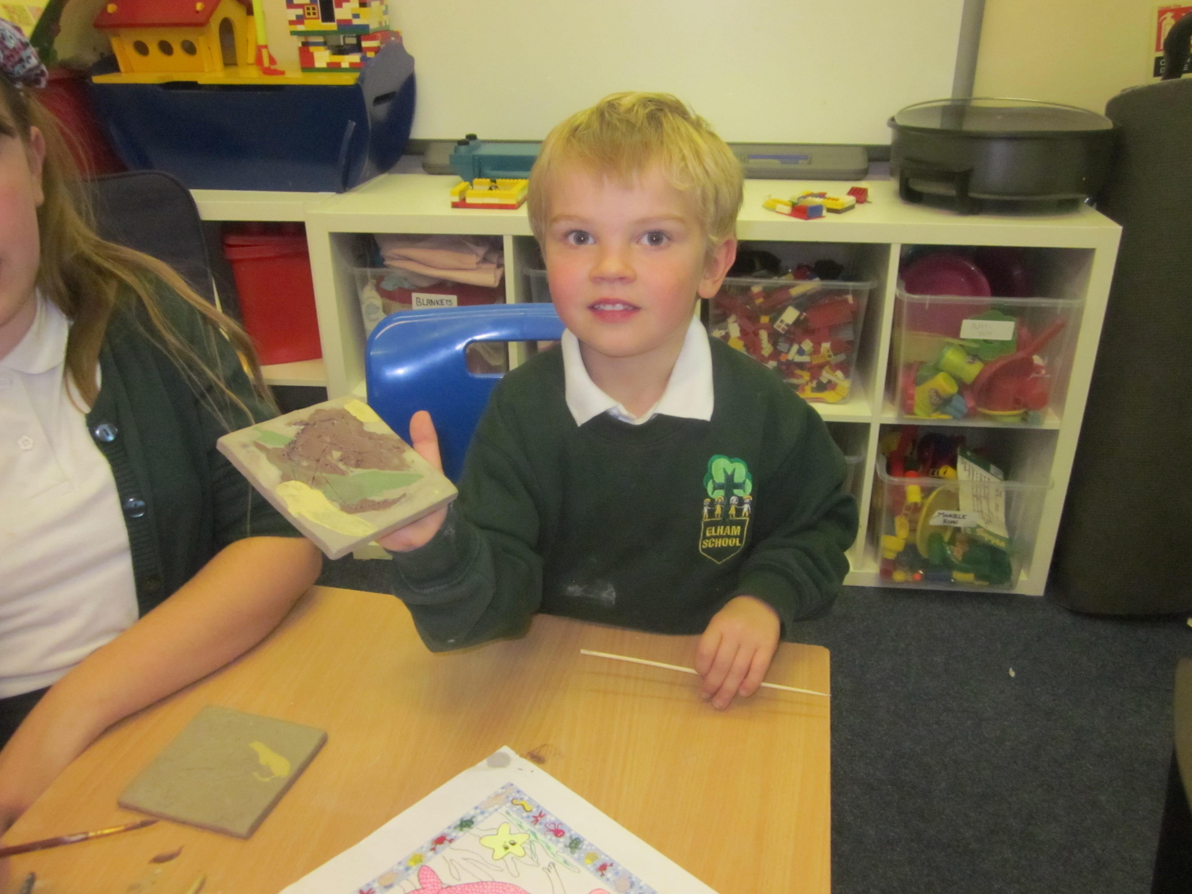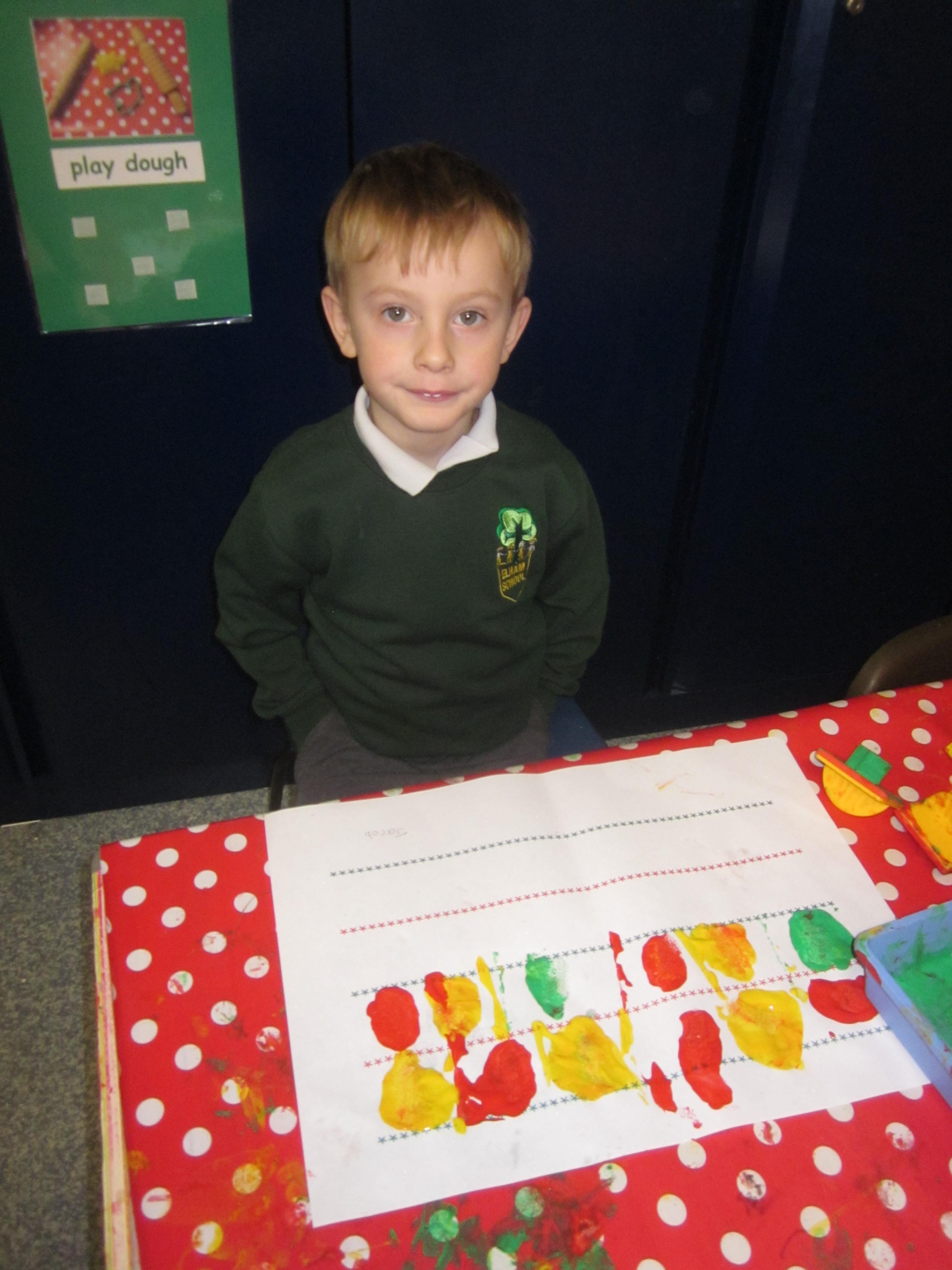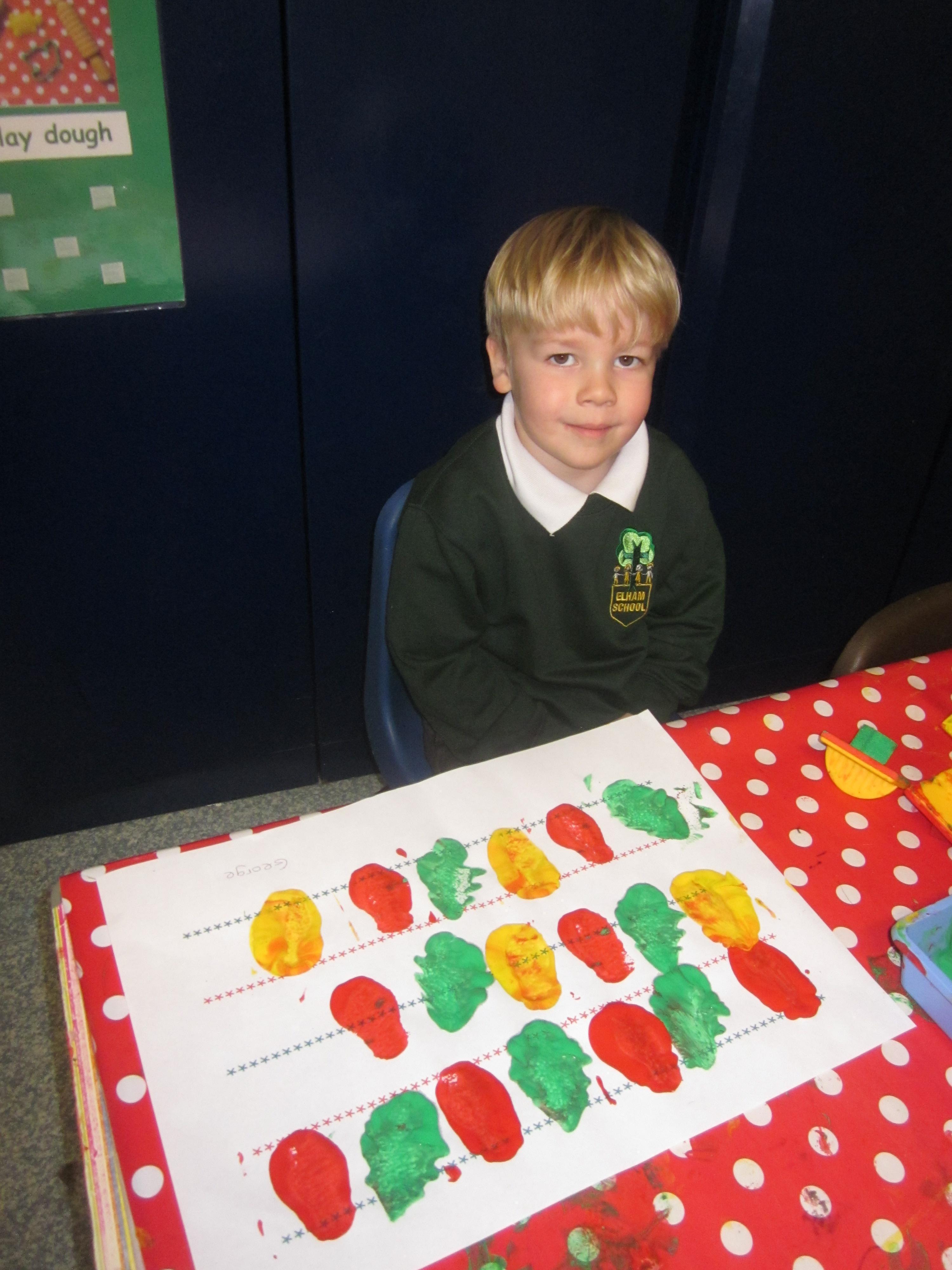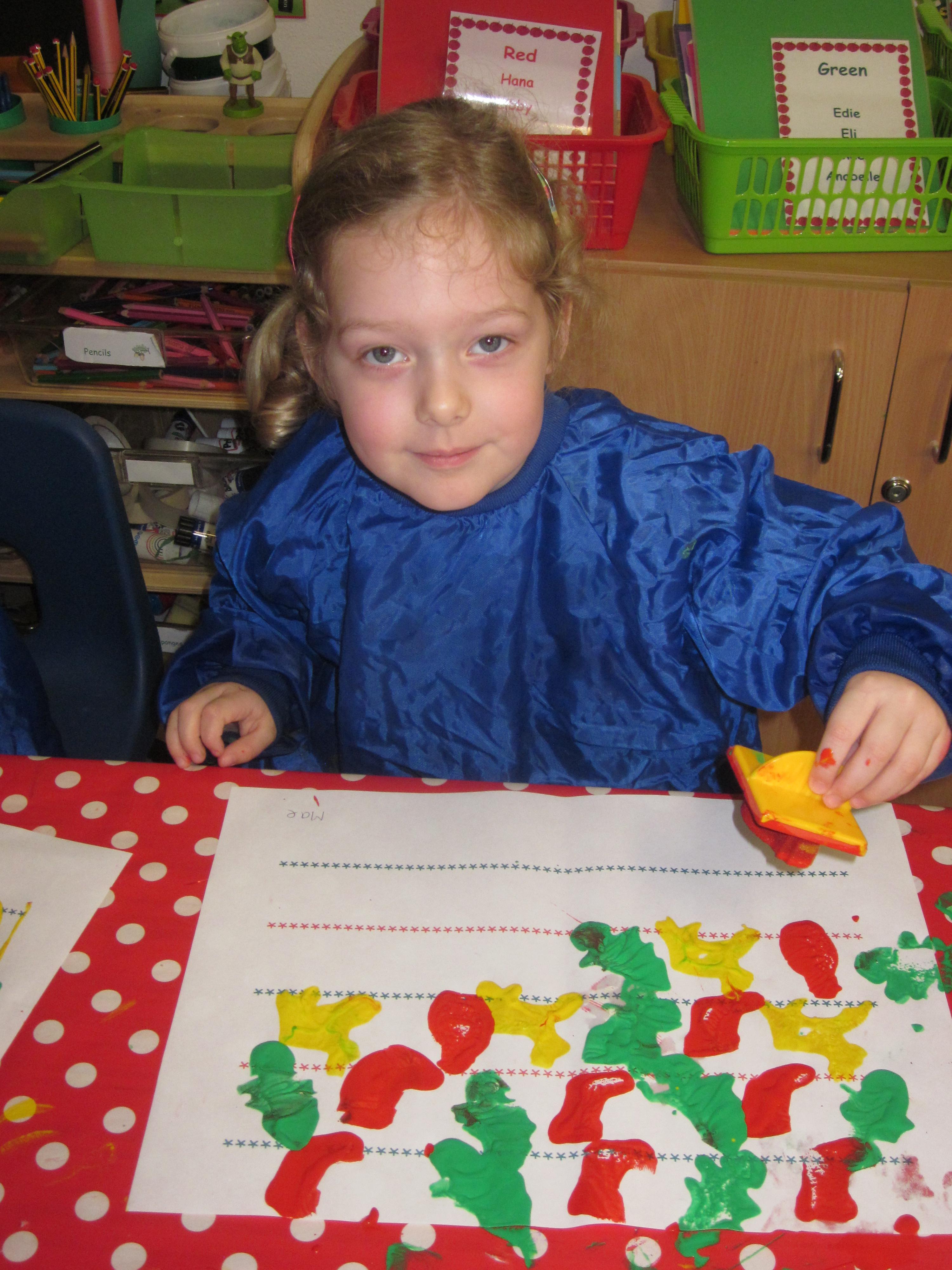 We have made lots of Christmas craft. We have even printed our own wrapping paper using a repeating pattern. we hope you like it.