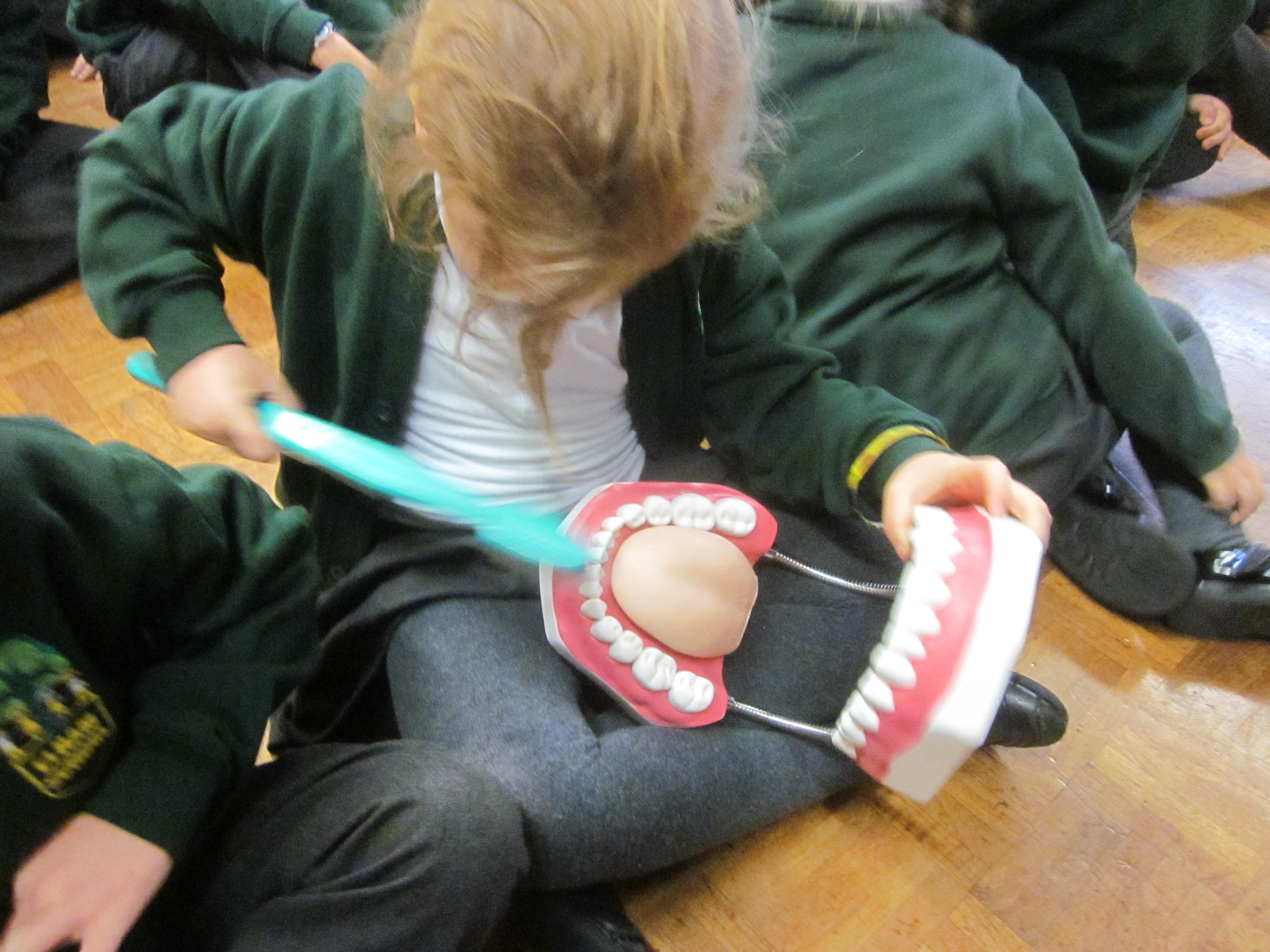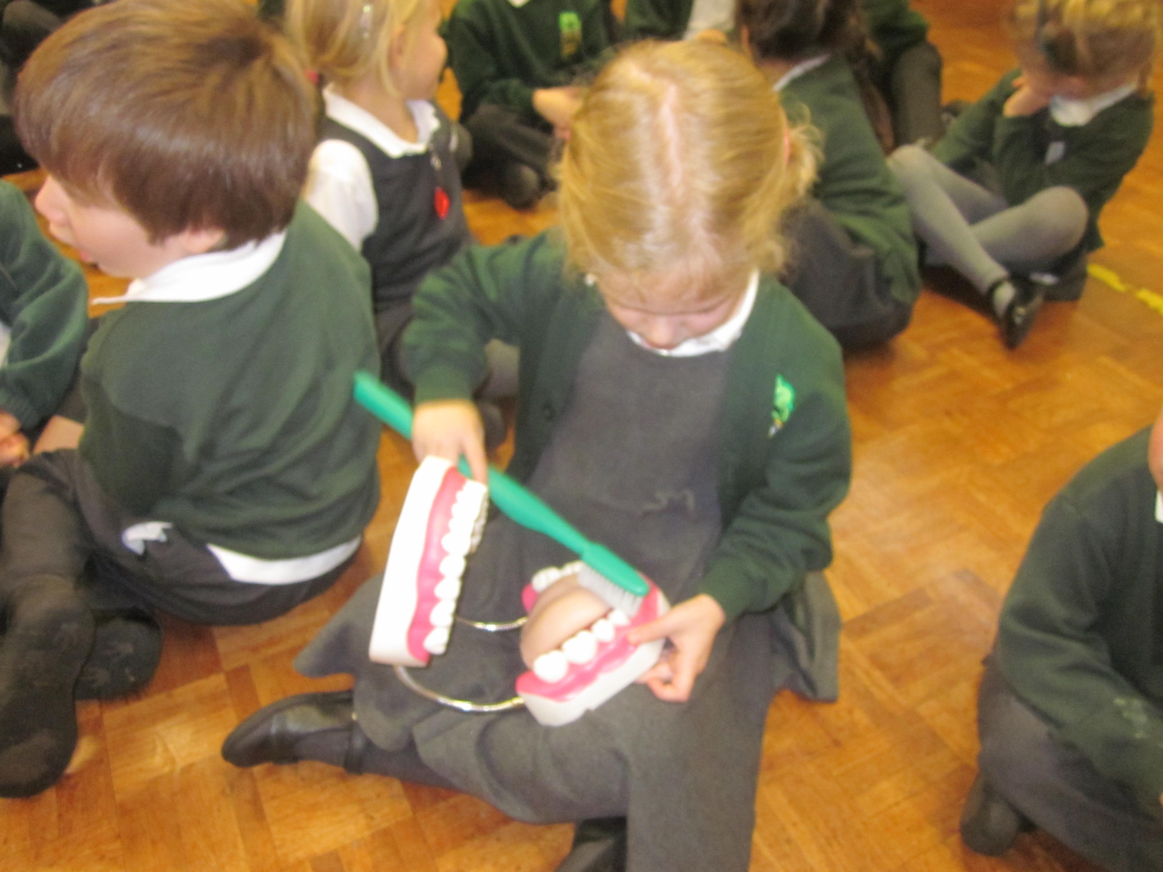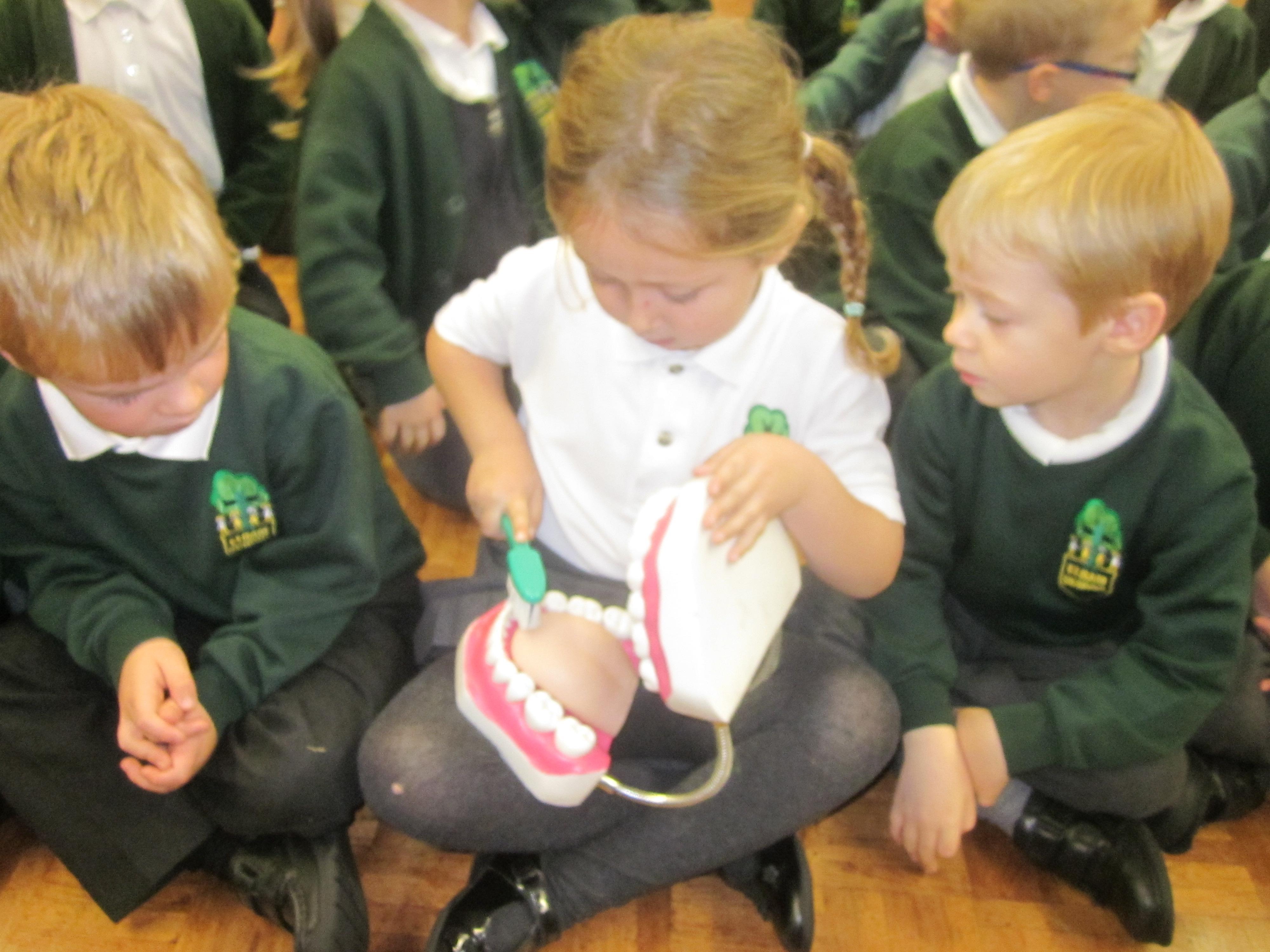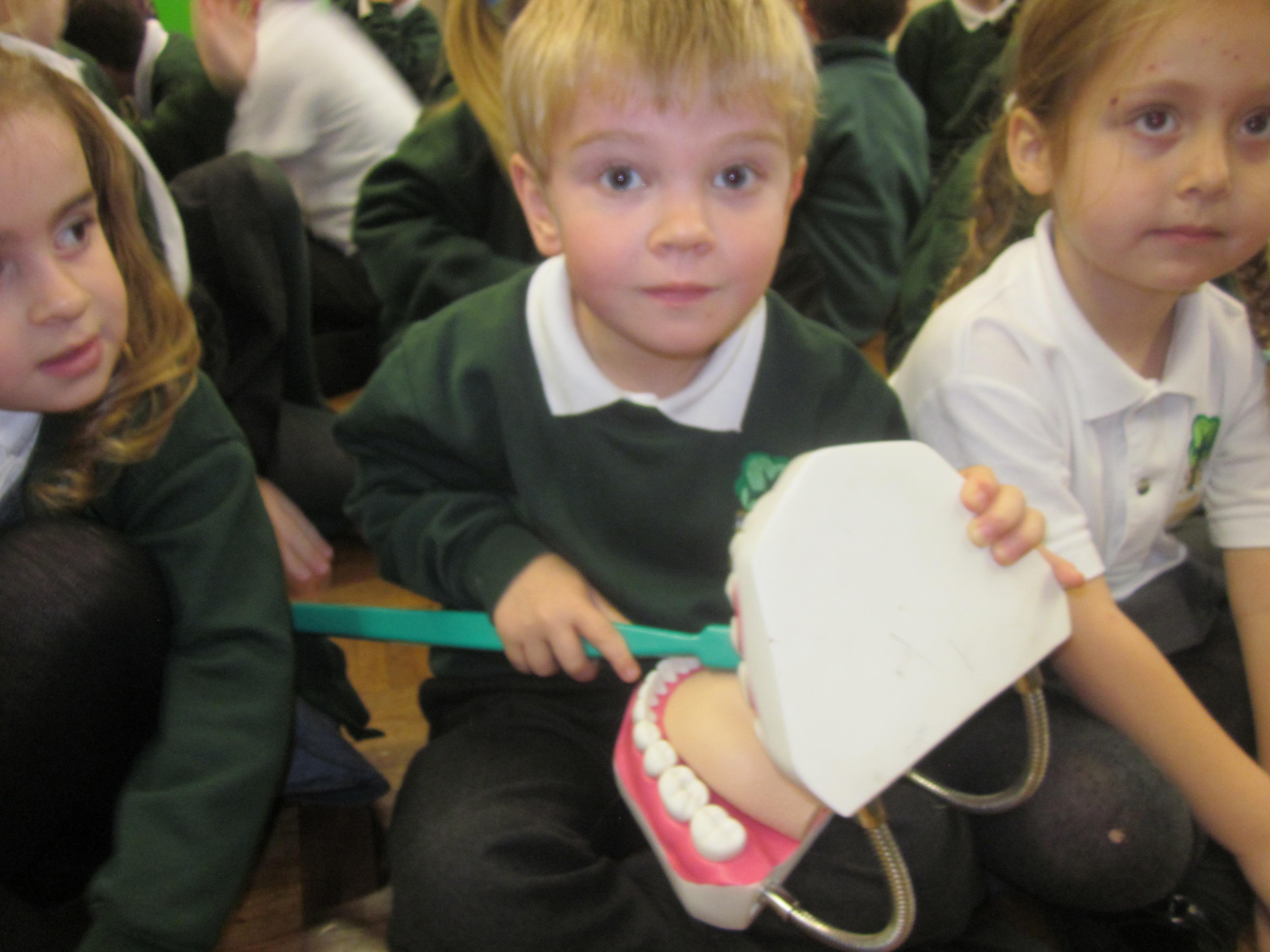 On Tuesday Adele a dental health expert came in to talk to the children about how to look after their teeth. I wonder if they remember how they should brush and how much toothpaste they should use.