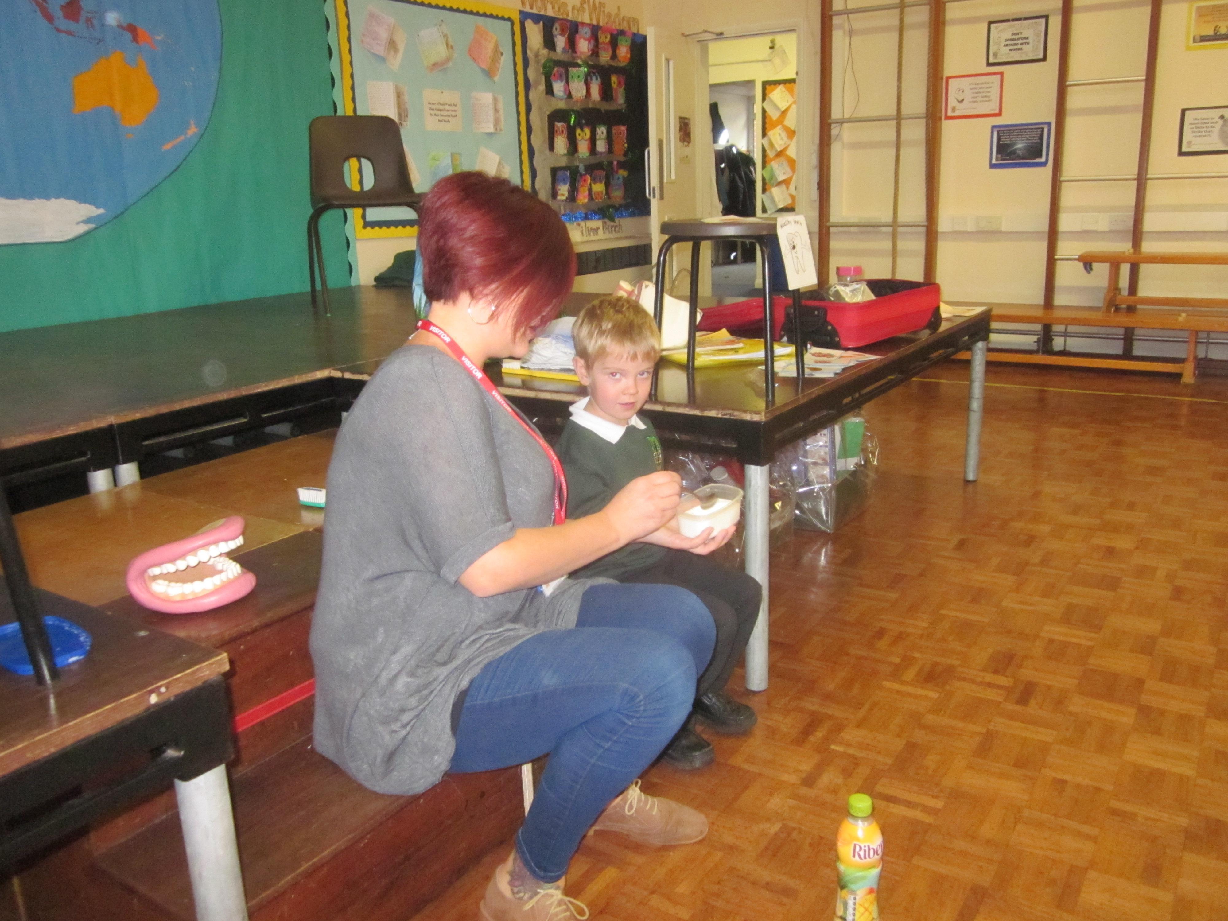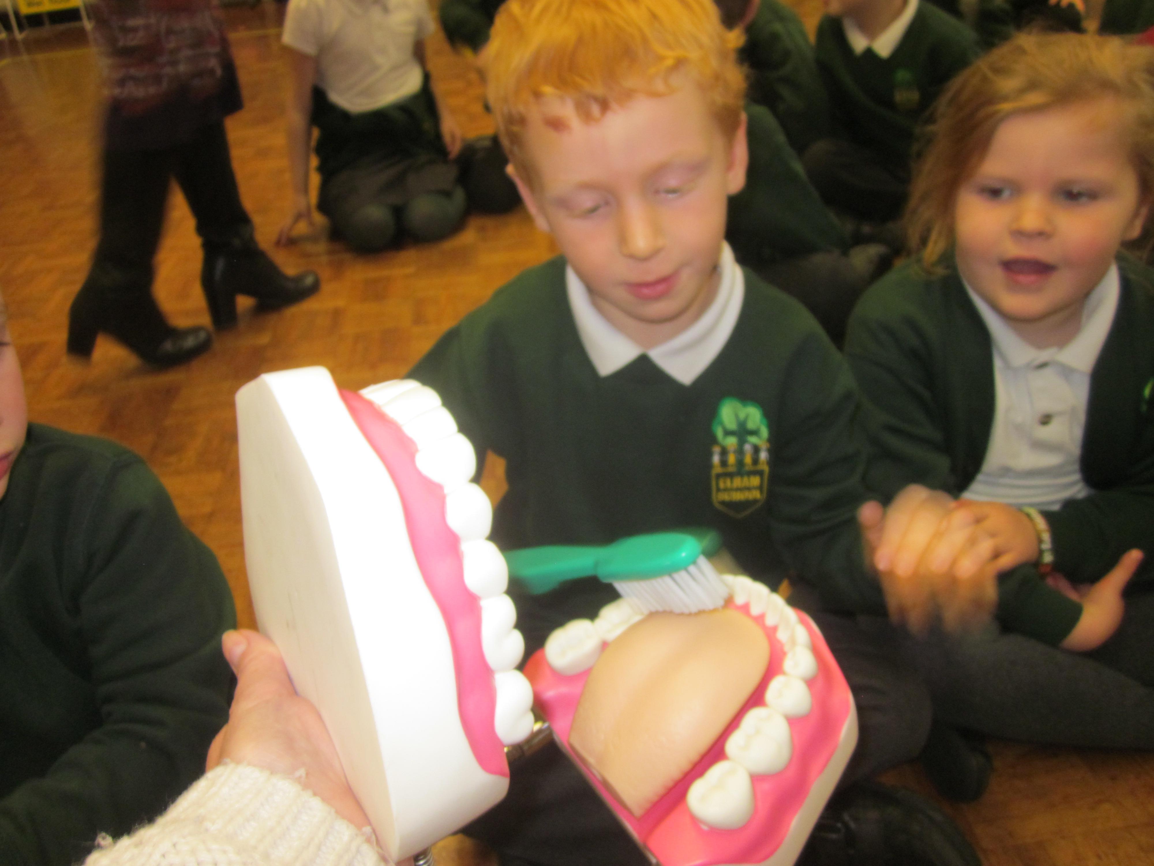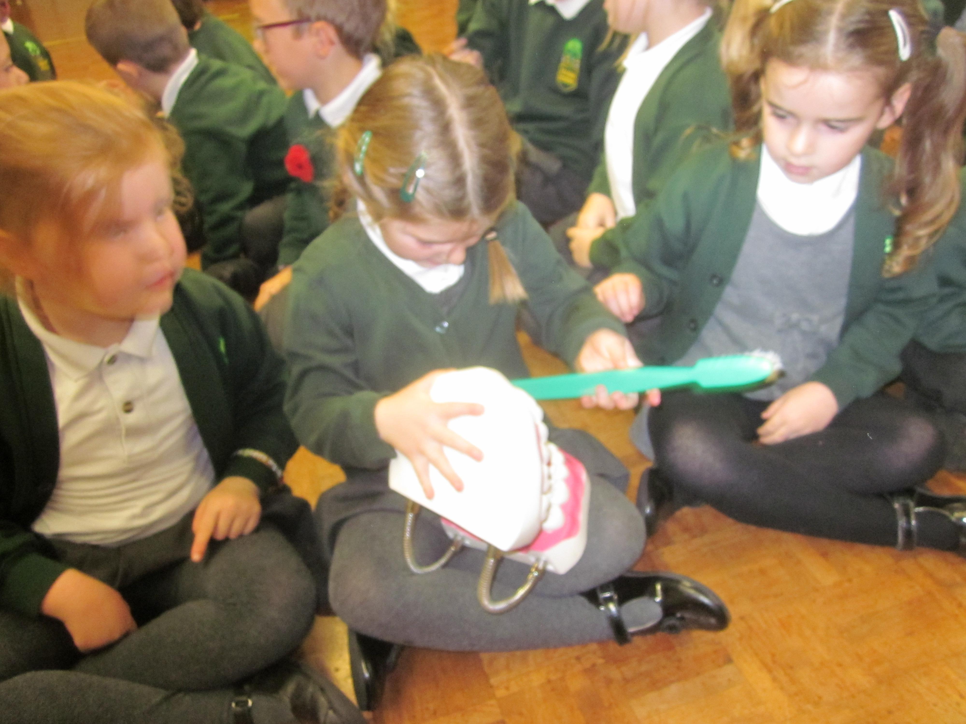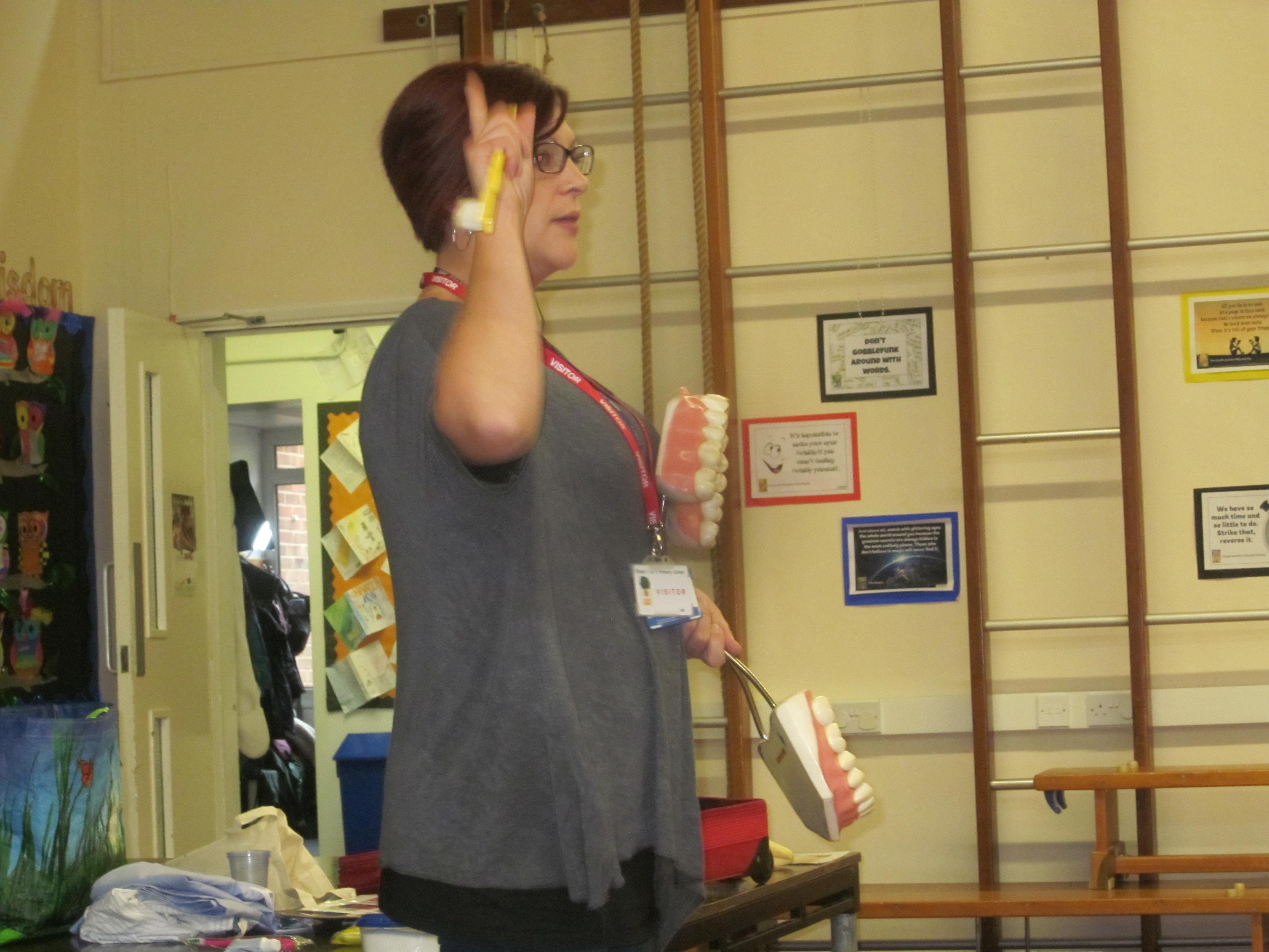 On Tuesday Adele a dental health expert came in to talk to the children about how to look after their teeth. I wonder if they remember how they should brush and how much toothpaste they should use.