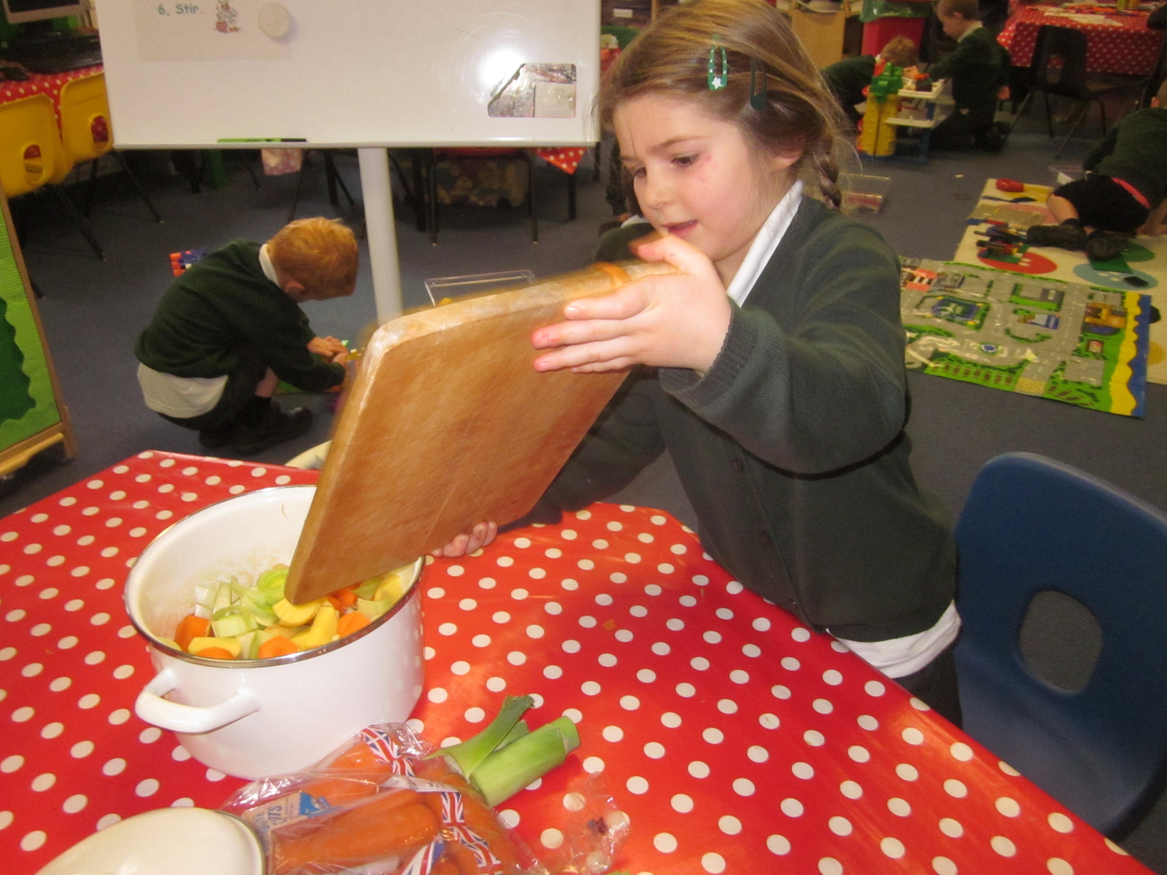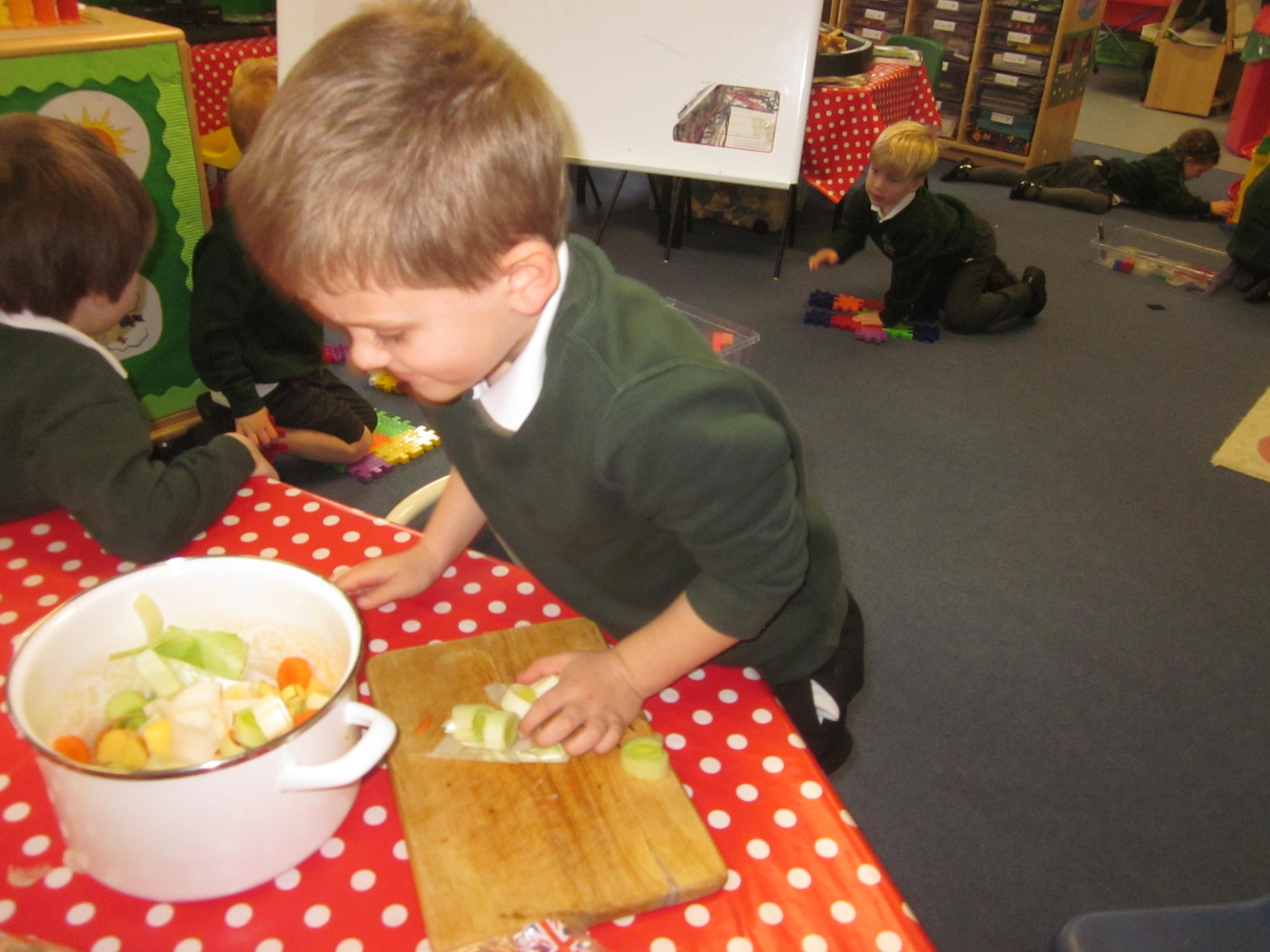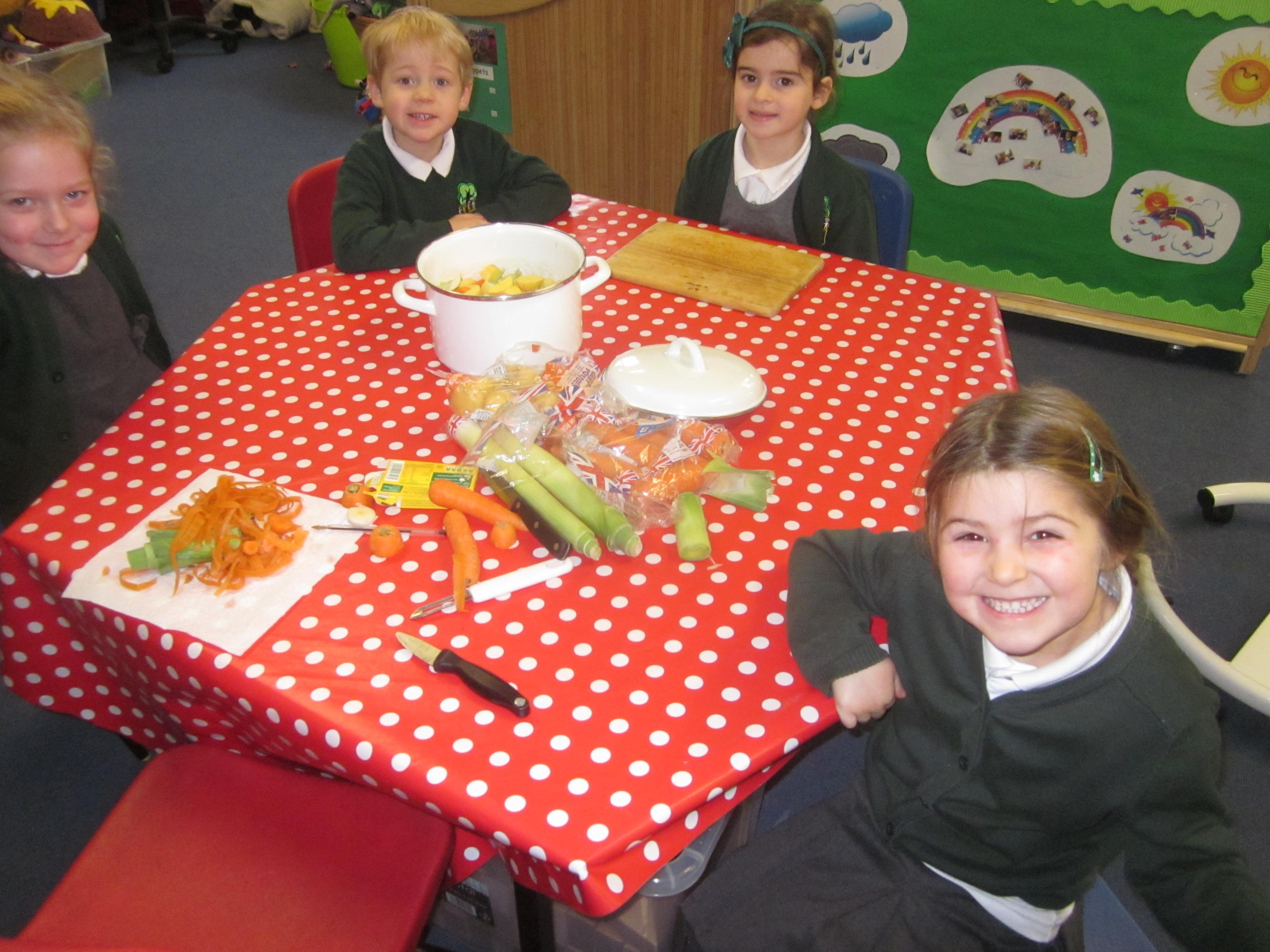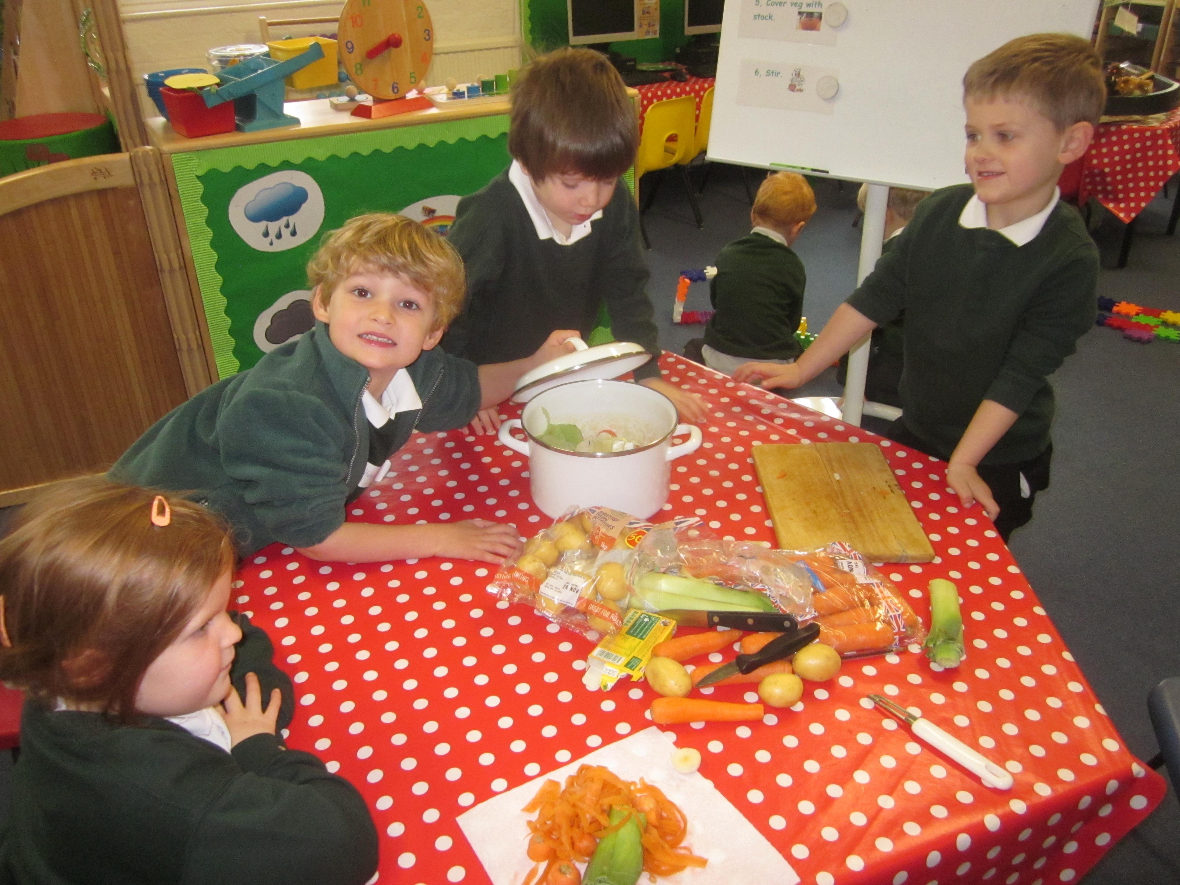 This week we have probably had too much fun! We have been looking for Gruffalo’s in the school grounds. We decided that to stop the Gruffalo wanting to eat the mouse we would make him some Gruffalo soup. For our Maths we shared out the ingredients we needed, and for our English we followed instructions to make the soup.