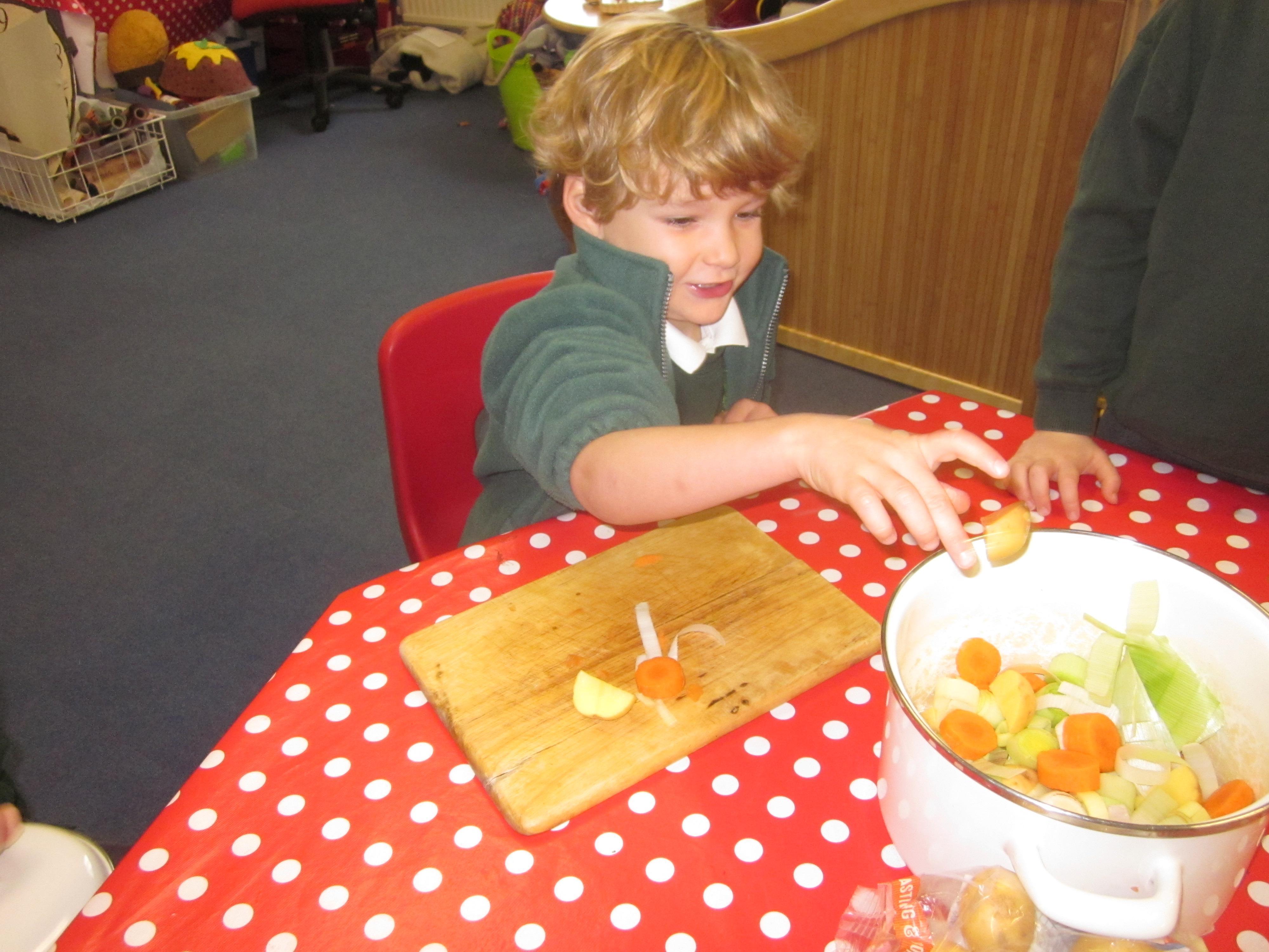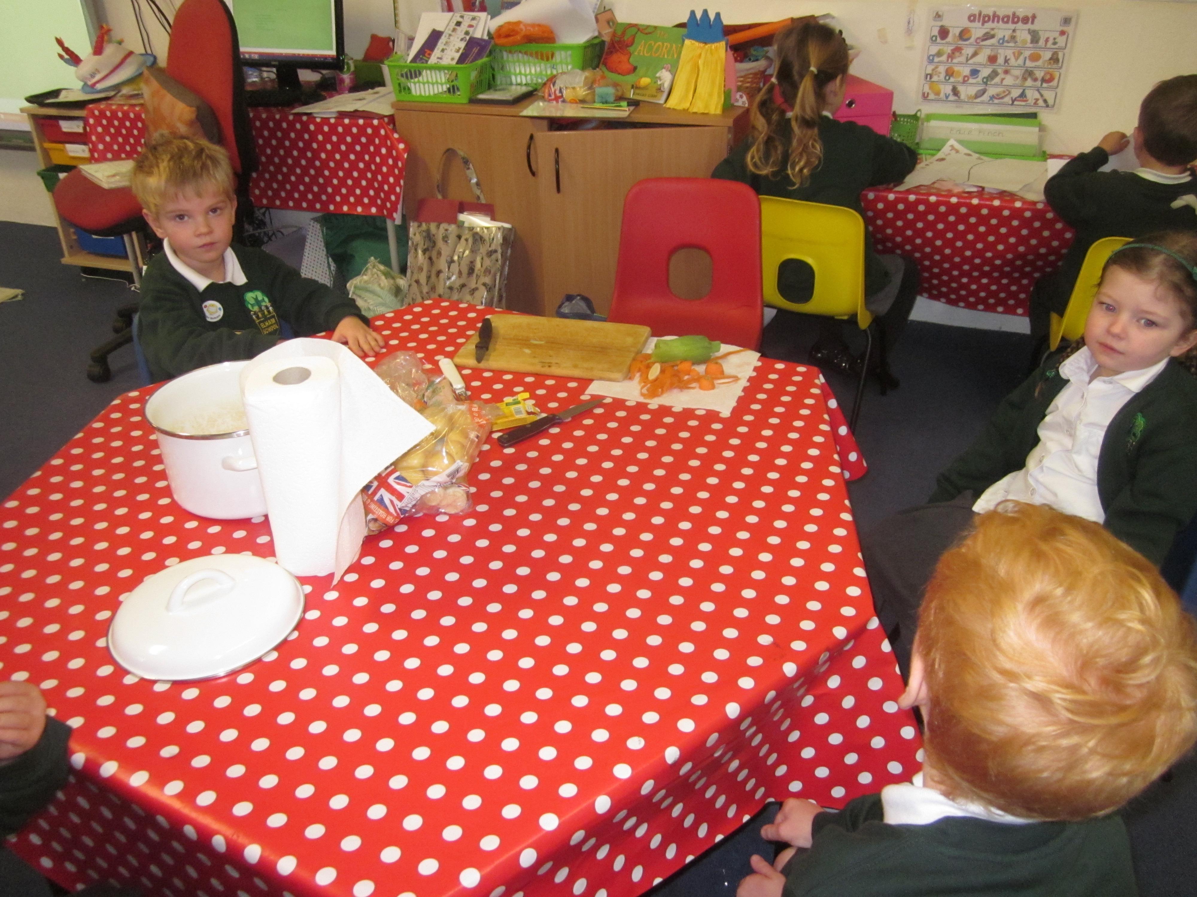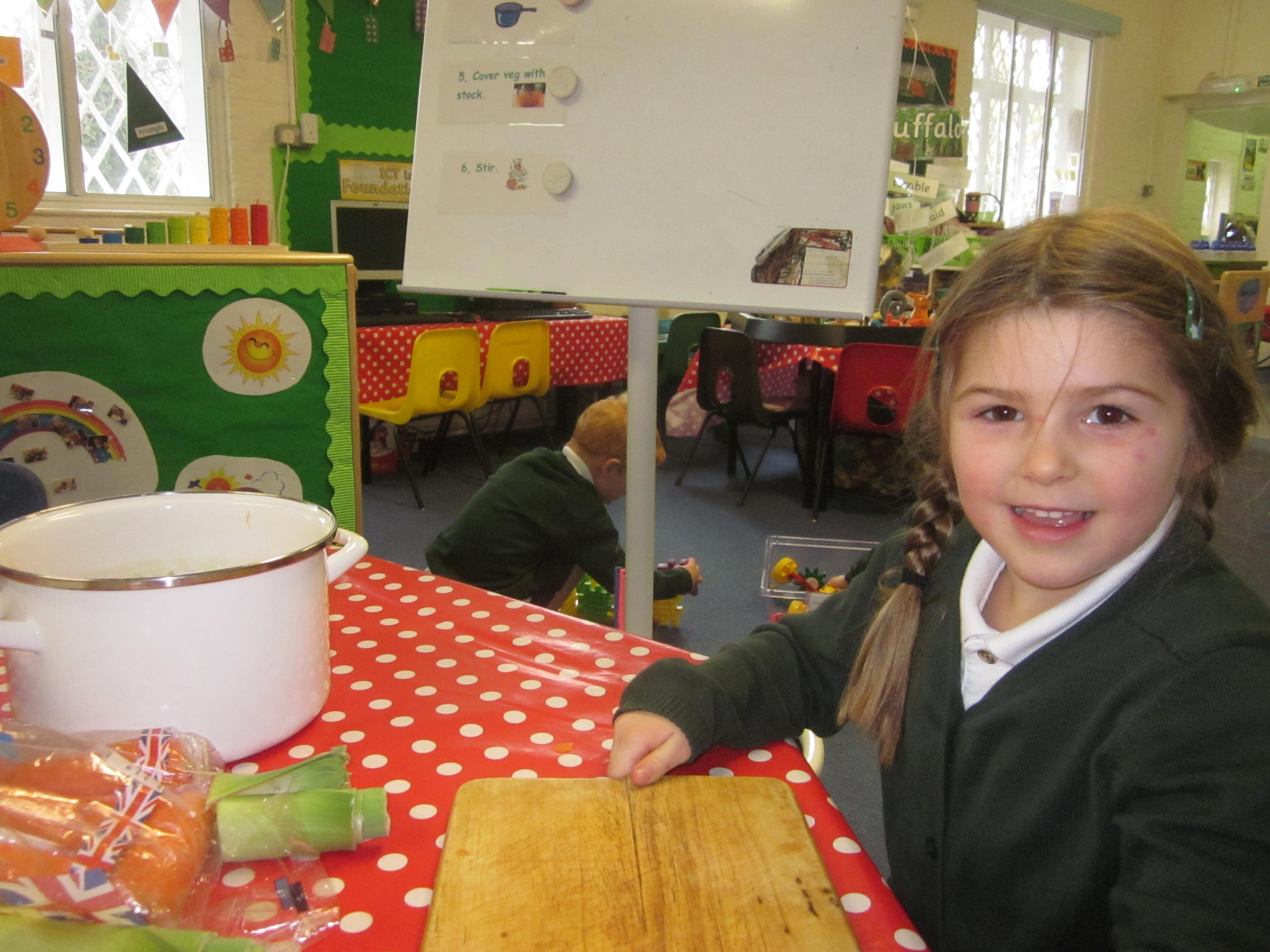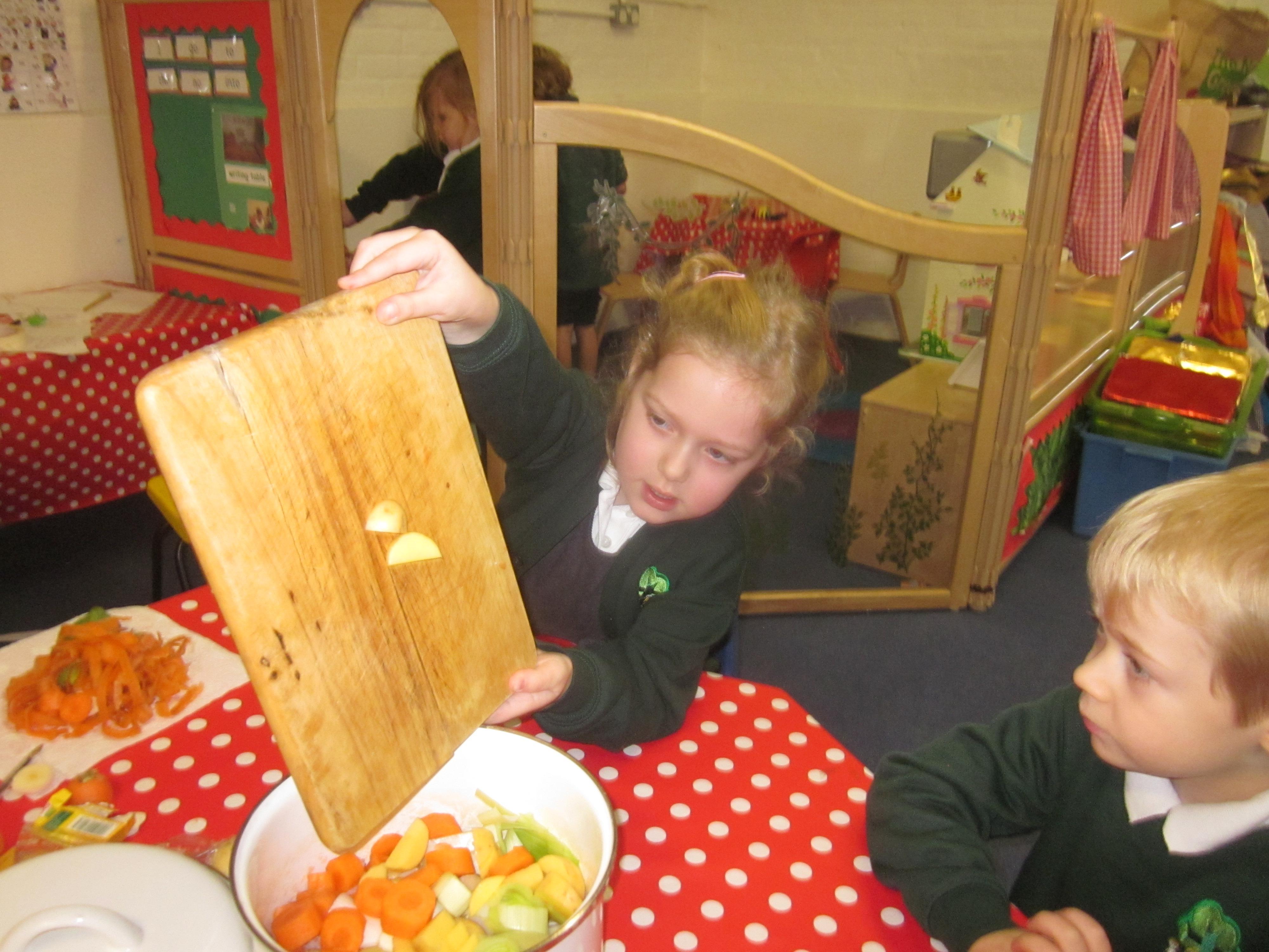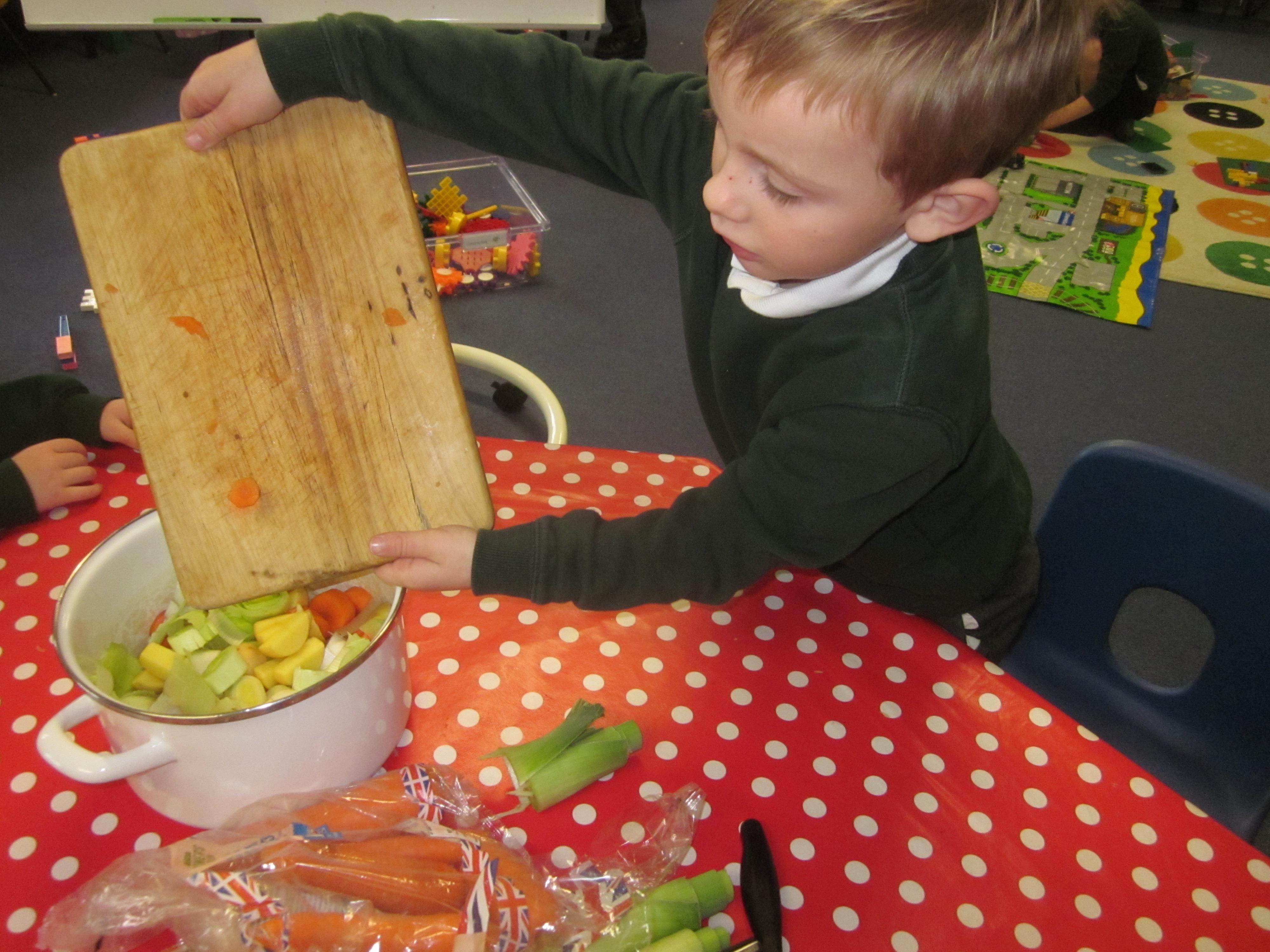This week we have probably had too much fun! We have been looking for Gruffalo’s in the school grounds. We decided that to stop the Gruffalo wanting to eat the mouse we would make him some Gruffalo soup. For our Maths we shared out the ingredients we needed, and for our English we followed instructions to make the soup.