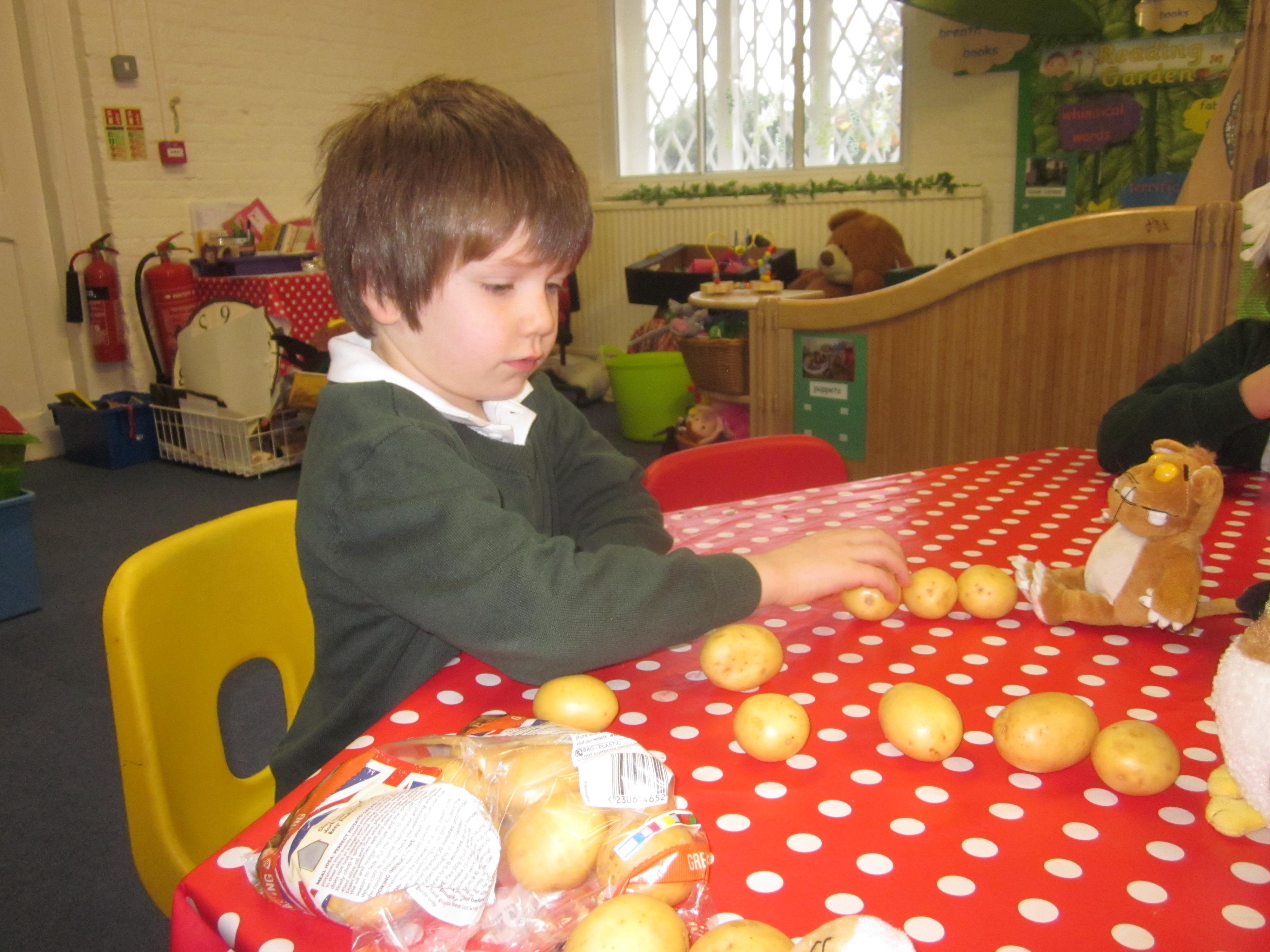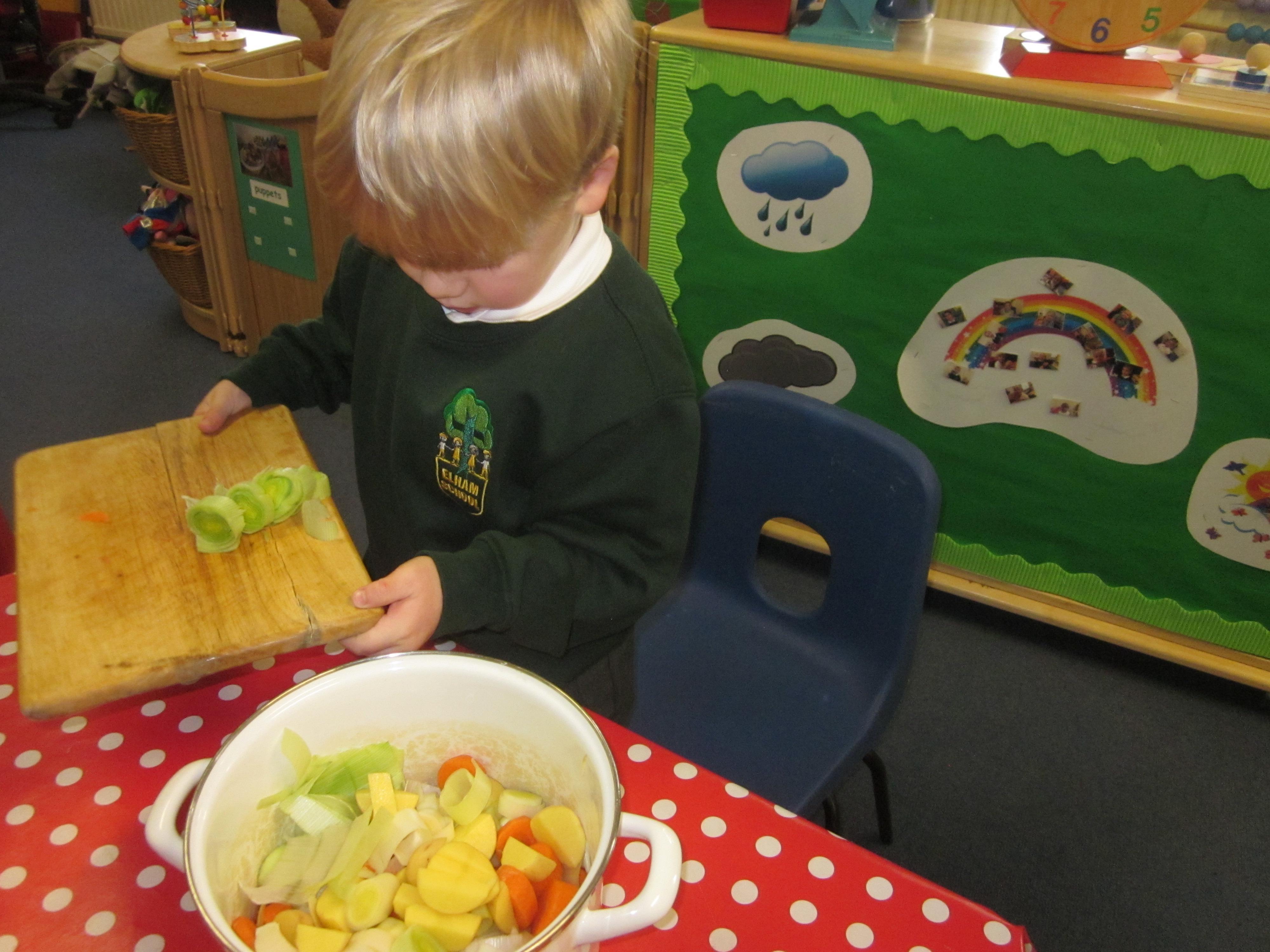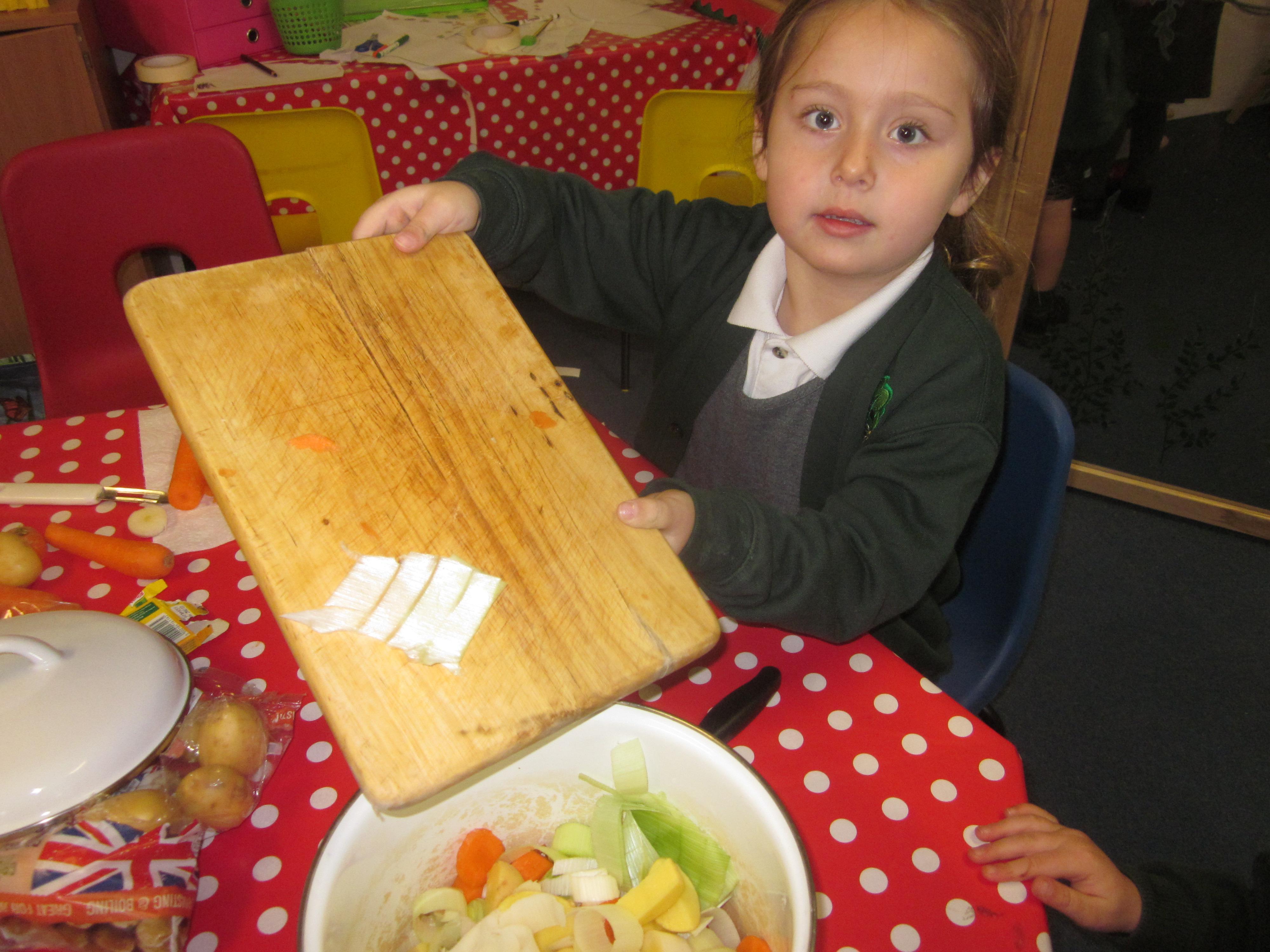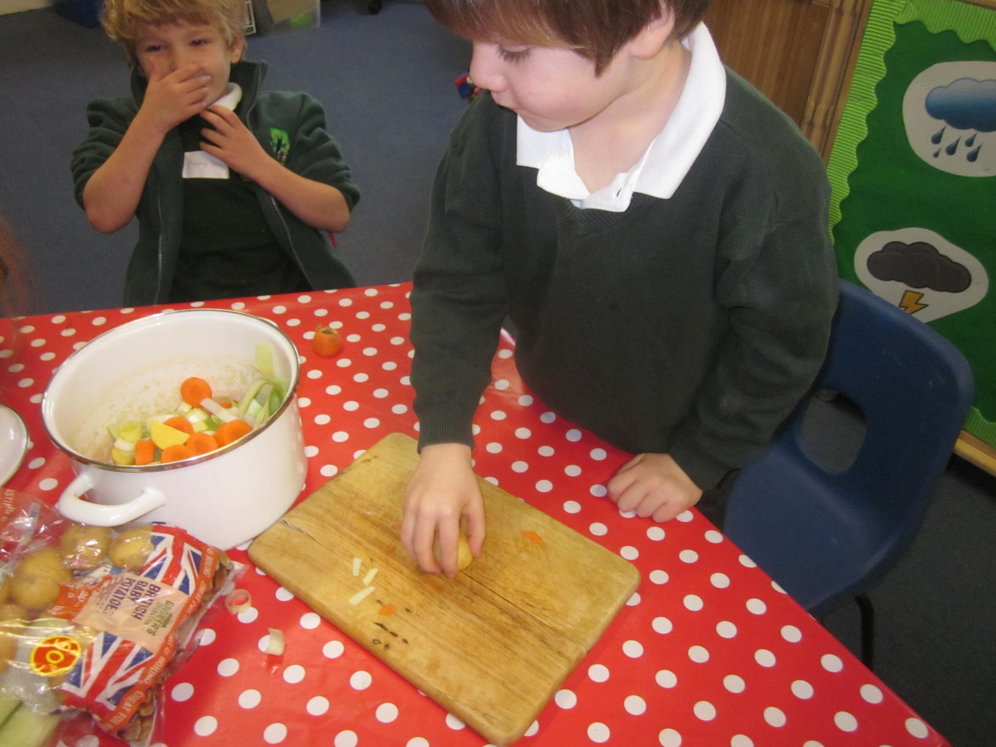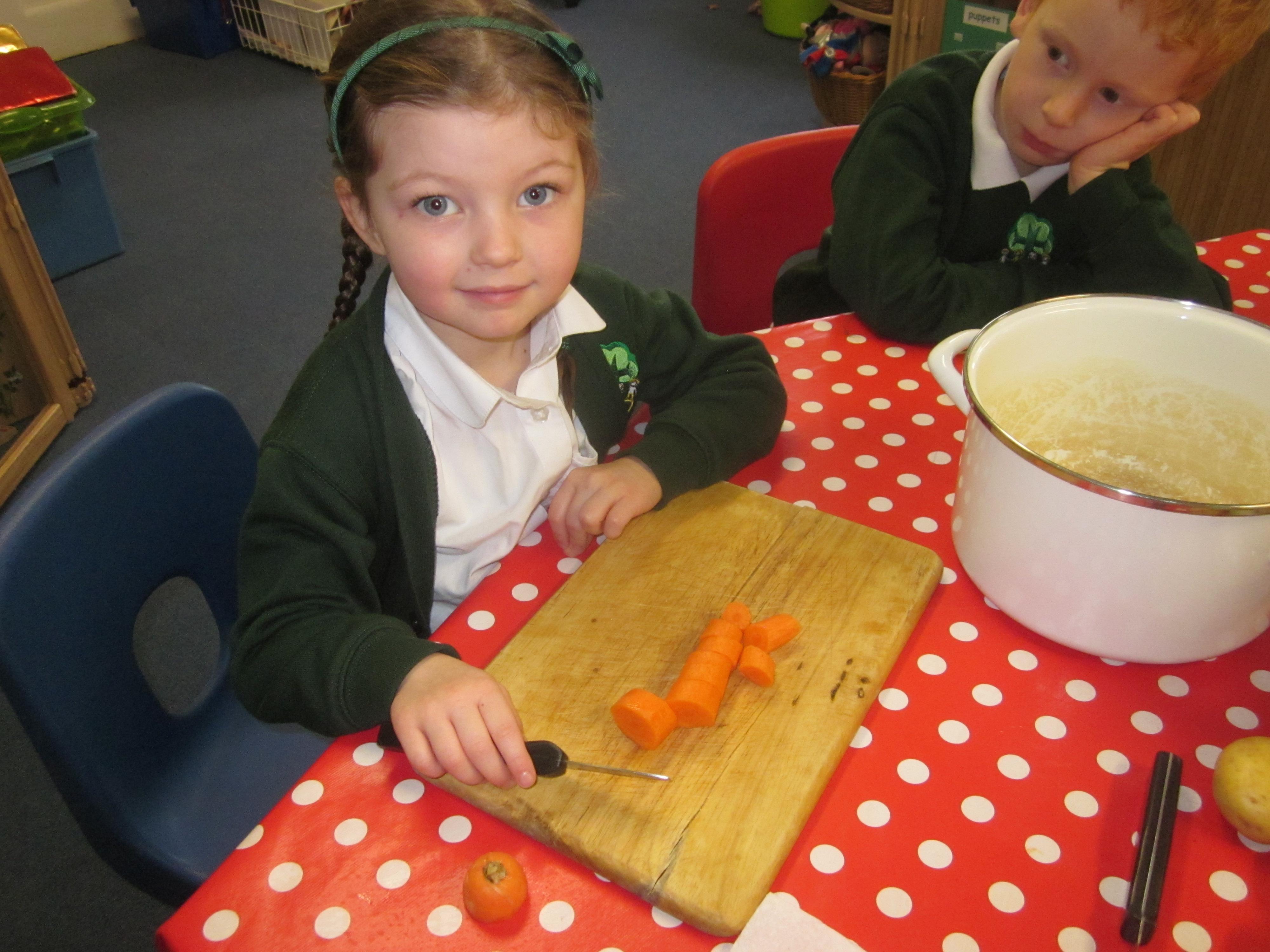 This week we have probably had too much fun! We have been looking for Gruffalo’s in the school grounds. We decided that to stop the Gruffalo wanting to eat the mouse we would make him some Gruffalo soup. For our Maths we shared out the ingredients we needed, and for our English we followed instructions to make the soup.