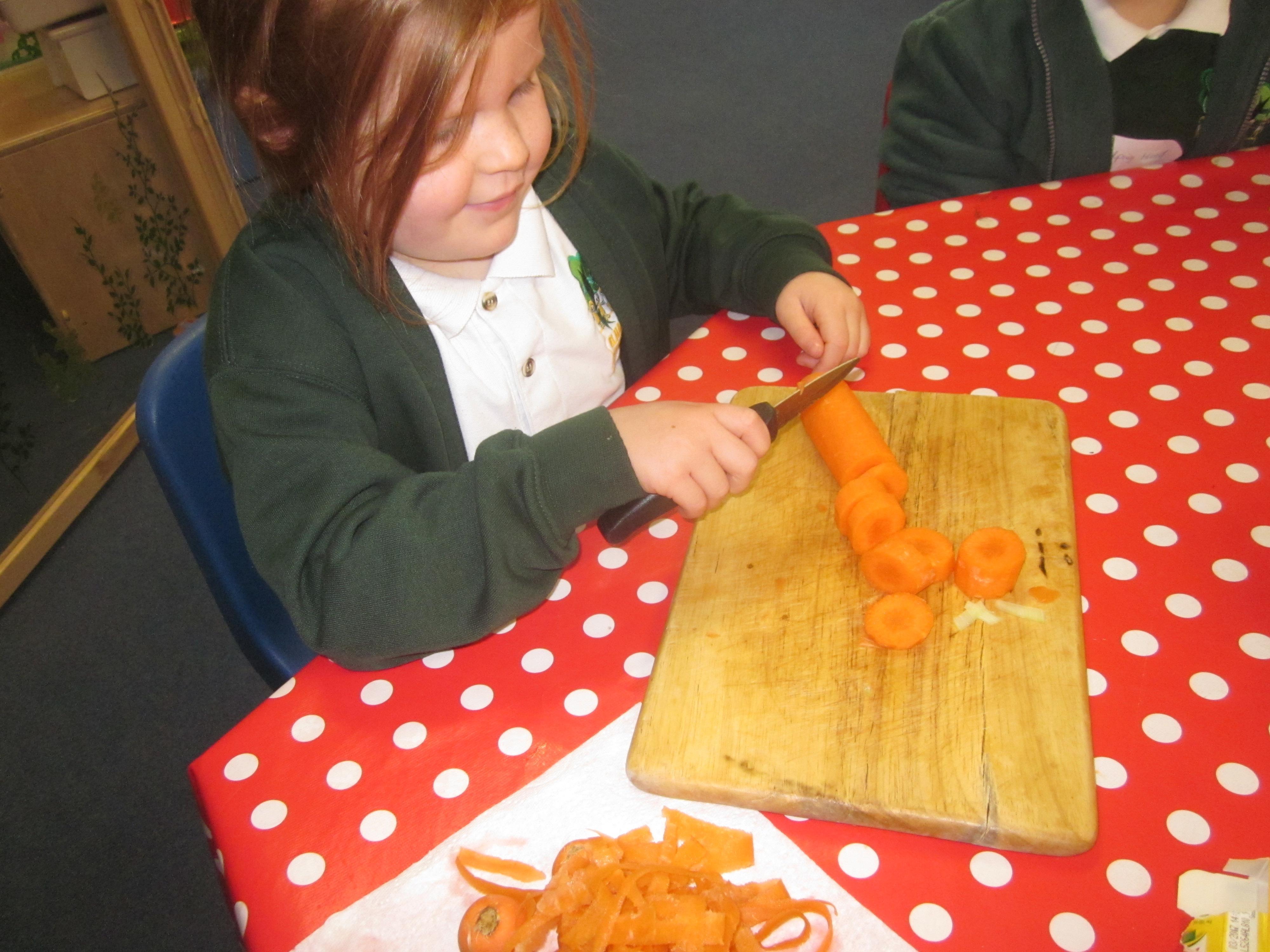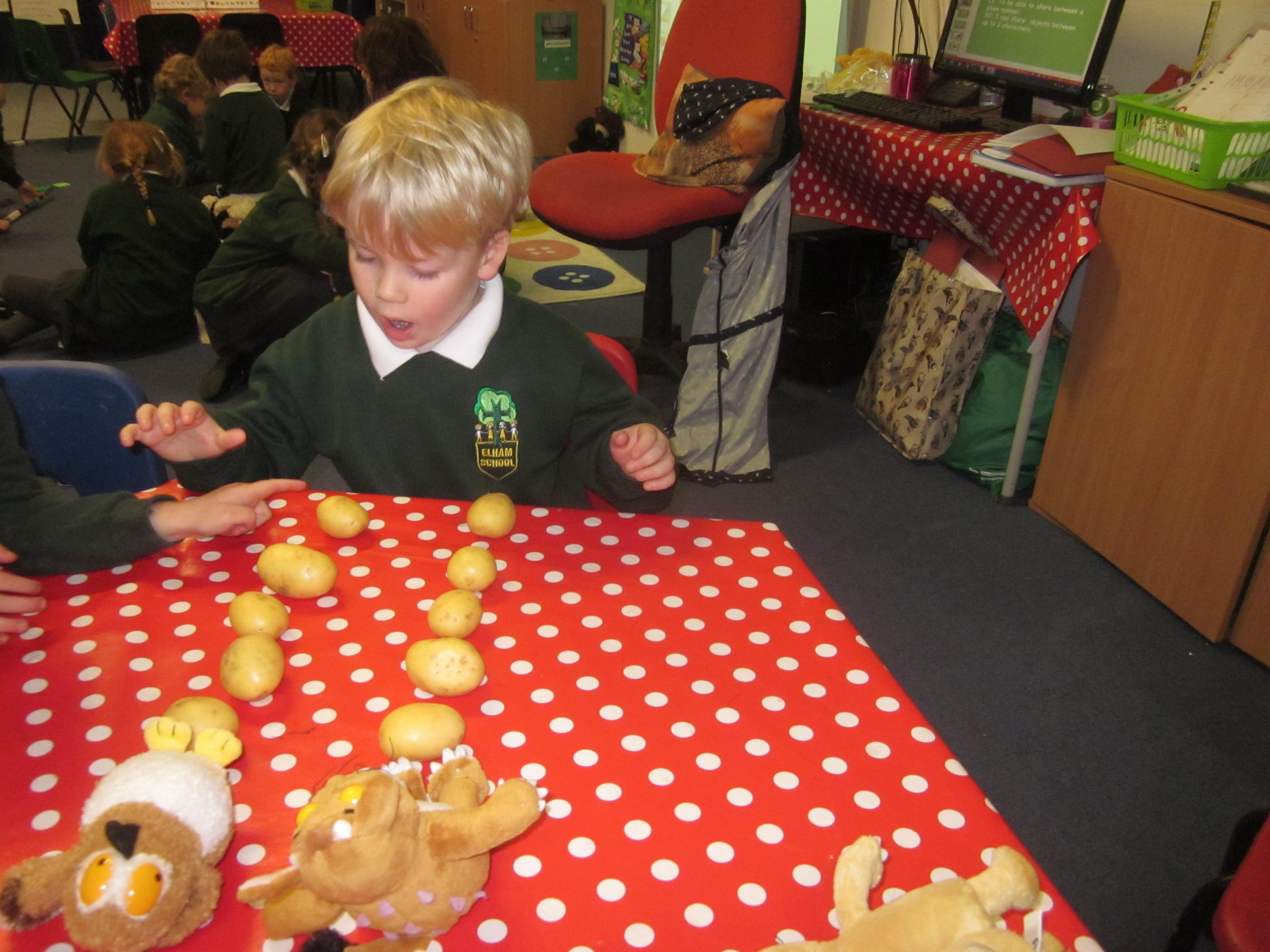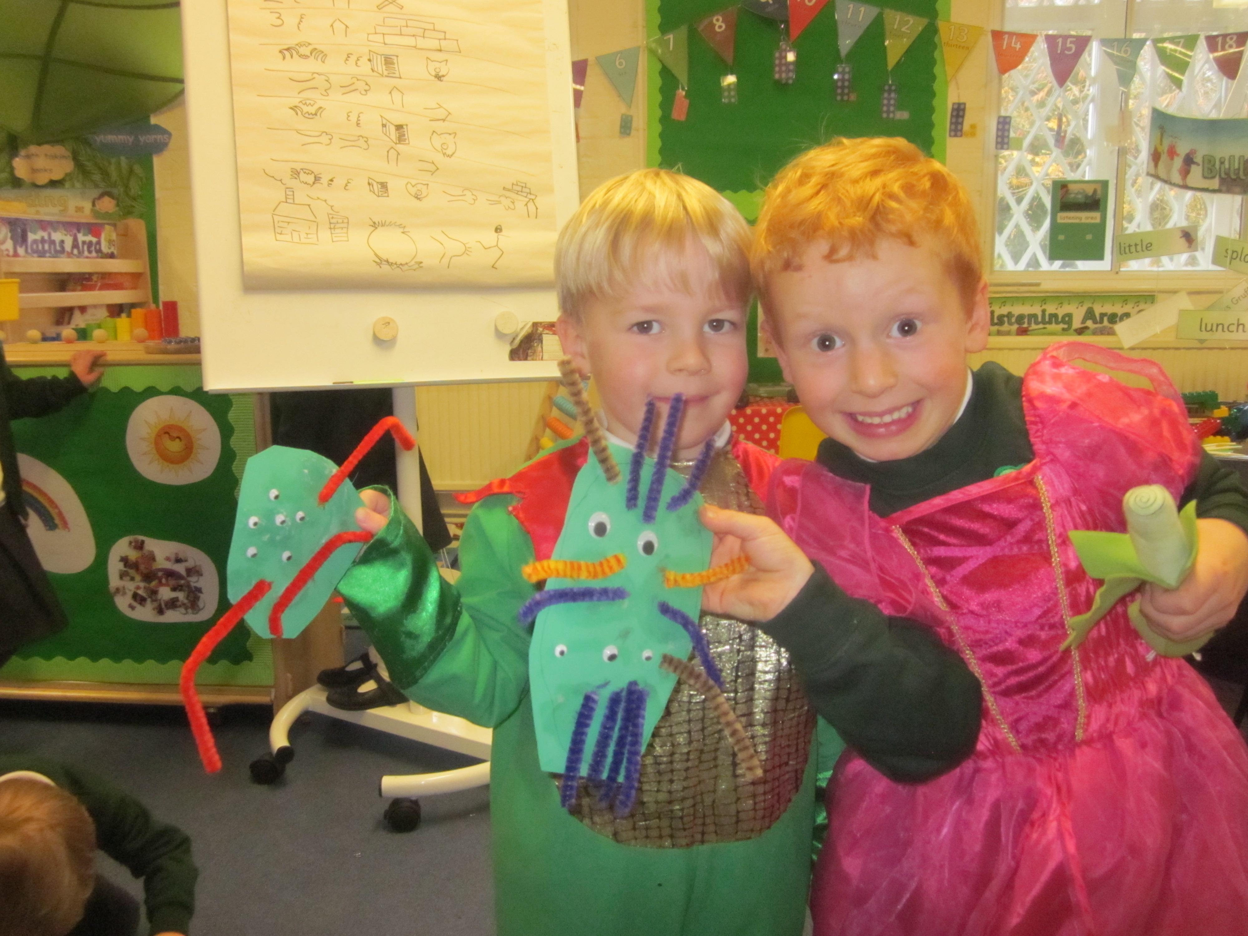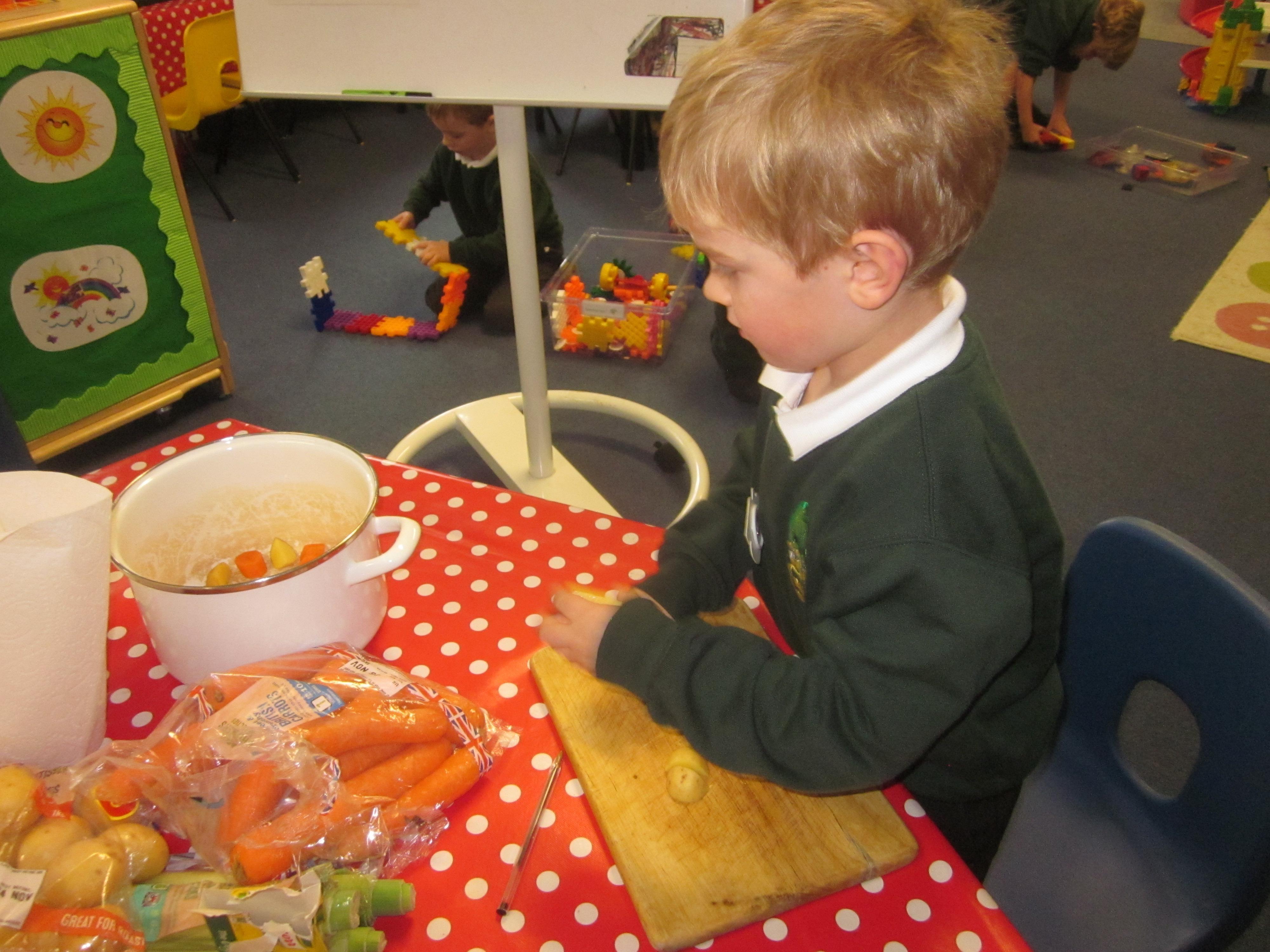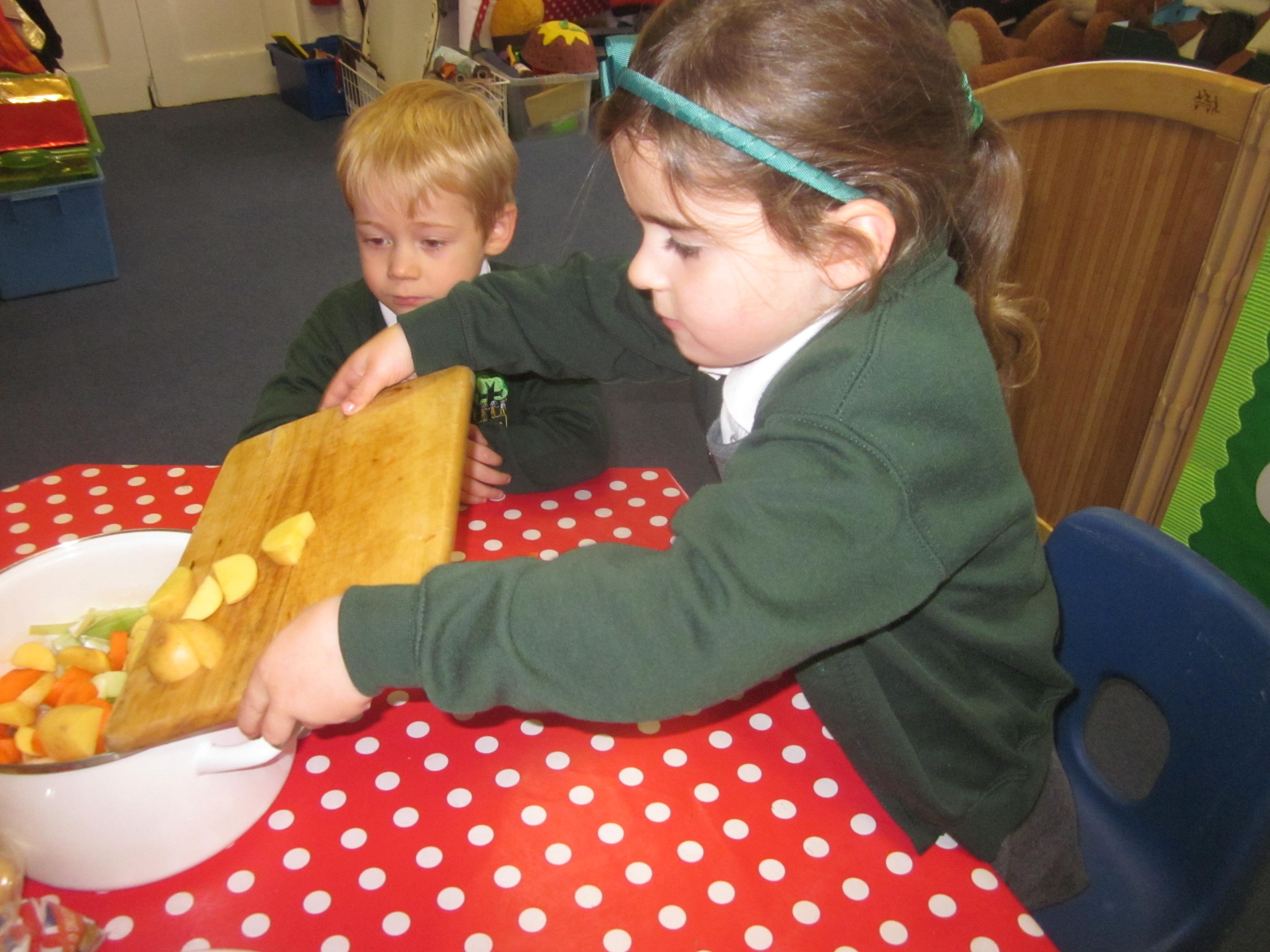 This week we have probably had too much fun! We have been looking for Gruffalo’s in the school grounds. We decided that to stop the Gruffalo wanting to eat the mouse we would make him some Gruffalo soup. For our Maths we shared out the ingredients we needed, and for our English we followed instructions to make the soup.