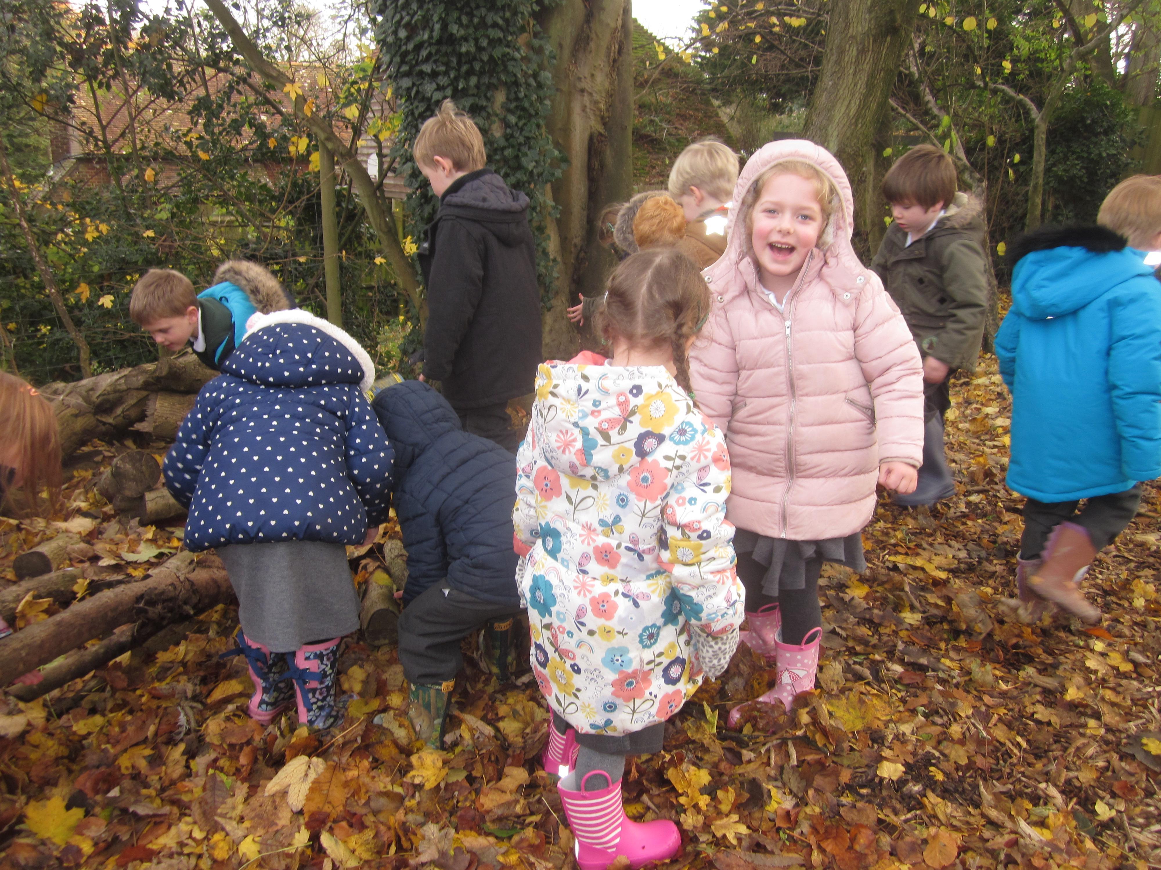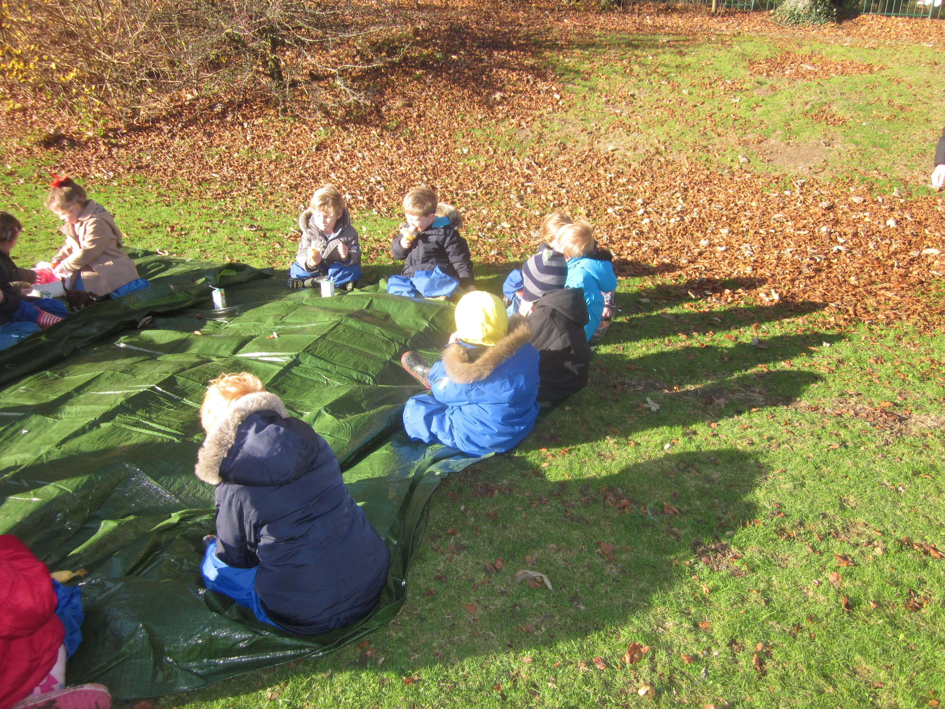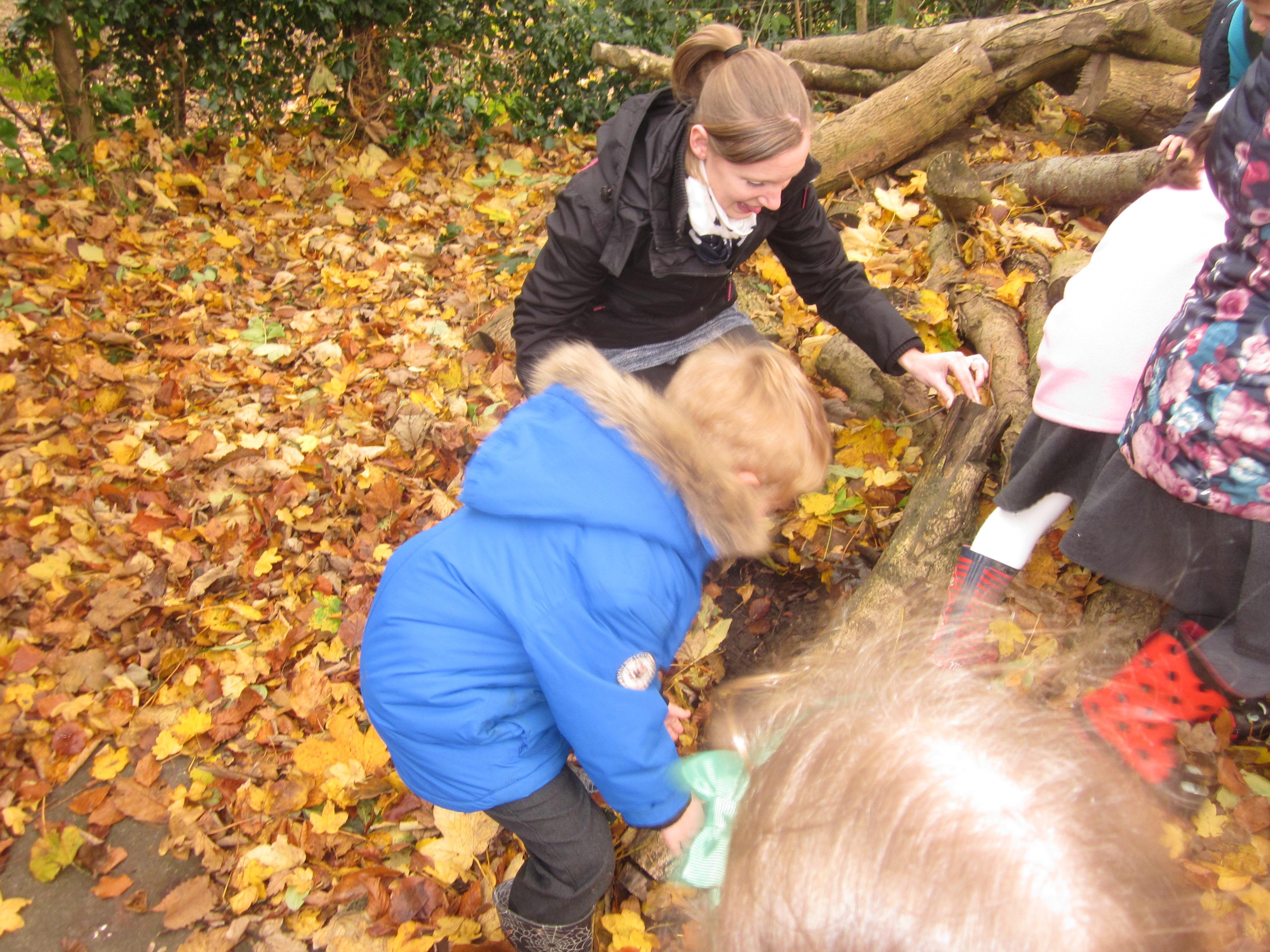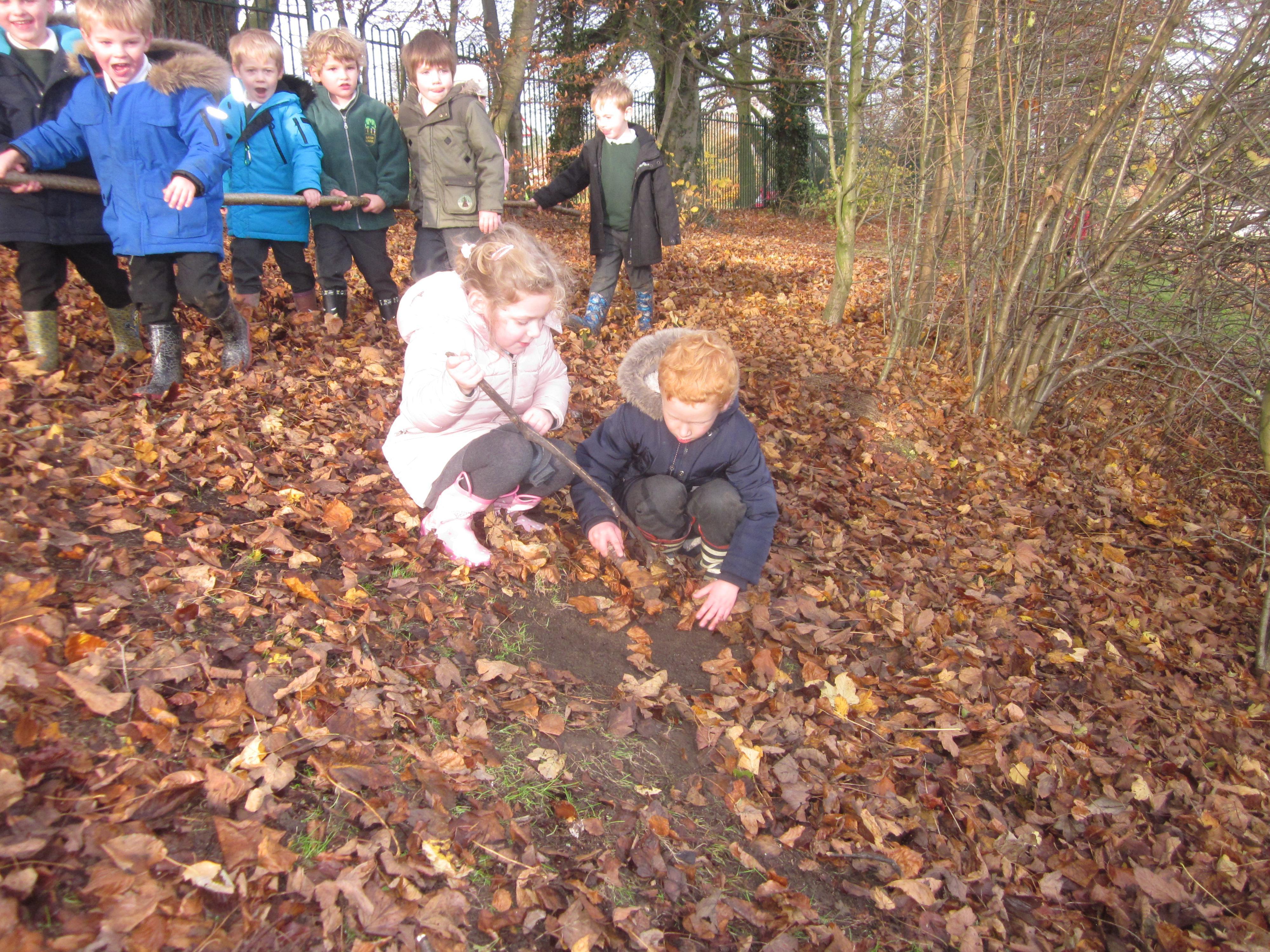 We had a Forest School session looking at habitats and at what animals might live in the school grounds (a family of moles seen to have taken up residence) we saw a squirrel and a bright green caterpillar, I wonder if he was hungry.