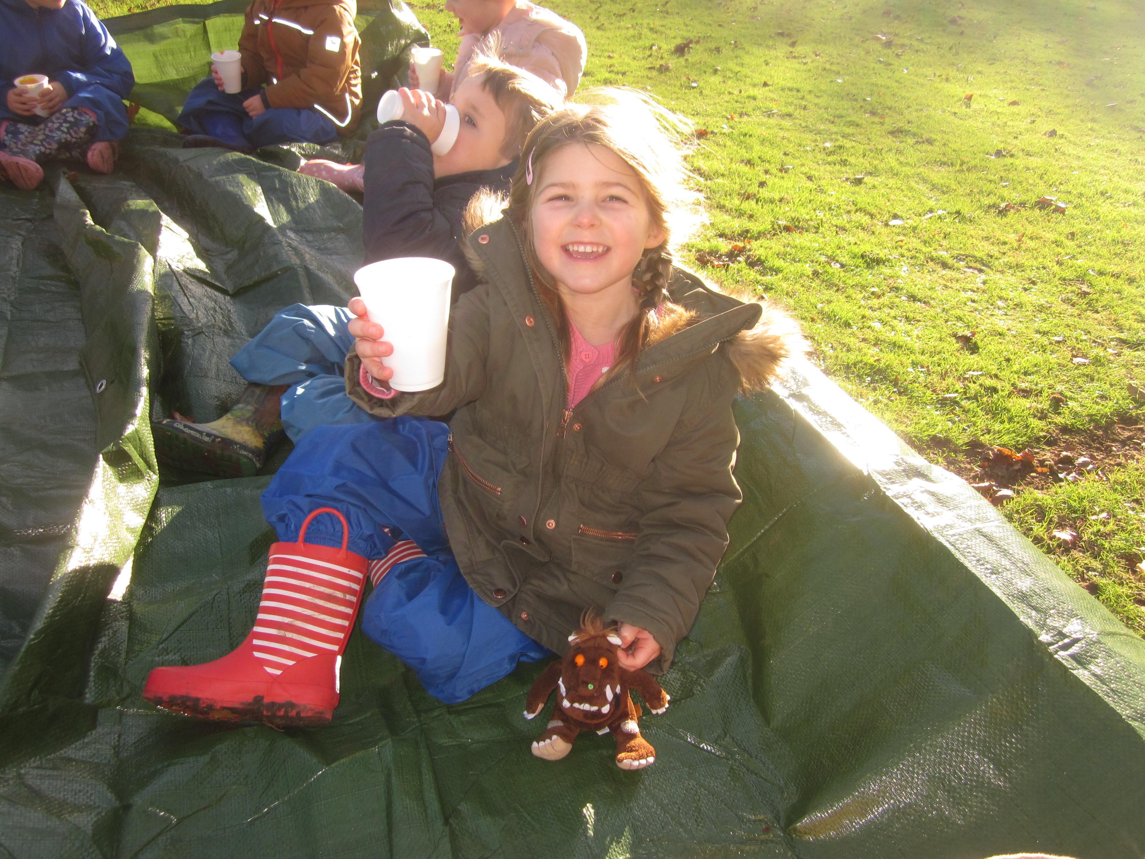 We took our soup outside to eat and left a bowl for the Gruffalo.