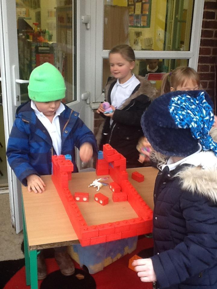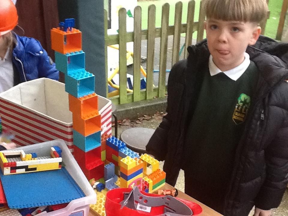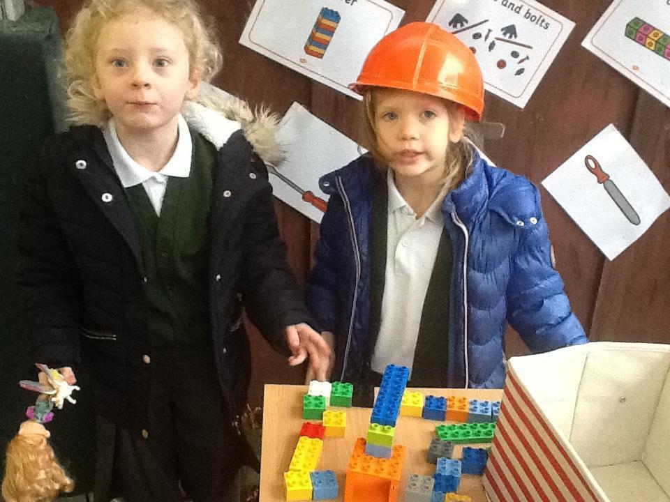 The role-play area has been transformed into a work shop and we have asked the children to bring in one small toy each so that they can build homes for them.