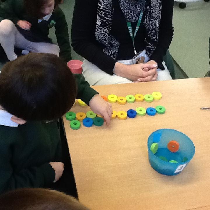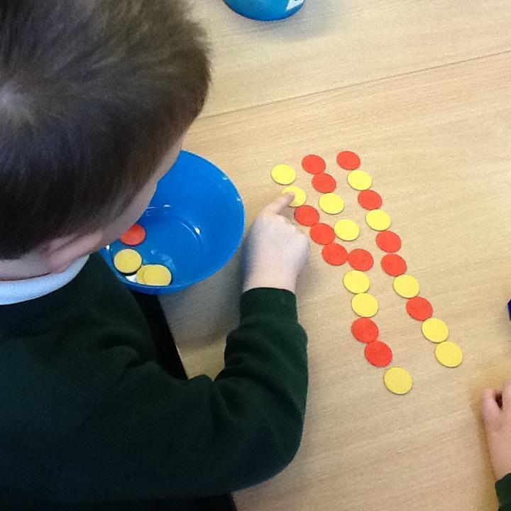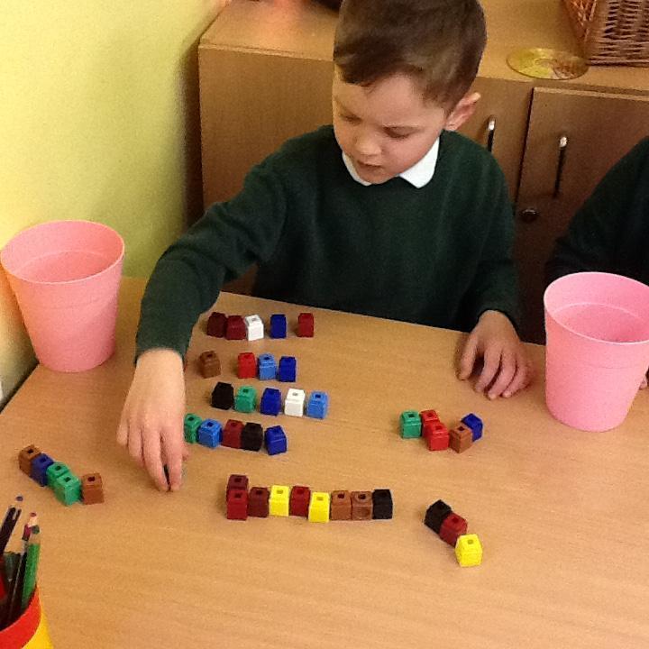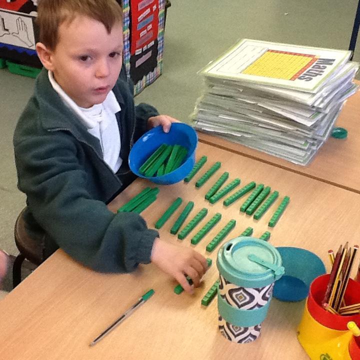 This week in maths we have been learning to count in 10s, 5s and 2s. 5s is a struggle for most of the class! We learn to do this in lots of different ways: by looking for patterns on the 100 square, by counting along the number line and by grouping objects into groups.
