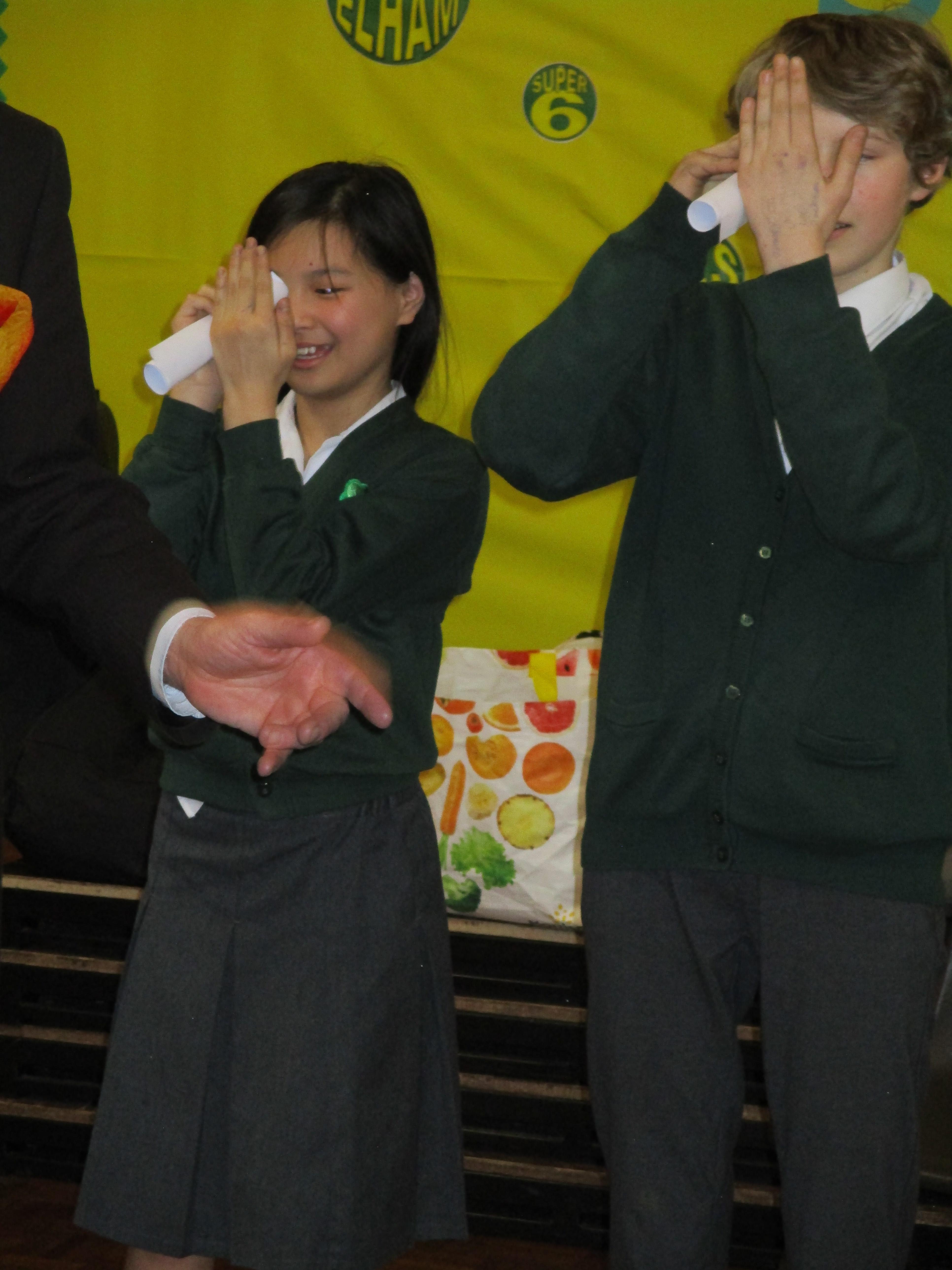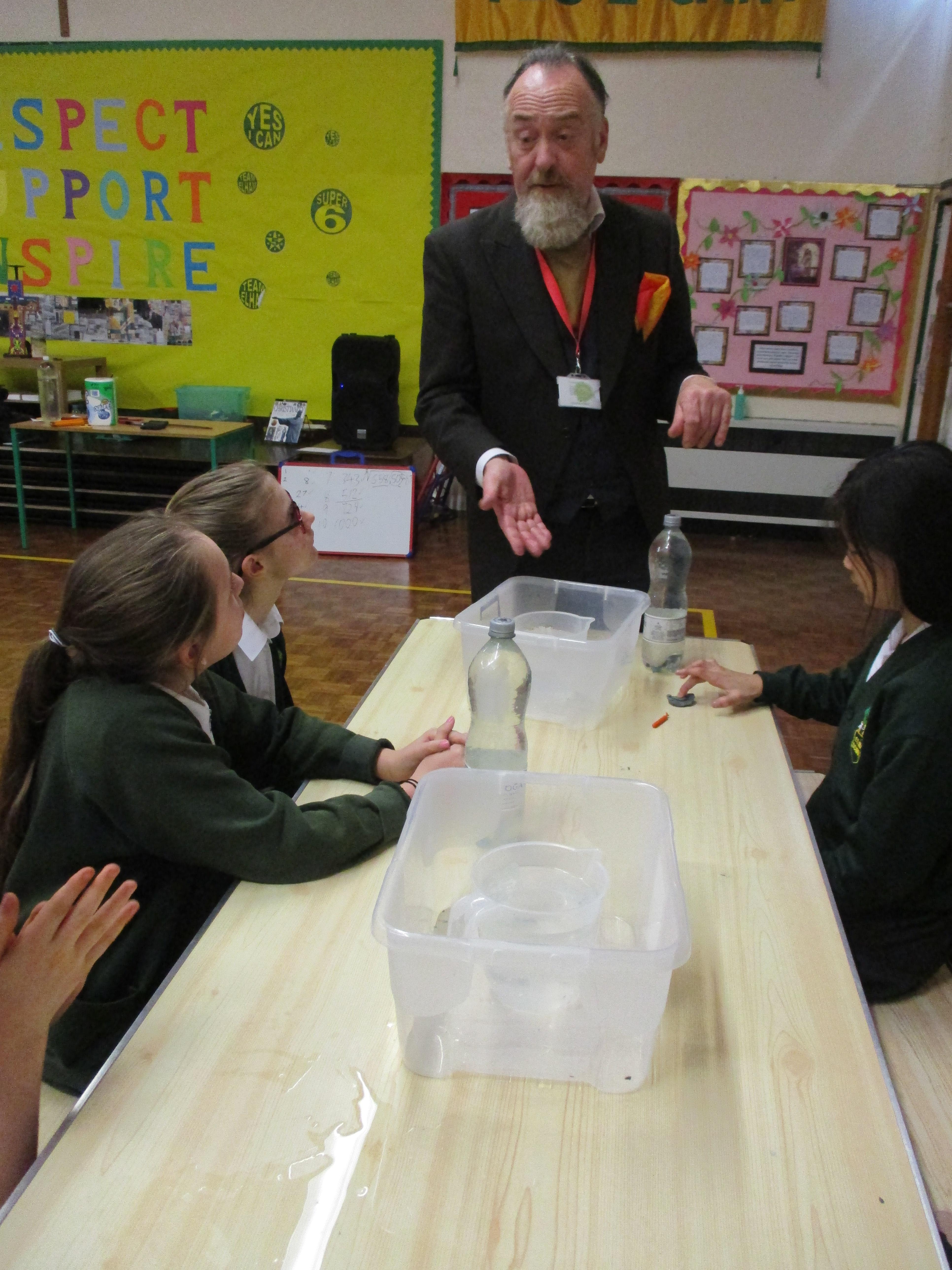 Finally, we had a real treat on Friday afternoon when we had an hour's workshop with Tony Charles, a science magician. He showed us some magic tricks based on scientific facts, then taught us how to do them. By looking through a tube of paper with one eye and holding up our other hand next to the tube, we appeared to have a hole in our hands! We also tried to fit as many drops of water on a penny before the surface tension of the water ruptured and the water overflowed - the winner with 62 drops was Saoirse, but Rosa was almost as close with 61 drops. Well done the twins! It was a really fun and interesting way in which to finish our week. Have a look at the photos below to see us in action!