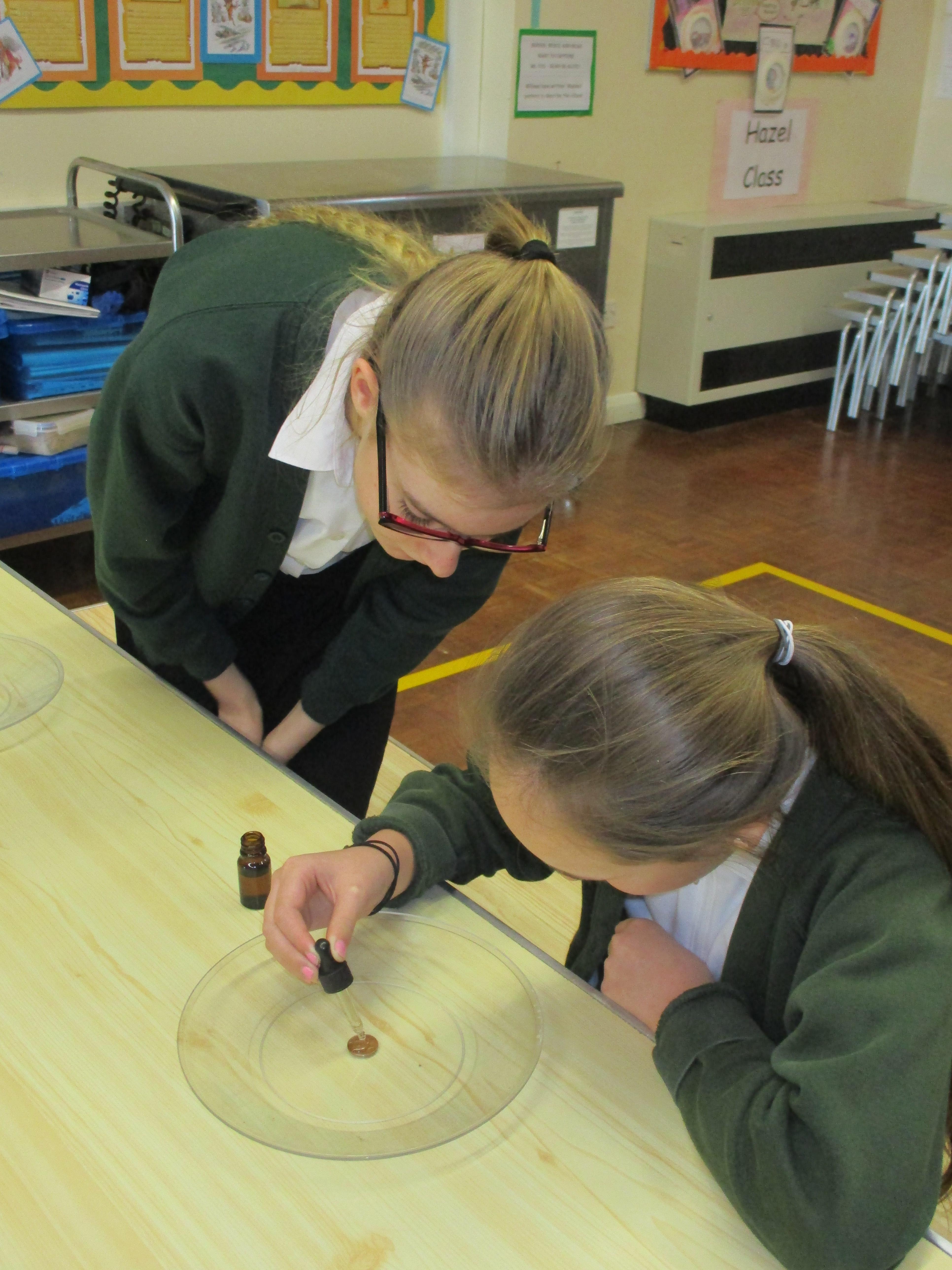 On Tuesday, Sarah's mum, Mrs Levett, came it and looked at chemical reactions with us.