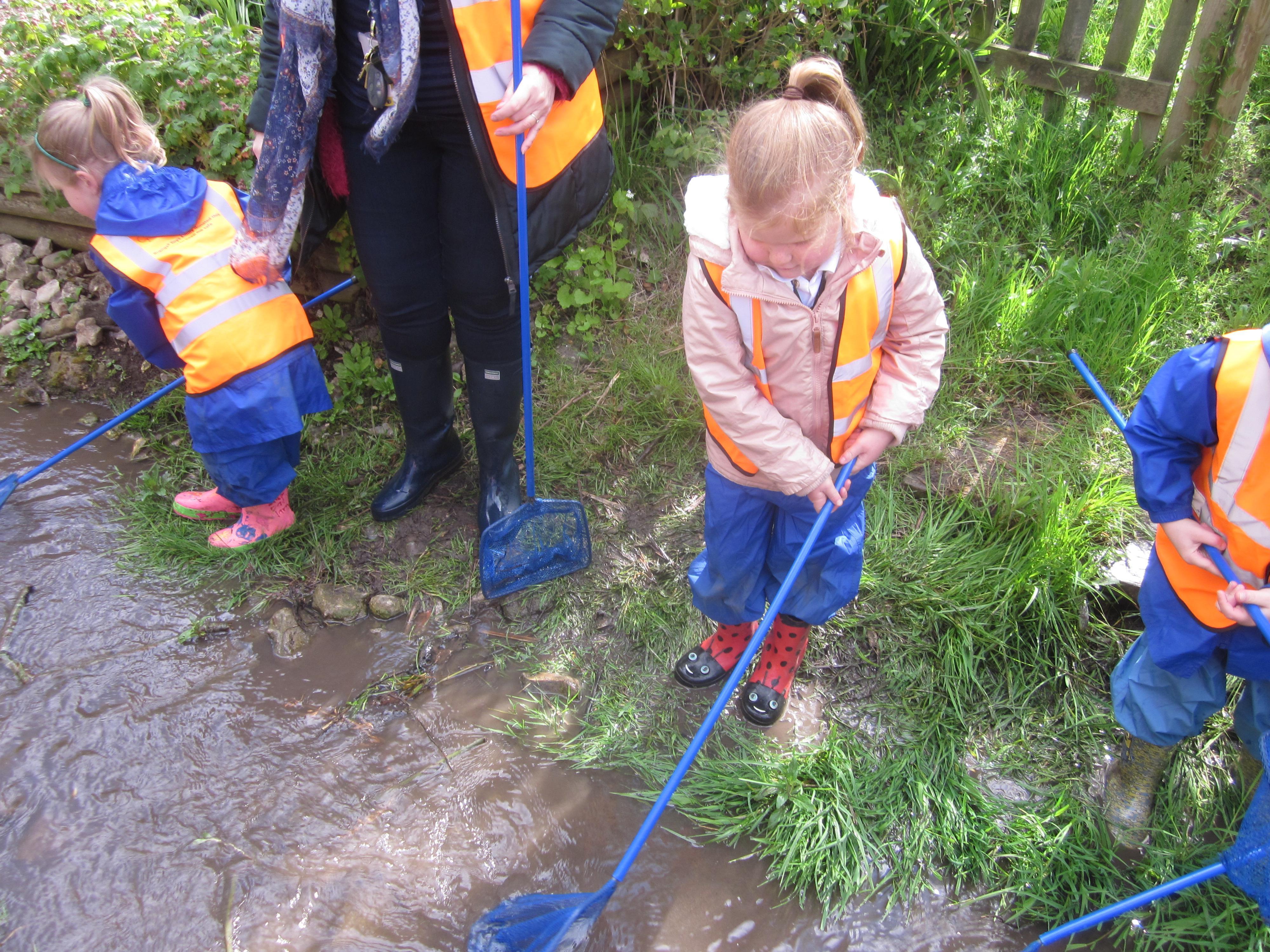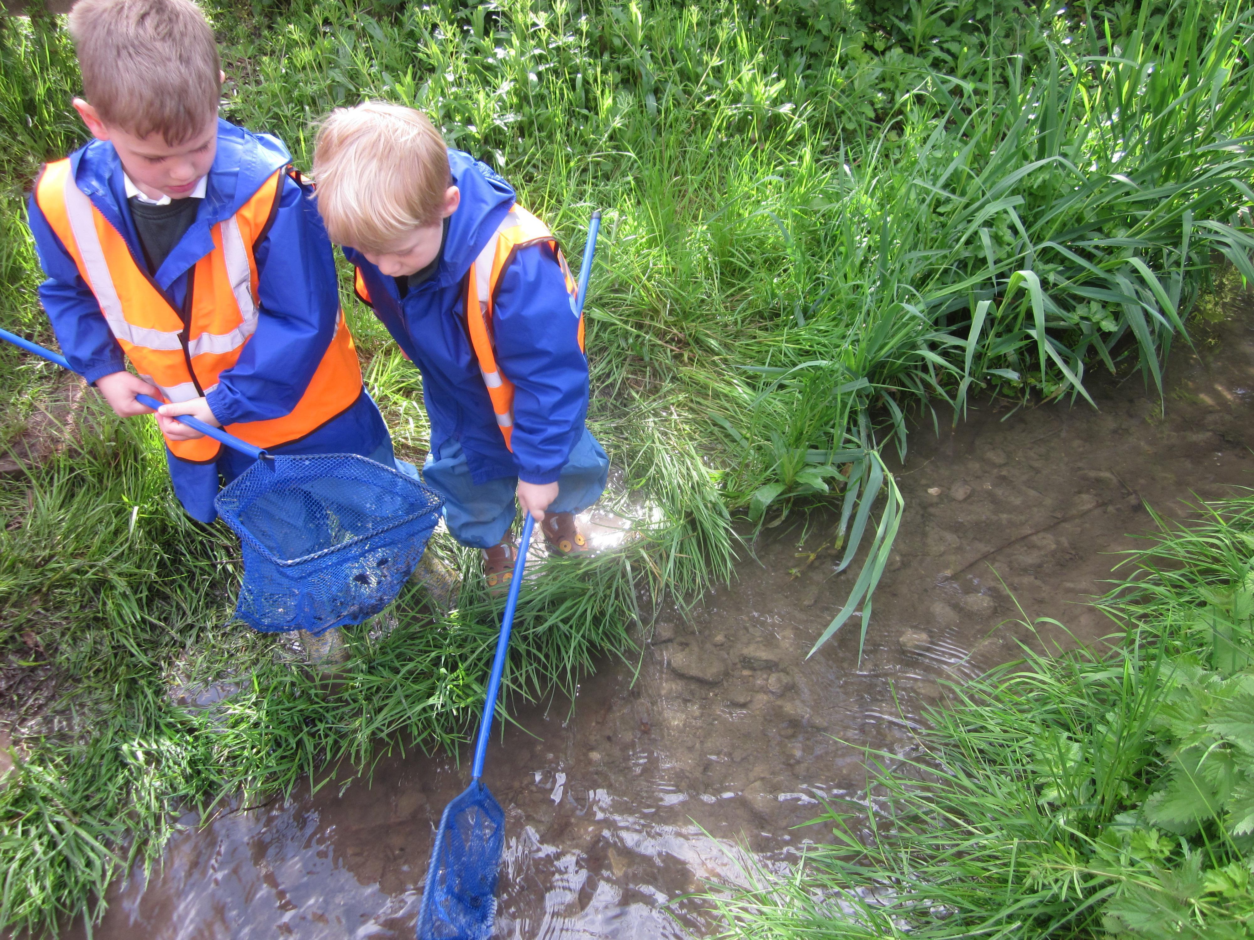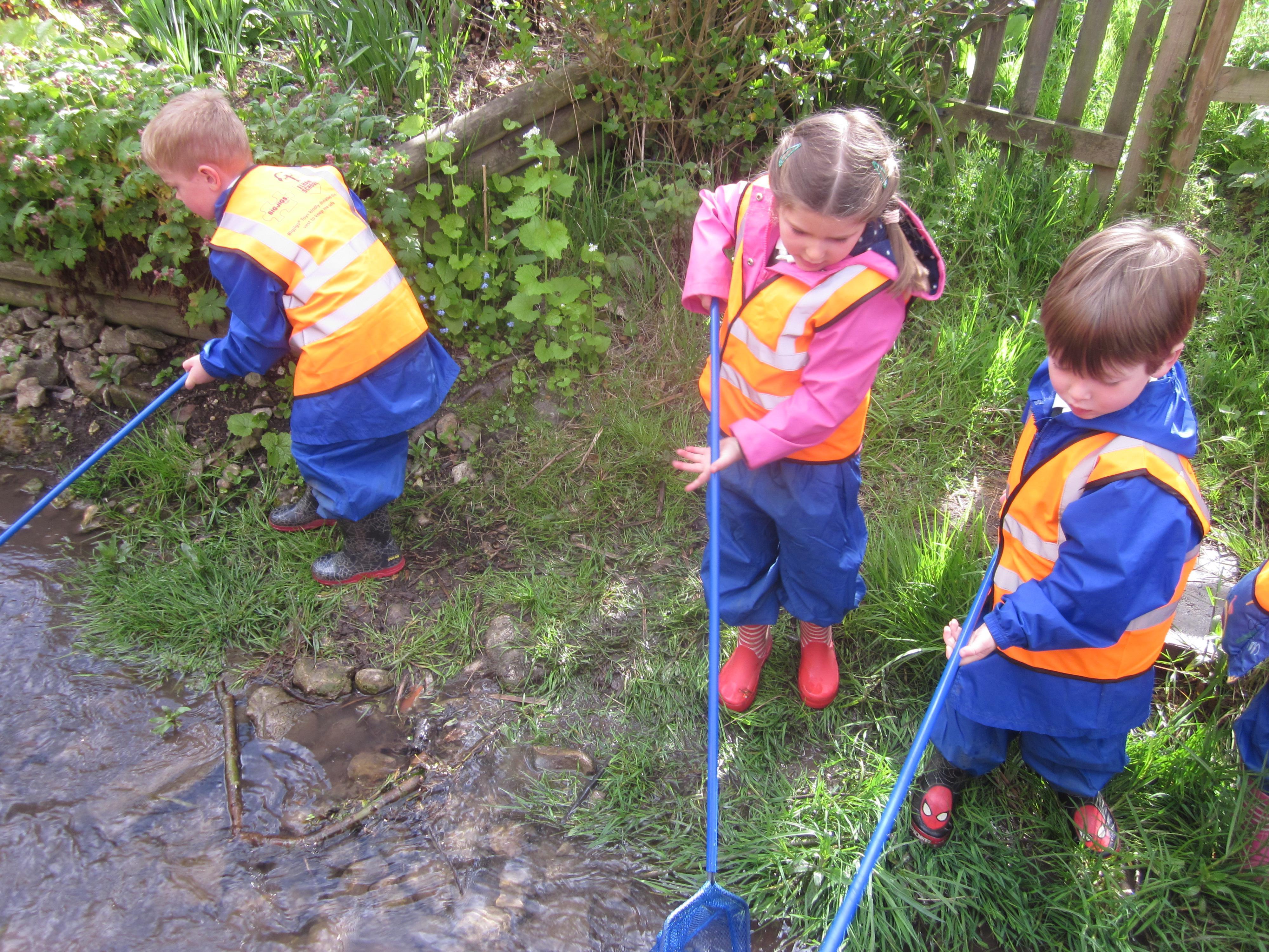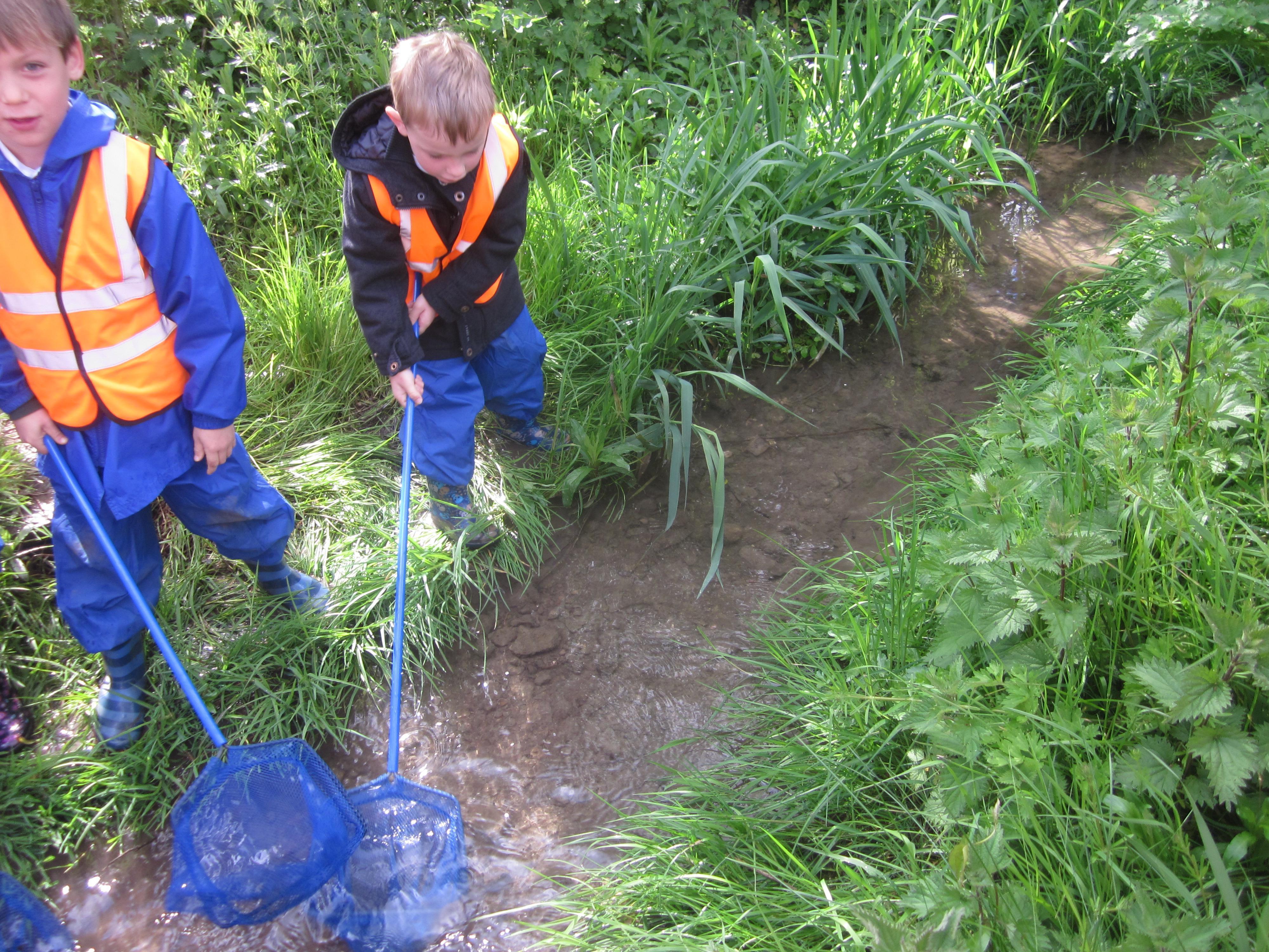 We also went on an expedition to the Nailbourne, a stream which runs along the Elham Valley. We saw where frogs might like to live, and did some fishing with our nets. We didn’t find any tadpoles but we did find some shrimps. We used magnifying glasses to look closely at them.