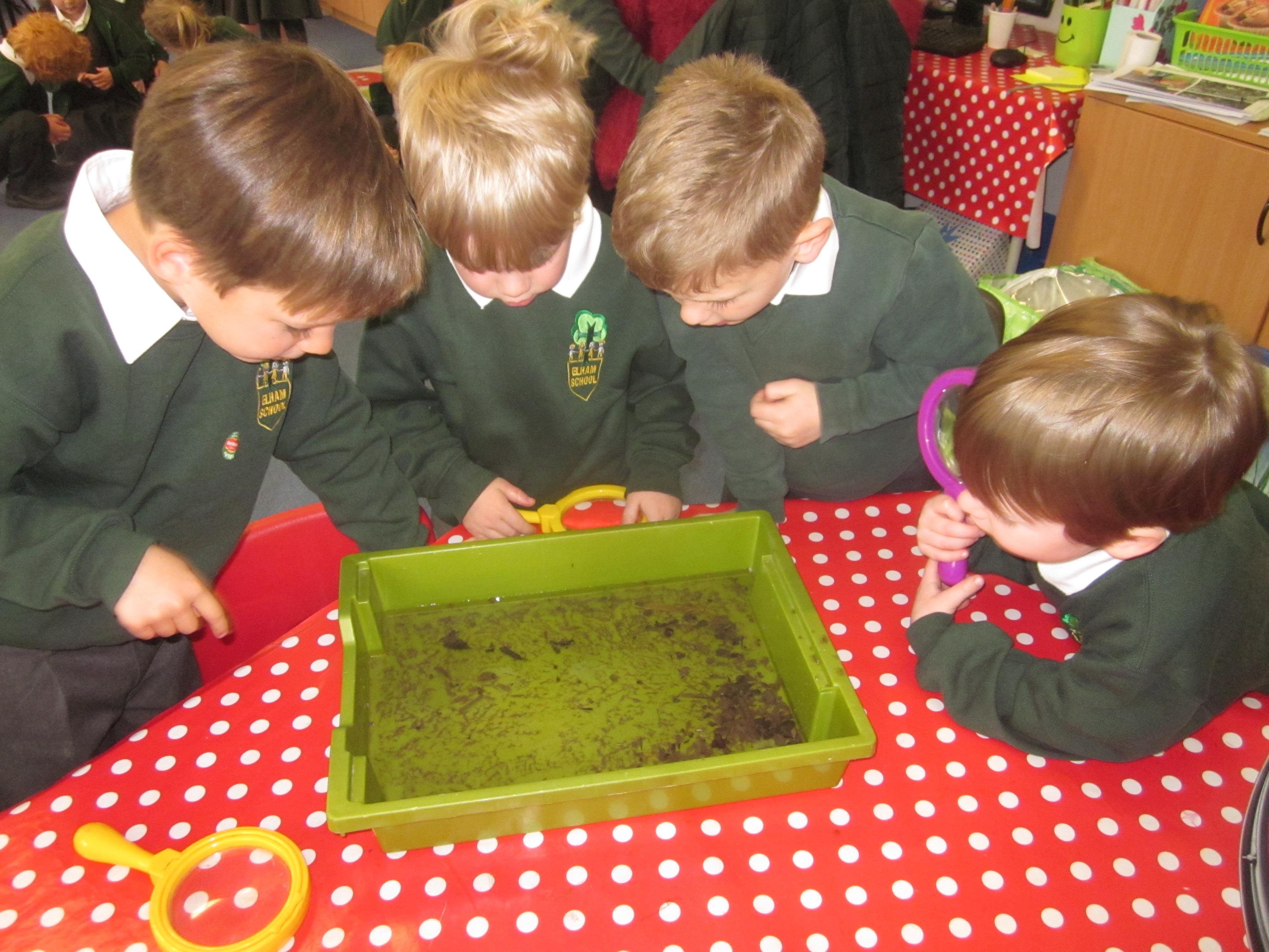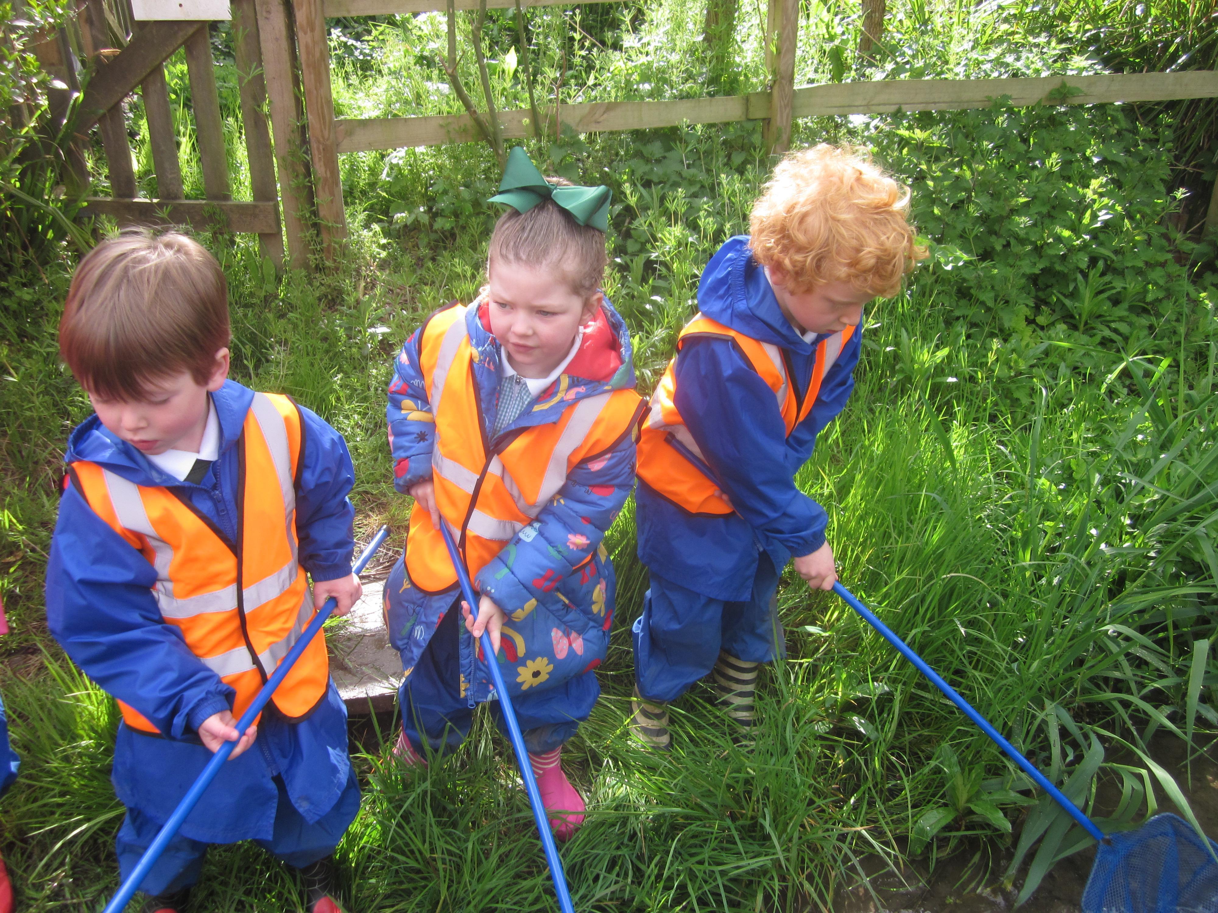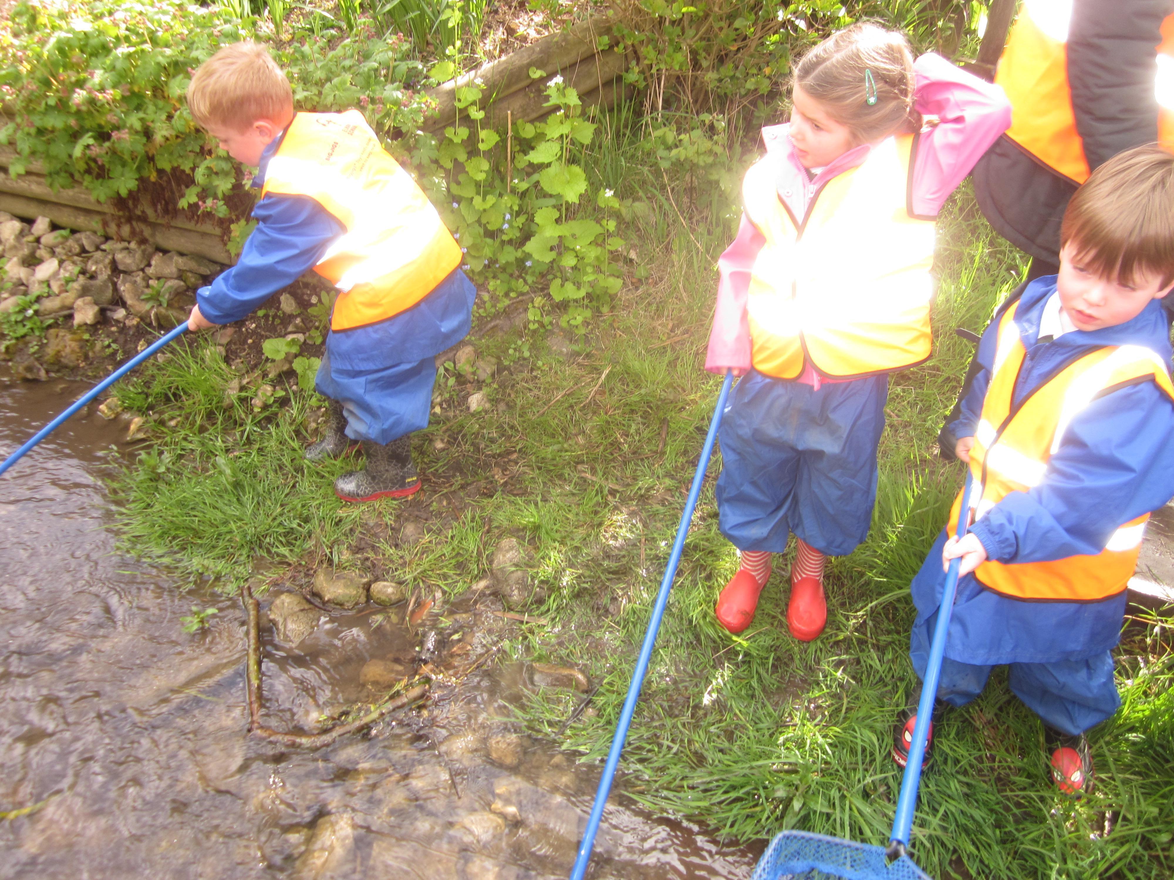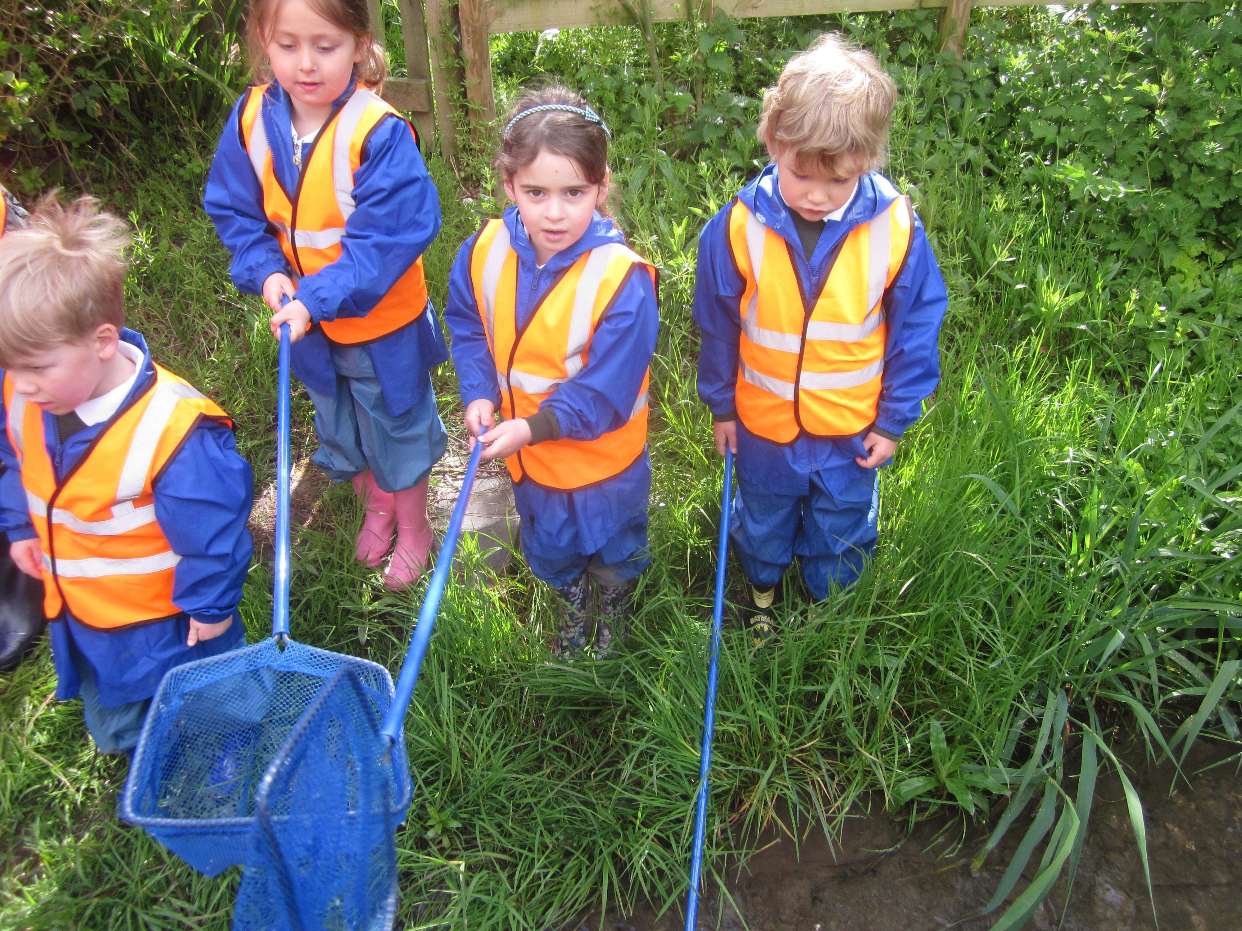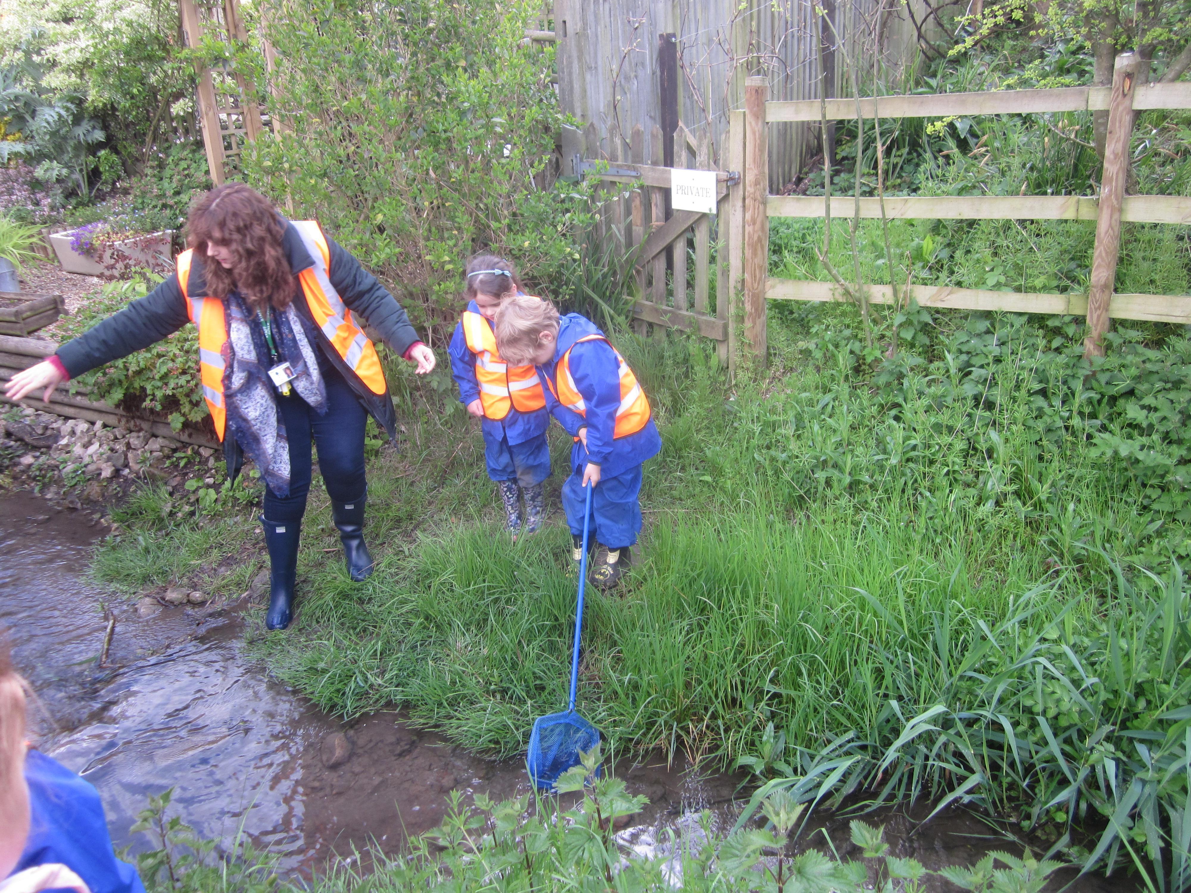 We also went on an expedition to the Nailbourne, a stream which runs along the Elham Valley. We saw where frogs might like to live, and did some fishing with our nets. We didn’t find any tadpoles but we did find some shrimps. We used magnifying glasses to look closely at them.