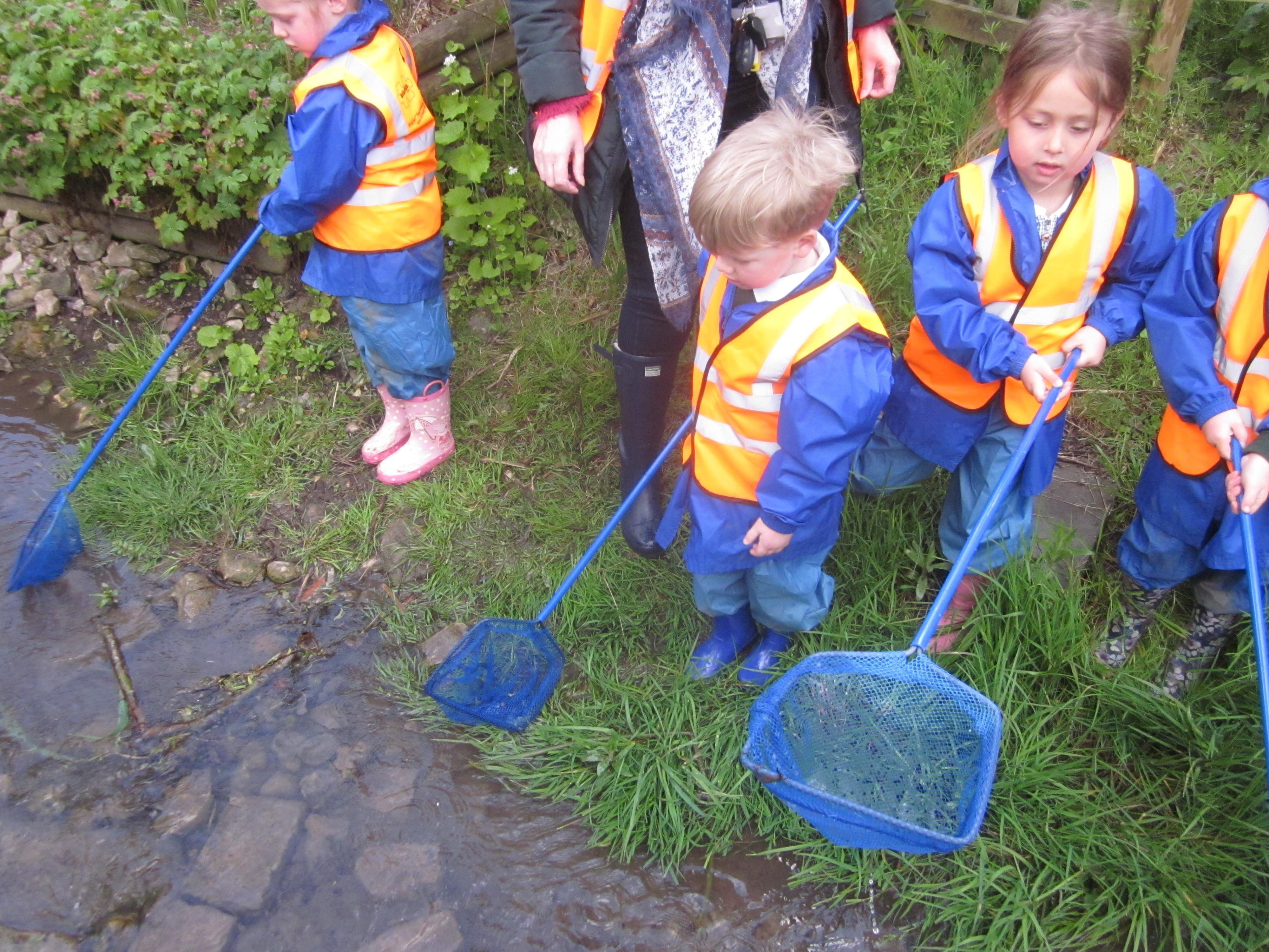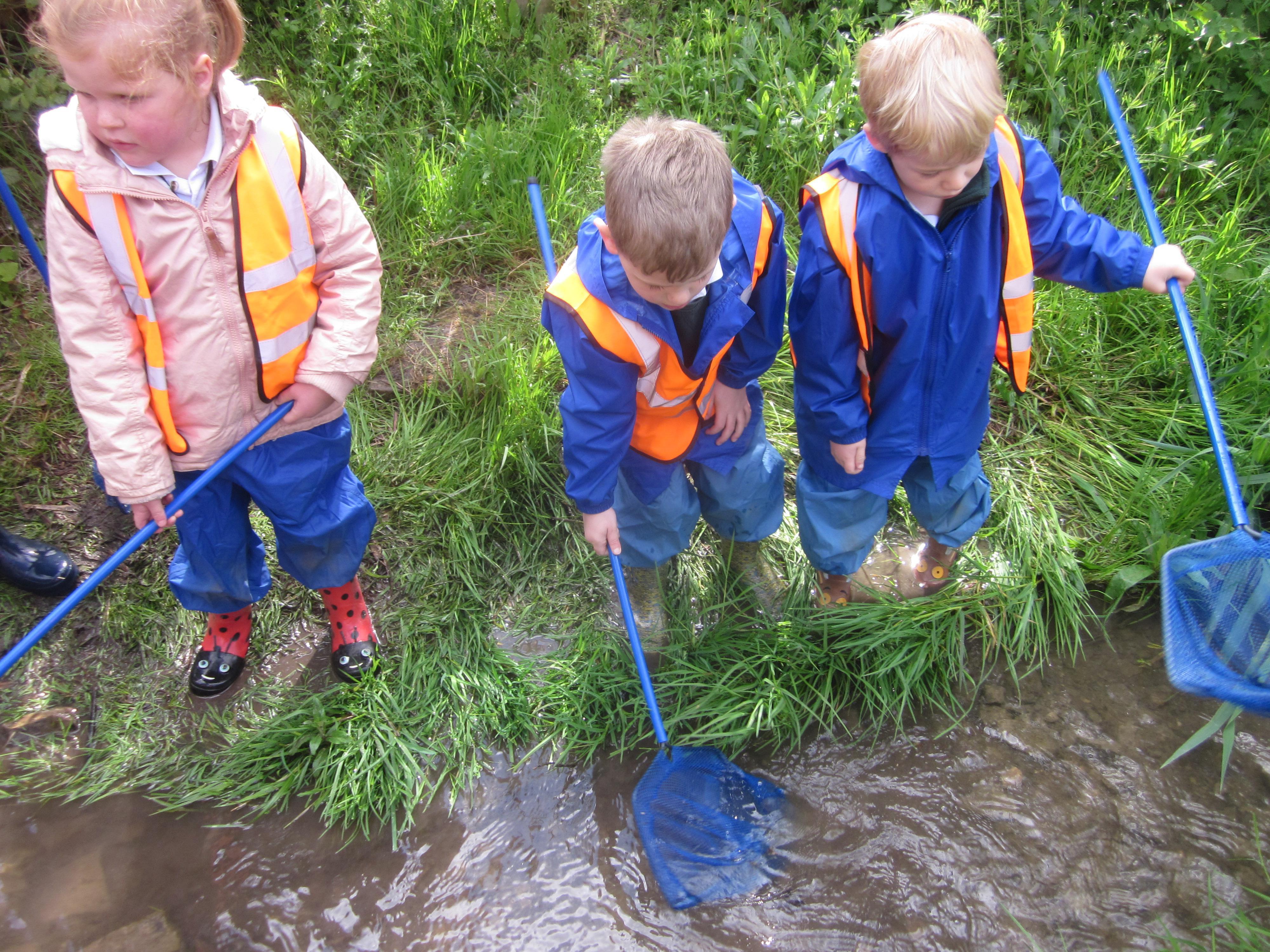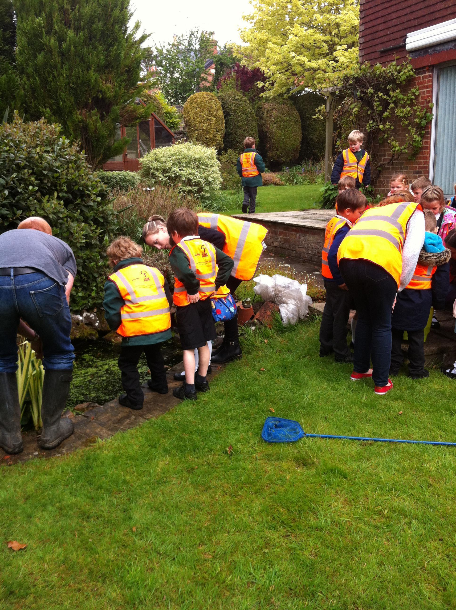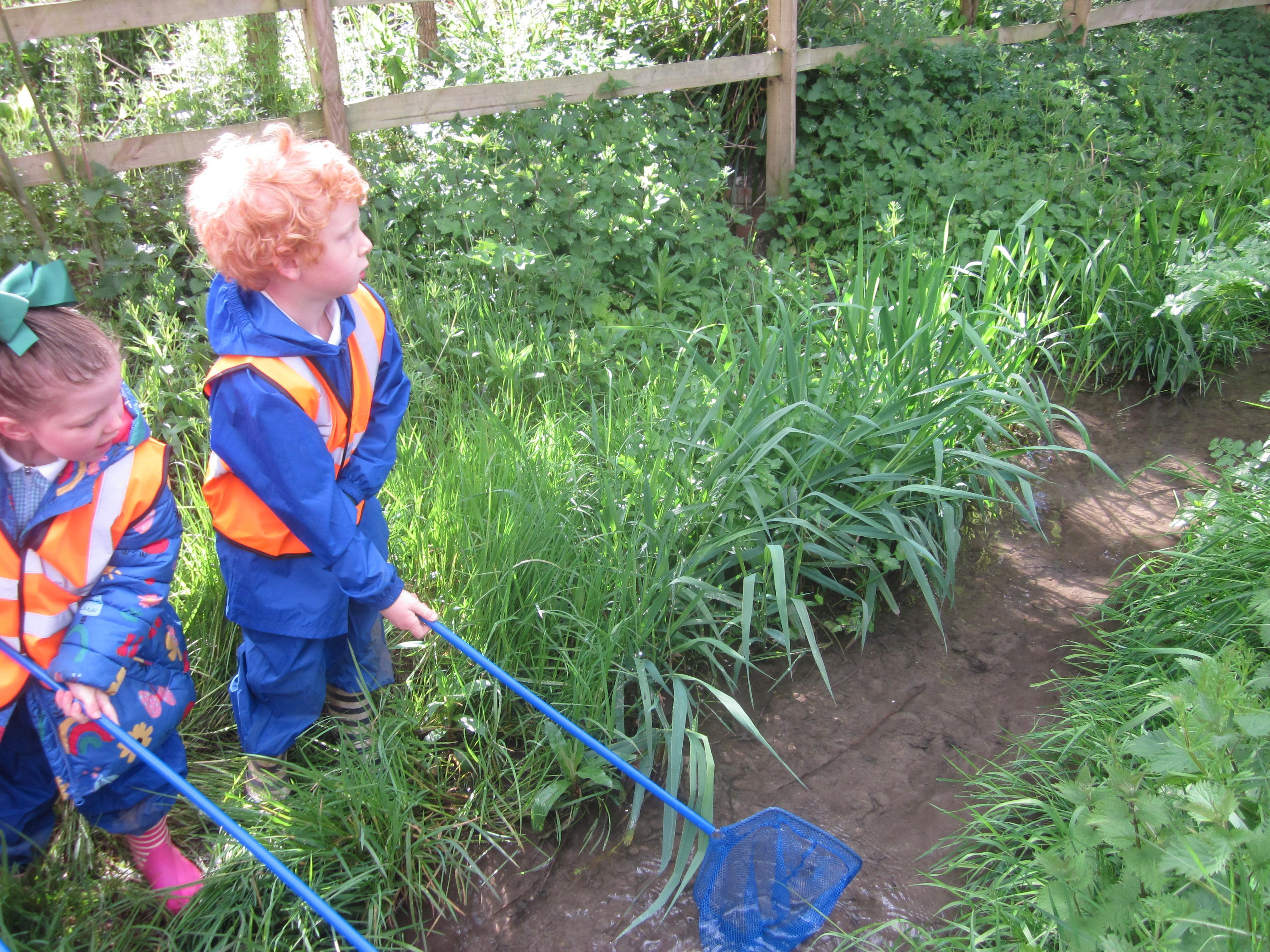 We also went on an expedition to the Nailbourne, a stream which runs along the Elham Valley. We saw where frogs might like to live, and did some fishing with our nets. We didn’t find any tadpoles but we did find some shrimps. We used magnifying glasses to look closely at them.
