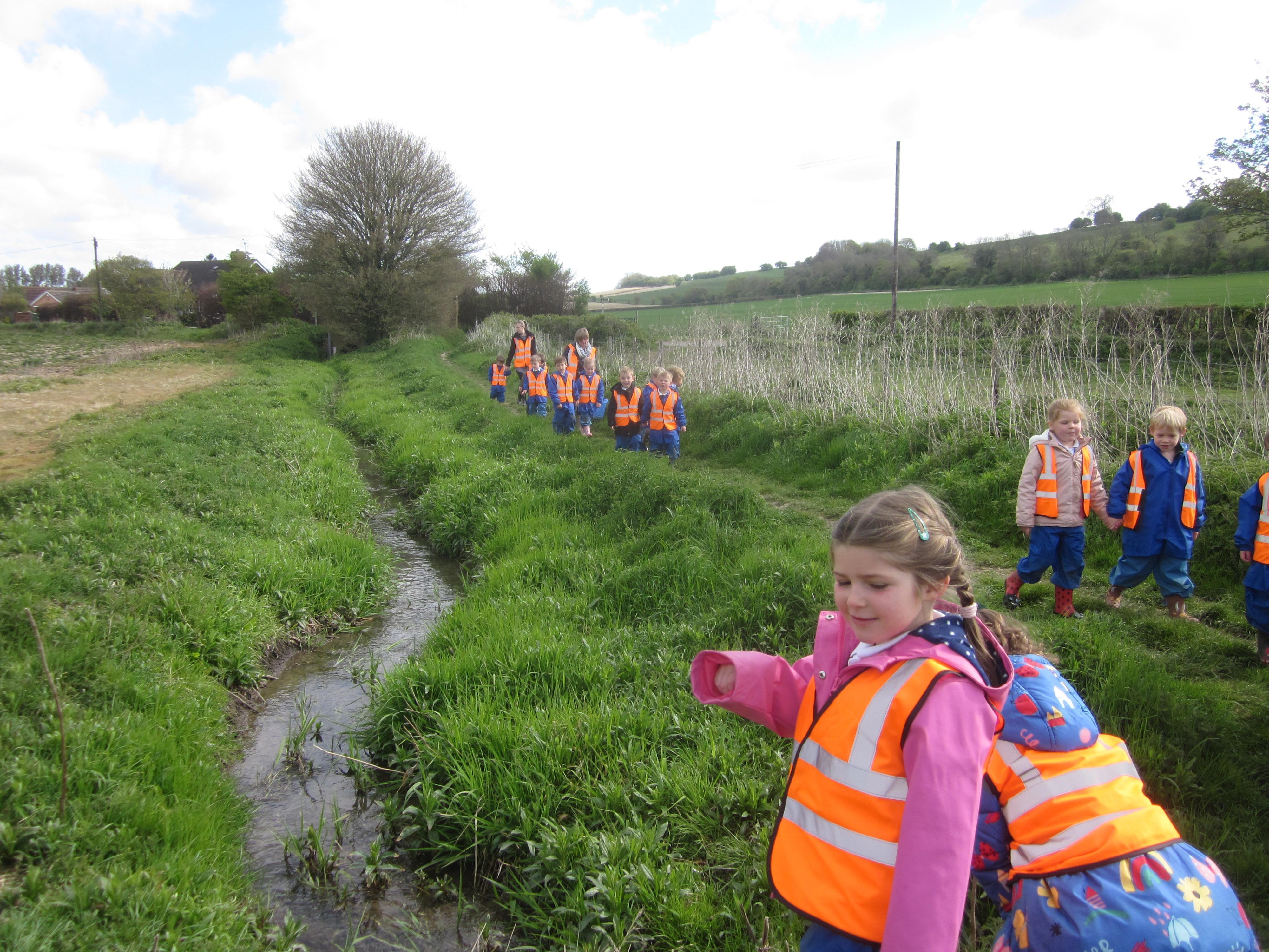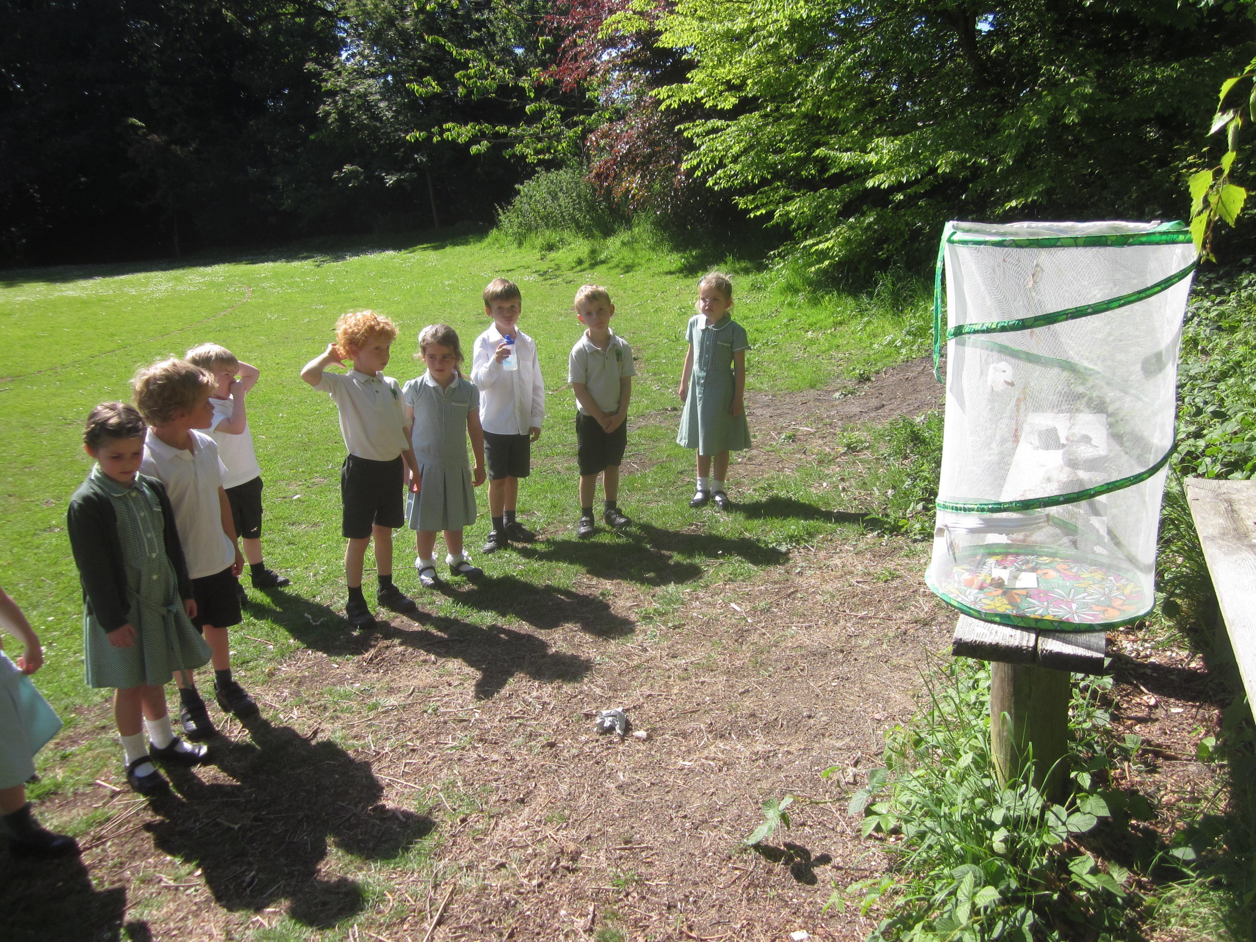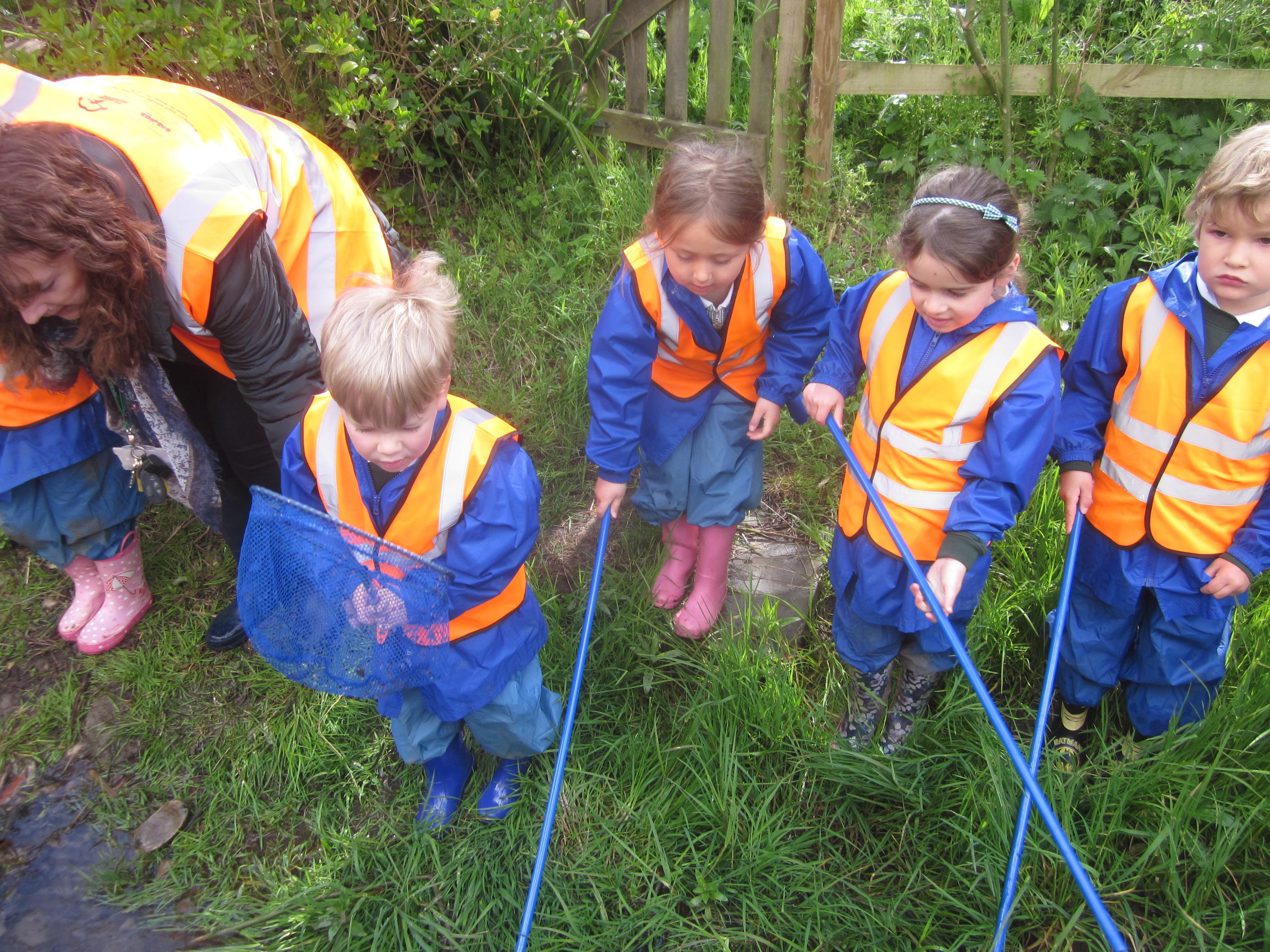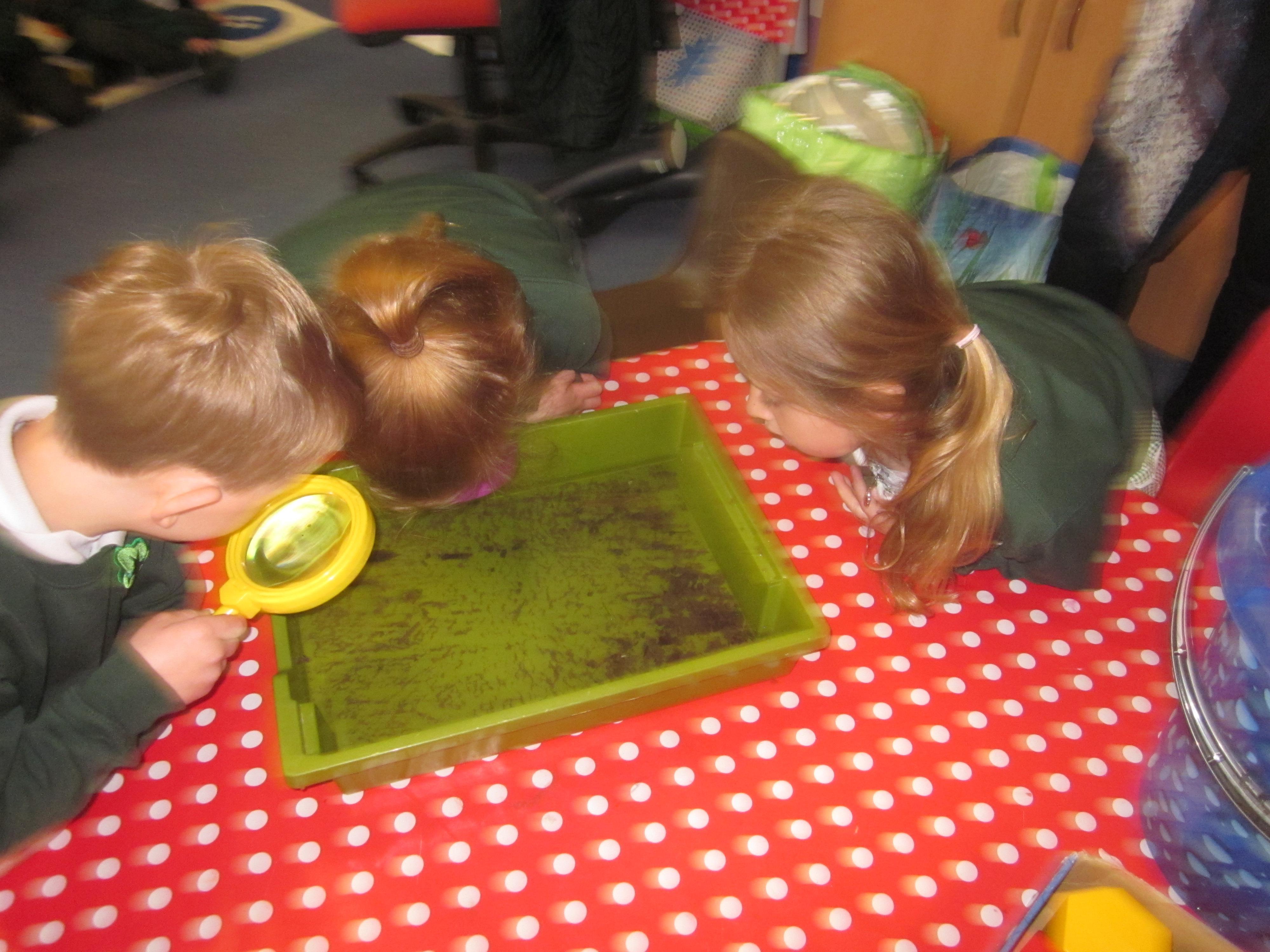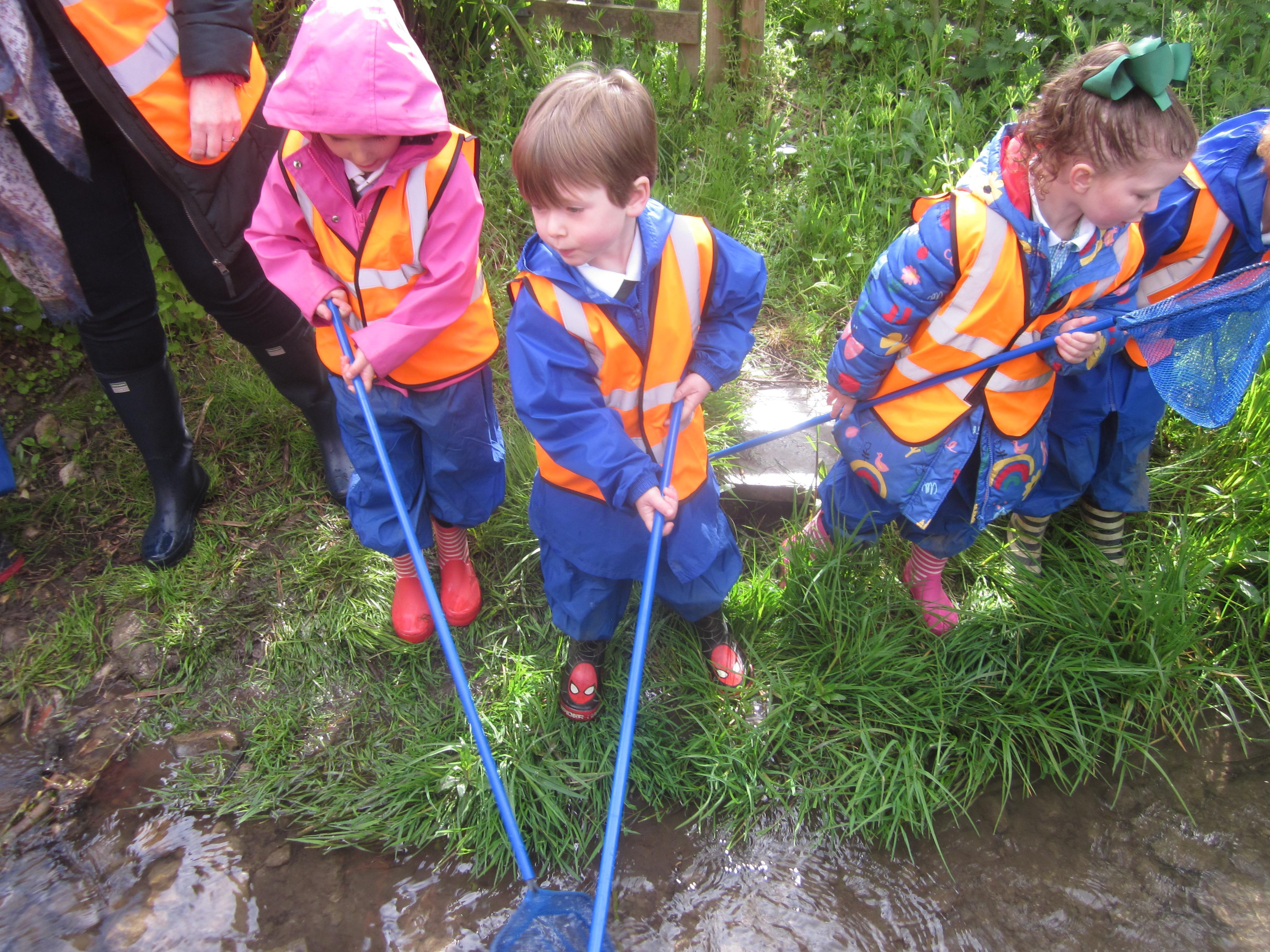 We also went on an expedition to the Nailbourne, a stream which runs along the Elham Valley. We saw where frogs might like to live, and did some fishing with our nets. We didn’t find any tadpoles but we did find some shrimps. We used magnifying glasses to look closely at them.