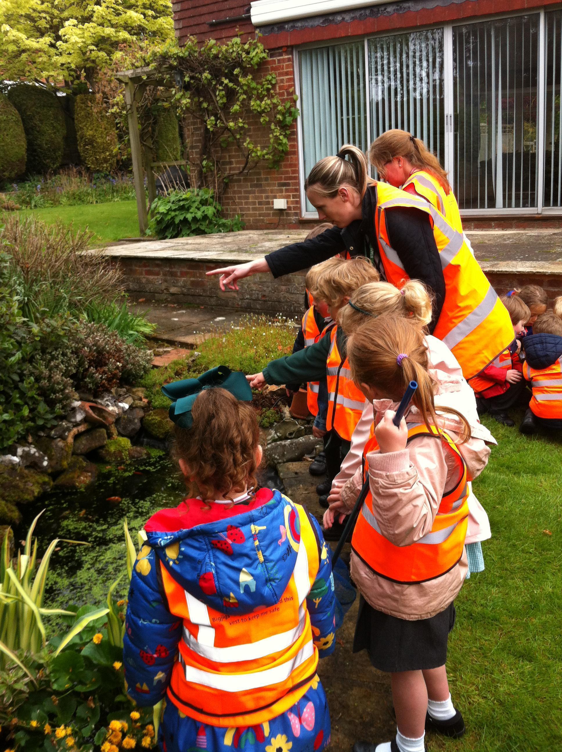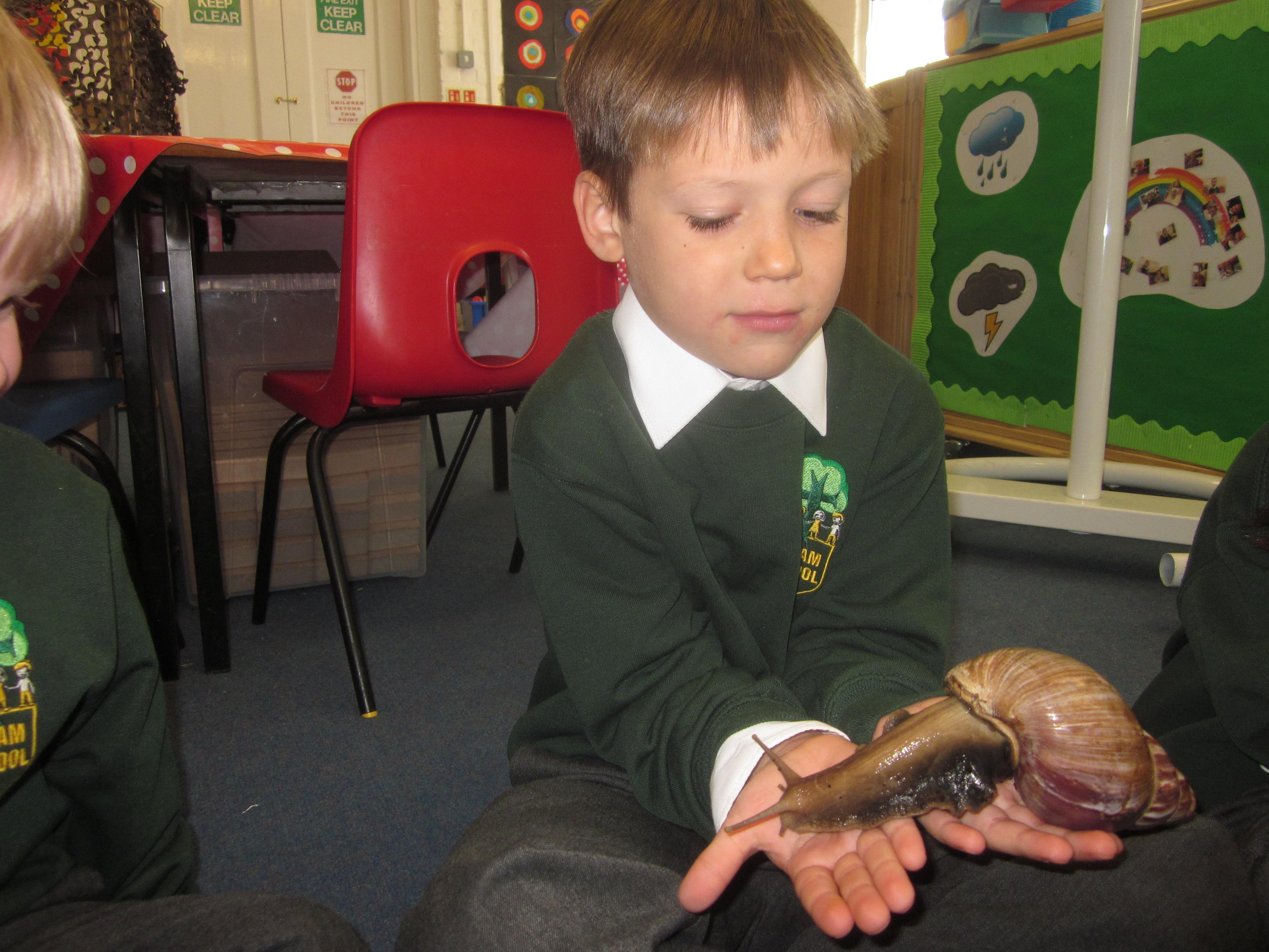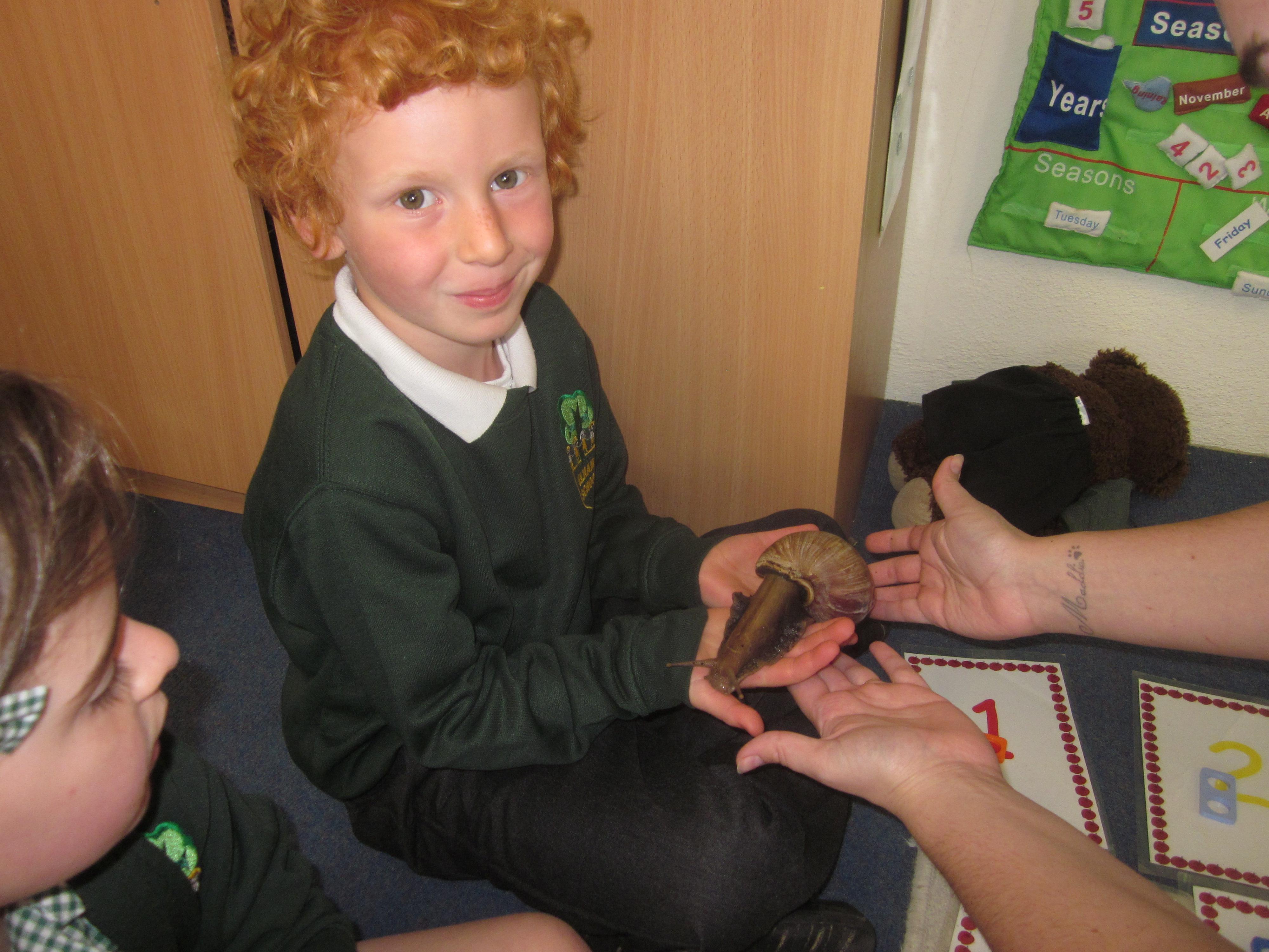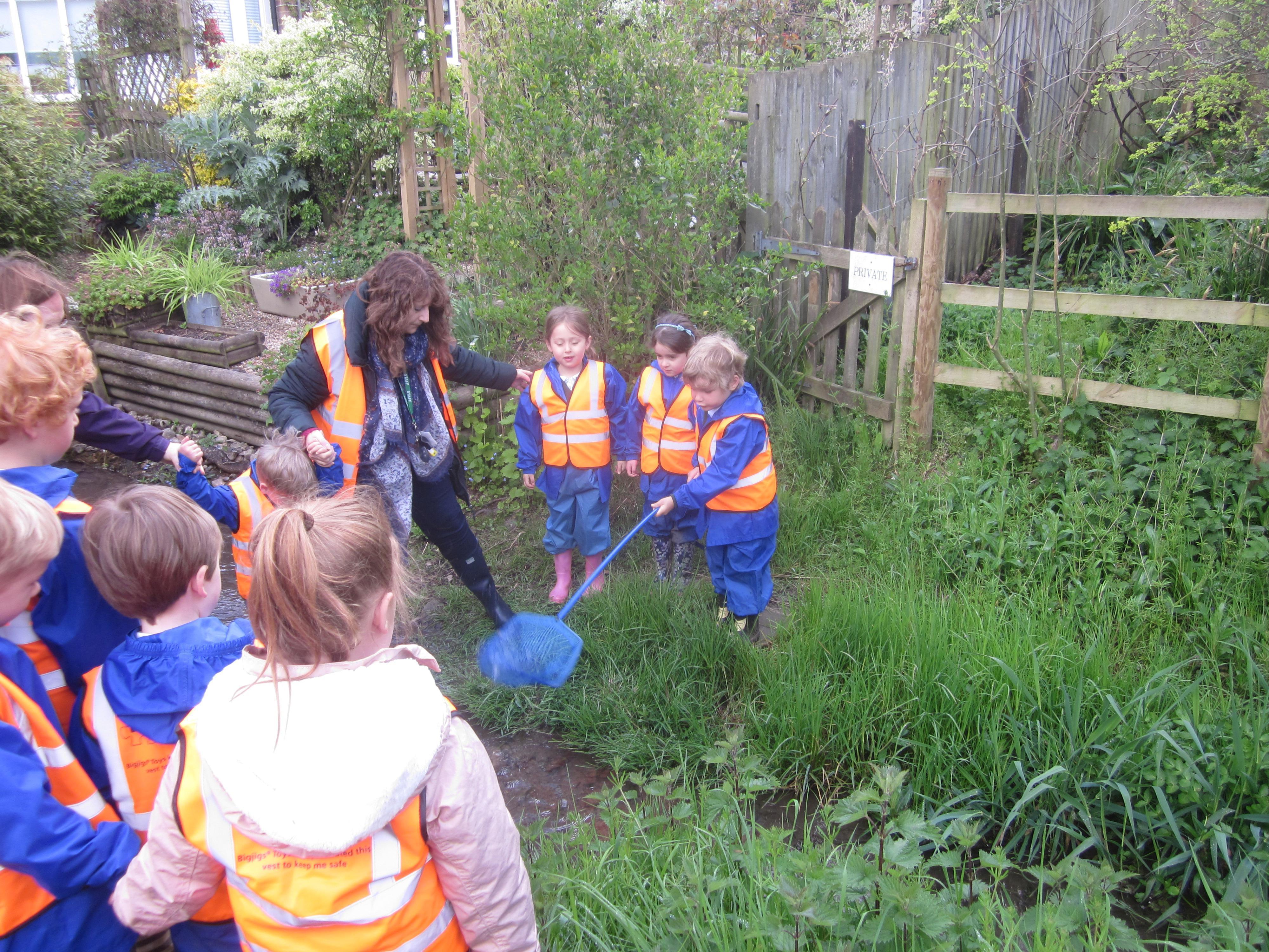 We also went on an expedition to the Nailbourne, a stream which runs along the Elham Valley. We saw where frogs might like to live, and did some fishing with our nets. We didn’t find any tadpoles but we did find some shrimps. We used magnifying glasses to look closely at them.