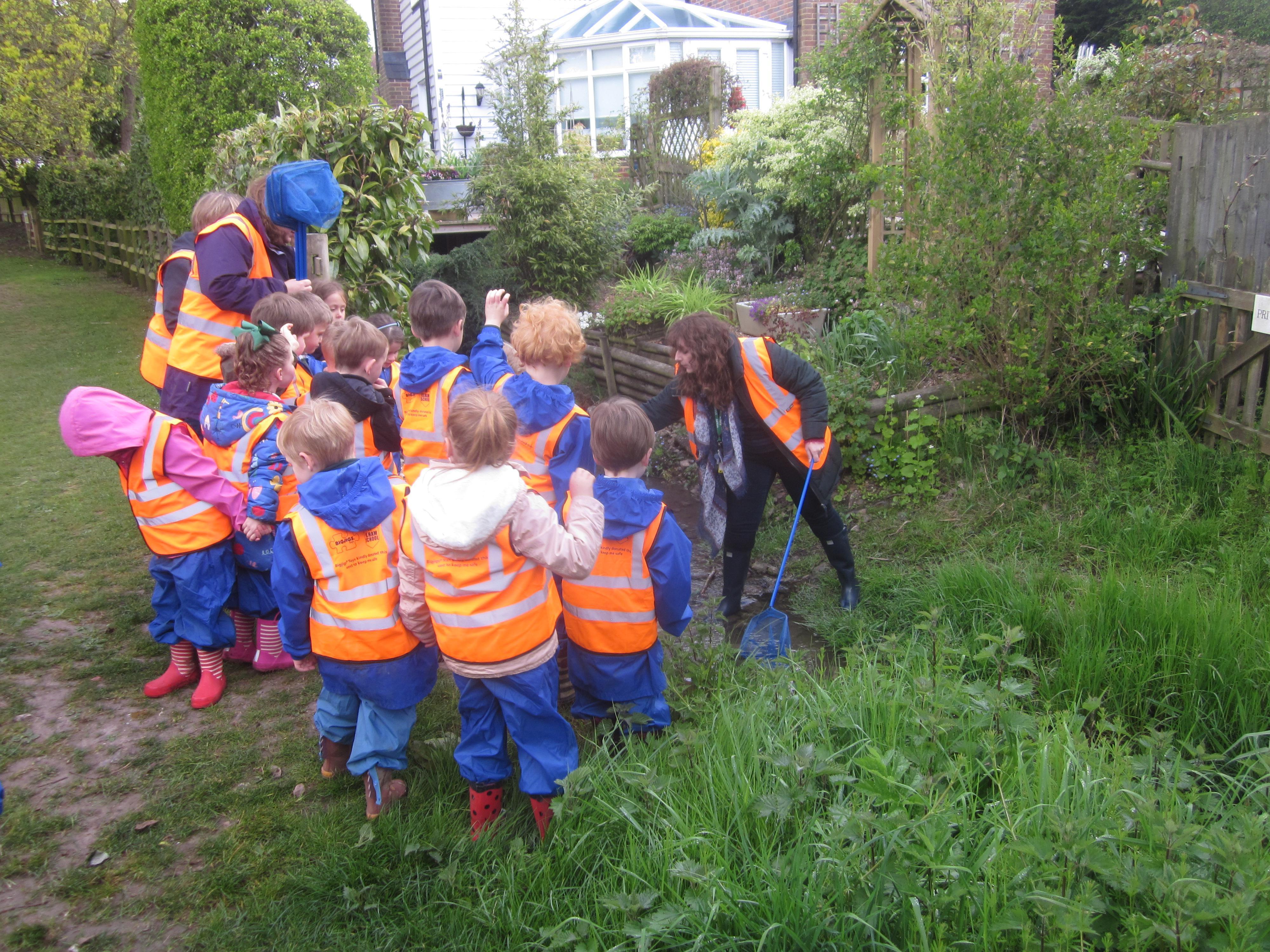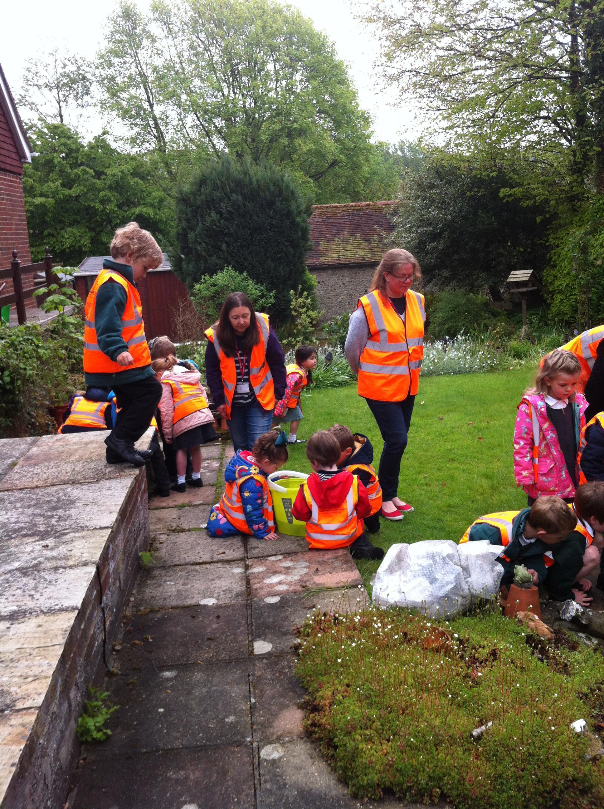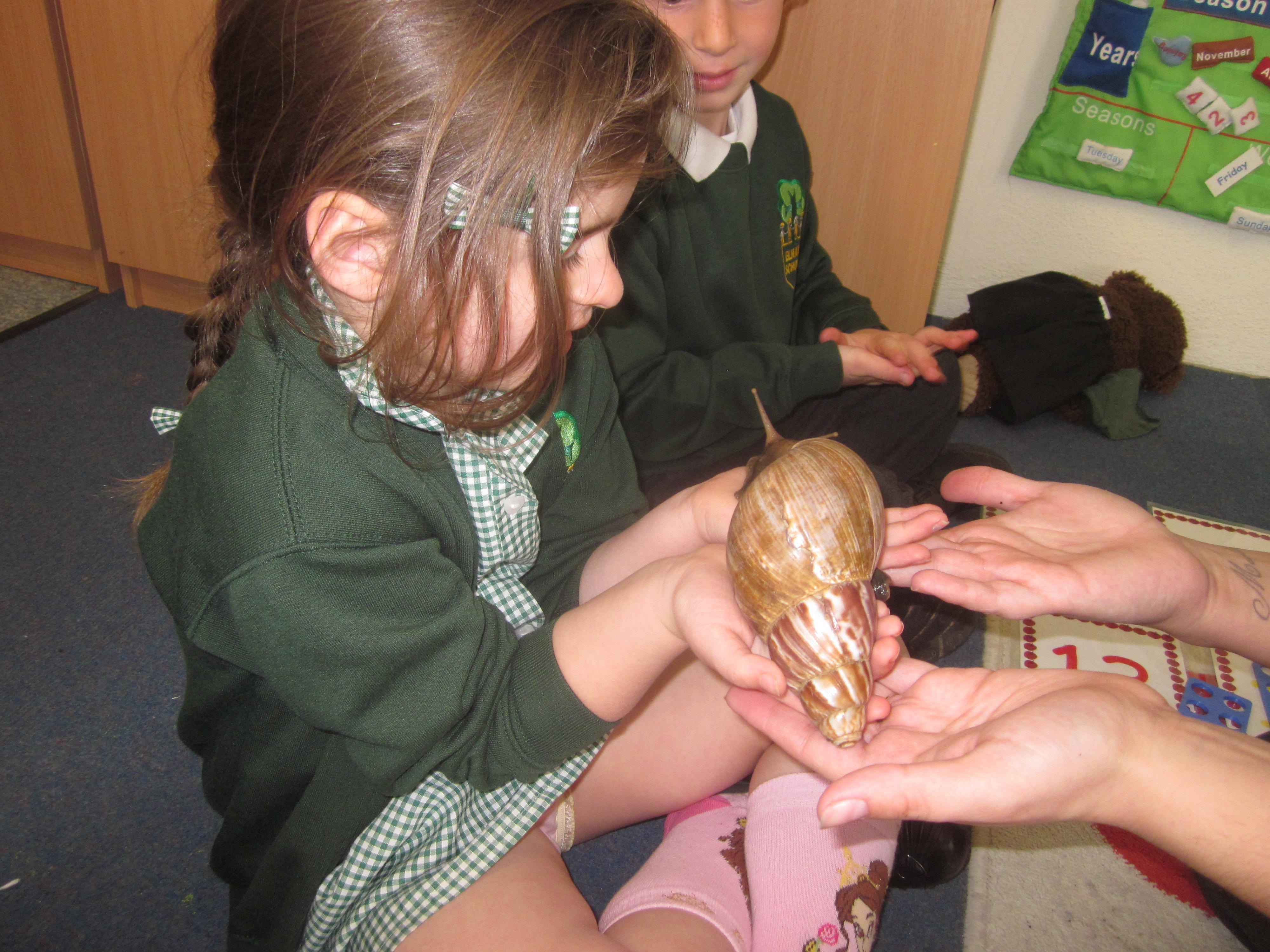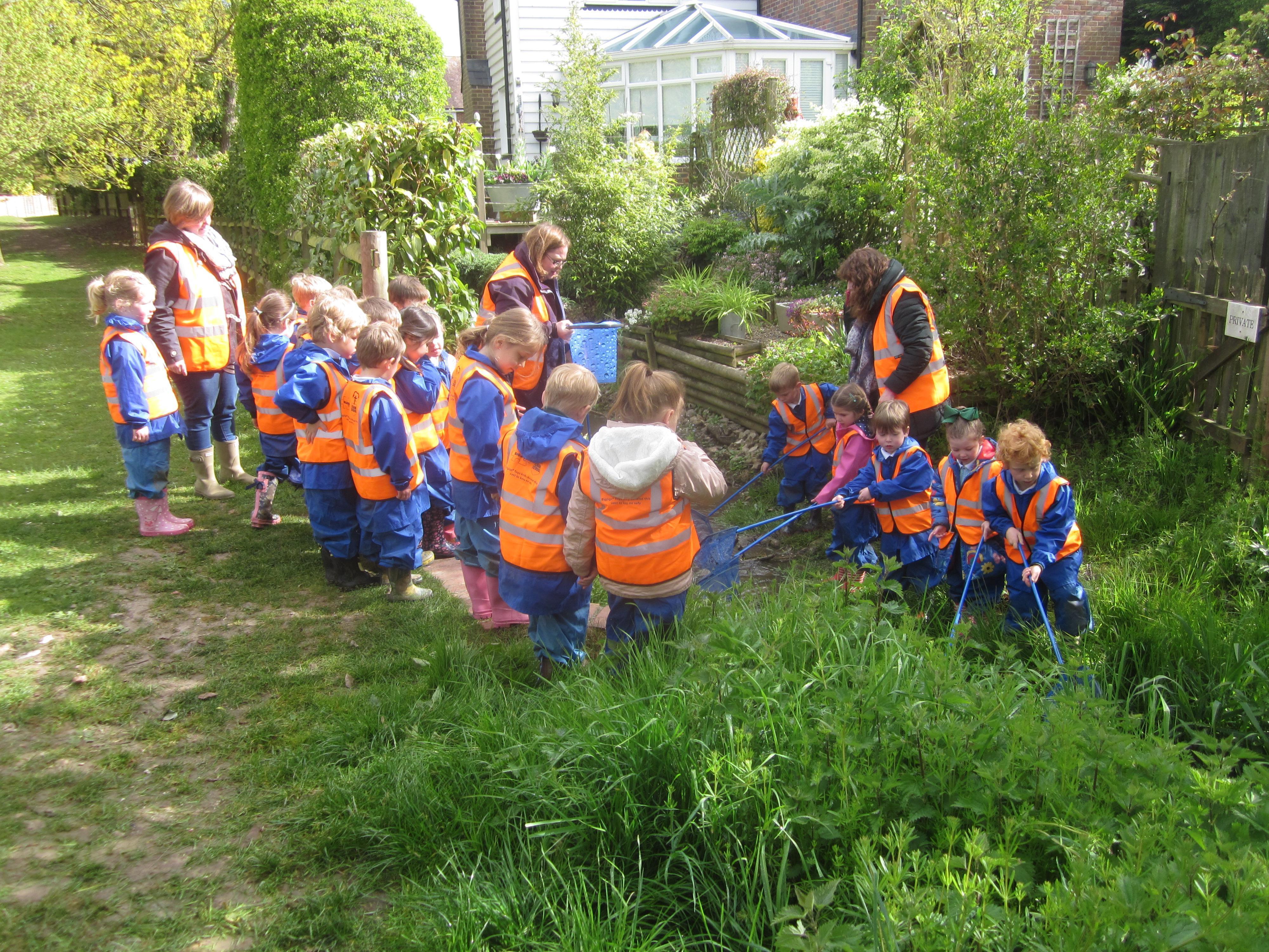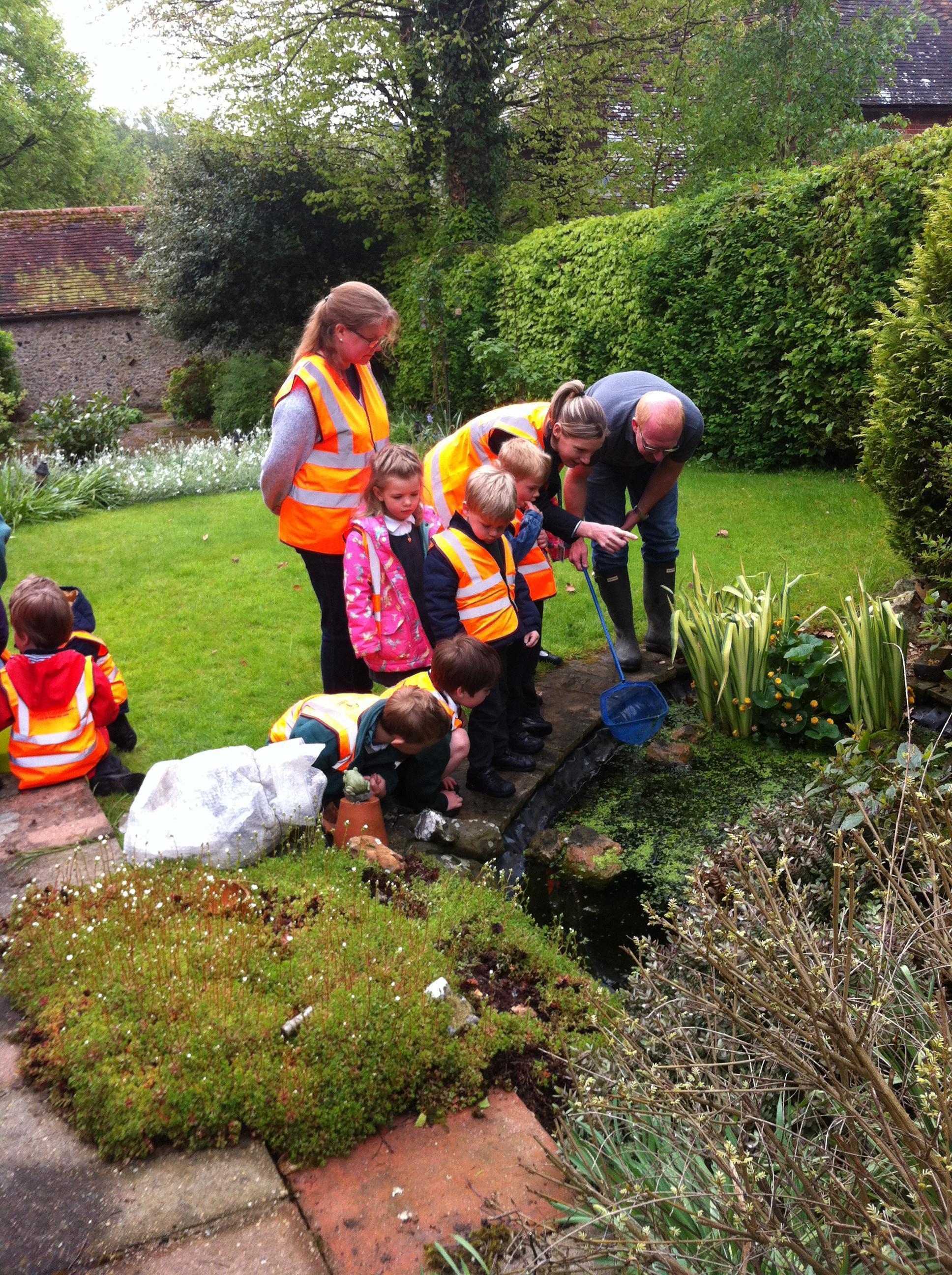 We also went on an expedition to the Nailbourne, a stream which runs along the Elham Valley. We saw where frogs might like to live, and did some fishing with our nets. We didn’t find any tadpoles but we did find some shrimps. We used magnifying glasses to look closely at them.