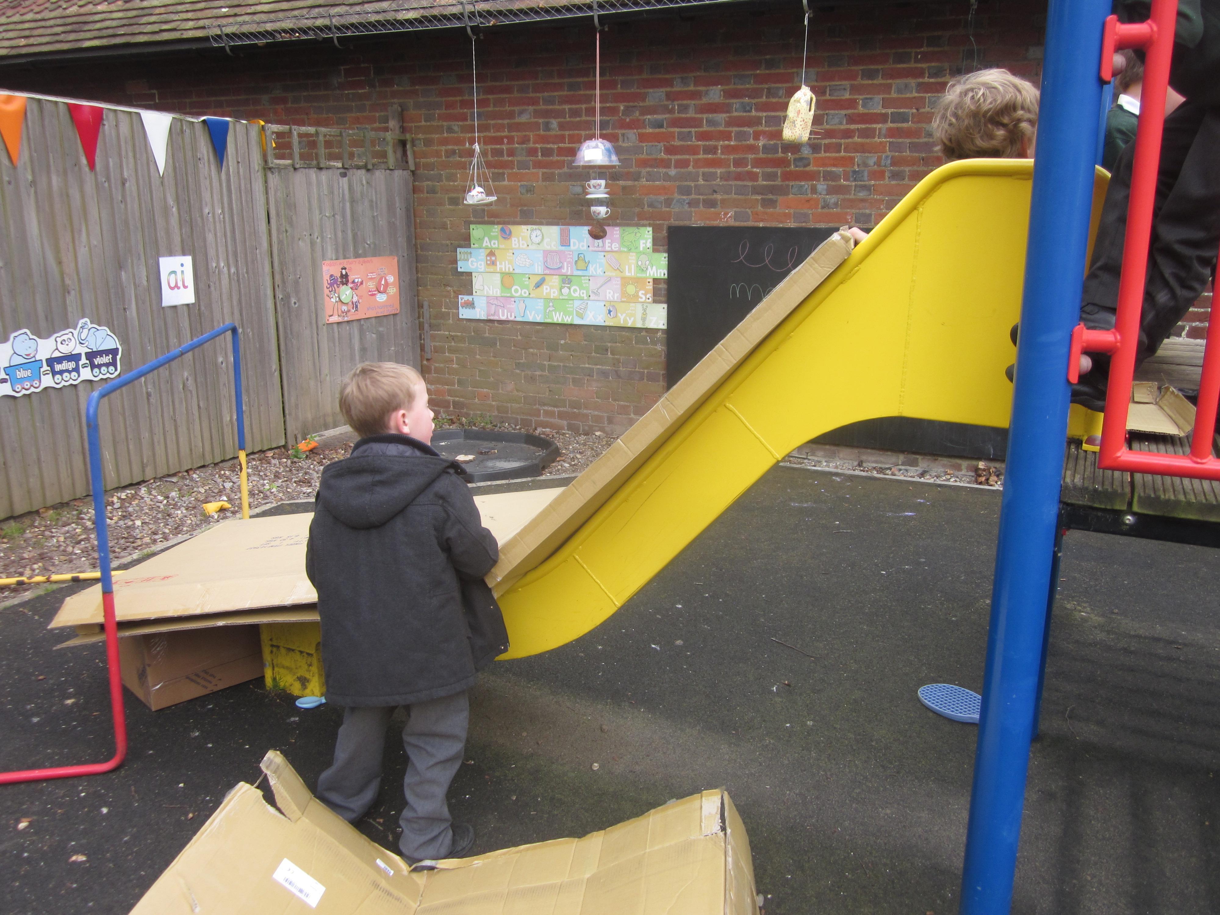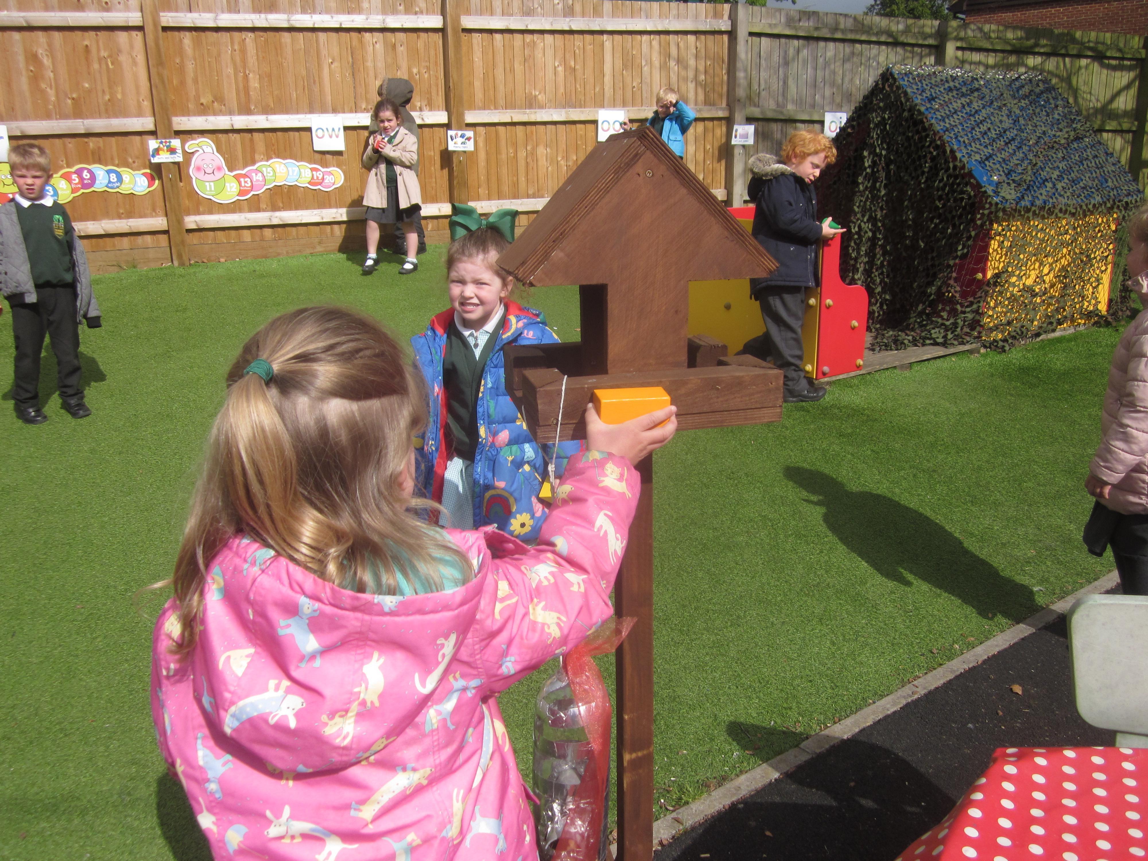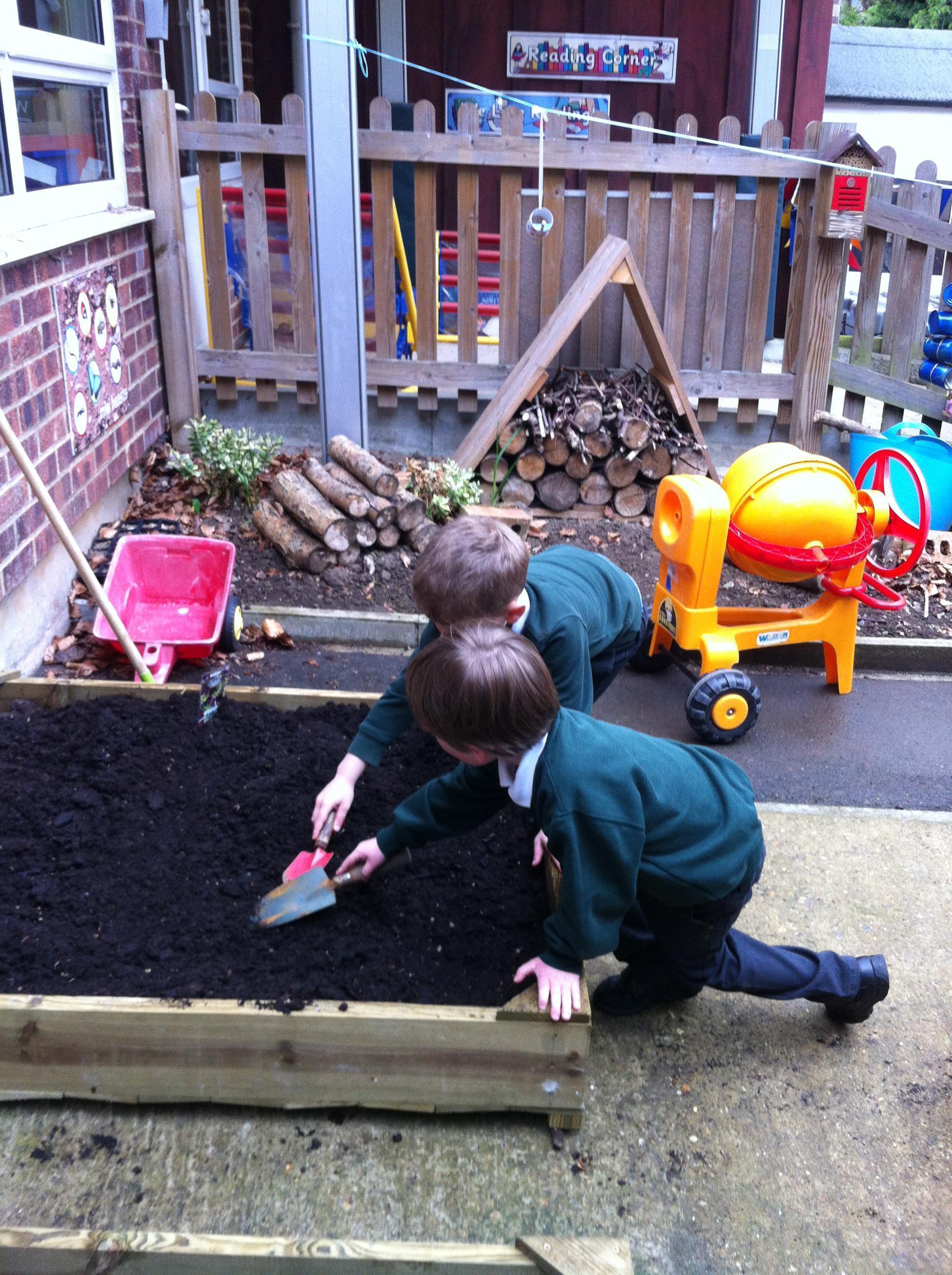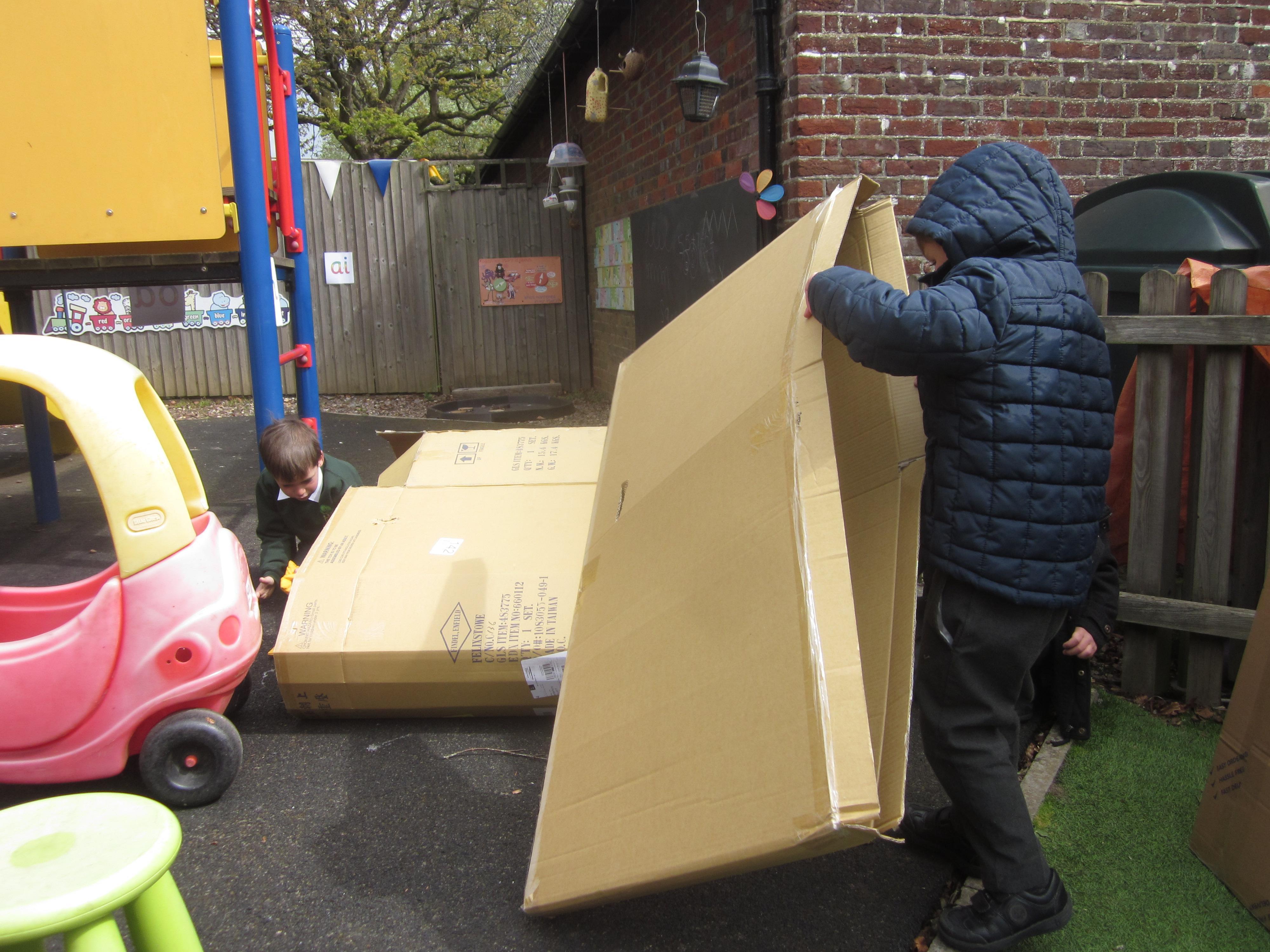 It has felt a bit like Christmas this week, and not just because of the cold weather. Acorn class have had some exciting deliveries. On Wednesday three huge boxes arrived. We all unpacked them together and discovered a fabulous new water tray and rack. The children all helped, holding screws and passing spanners and finally we got it made! The boxes were quite fun too! It didn’t stop there though, two super planters also arrived made by Poppy Gosbee’s grandad. Just right to begin our growing topic. Massive thanks to the PTA for funding the new additions to our outdoor area, it really enhances the children’s, child initiated learning and makes our school environment an amazing place to be.