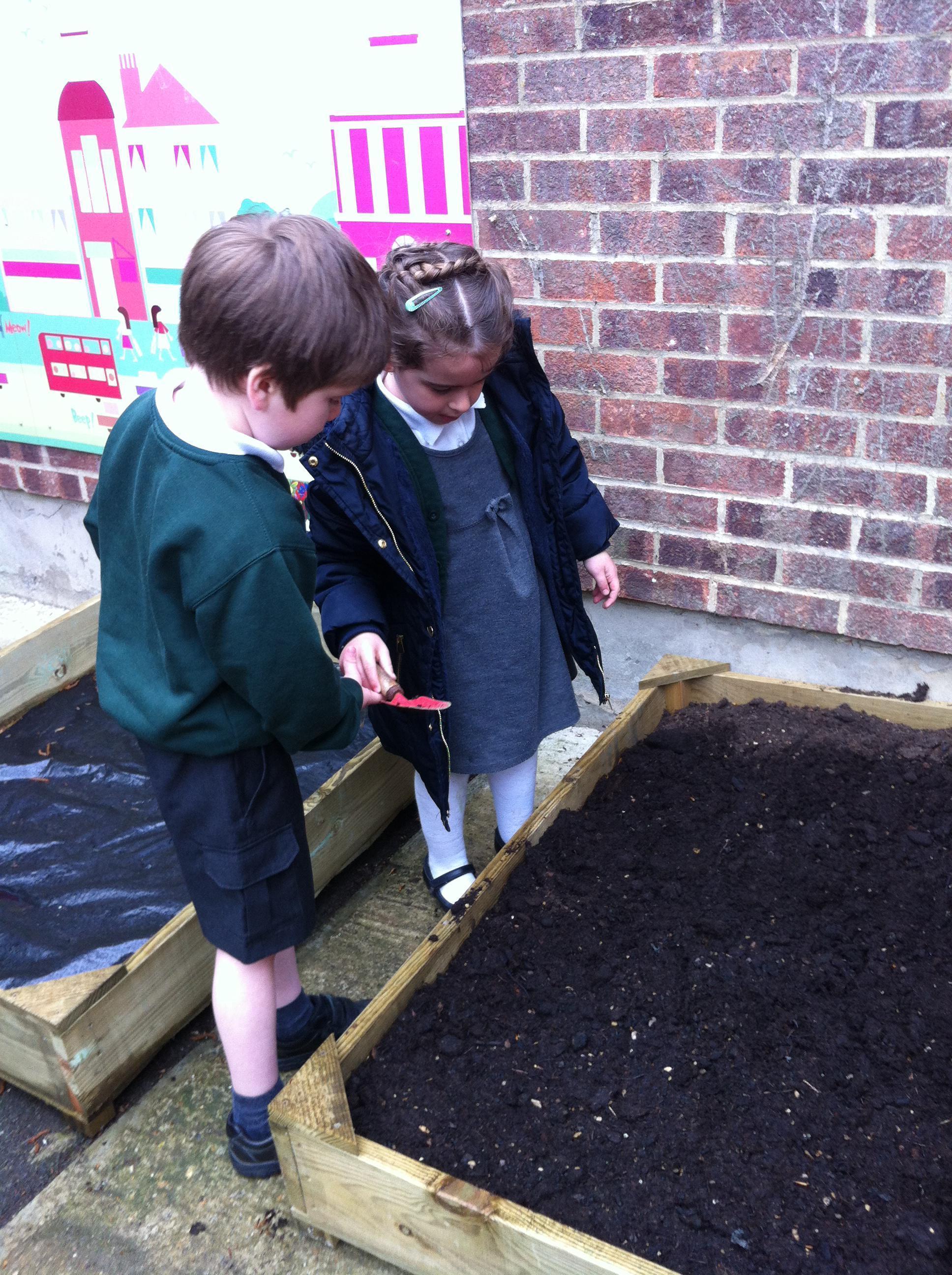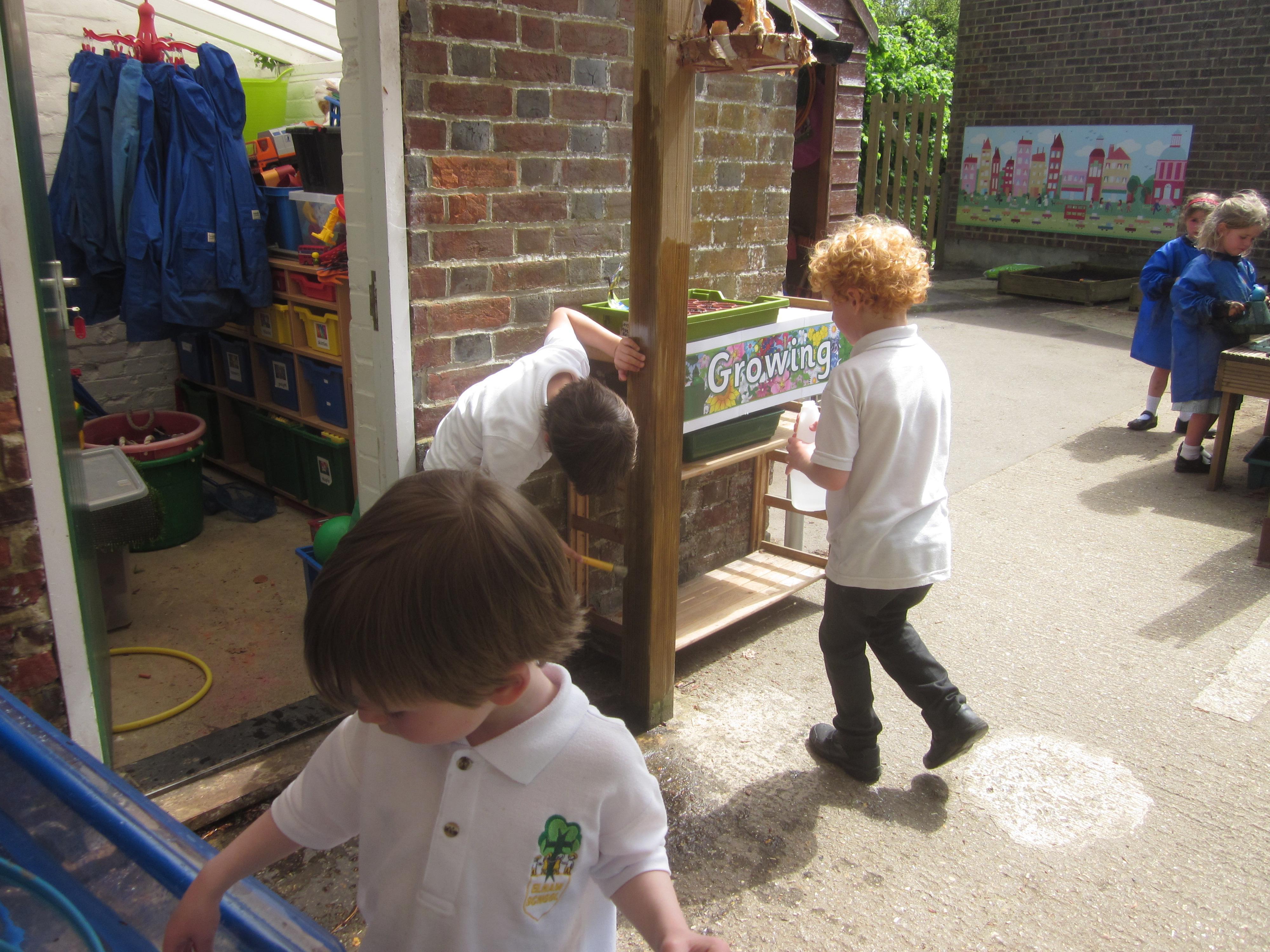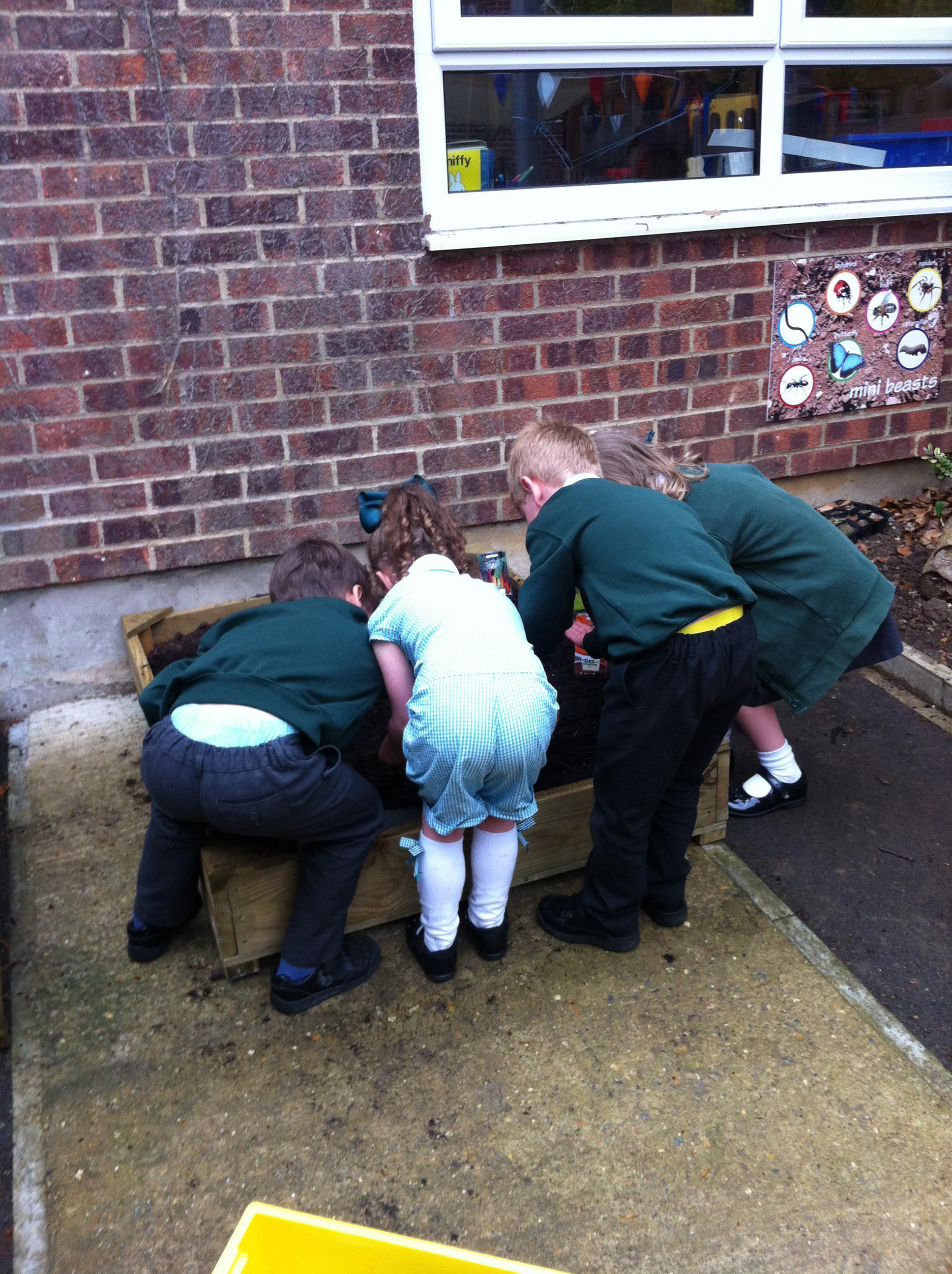 This week we have been doing lots more planting. All the children planted a sunflower and began to write a diary which will show what has happened each week.