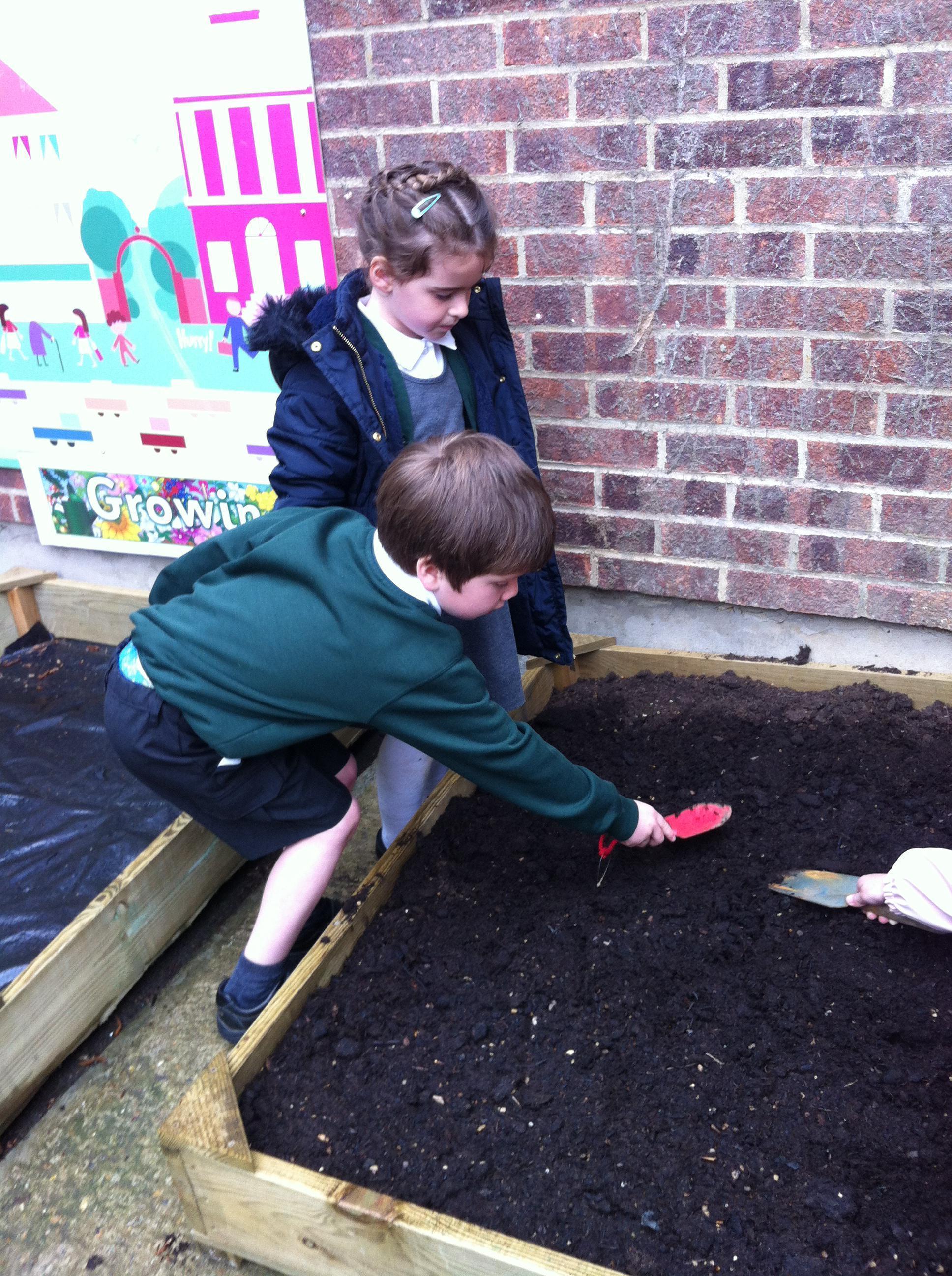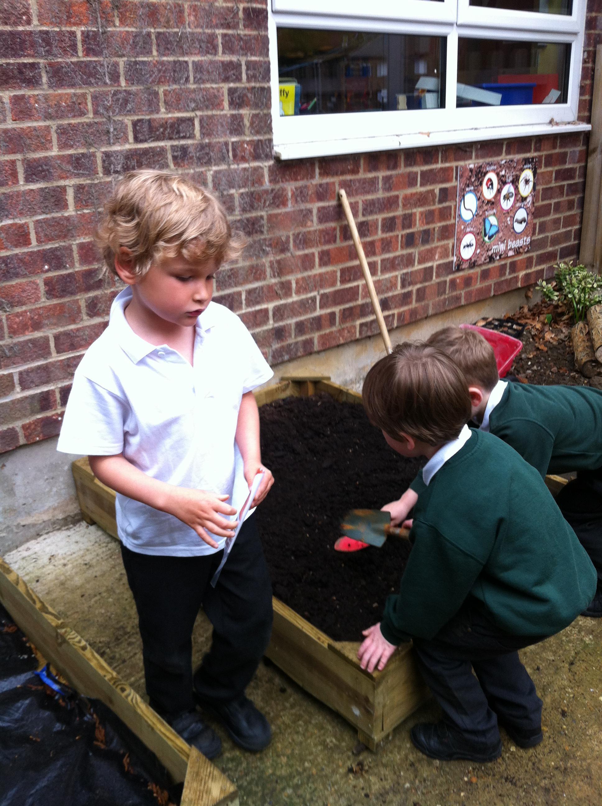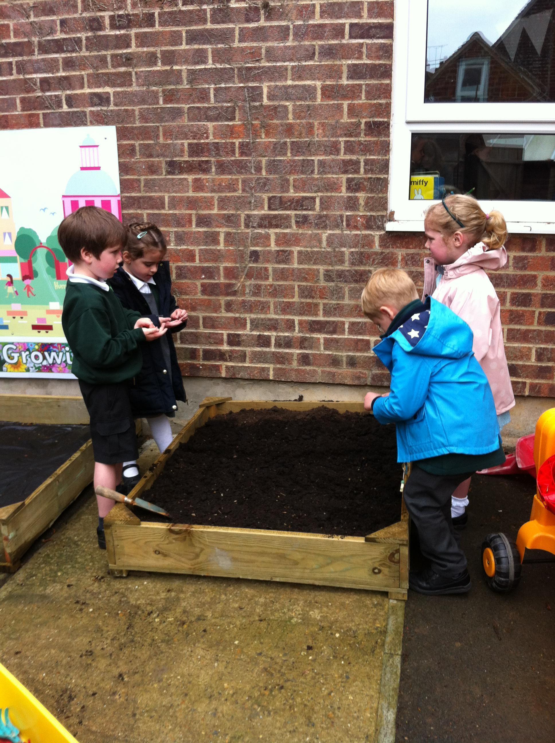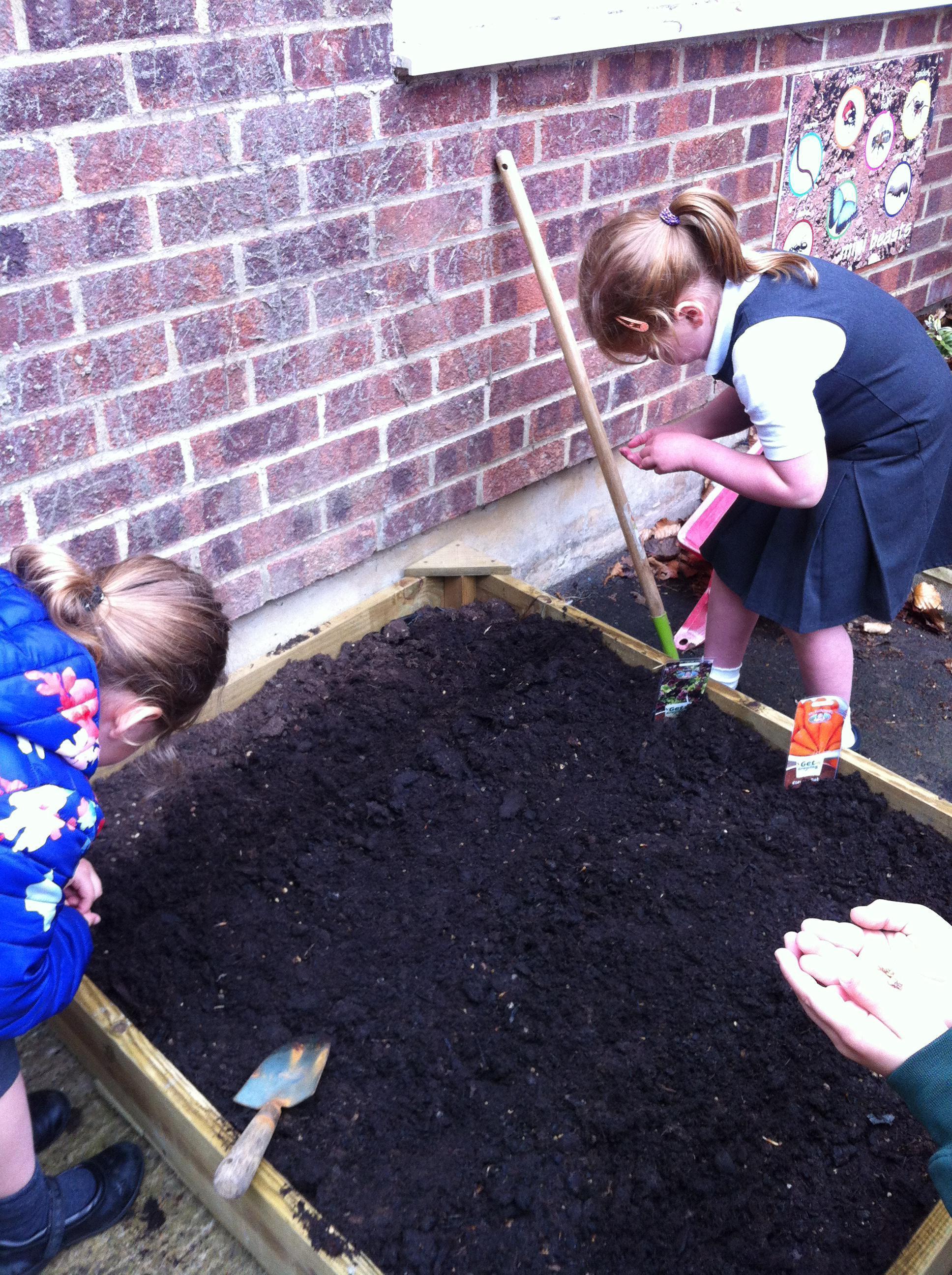 This week we have been doing lots more planting. All the children planted a sunflower and began to write a diary which will show what has happened each week.