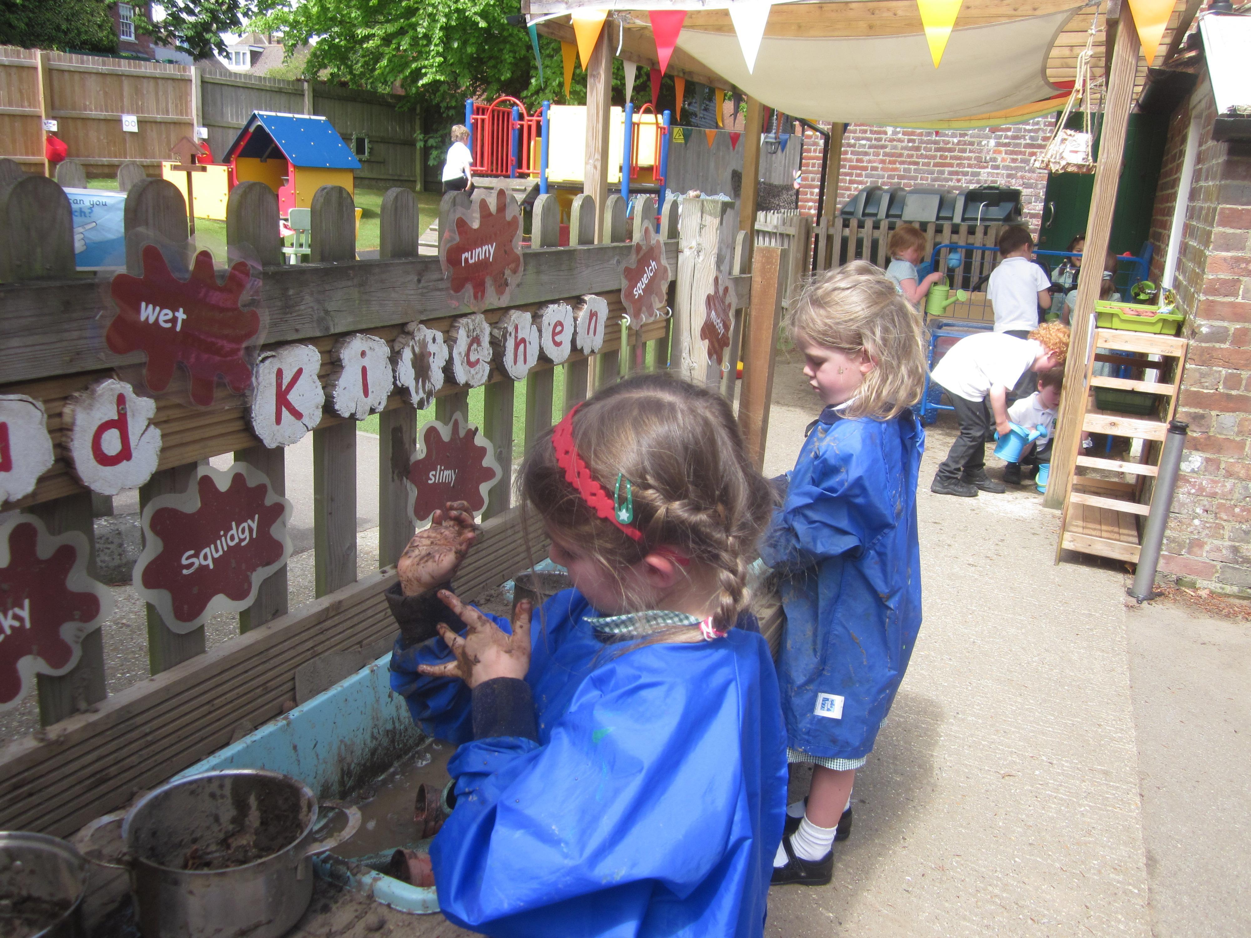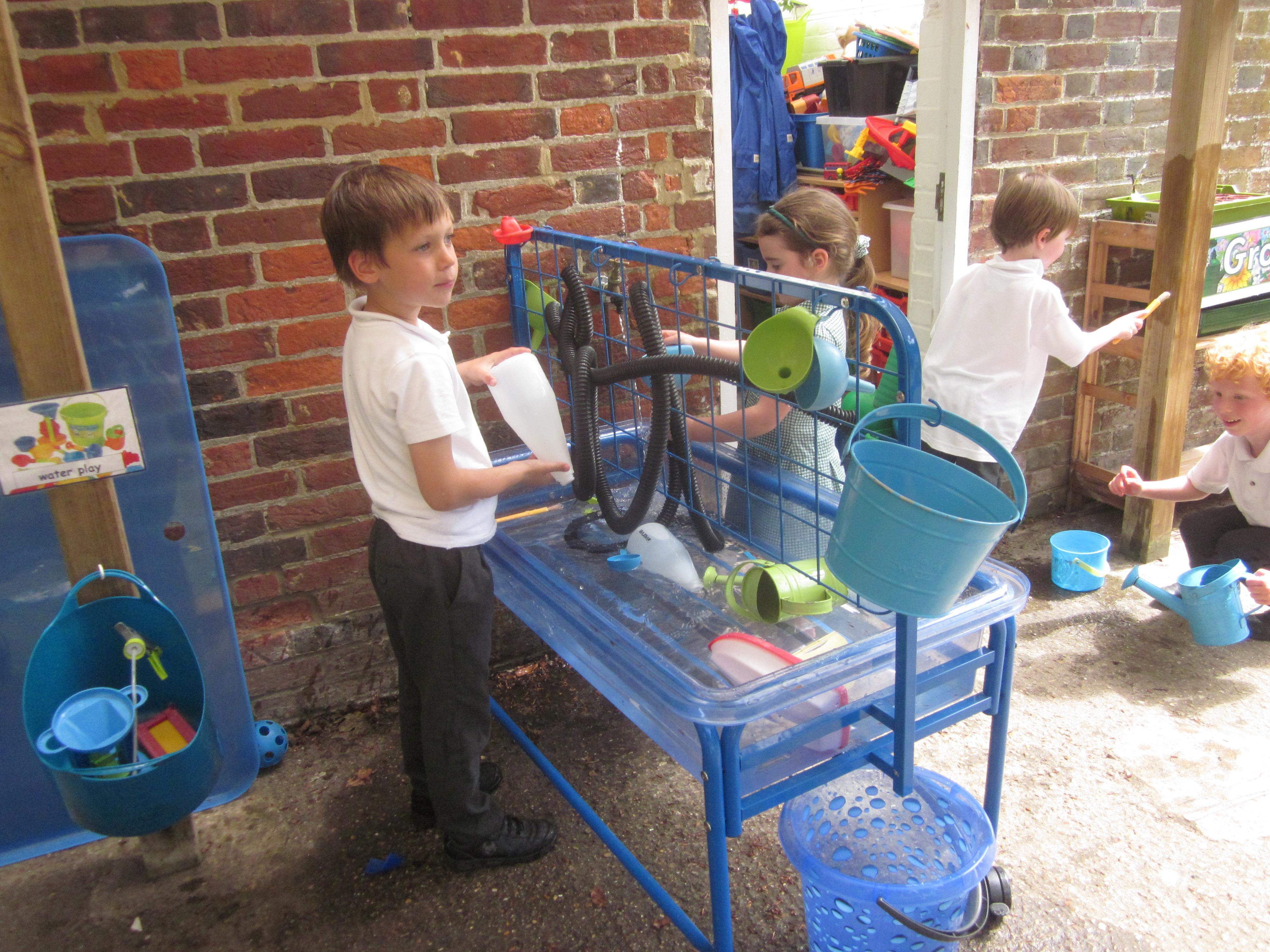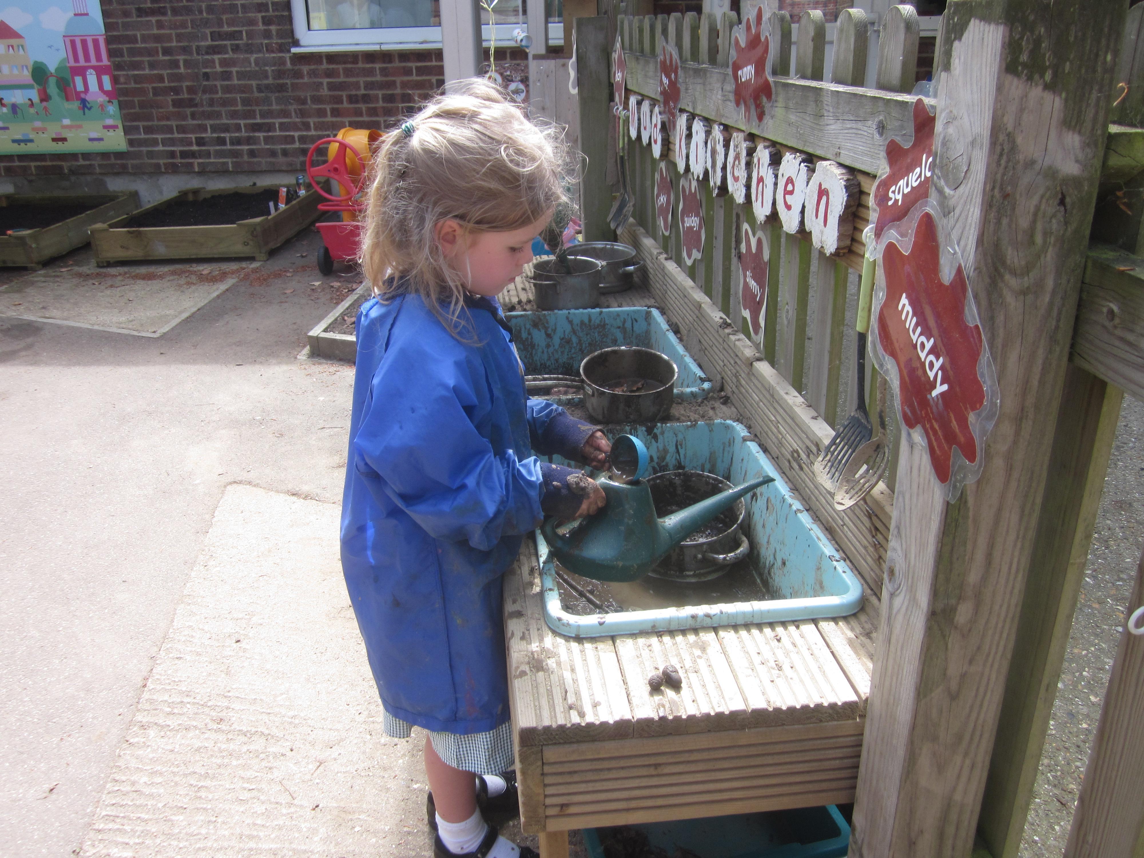 We have had great fun outside with lots of water play, mixing and building ( all very scientific )