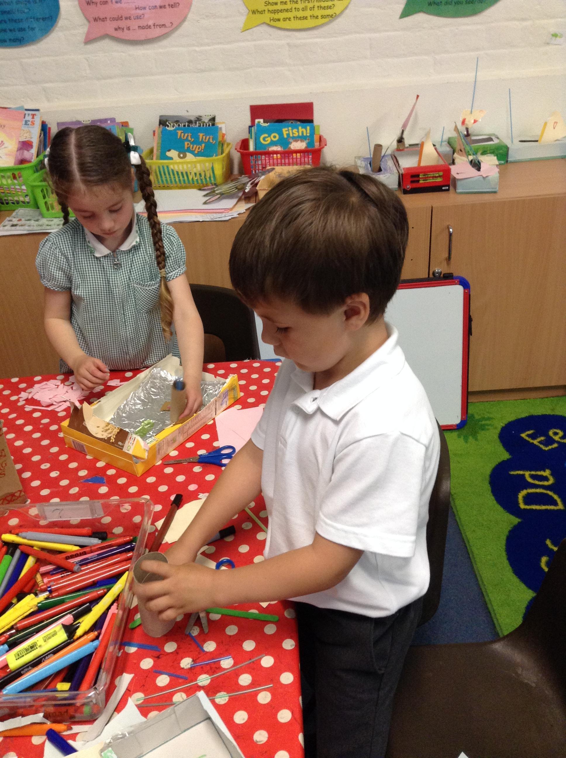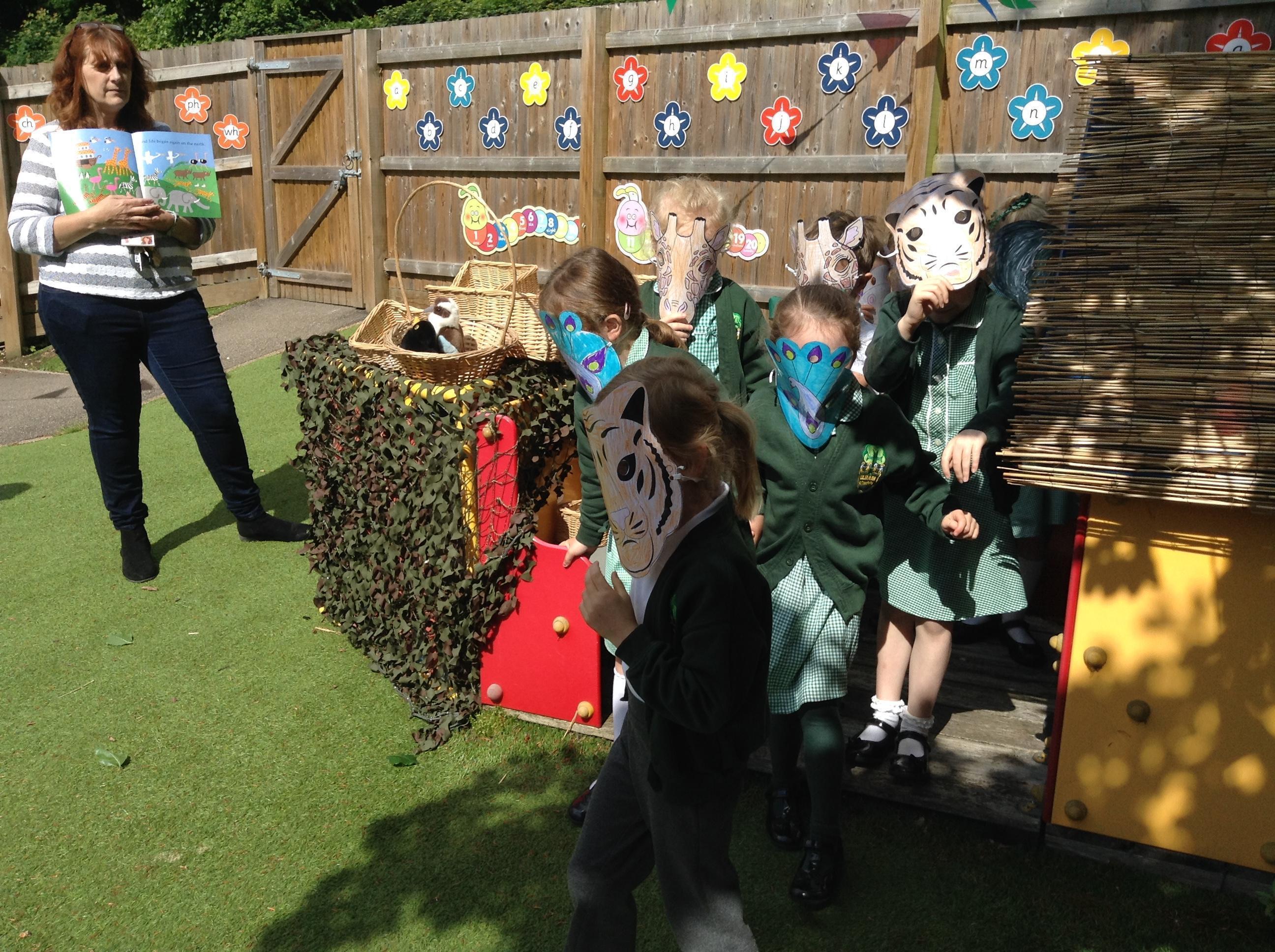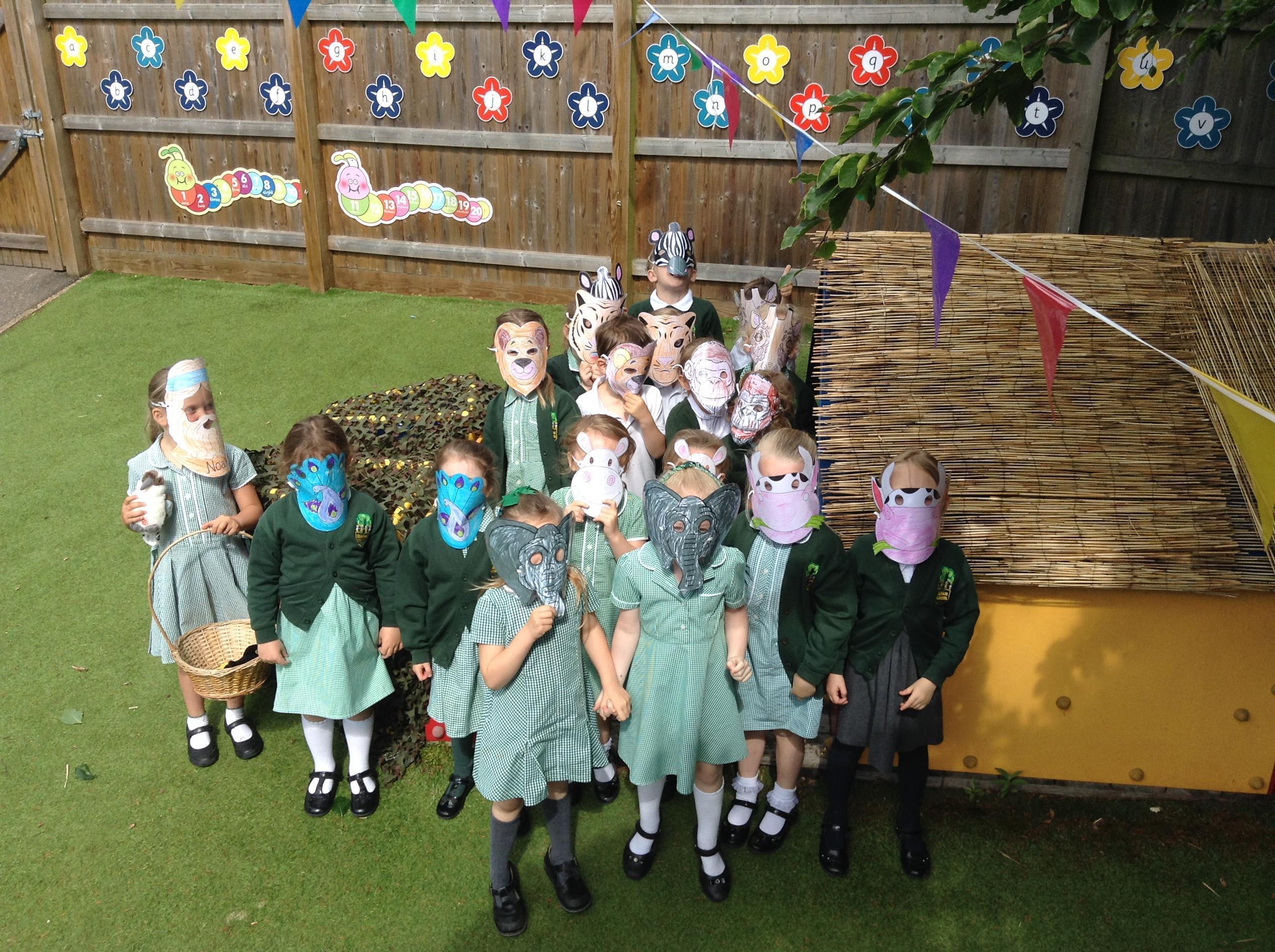 Our learning this week has been about Noah. We have written list for what Noah needed to take onto the Ark. We have labelled an Ark and have counted the animals in 2s. We have thought about the water cycle and made animal masks for role playing the story. During circle time we had some interesting thoughts when the children were asked what they thought of the flood. One said that it was a bit unfair that only two of each animal went on the ark and that he was sure that the animals had not been bad. A very good point and interesting deep thinking from one so young!