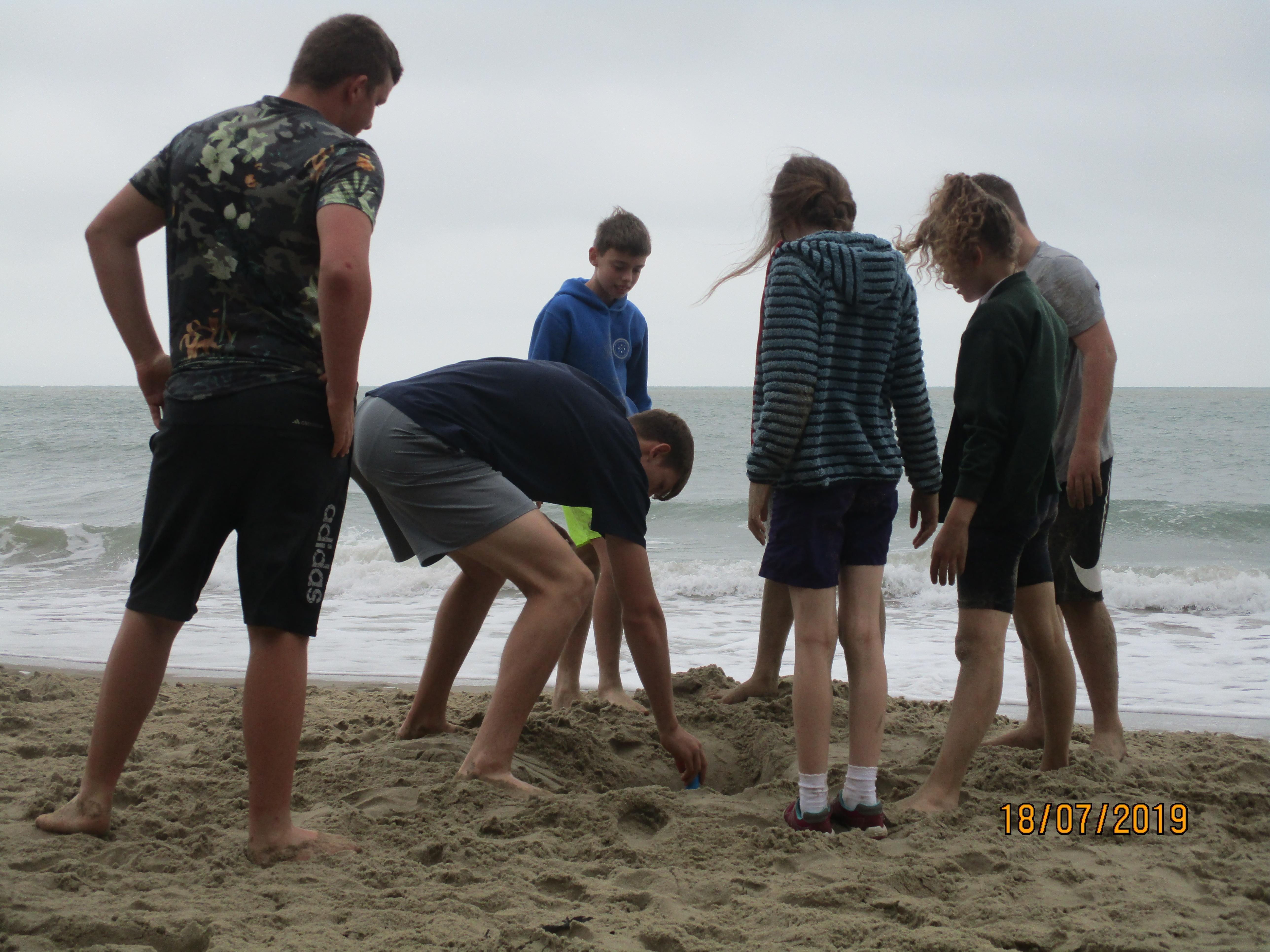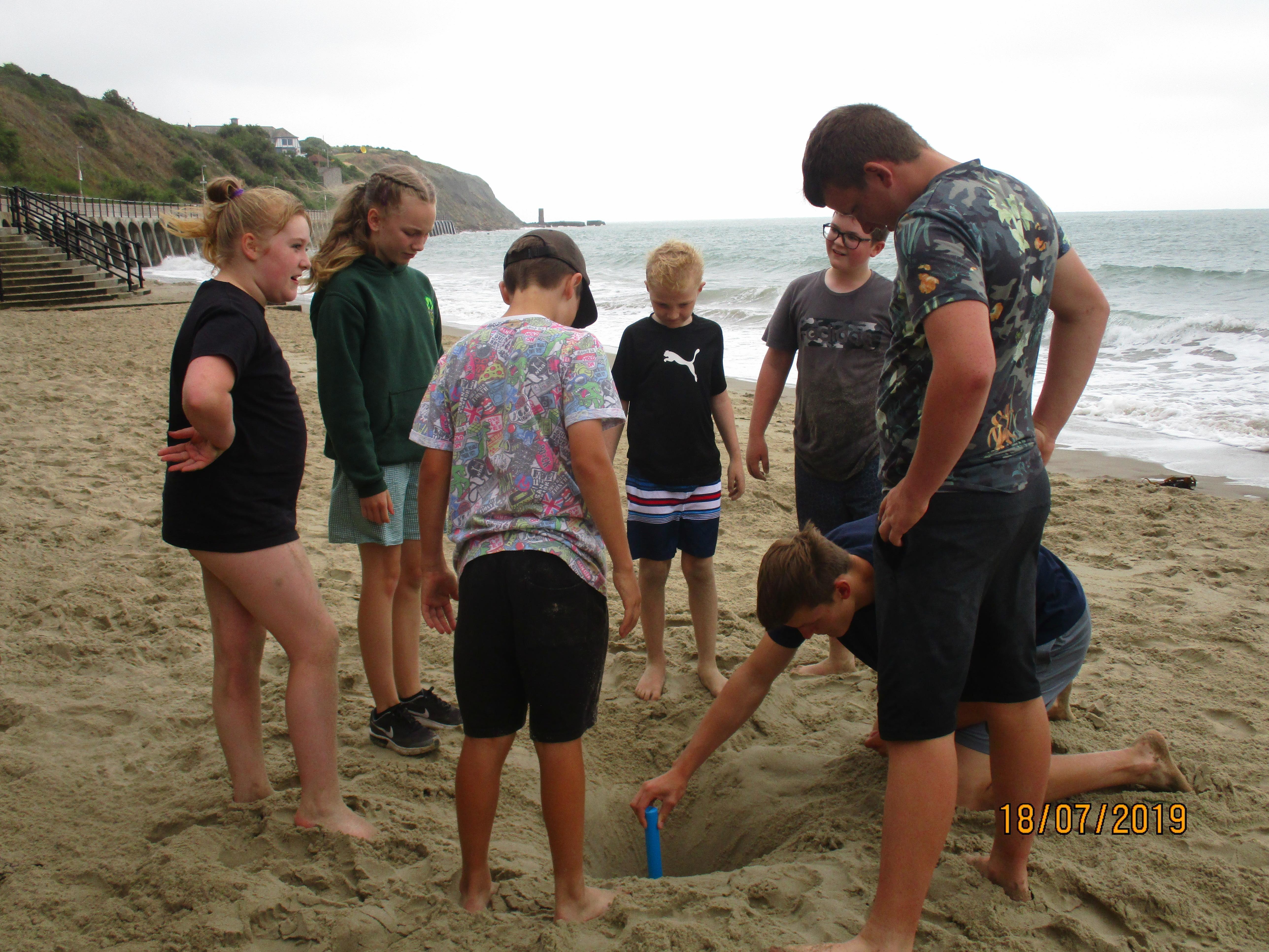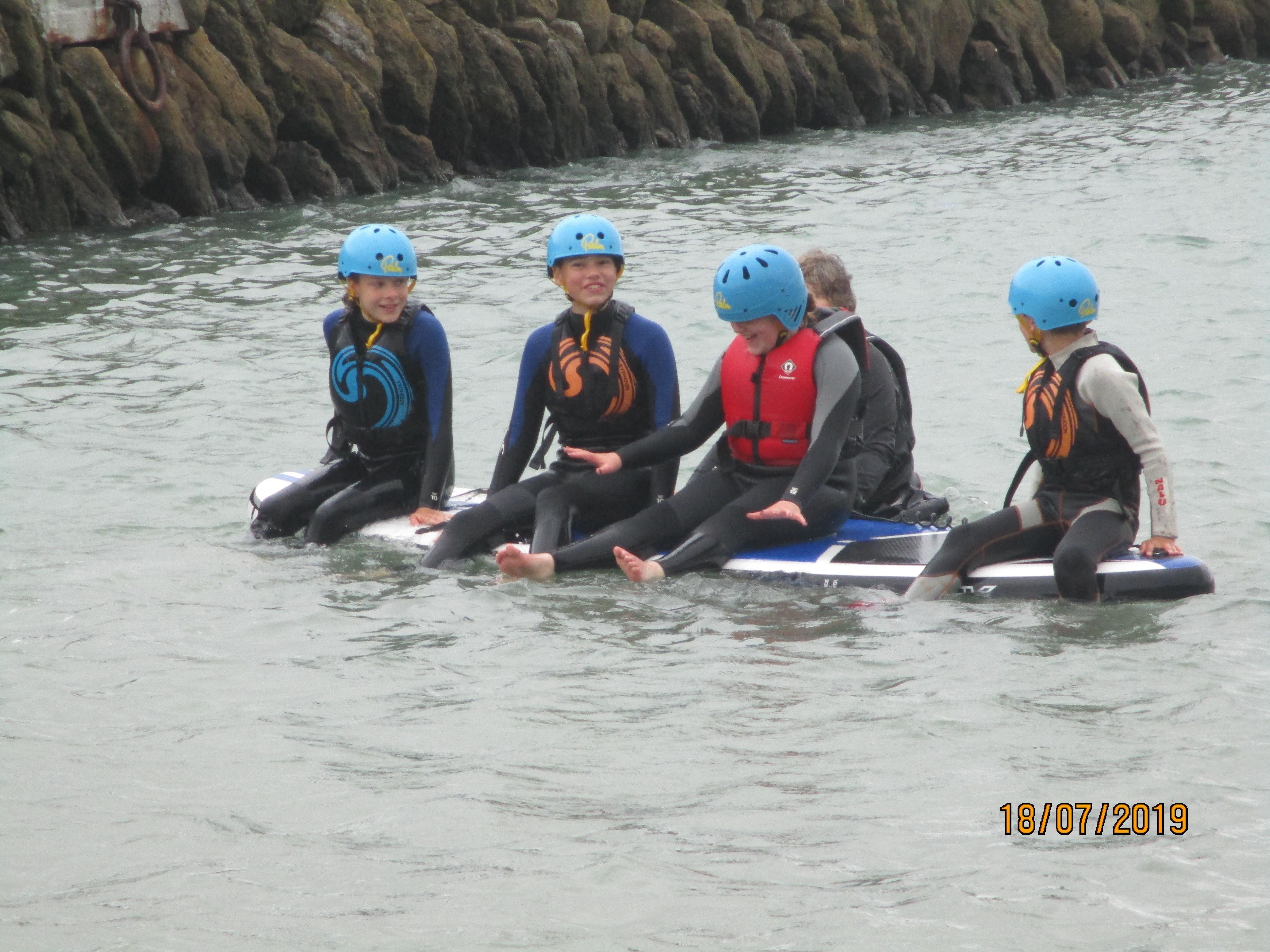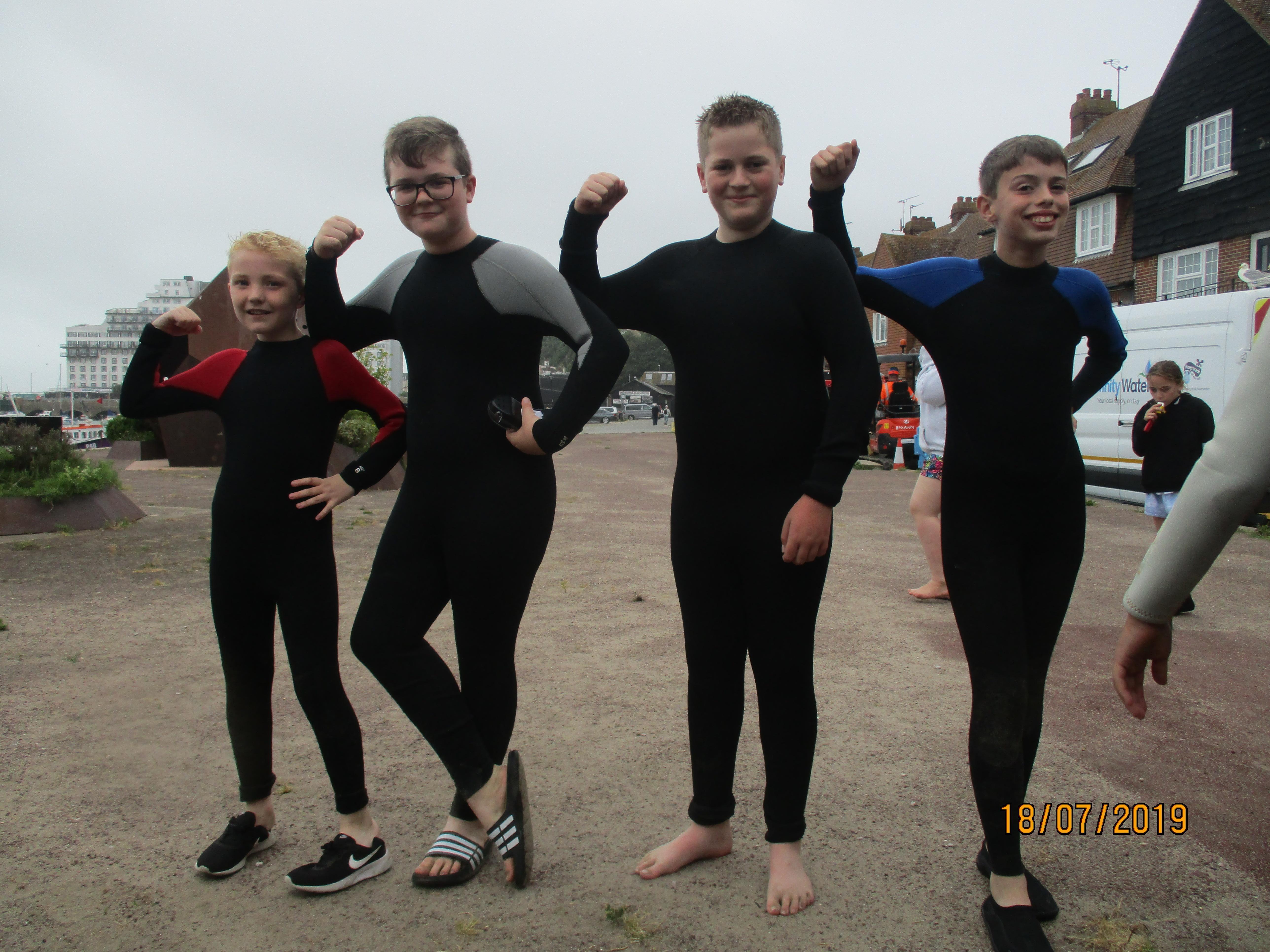Thursday dawned grey and wet, but that did not deter the children from their beach activities. After all, once they were in their wetsuits (which proved a challenge to put on for some!) it didn't matter if they got wet from the sea of the rain. It was the teachers and parents who were spectating who were wishing for warmth and sunshine. At the end of the day, when offered the choice of an icecream or chips, it was chips that the class chose and very delicious and warming they were too.