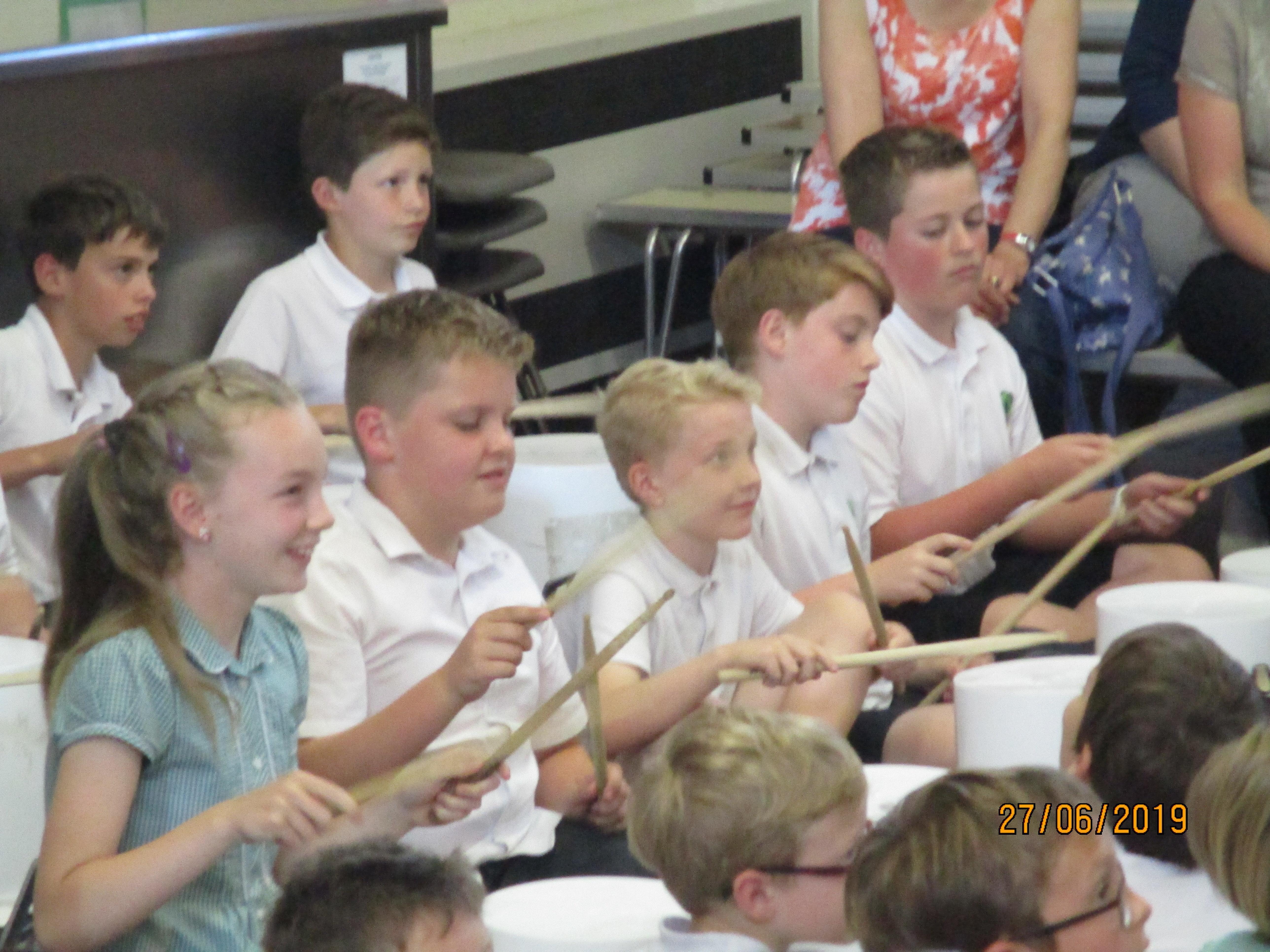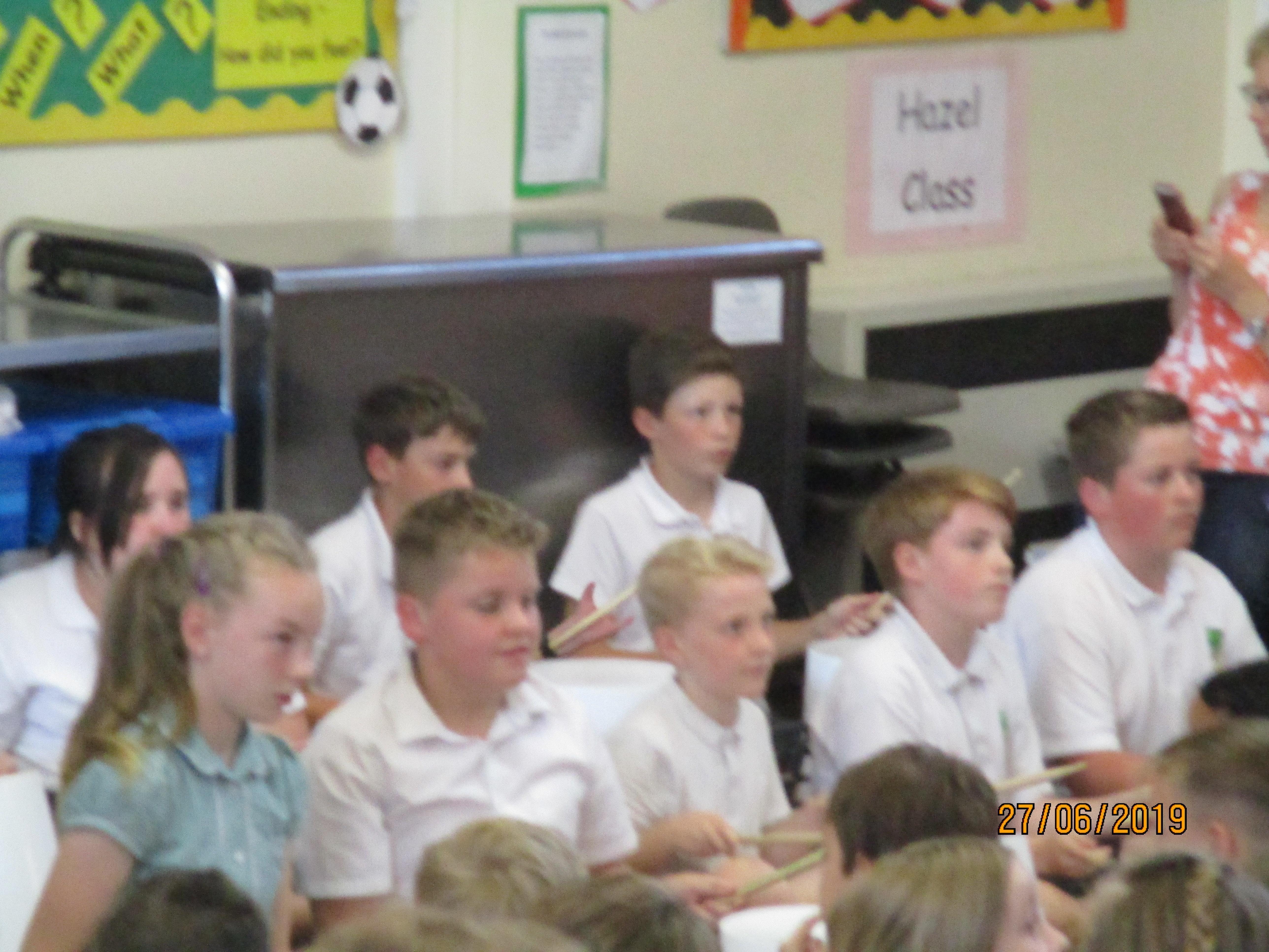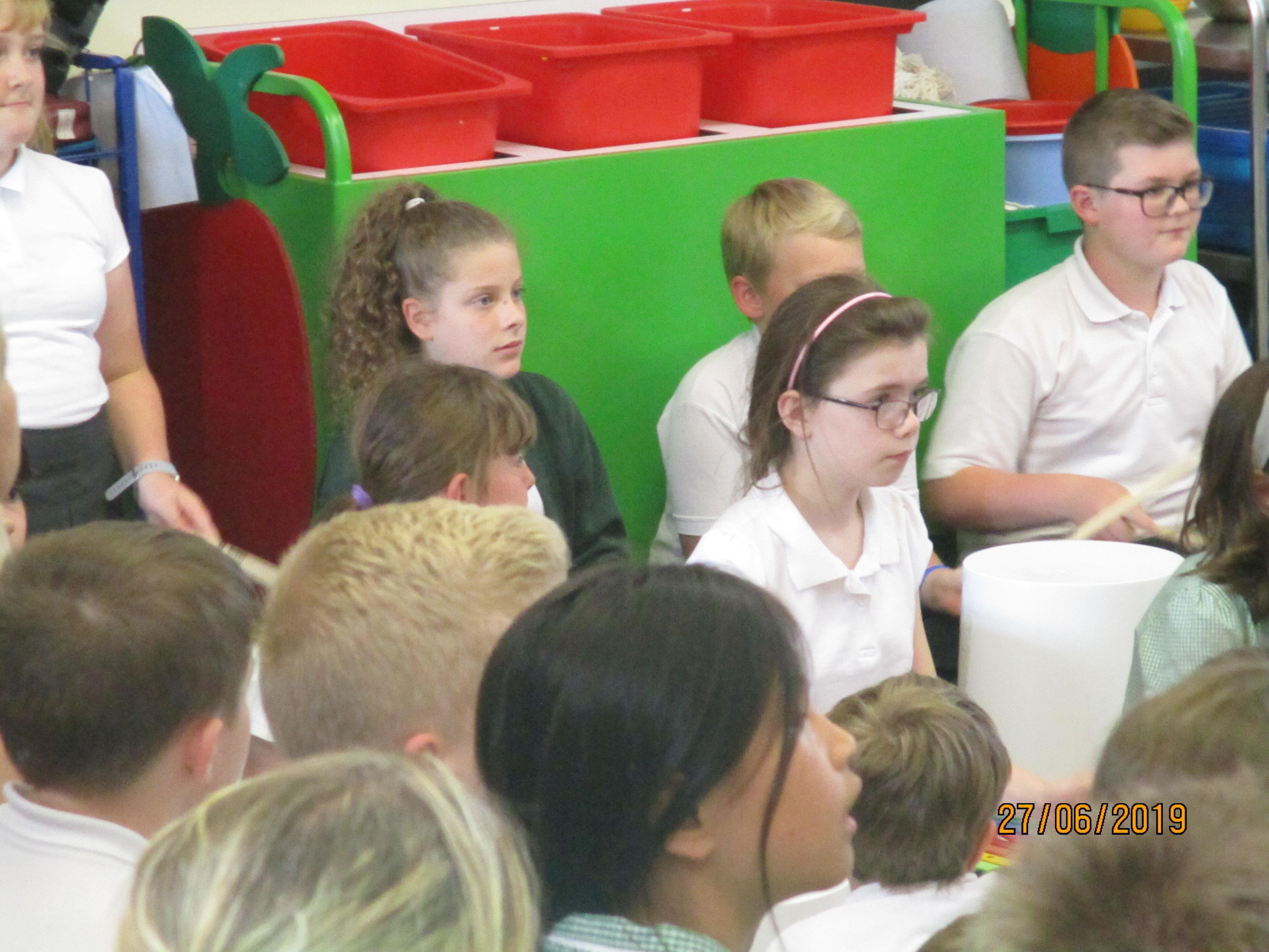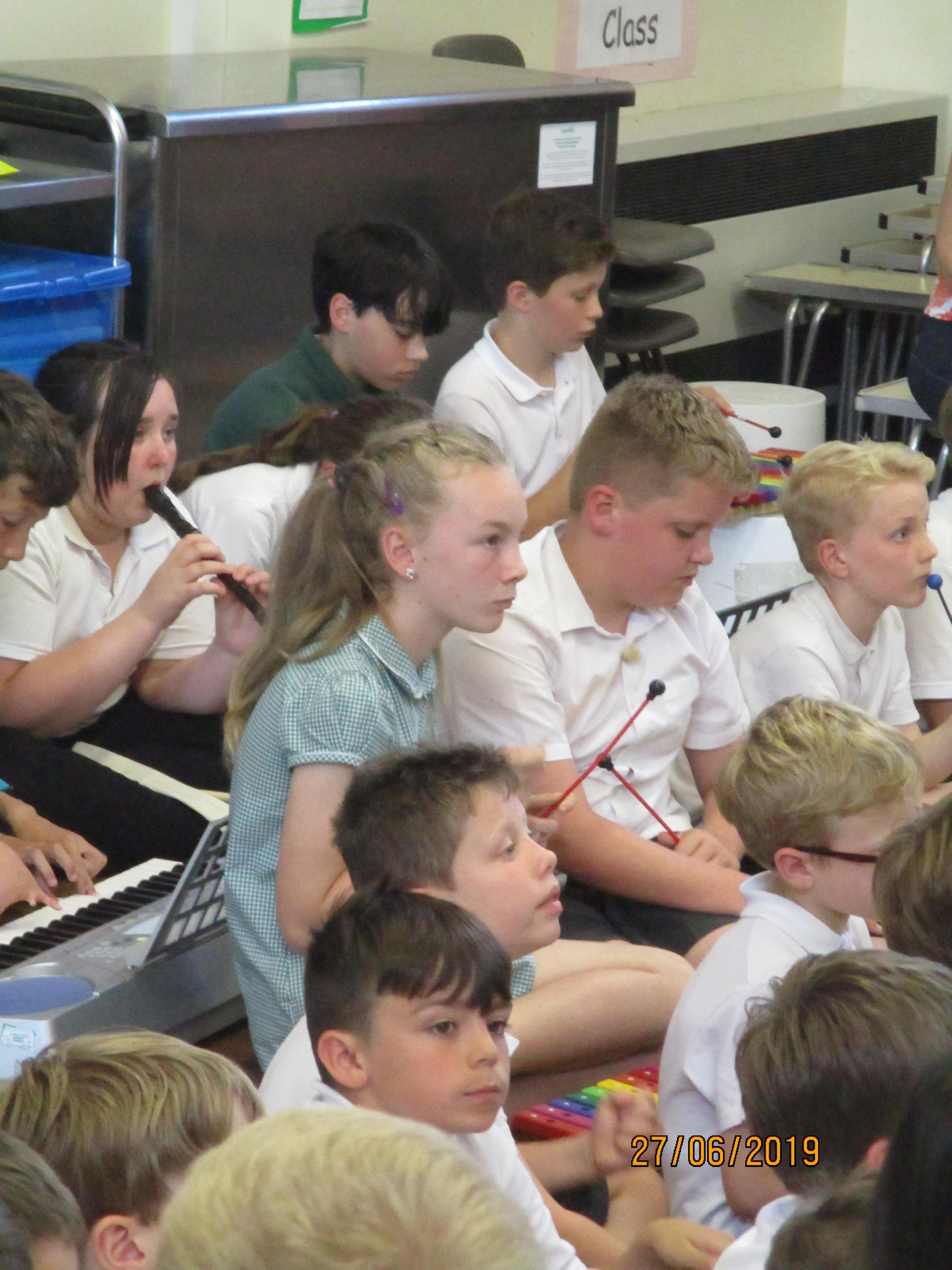 Thursday afternoon was rather special as we had our annual music concert where each class had the opportunity to showcase what they had learnt with Karen Hickman throughout the year. As well as this, children who learn a musical instrument individually had the opportunity to demonstrate their talent. We certainly do have some very talented musicians in the school and a special mention must be made of Lucas, Jenny and Sophie who were all brave enough to stand up in front of the whole school and perform. Well done to you all. As a class, Year 6 showed how proficient they had become at drumming in addition to playing a variety of instruments such as keyboards, xylophones and recorders in a group piece. There are photos of us in action below.