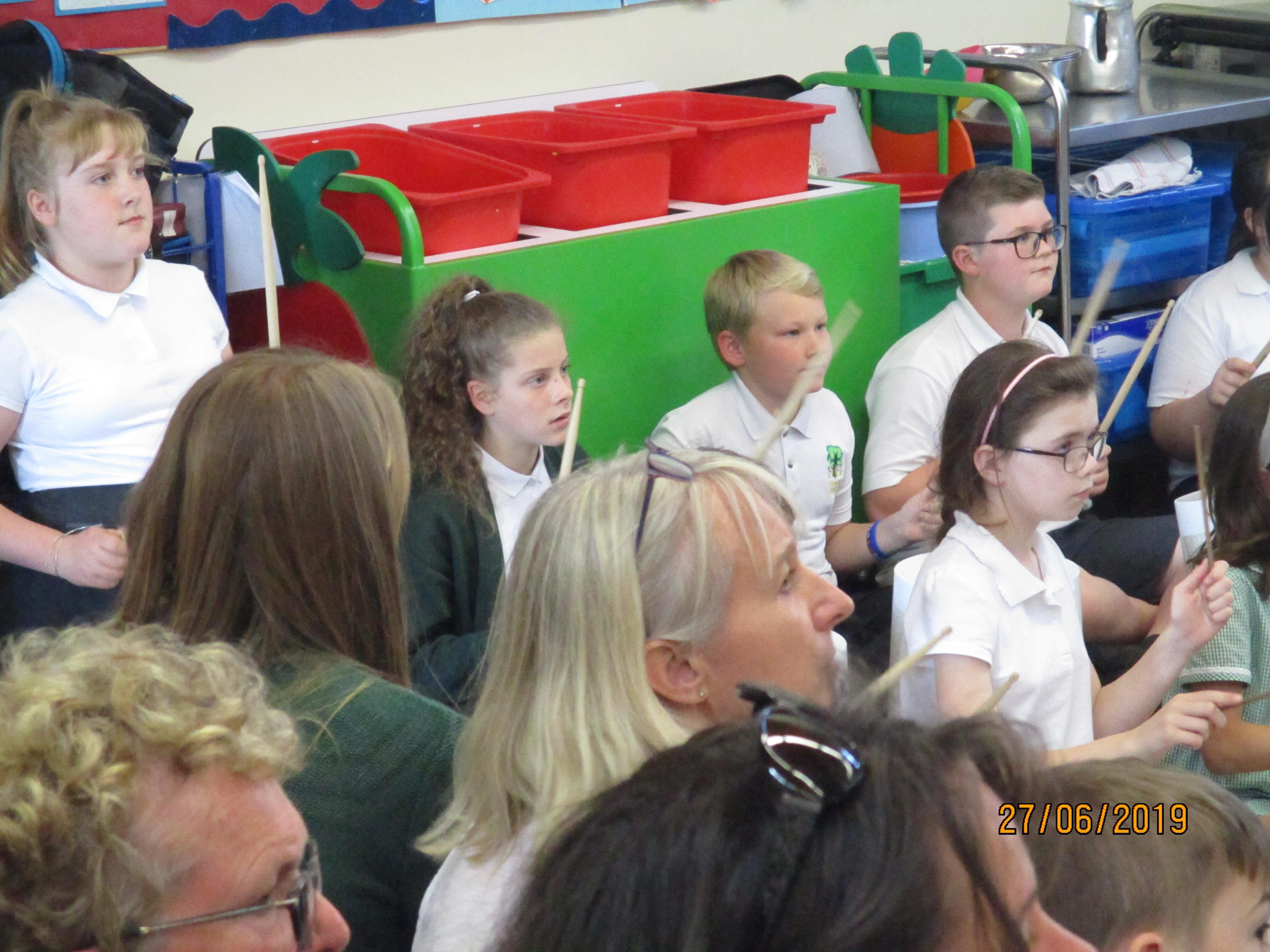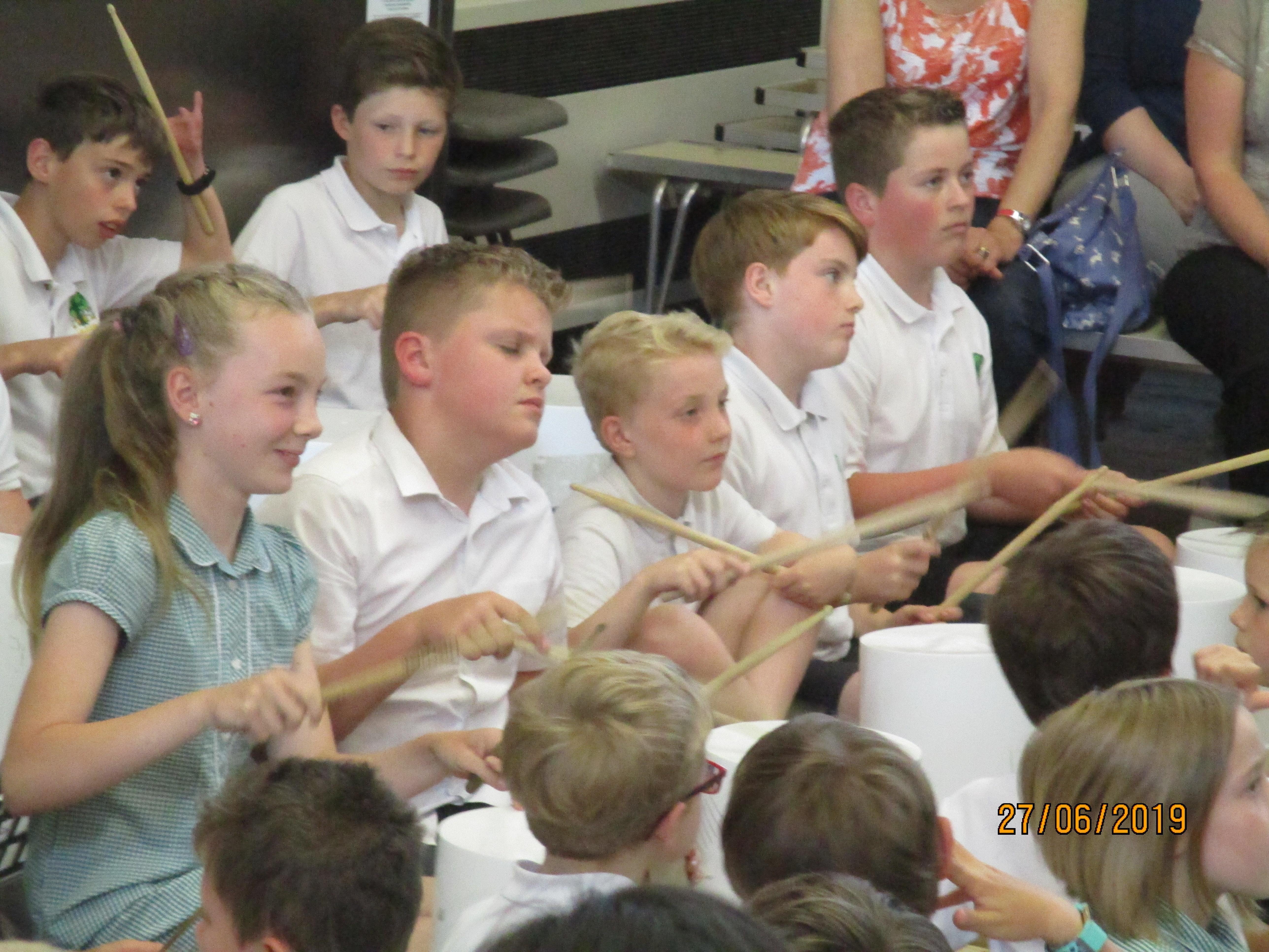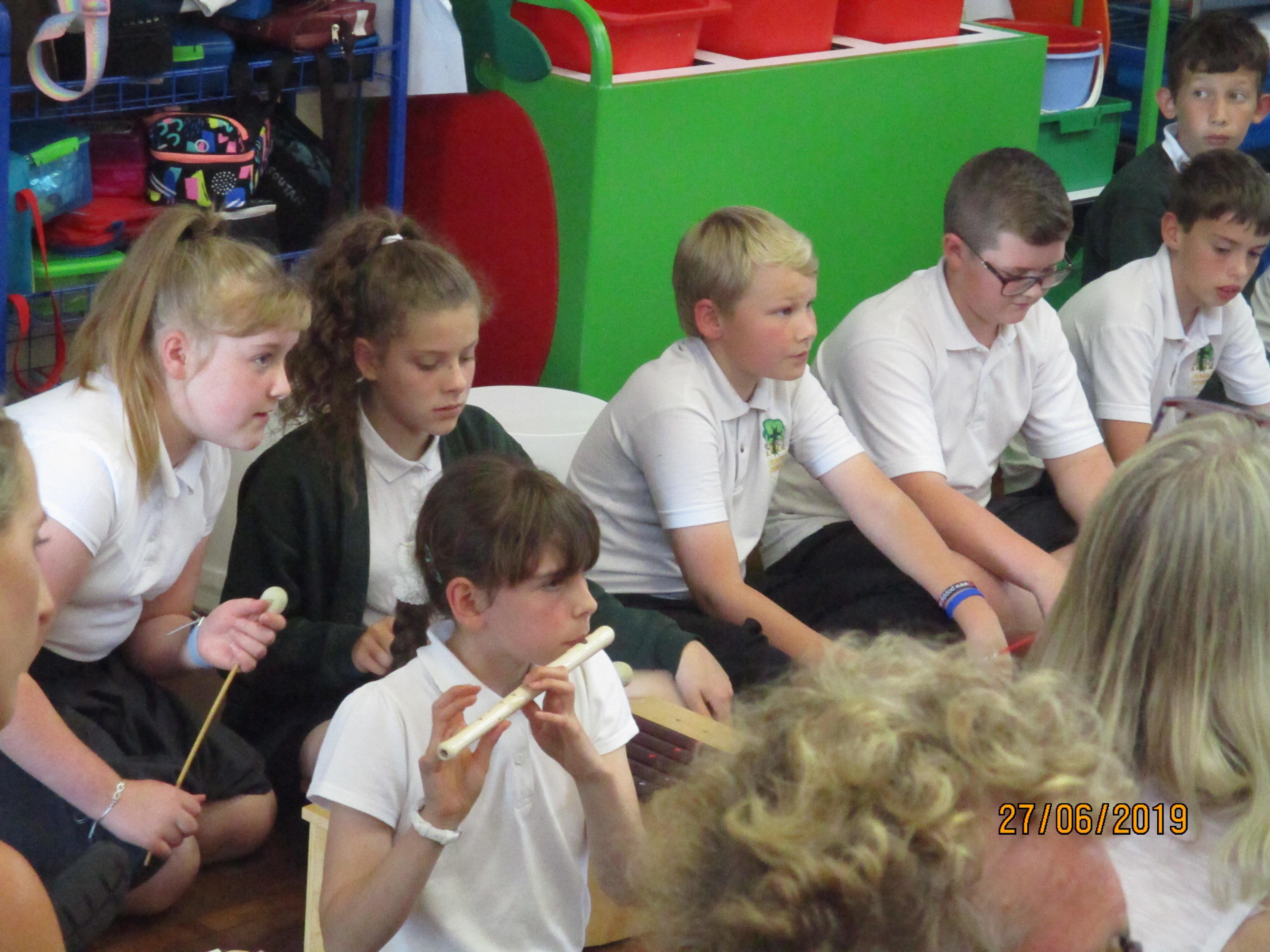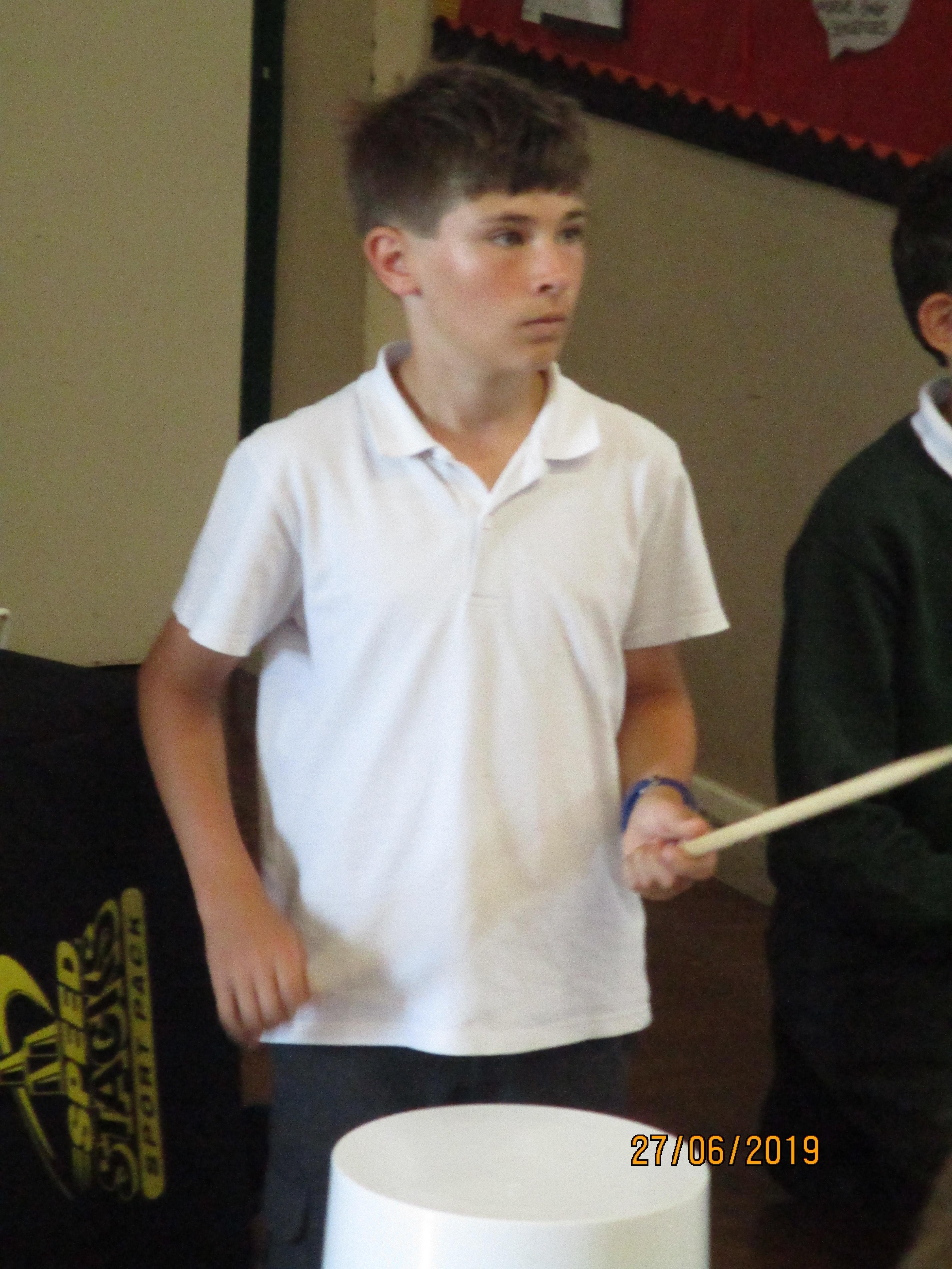 Thursday afternoon was rather special as we had our annual music concert where each class had the opportunity to showcase what they had learnt with Karen Hickman throughout the year. As well as this, children who learn a musical instrument individually had the opportunity to demonstrate their talent. We certainly do have some very talented musicians in the school and a special mention must be made of Lucas, Jenny and Sophie who were all brave enough to stand up in front of the whole school and perform. Well done to you all. As a class, Year 6 showed how proficient they had become at drumming in addition to playing a variety of instruments such as keyboards, xylophones and recorders in a group piece. There are photos of us in action below.