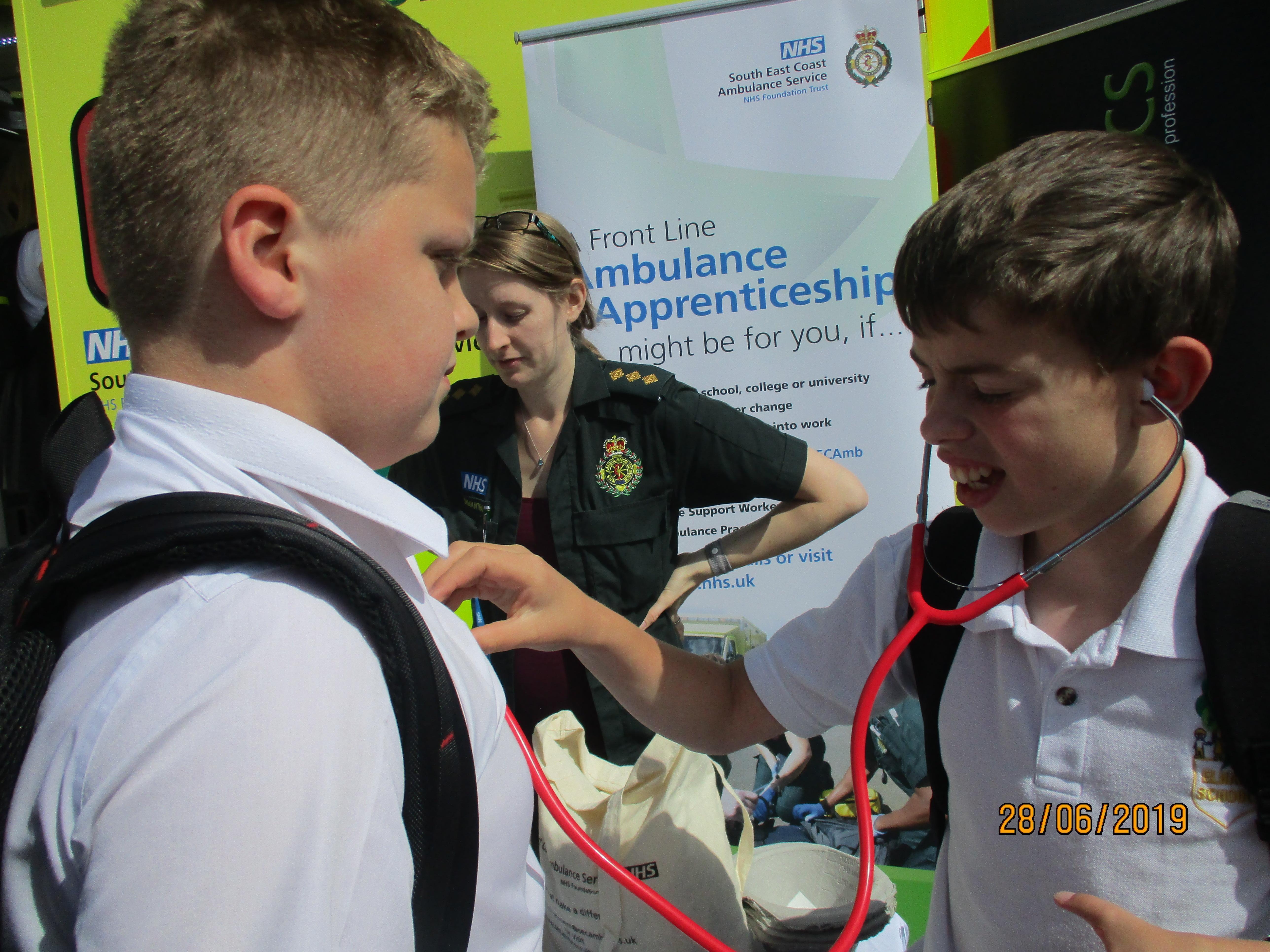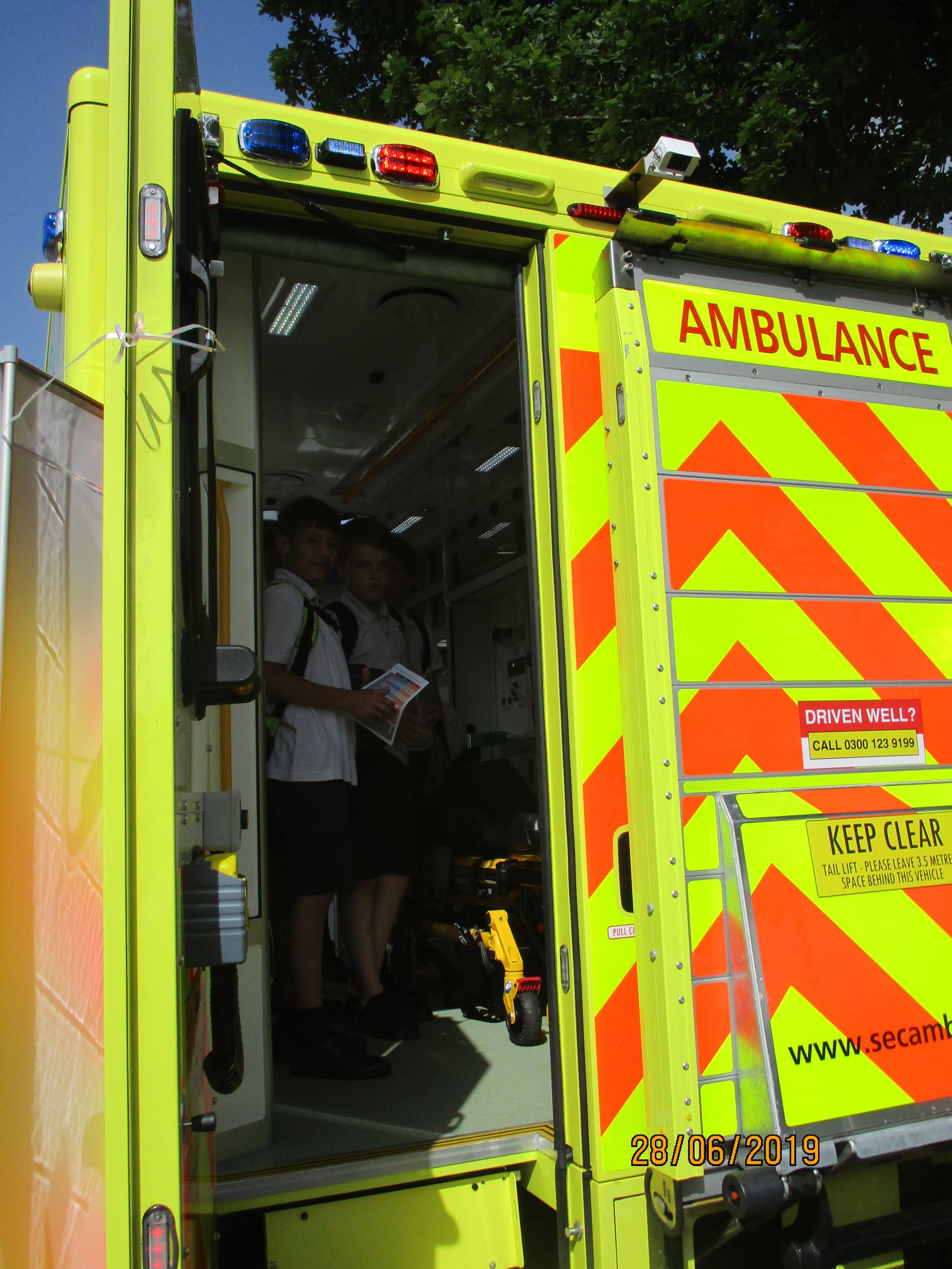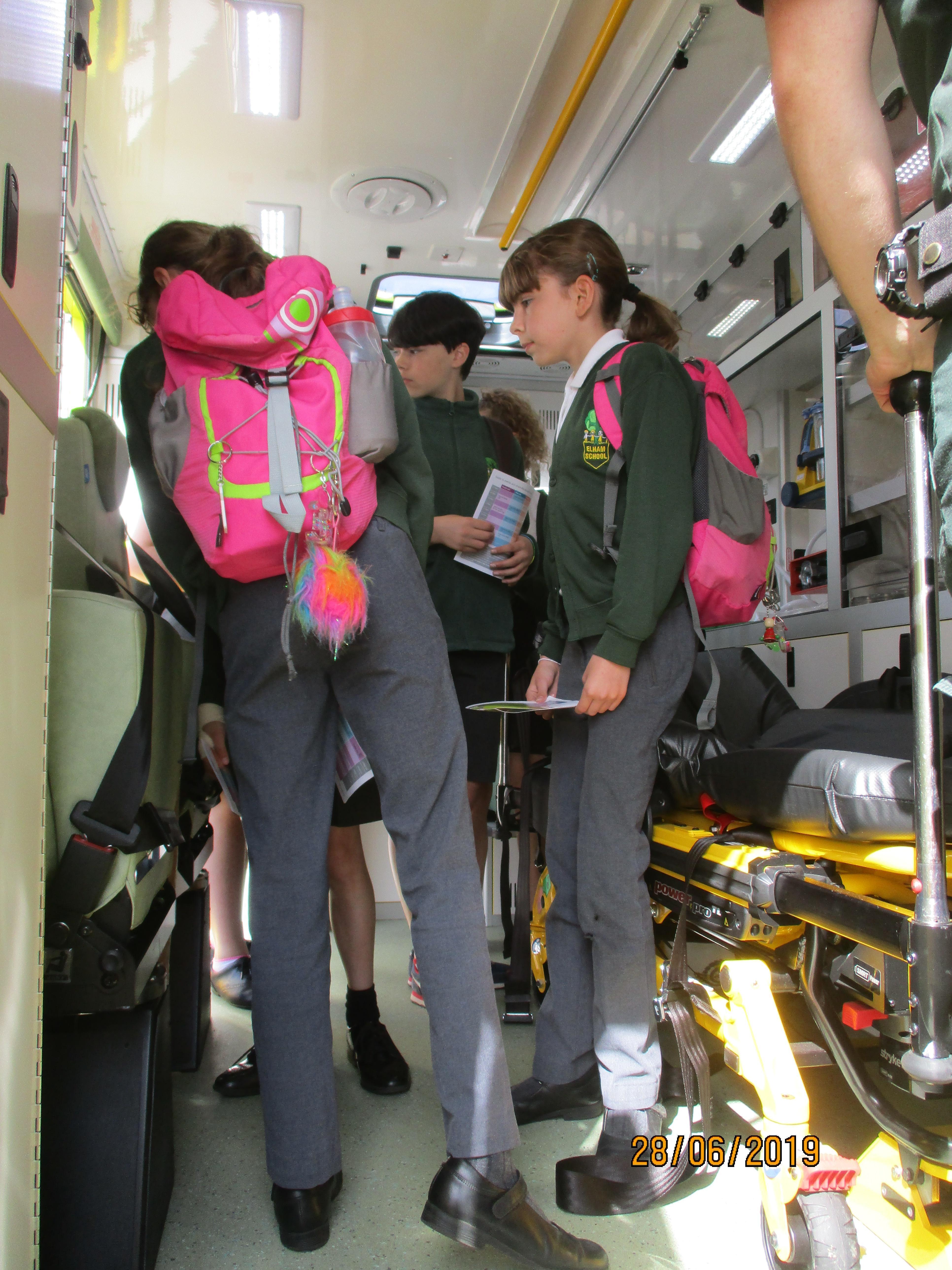 *Looking inside an ambulance and trying our hand at CPR on a dummy